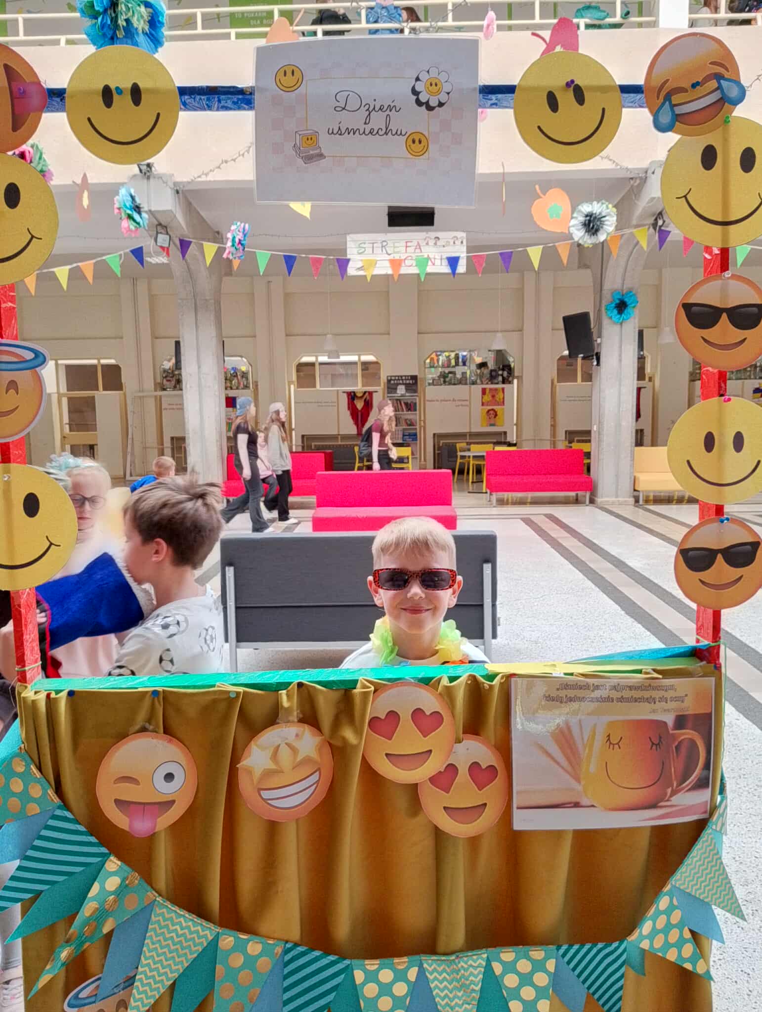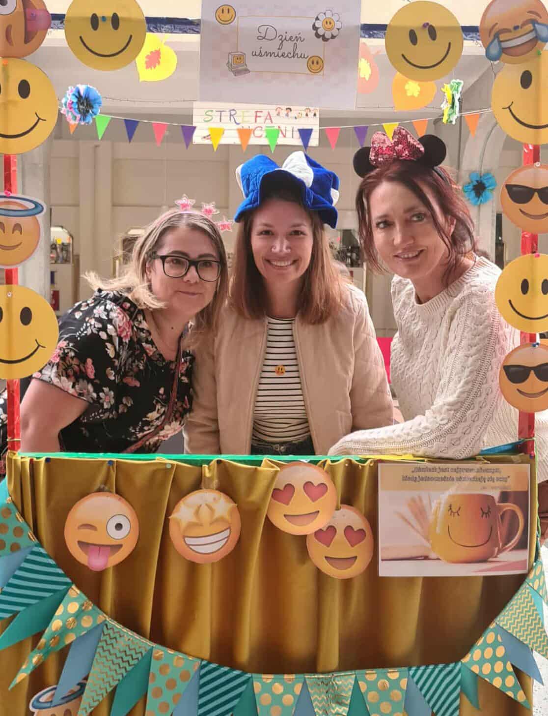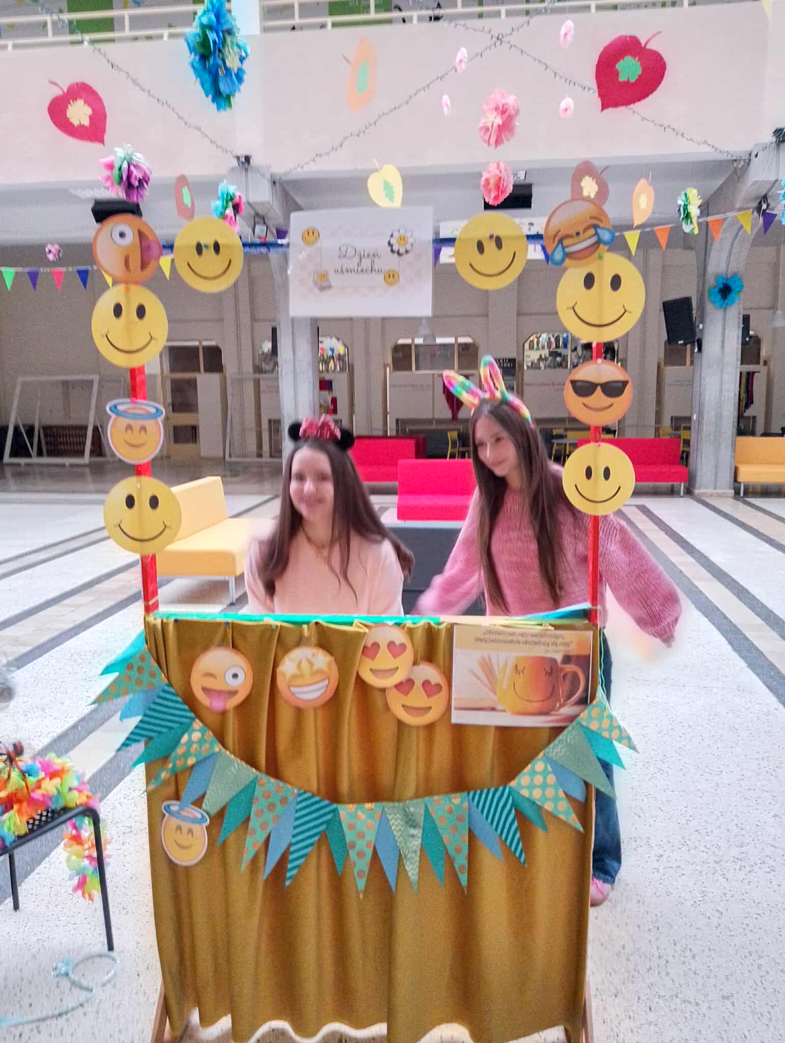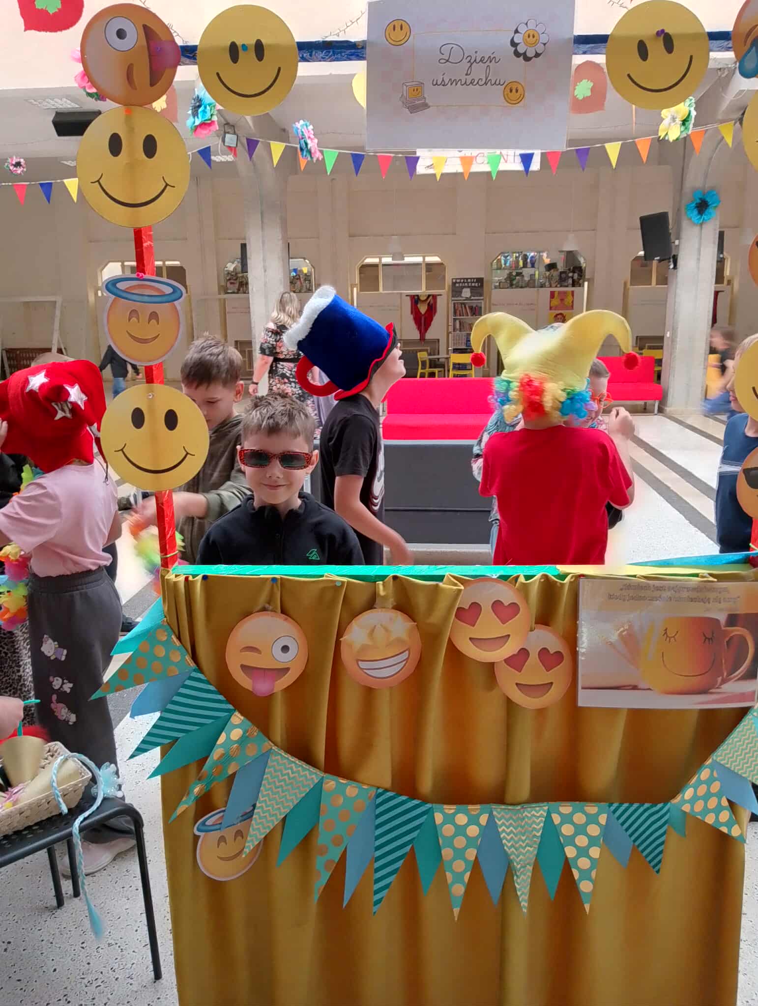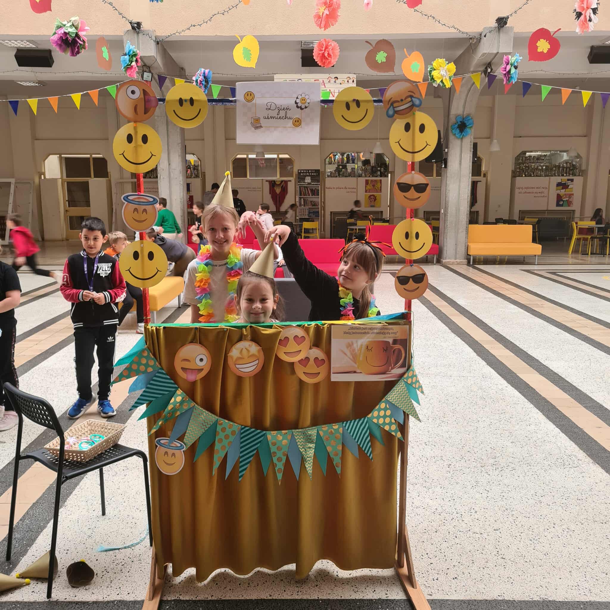 Dziś obchodziliśmy Światowy Dzień Uśmiechu. Z tej okazji w szkolnym holu ustawiona została radosna fotobudka z różnymi akcesoriami.