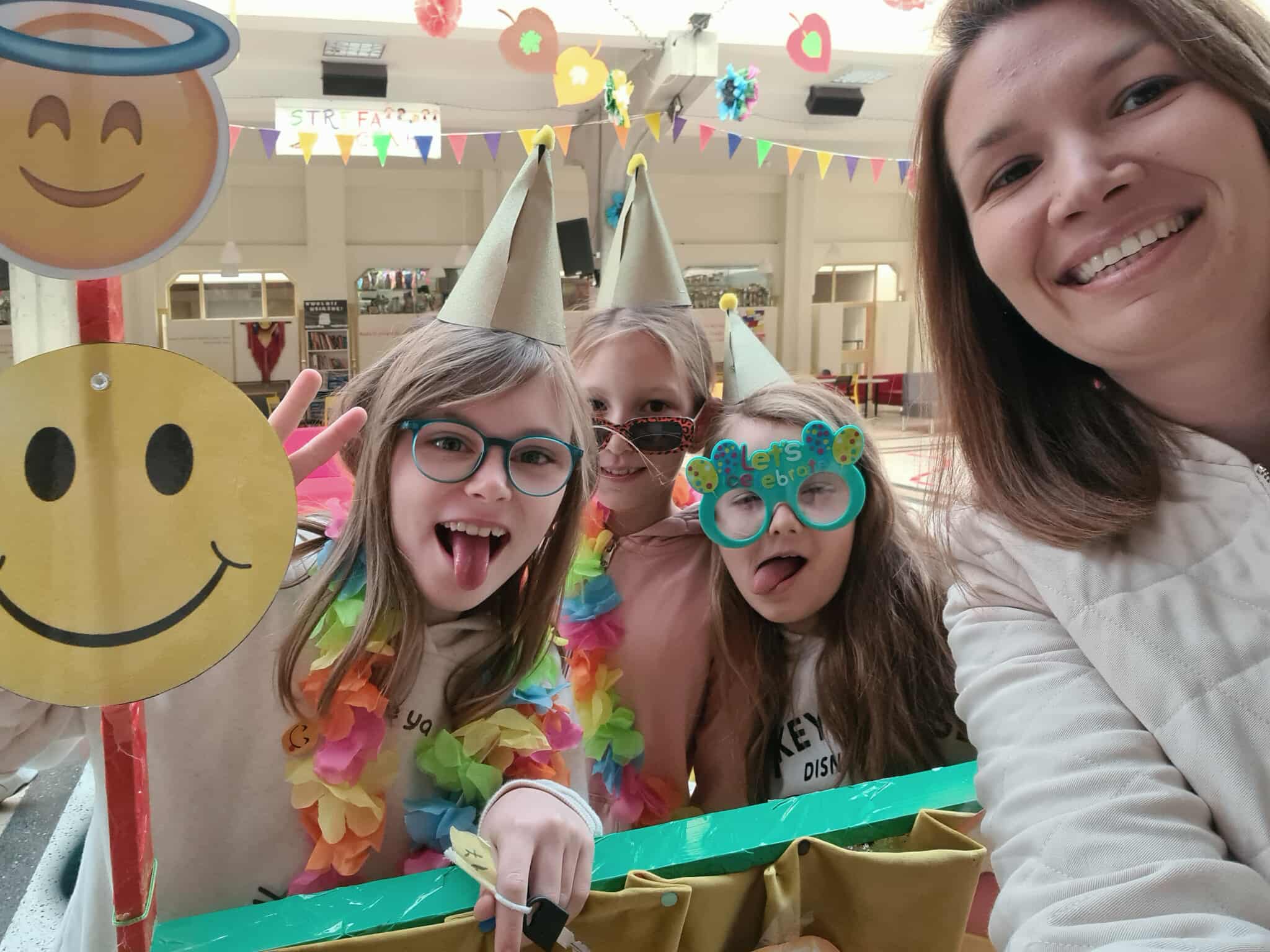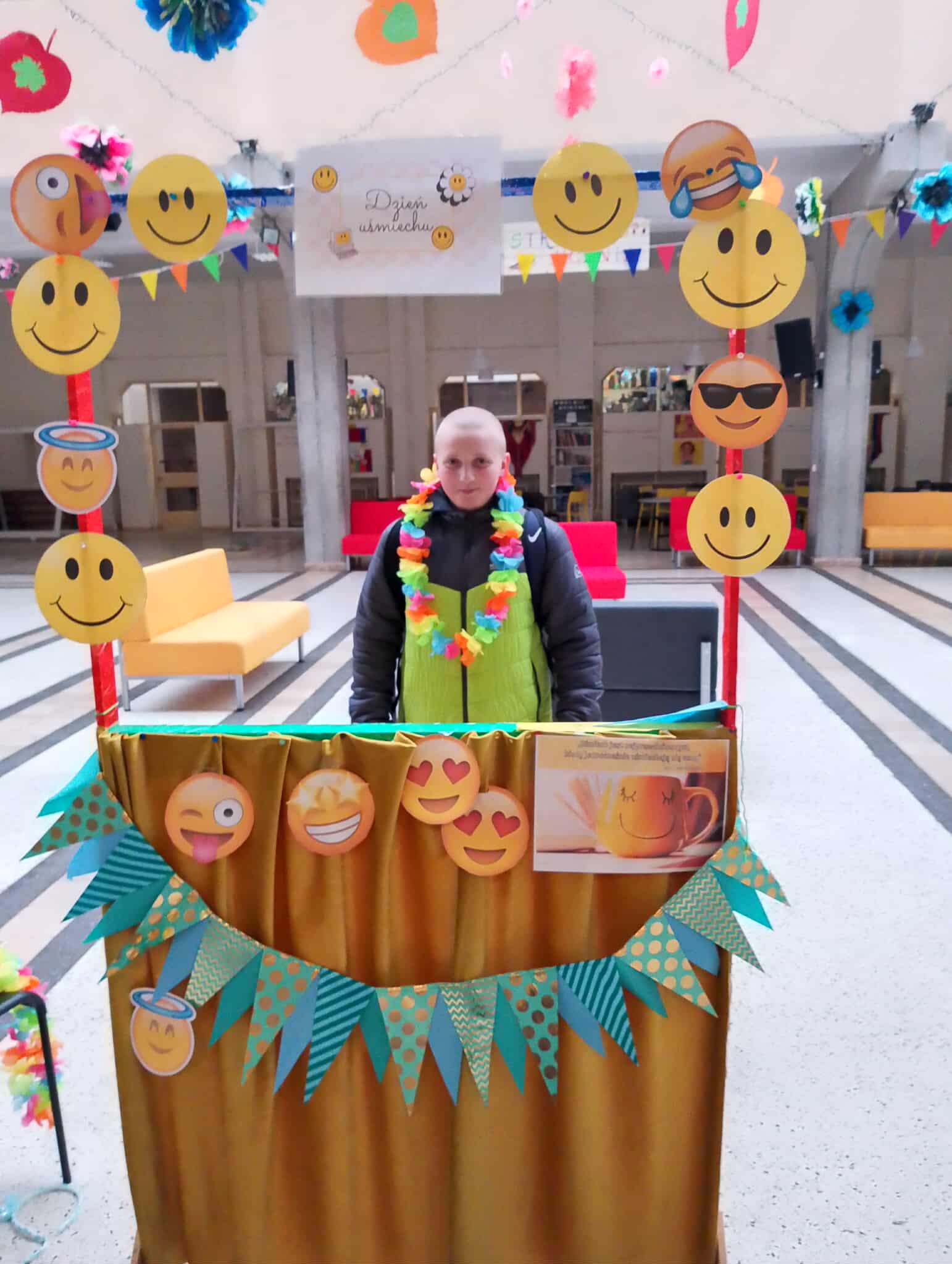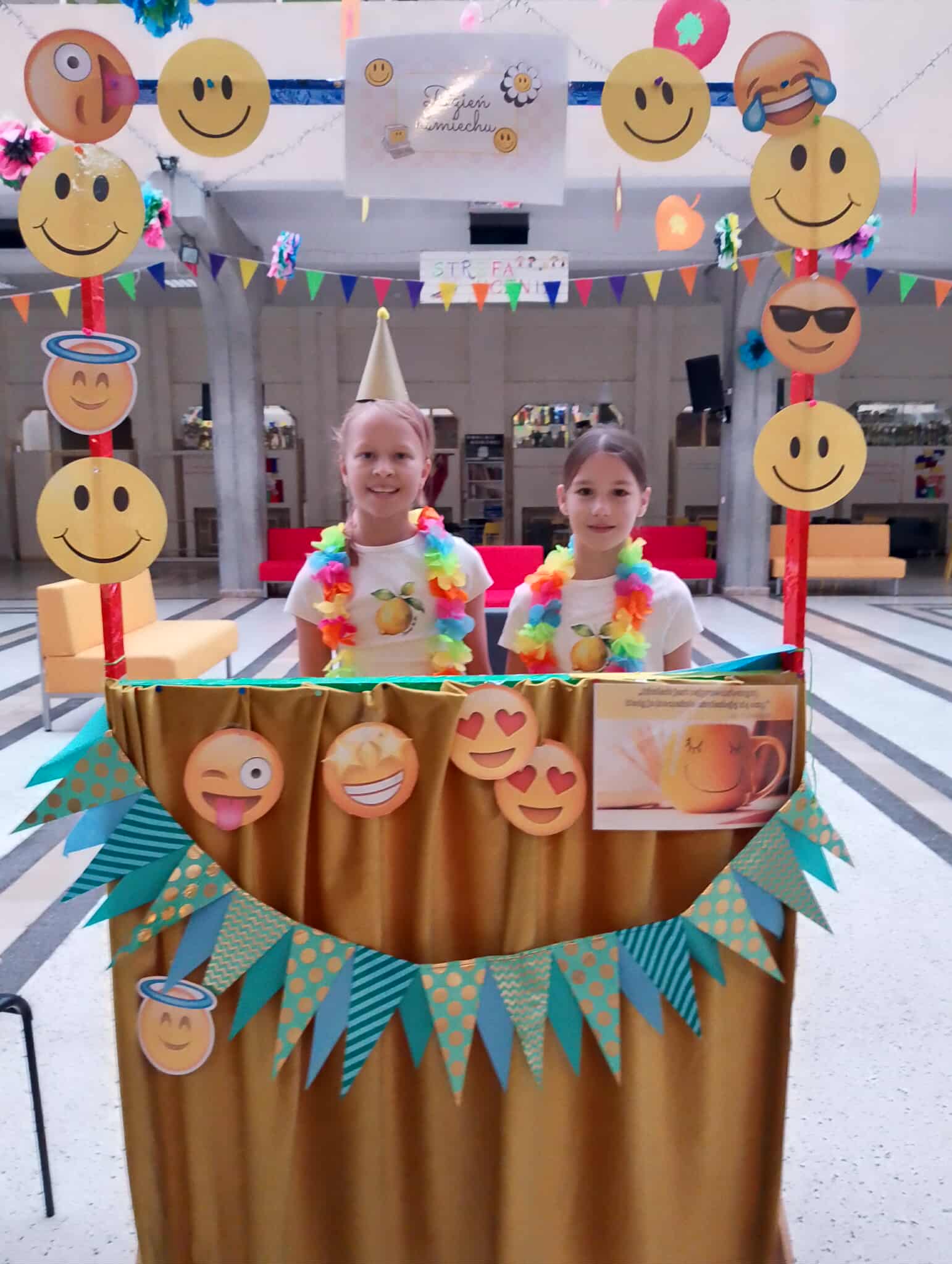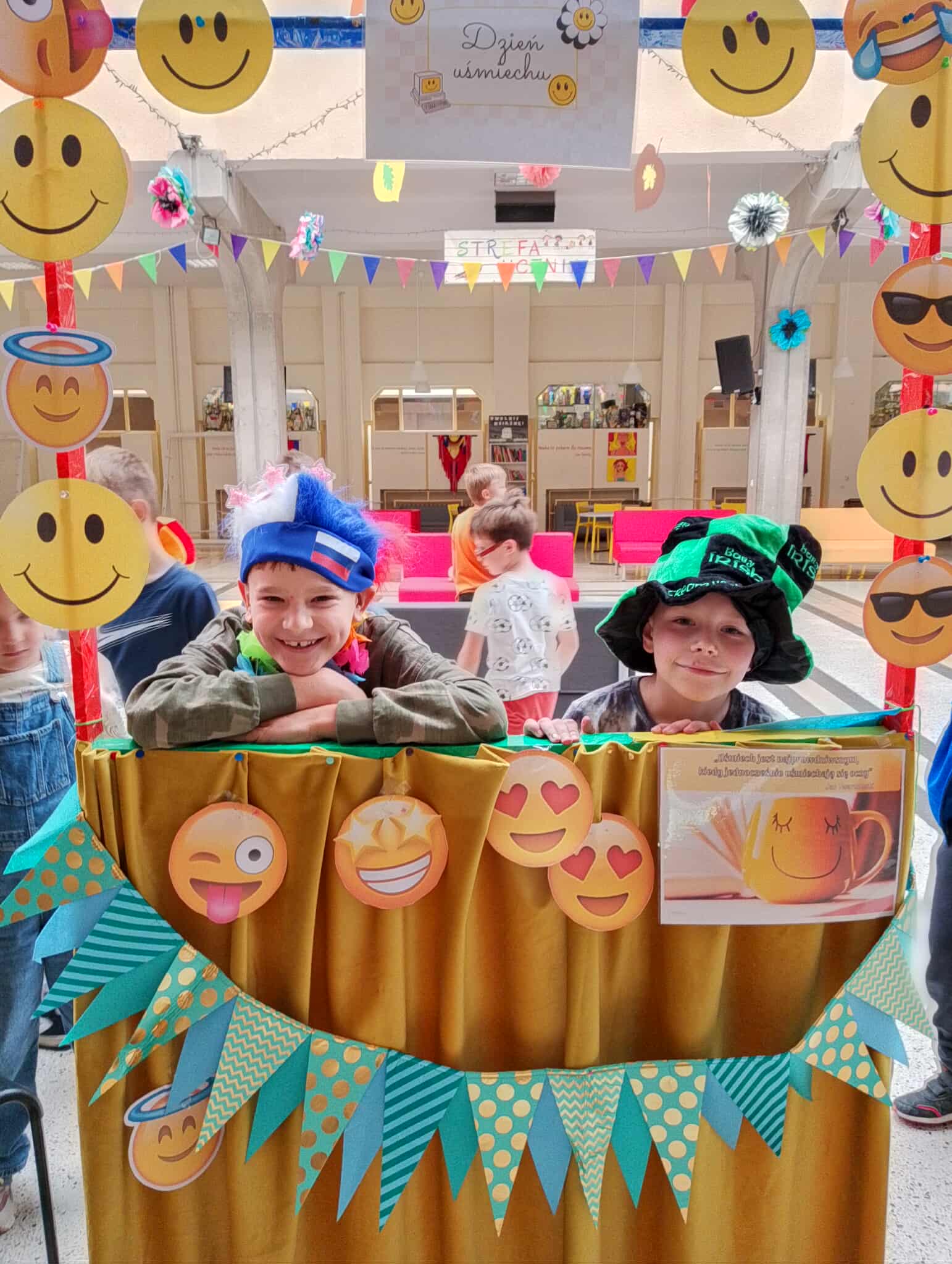 Dziś obchodziliśmy Światowy Dzień Uśmiechu. Z tej okazji w szkolnym holu ustawiona została radosna fotobudka z różnymi akcesoriami.