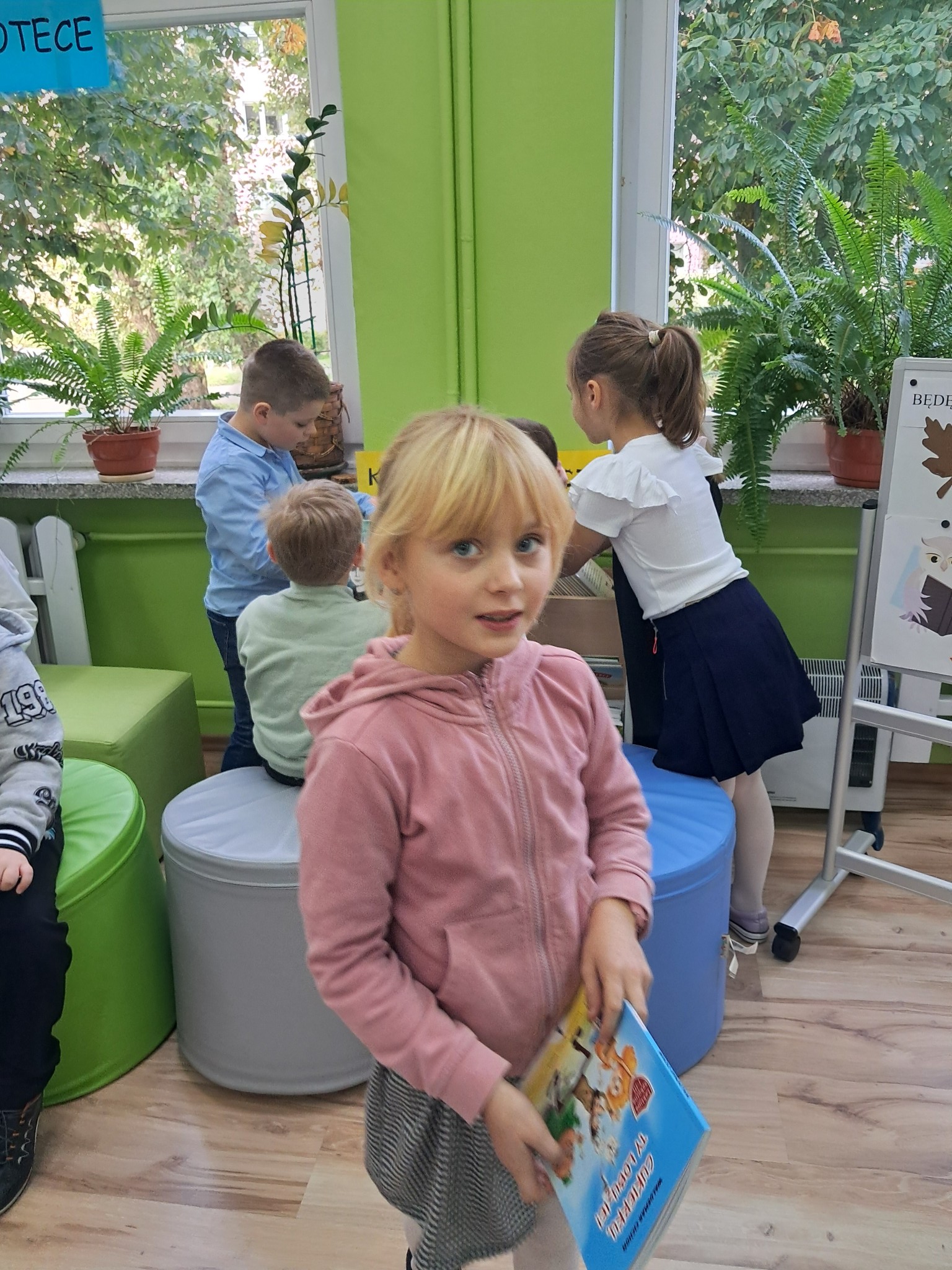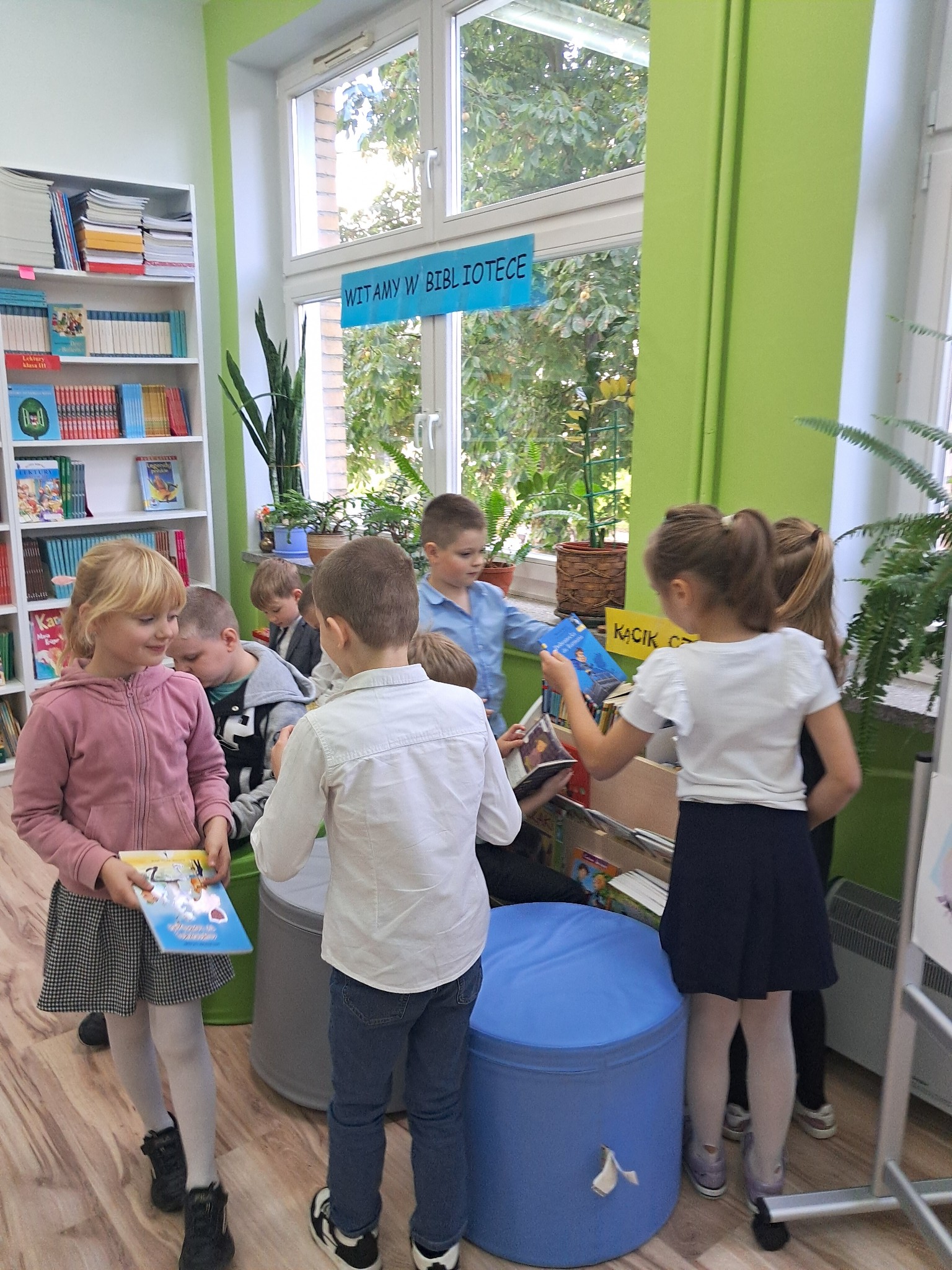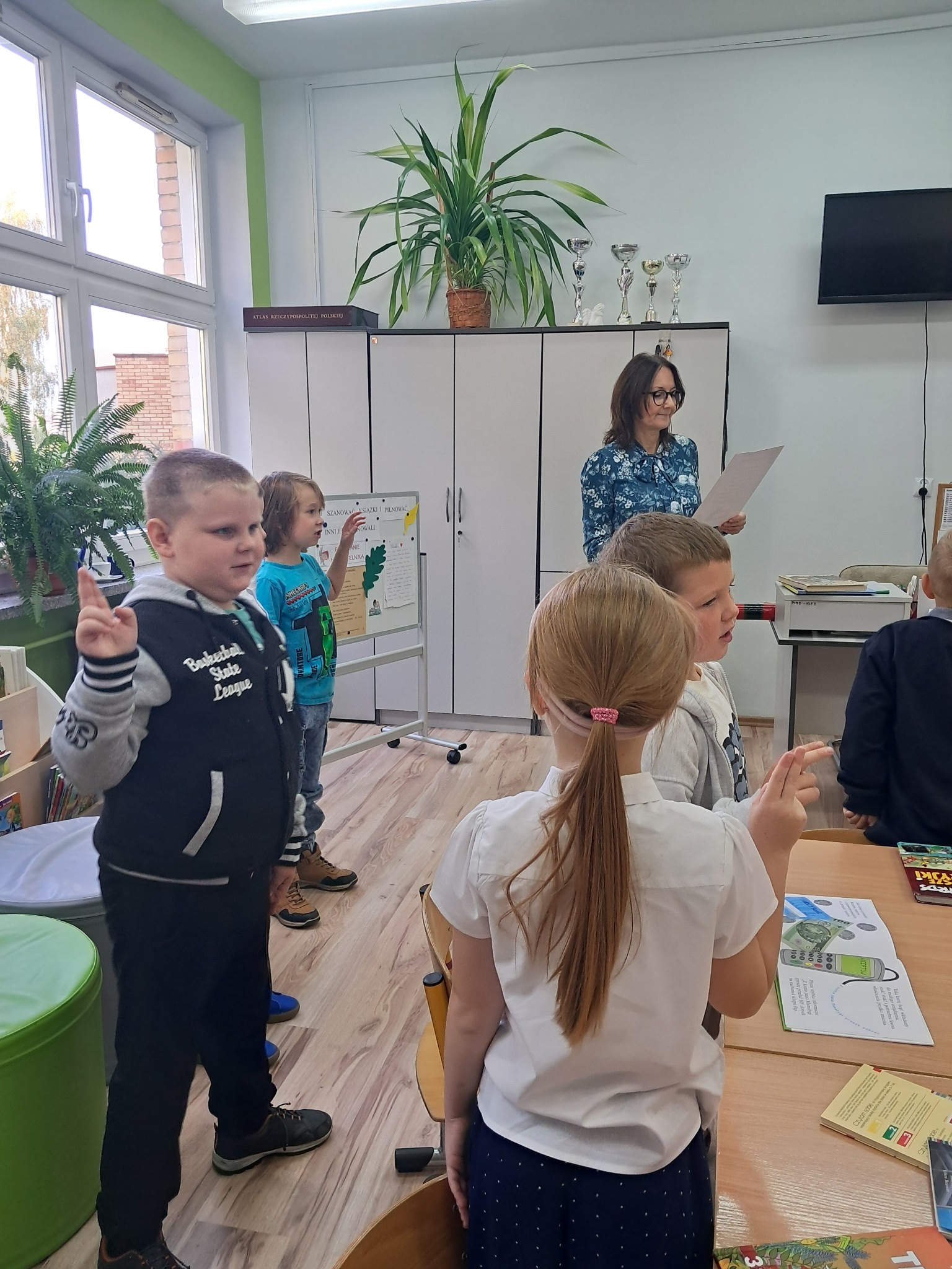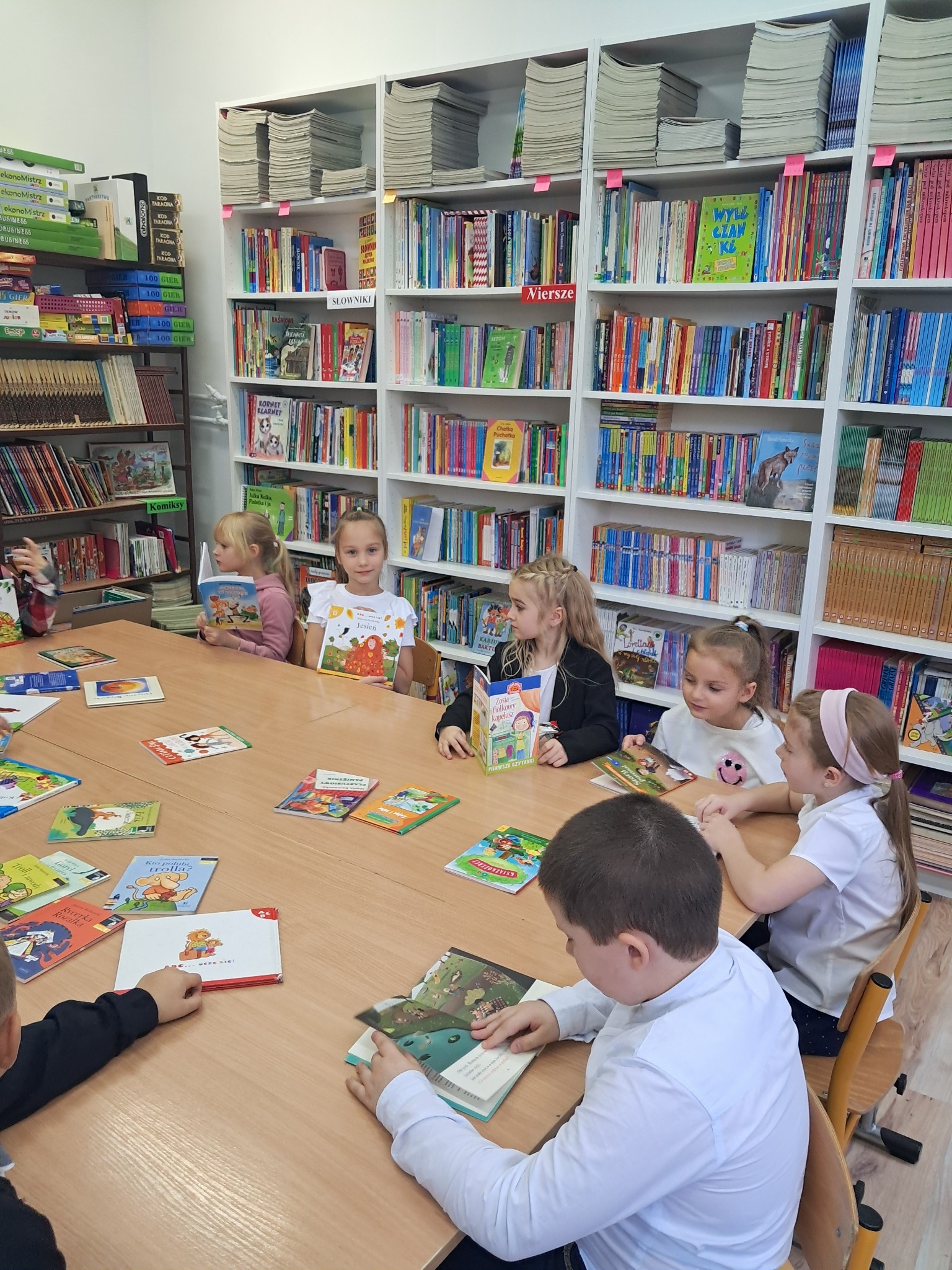 Dzieci poznały zasady korzystania z biblioteki i czytelni oraz zbiory biblioteczne przeznaczone dla ich grupy wiekowej. Następnie złożyły uroczyste przyrzeczenie przestrzegania obowiązków czytelnika. Każdy uczeń otrzymał piękną, kolorową zakładkę wykonaną przez szkolnych wolontariuszy. Na koniec czytelnicy z 1a wypożyczyli wybraną przez siebie książkę. Zajęcia poprowadziła bibliotekarka Mariola Ostrowska.