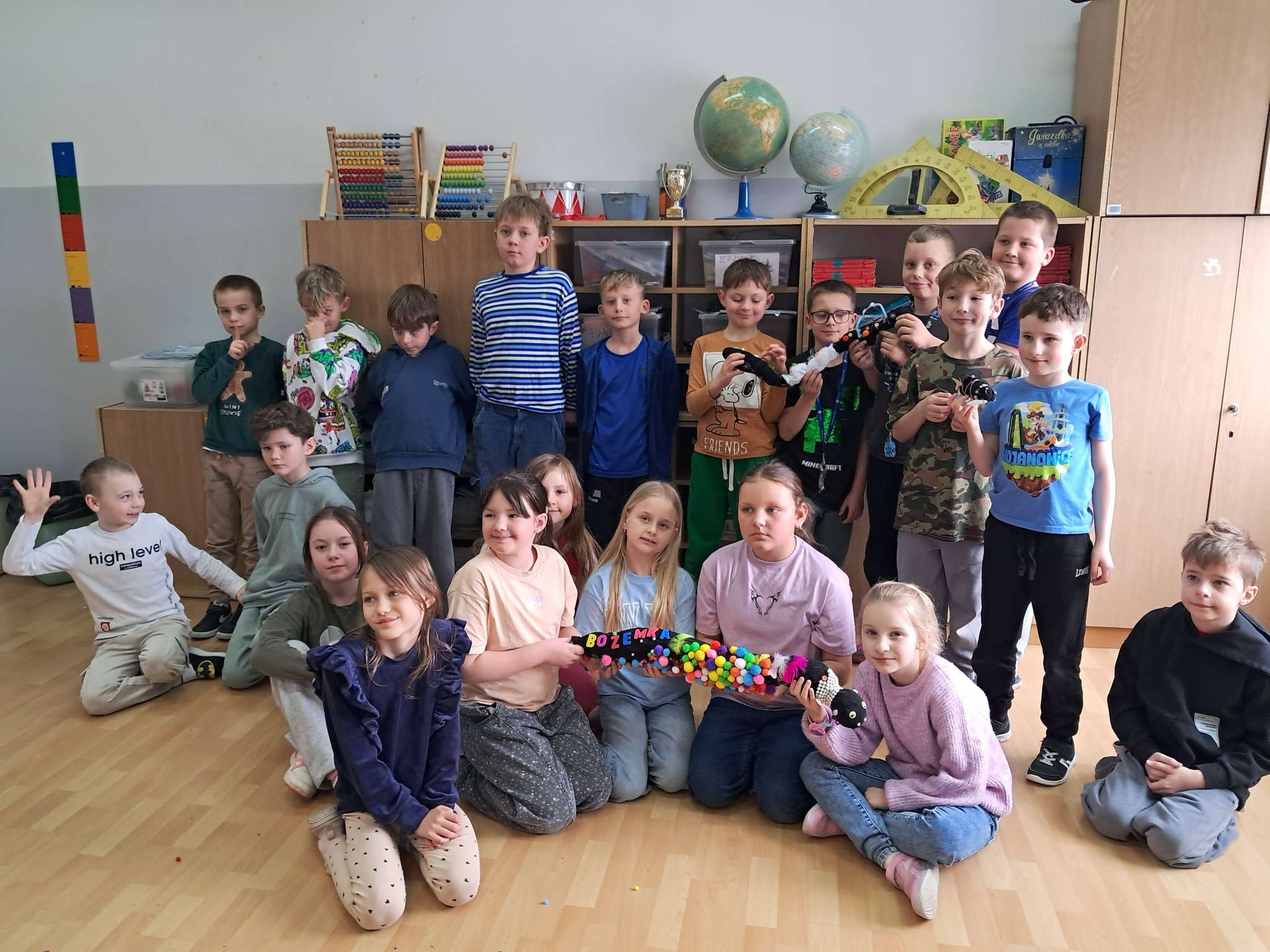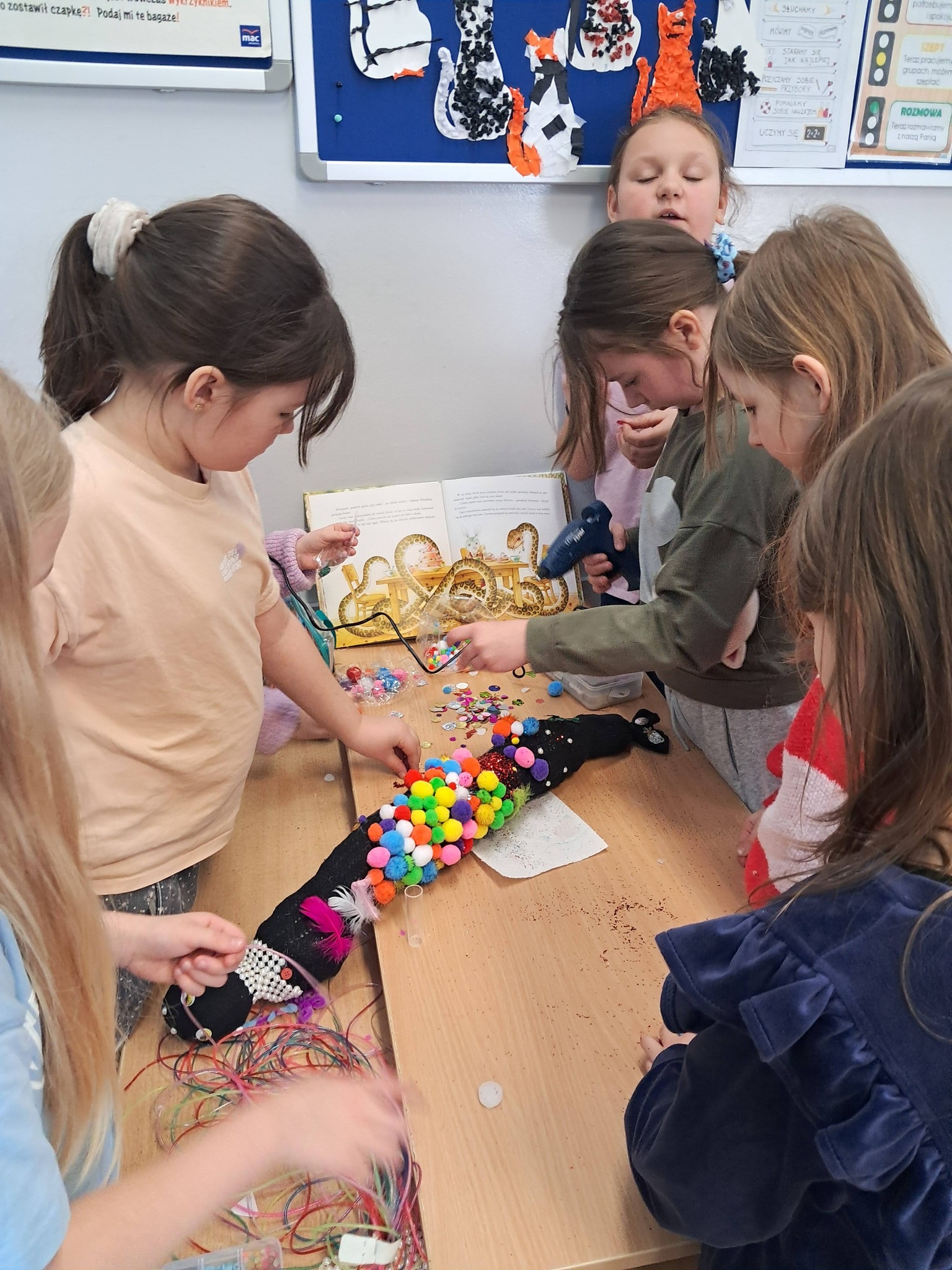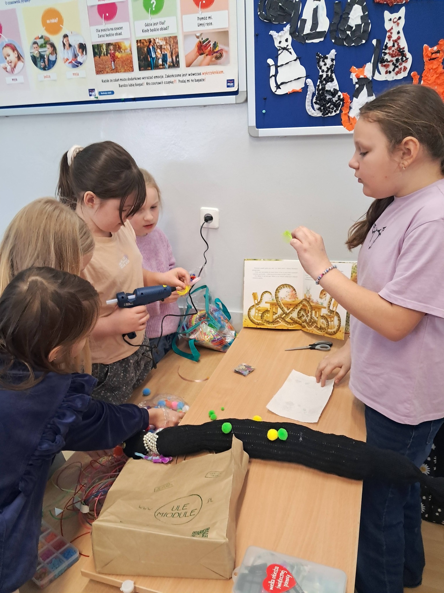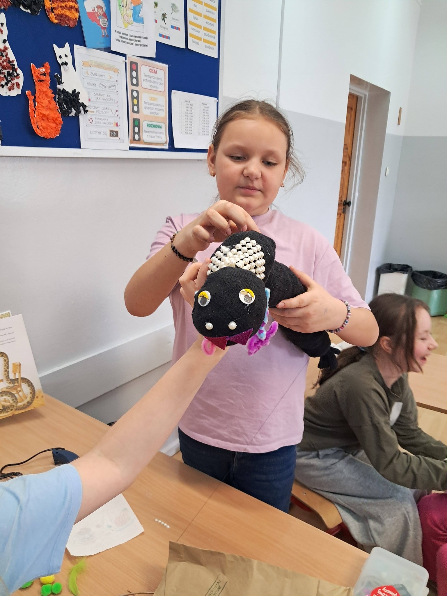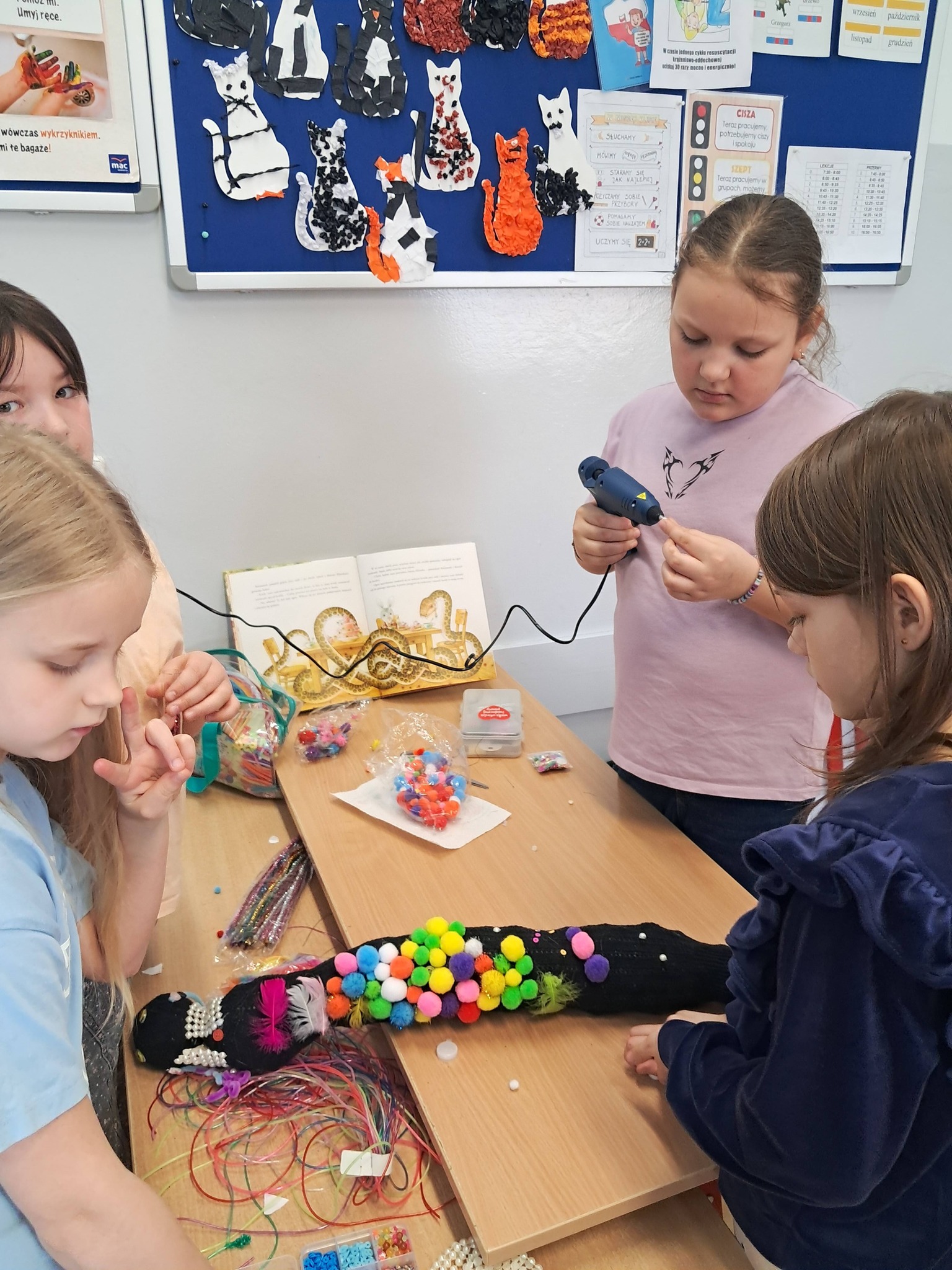 w klasie 2c czytaliśmy książkę litewskiego autora Kęstutisa Kasparaviciusa " Długaśna sąsiadka ". To zabawna opowieść o przełamywaniu stereotypów i o tym, że pozory czasem mylą. Po omówieniu treści uczniowie rozwiązywali łamigłówki literackie oraz wykonywali kukiełkę głównej bohaterki książki. Została ona wysłana, wraz z zeszytem, do biblioteki szkolnej w Chrzanowie, bioracej udział w projekcie. Nasza kukiełka będzie odwiedzać domy uczniów z klasy drugiej w Chrzanowie, którzy opiszą lub narysują w zeszycie, co z nią przeżyli. Uczniowie 2c uczynią to samo z kukiełką przysłaną z Chrzanowa. Gdy lalka odwiedzi wszystkie dzieci, odeślemy ją wraz z zeszytem do biblioteki, w której została wykonana, a nasza kukiełka wróci do nas. To taka wymiana bohaterów literackich.