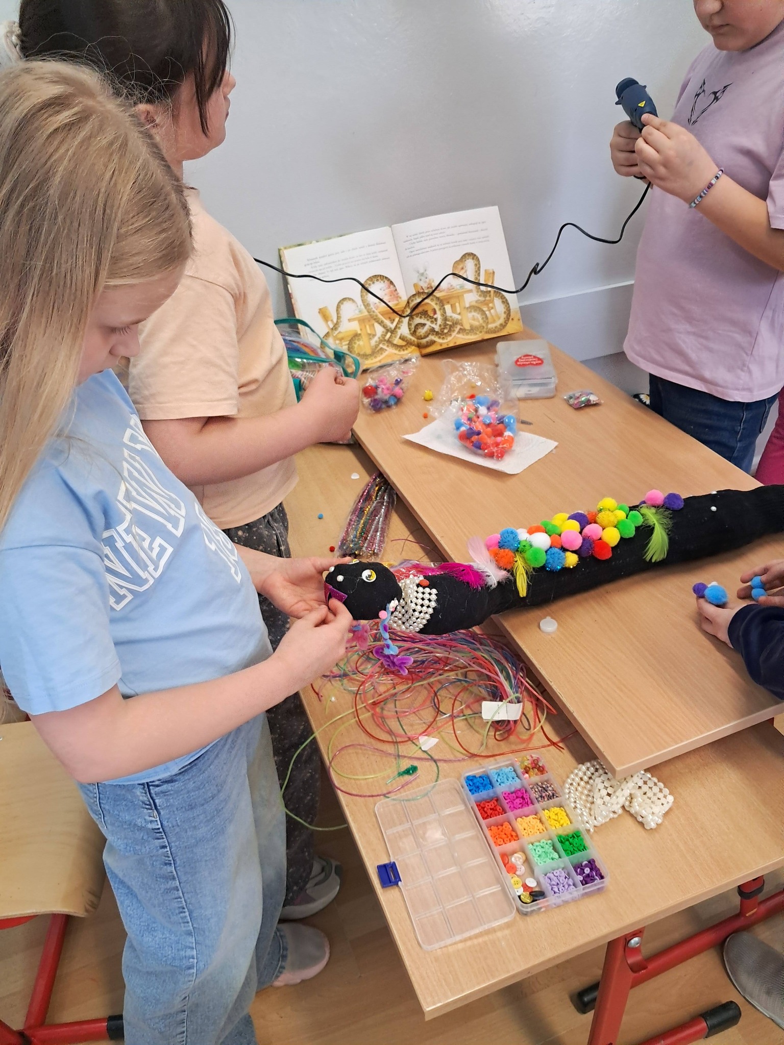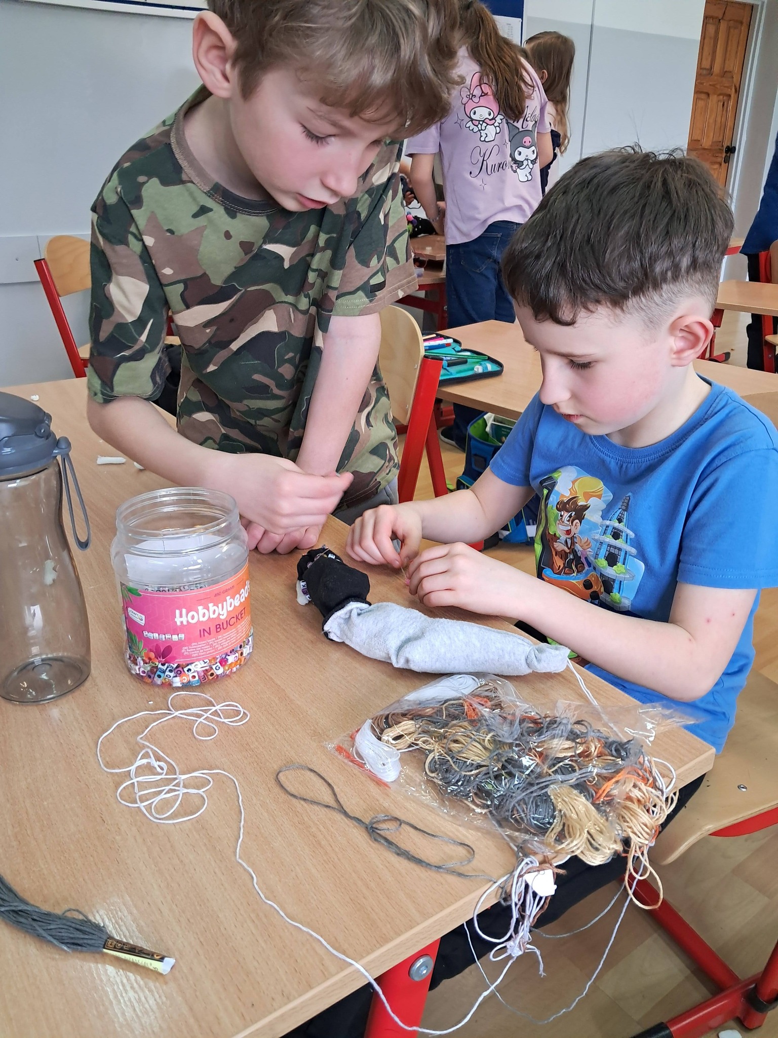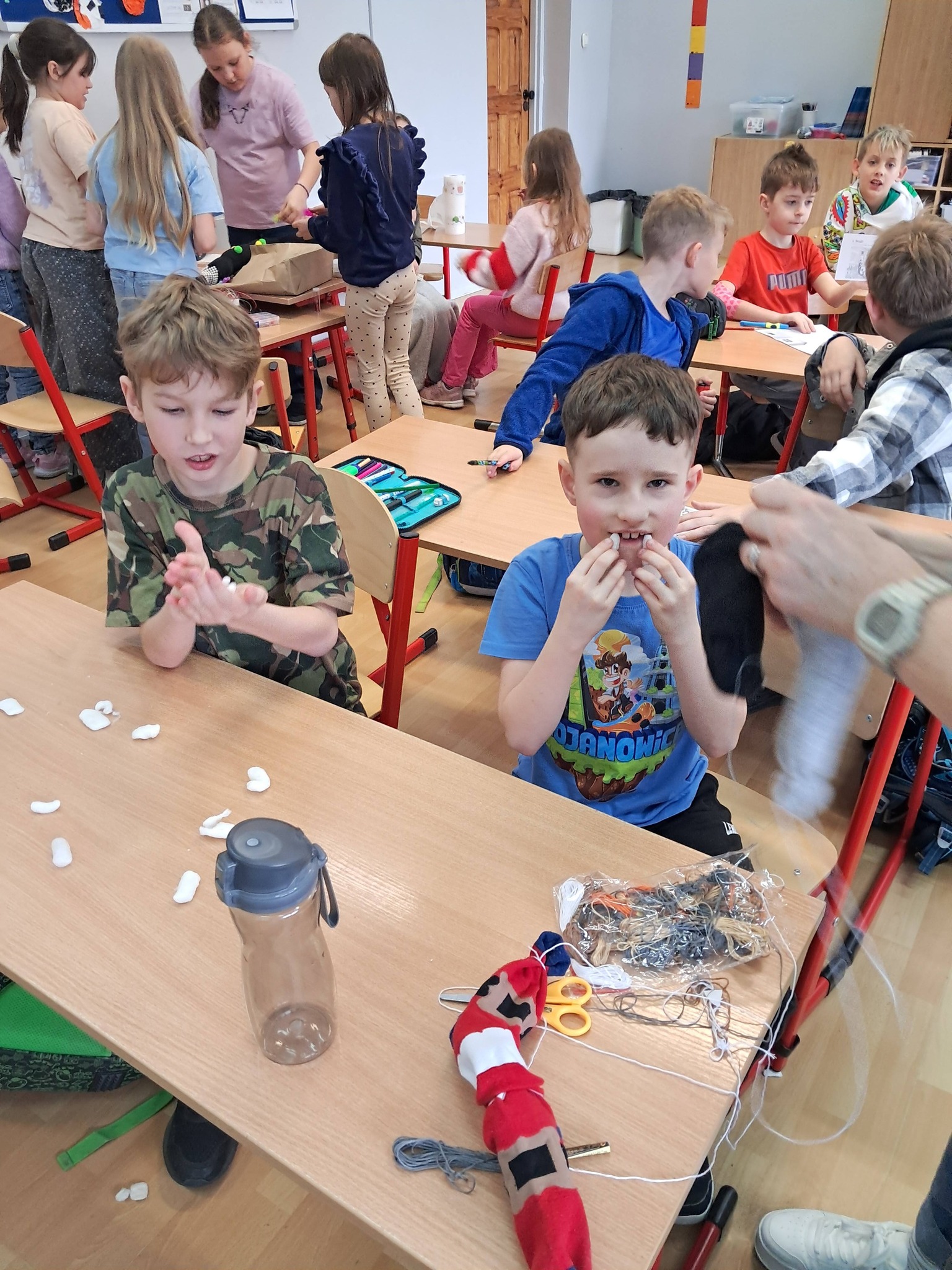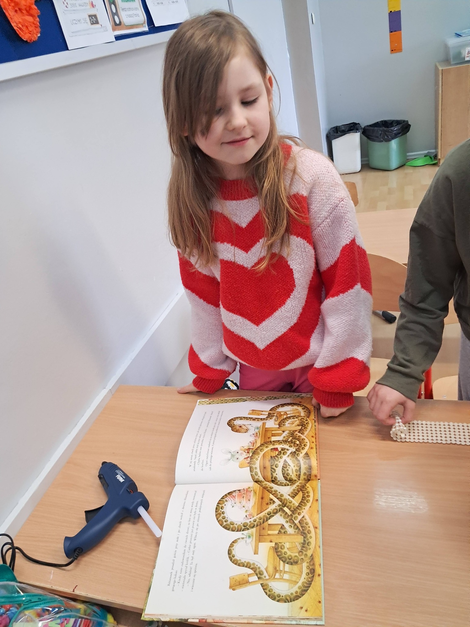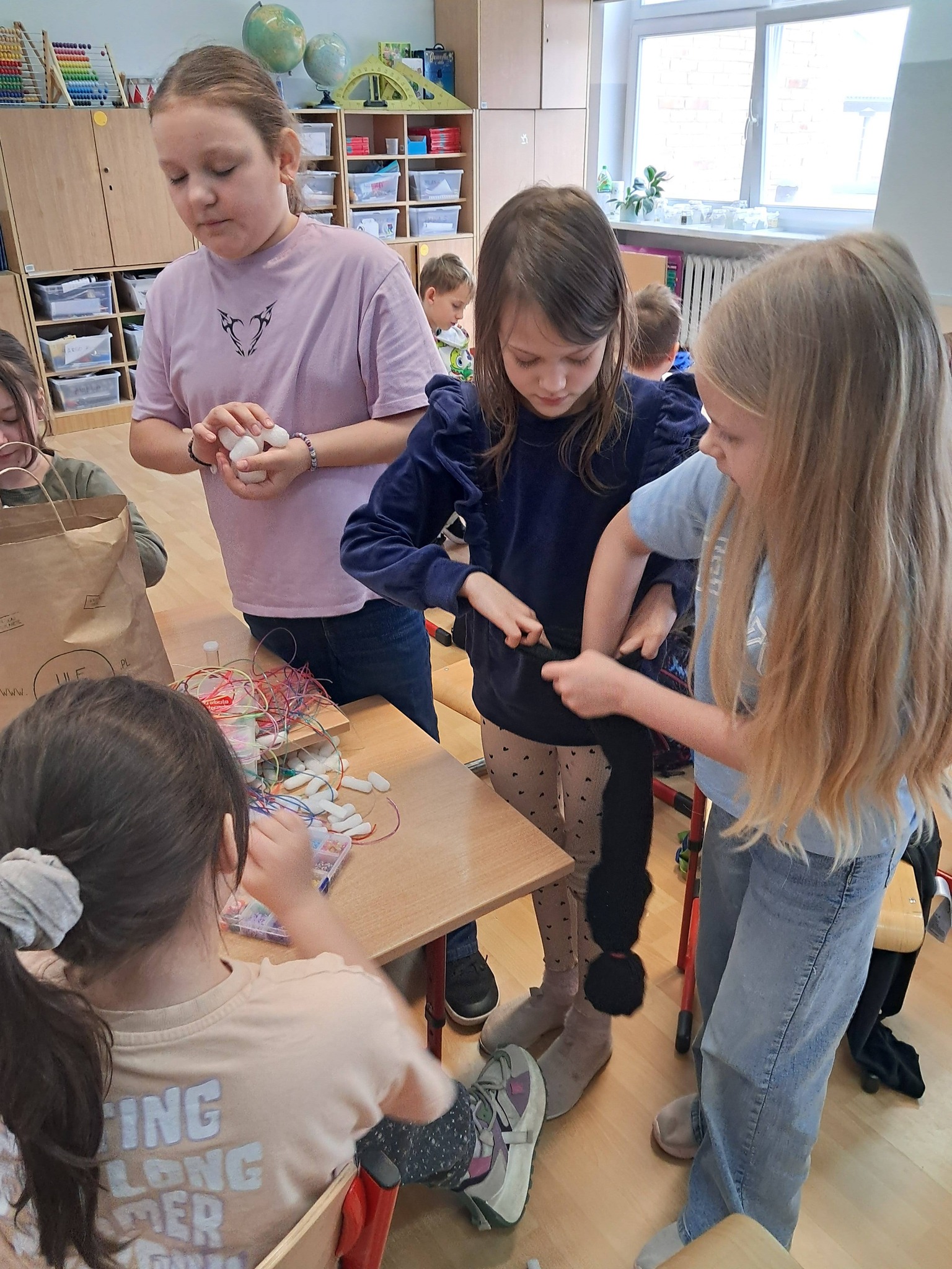 w klasie 2c czytaliśmy książkę litewskiego autora Kęstutisa Kasparaviciusa " Długaśna sąsiadka ". To zabawna opowieść o przełamywaniu stereotypów i o tym, że pozory czasem mylą. Po omówieniu treści uczniowie rozwiązywali łamigłówki literackie oraz wykonywali kukiełkę głównej bohaterki książki. Została ona wysłana, wraz z zeszytem, do biblioteki szkolnej w Chrzanowie, bioracej udział w projekcie. Nasza kukiełka będzie odwiedzać domy uczniów z klasy drugiej w Chrzanowie, którzy opiszą lub narysują w zeszycie, co z nią przeżyli. Uczniowie 2c uczynią to samo z kukiełką przysłaną z Chrzanowa. Gdy lalka odwiedzi wszystkie dzieci, odeślemy ją wraz z zeszytem do biblioteki, w której została wykonana, a nasza kukiełka wróci do nas. To taka wymiana bohaterów literackich.