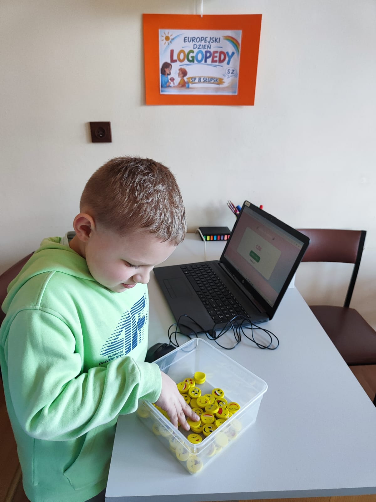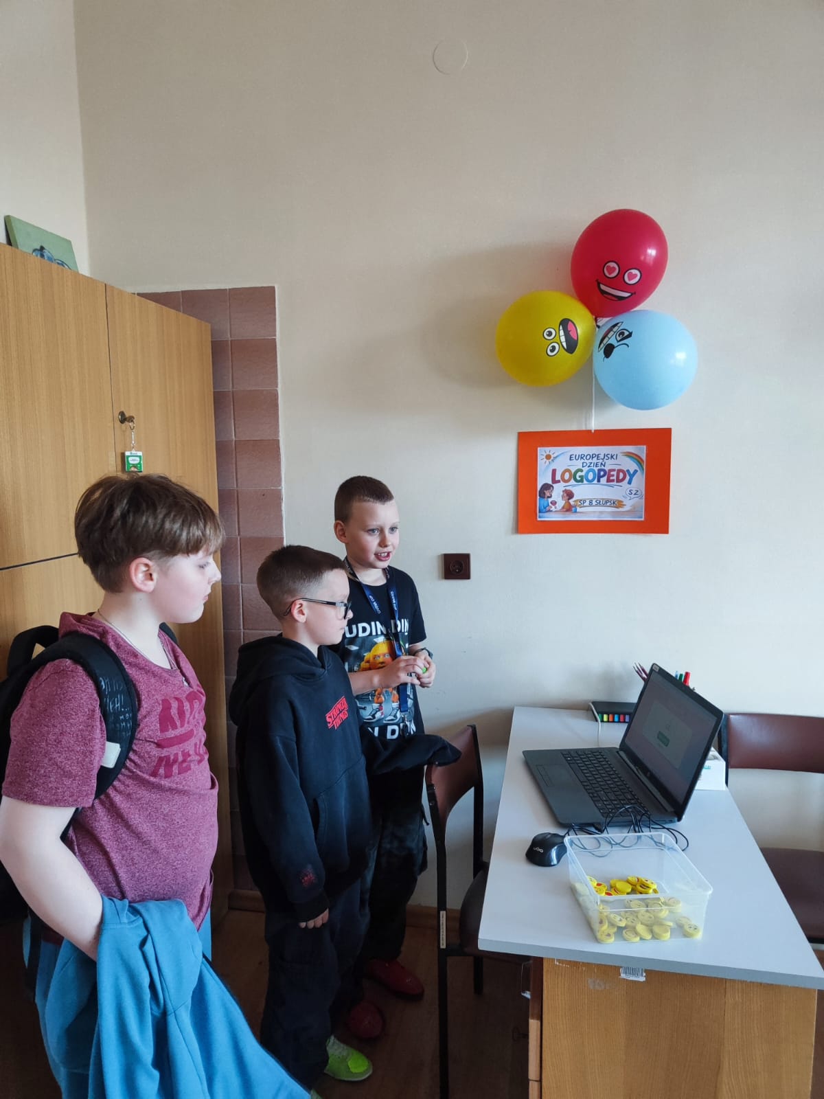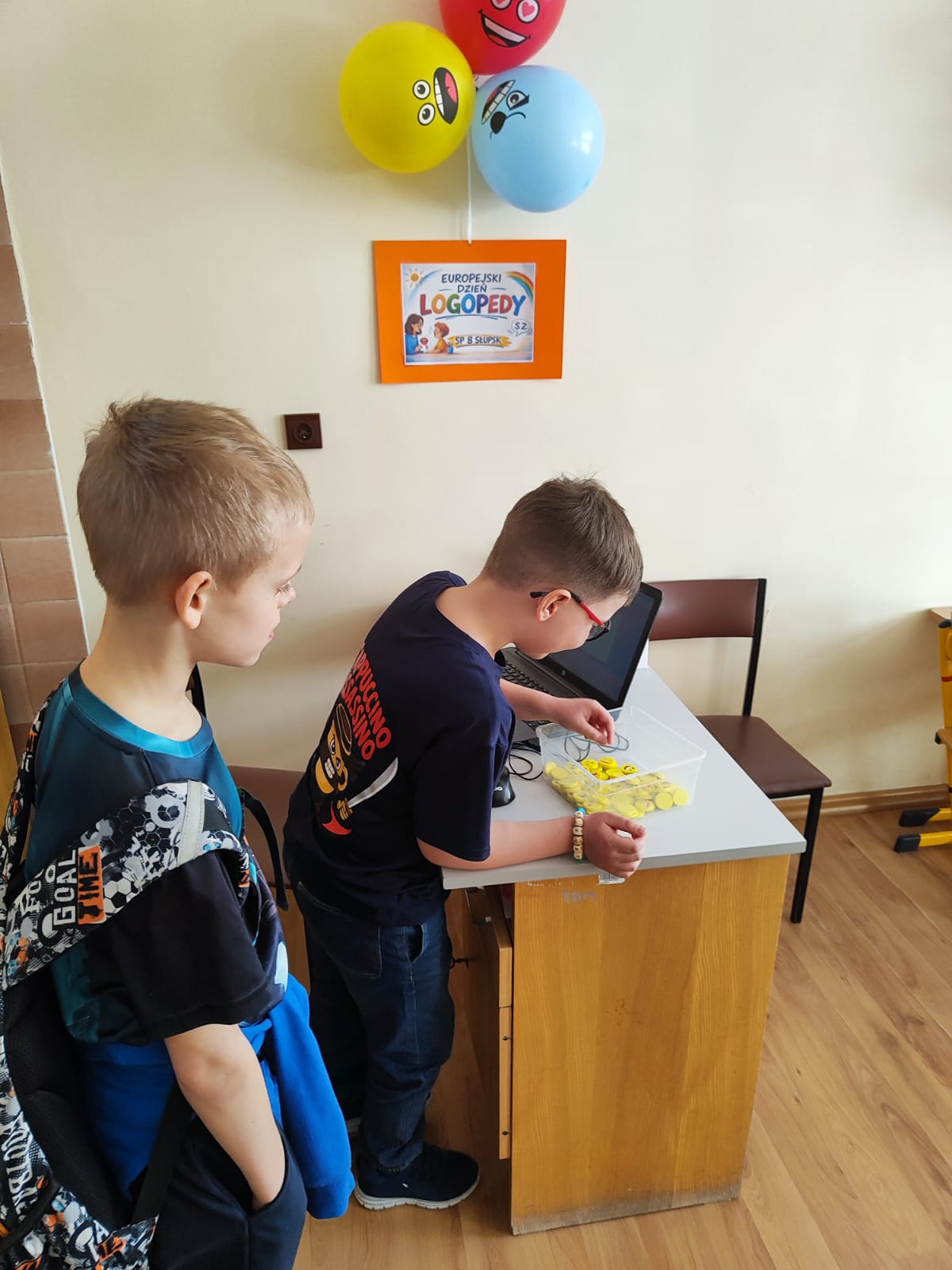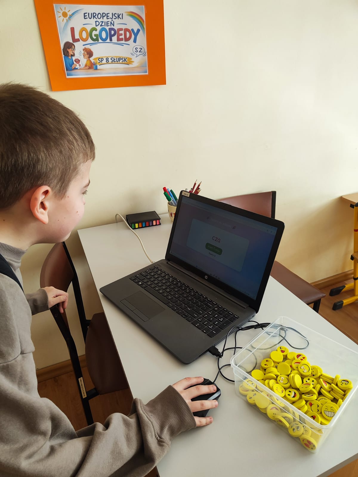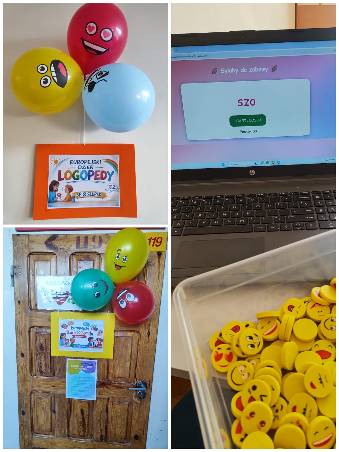 Podczas przerw uczniowie odwiedzali gabinet logopedyczny, gdzie losowali sylabę i wykonywali związane z nią zadanie, np. podawali słowo rozpoczynające się lub kończące na daną sylabę. Na chętnych i odważnych uczestników czekała także drobna niespodzianka – gumka do zmazywania ze śmieszną minką.
