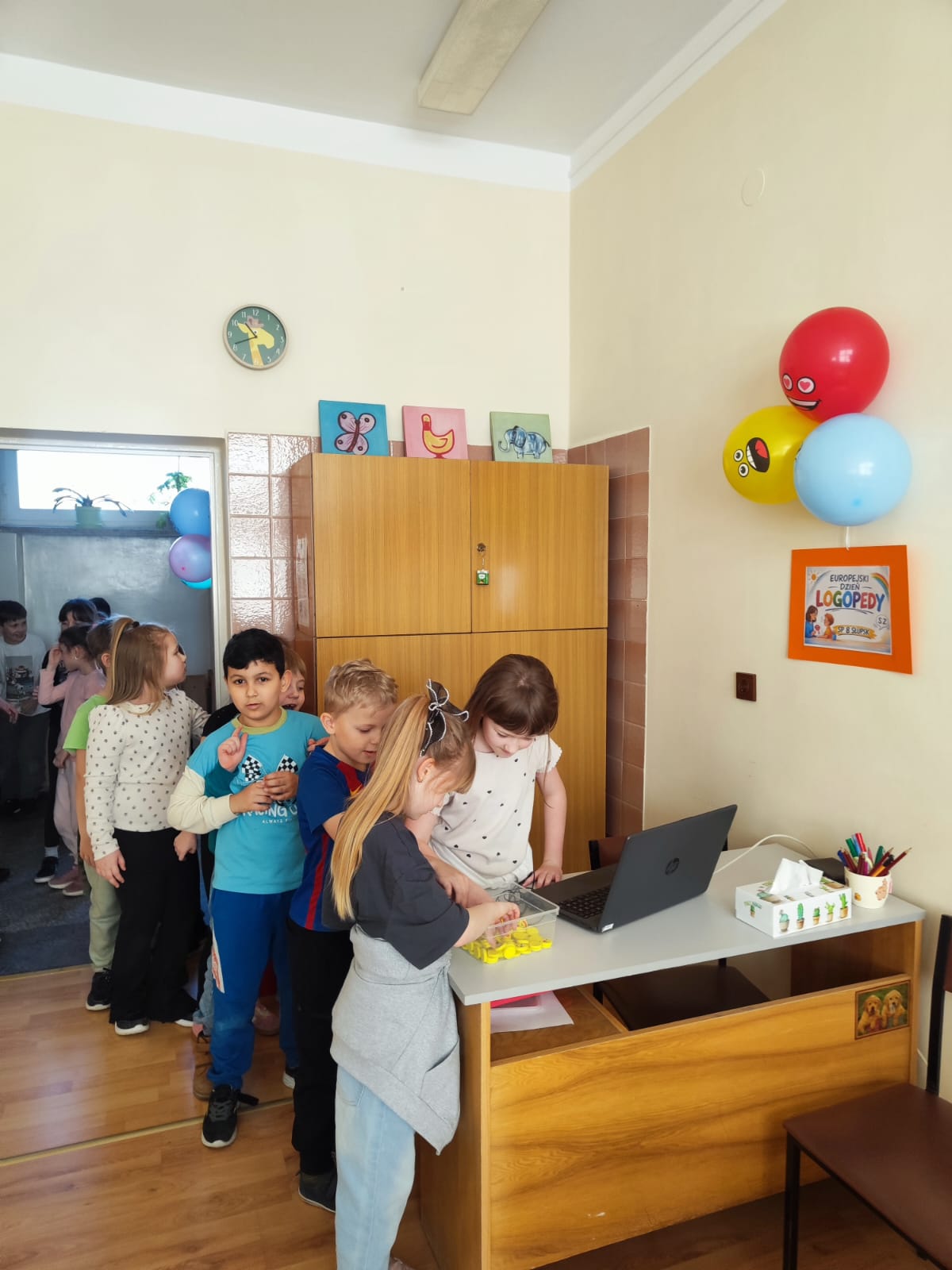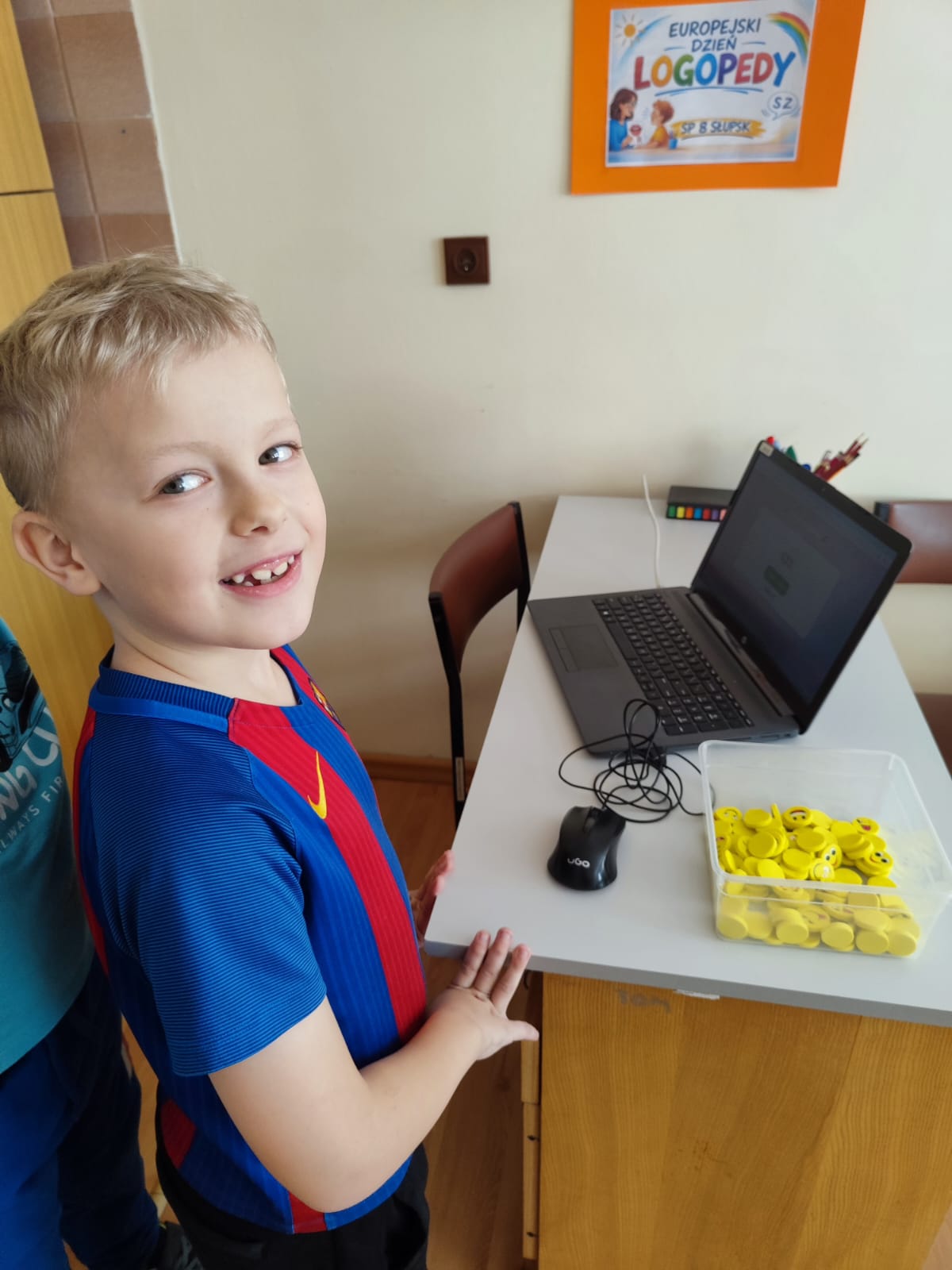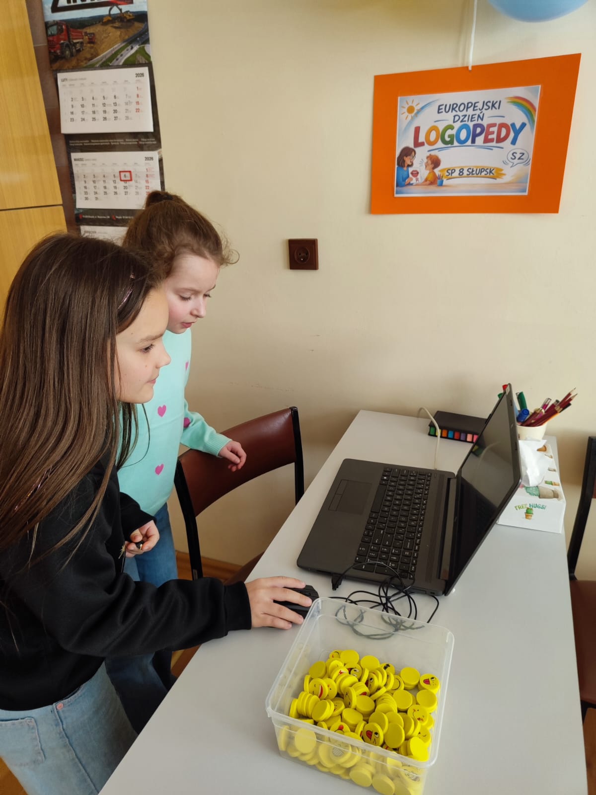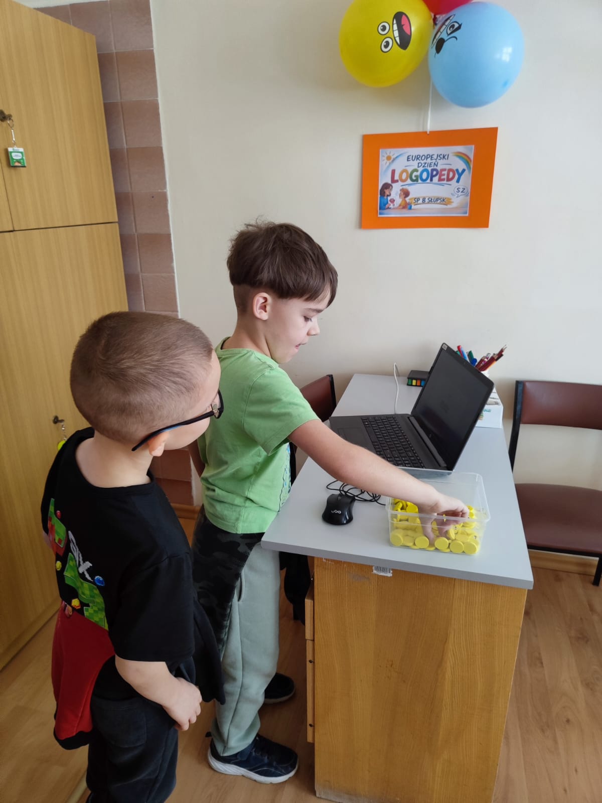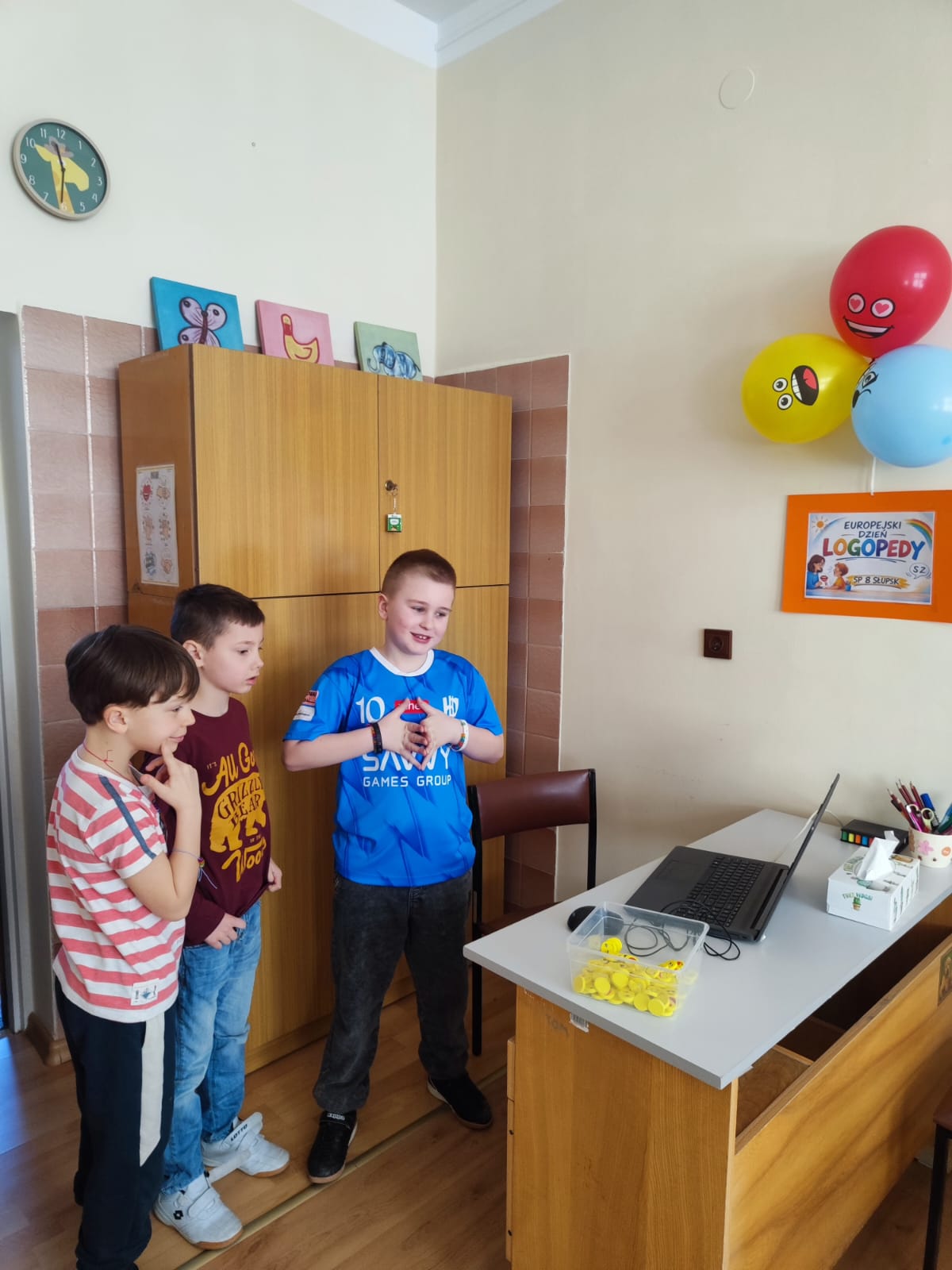 Podczas przerw uczniowie odwiedzali gabinet logopedyczny, gdzie losowali sylabę i wykonywali związane z nią zadanie, np. podawali słowo rozpoczynające się lub kończące na daną sylabę. Na chętnych i odważnych uczestników czekała także drobna niespodzianka – gumka do zmazywania ze śmieszną minką.