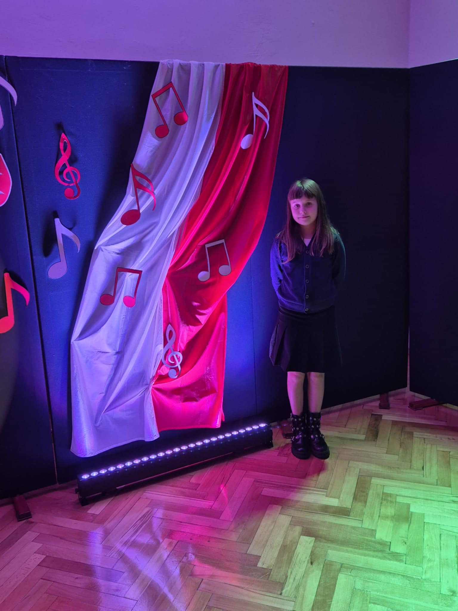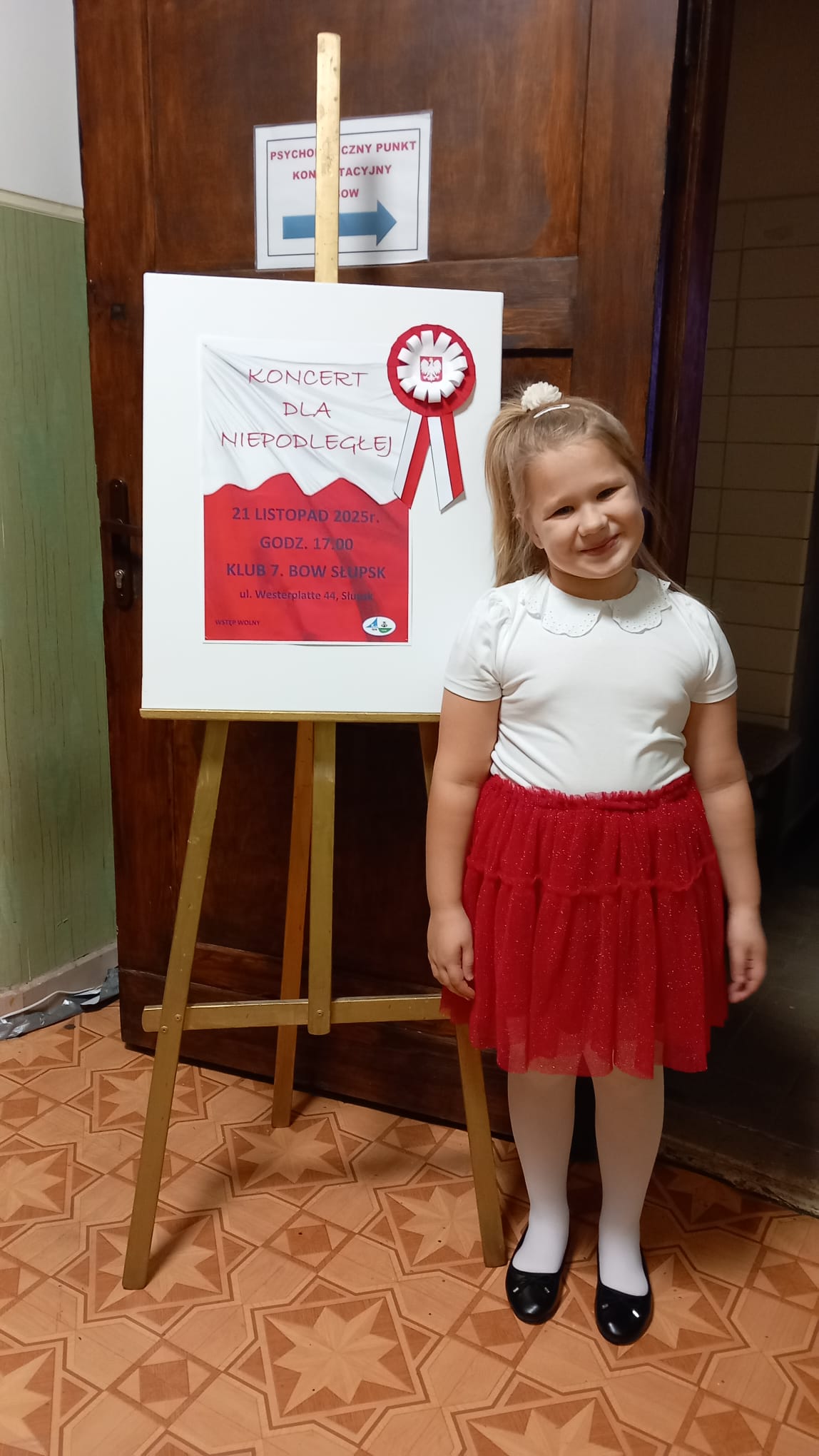 w Słupsku z okazji Święta Odzyskania Niepodległości „Dla Niepodległej”. Dziewczynki recytowały wiersze, za które otrzymały nagrody w X Przeglądzie Twórczości Dziecięcej i Młodzieżowej „Błękitna Apaszka 2025”. Koncert był na wysokim poziomie. Zaproszone dzieci miały możliwość zaprezentowania swoich talentów w dziedzinie recytacji oraz śpiewu. Postawa występujących artystów oraz ich wielka kultura zasługuje na wielkie brawa. GRATULUJEMY!