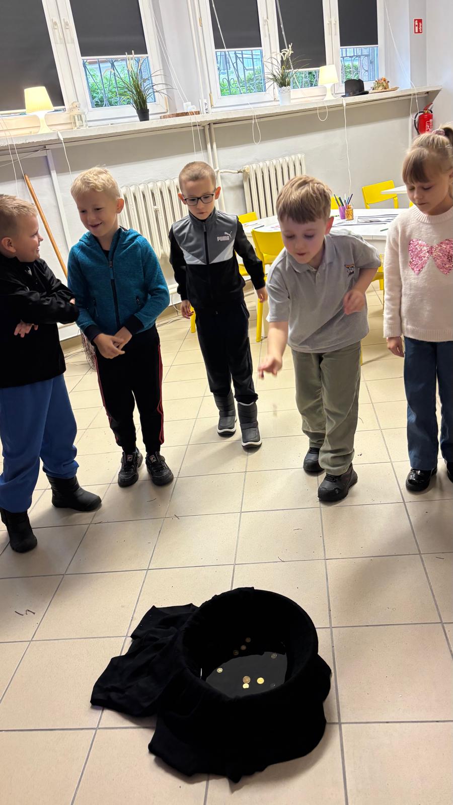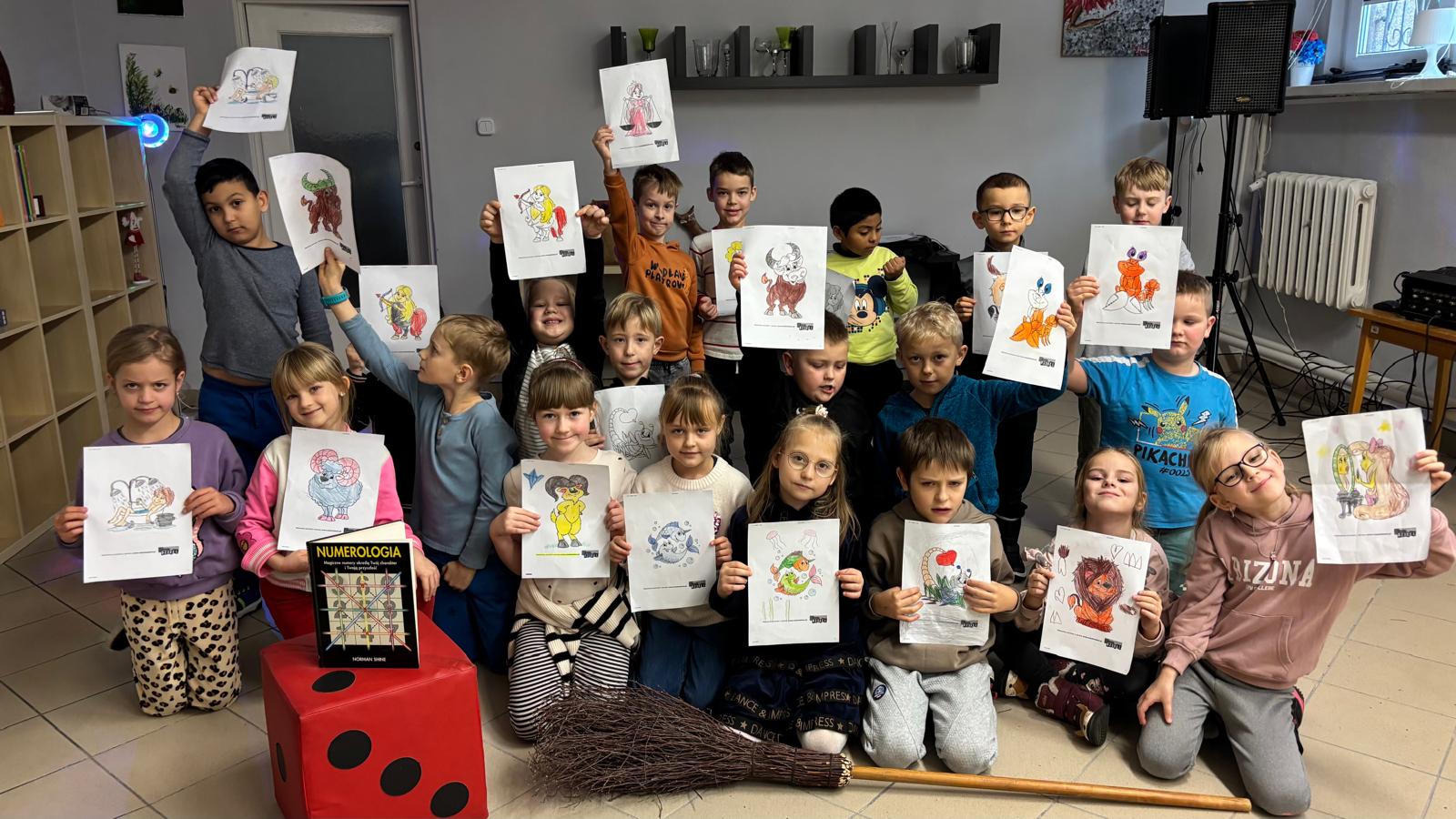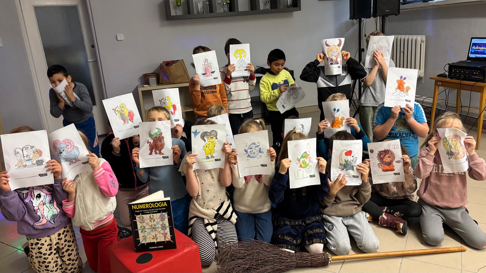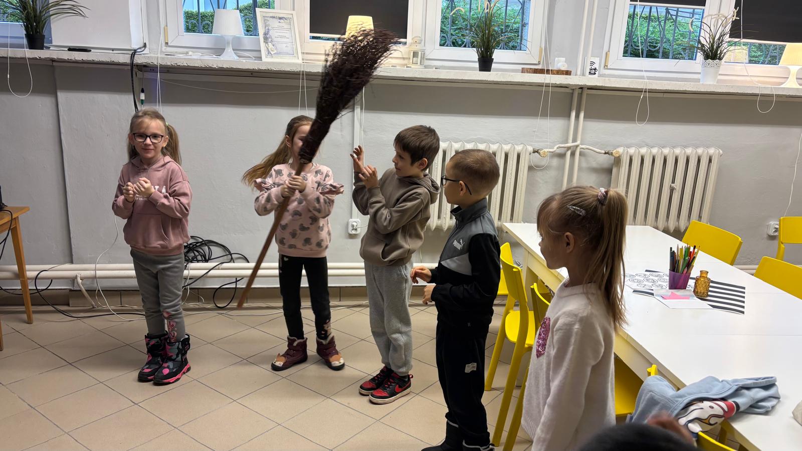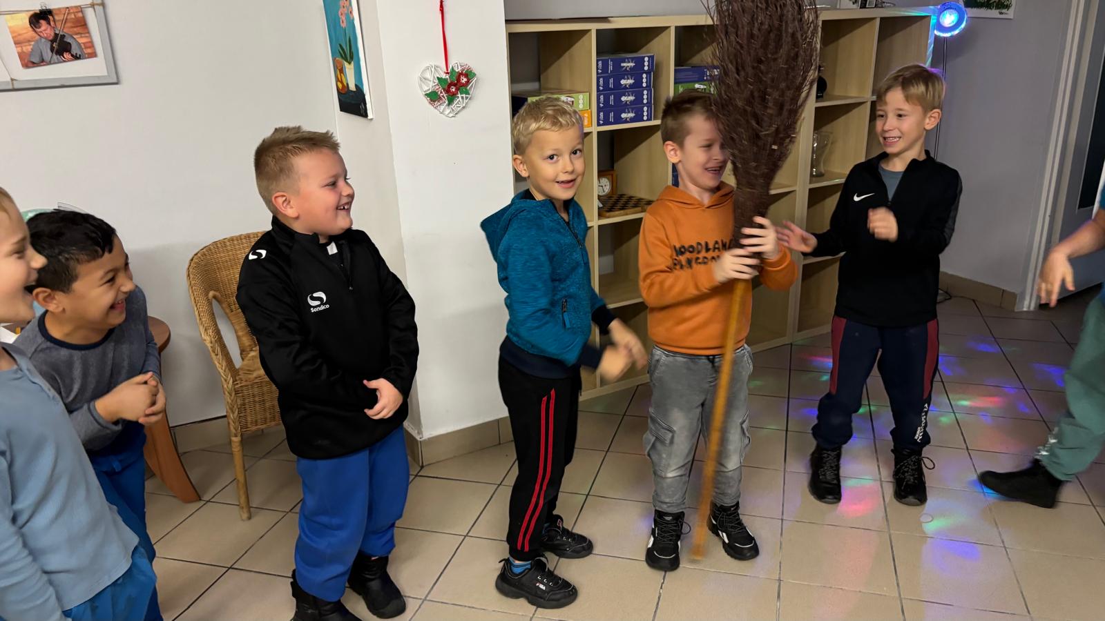 Dzieci uczestniczyły w zabawach i wróżbach andrzejkowych. Dowiedziały się, kim mogą zostać w przyszłości, jaki mają znak zodiaku i co się za tym kryje oraz czy spełnią się ich marzenia. Dzieciom bardzo podobała się wróżba z wrzucaniem grosika do miski z wodą, a także zabawa ruchowa z miotłą. Pod koniec zajęć dzieci kolorowały swój znak zodiaku oraz zostały poczęstowane „magicznym” ciastkiem spełniającym życzenia. Było dużo śmiechu, zabawy i radości. Imprezie wtórowała lubiana przez dzieci muzyka. Radosne, rozbawione i zadowolone dzieci wróciły do szkoły.