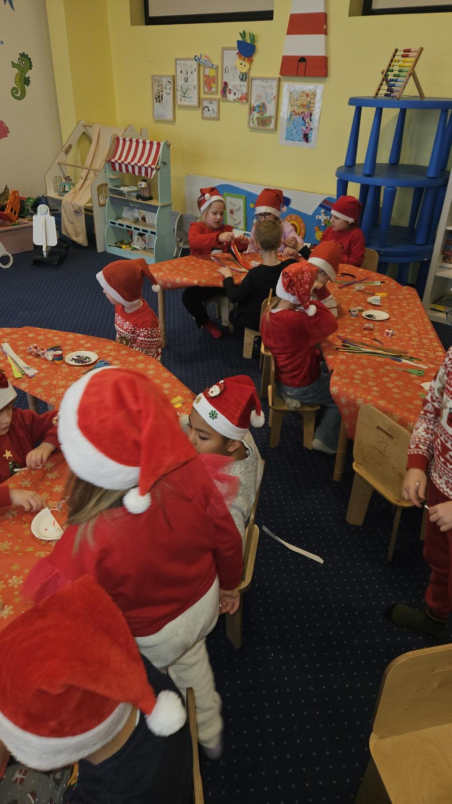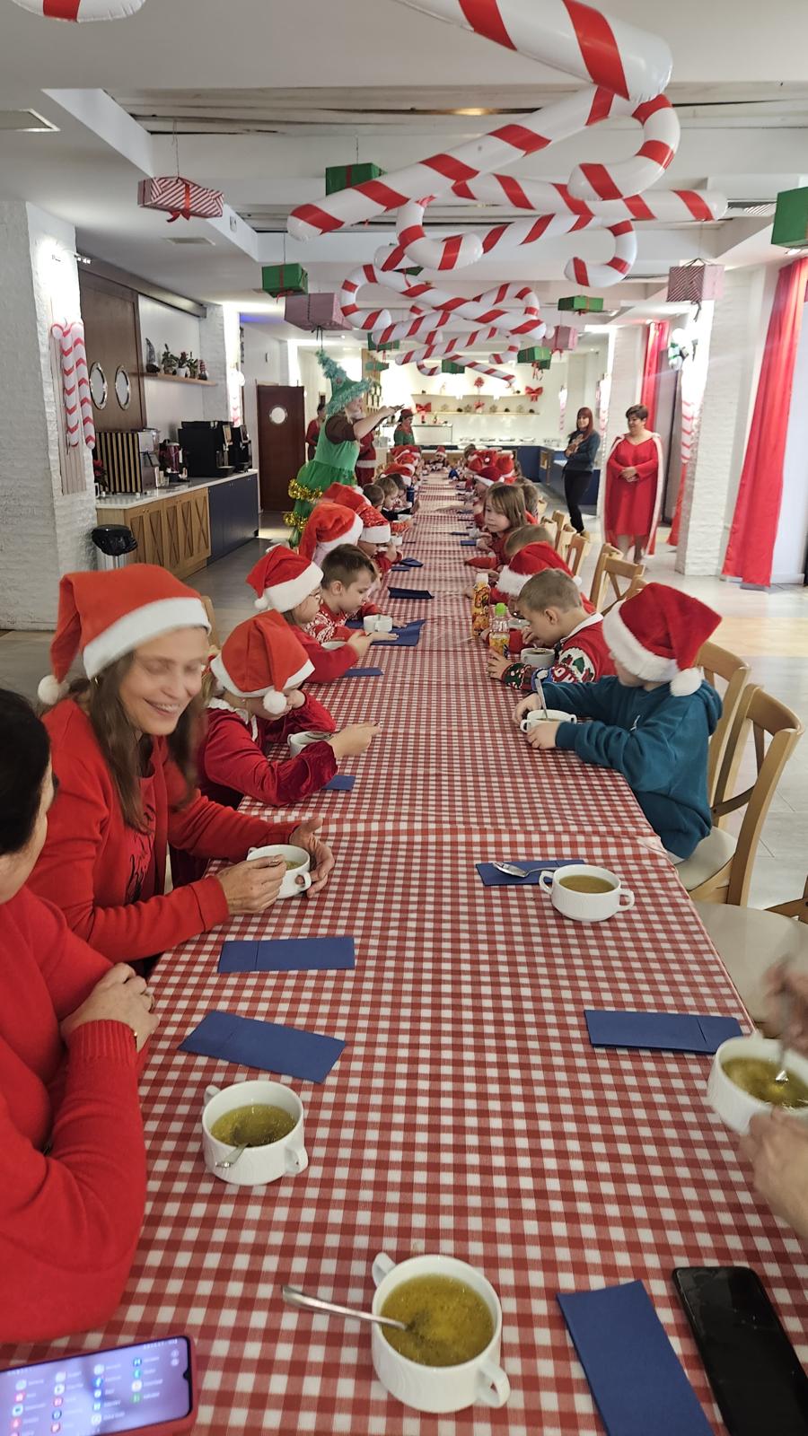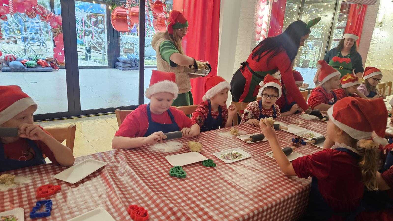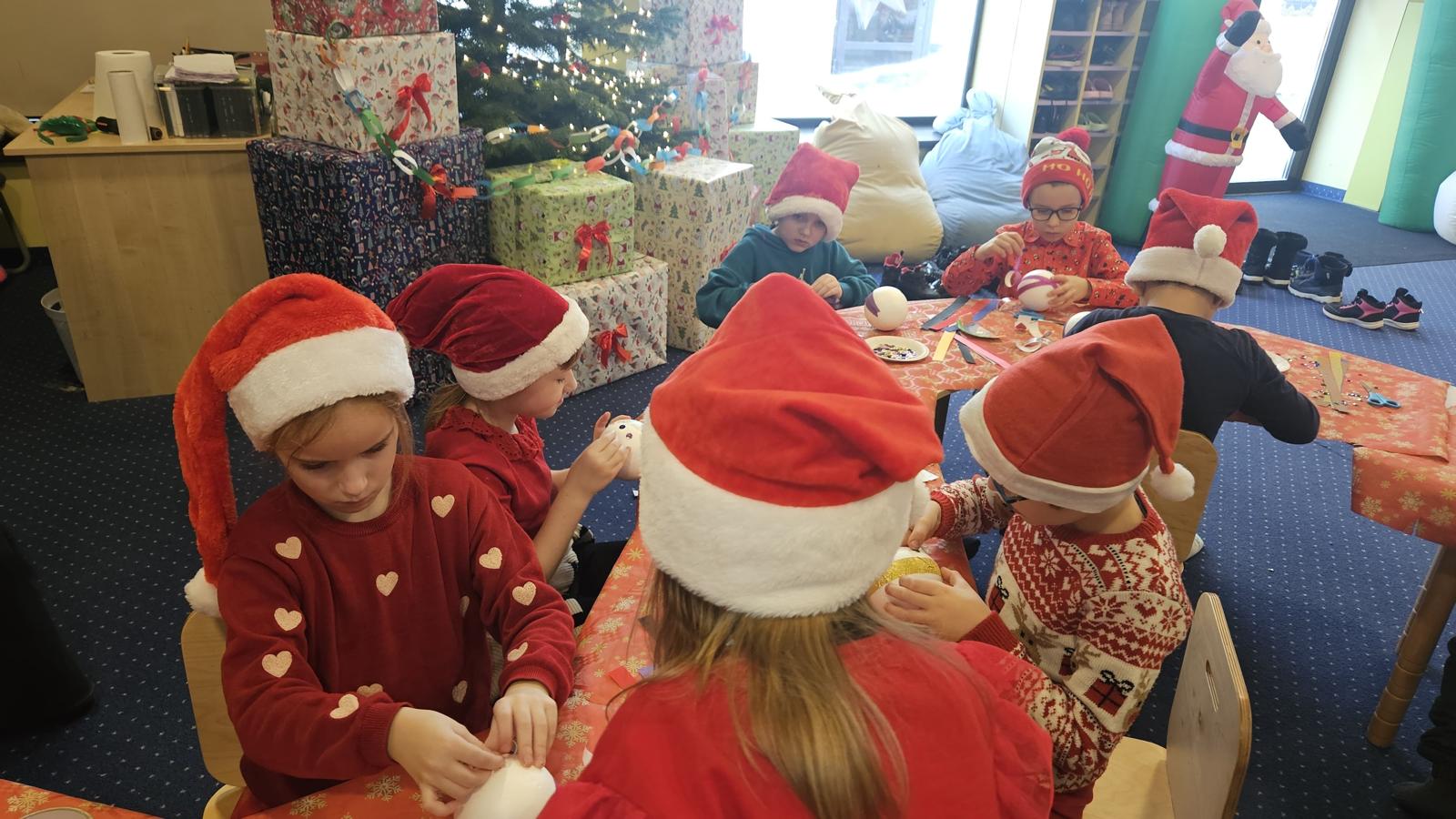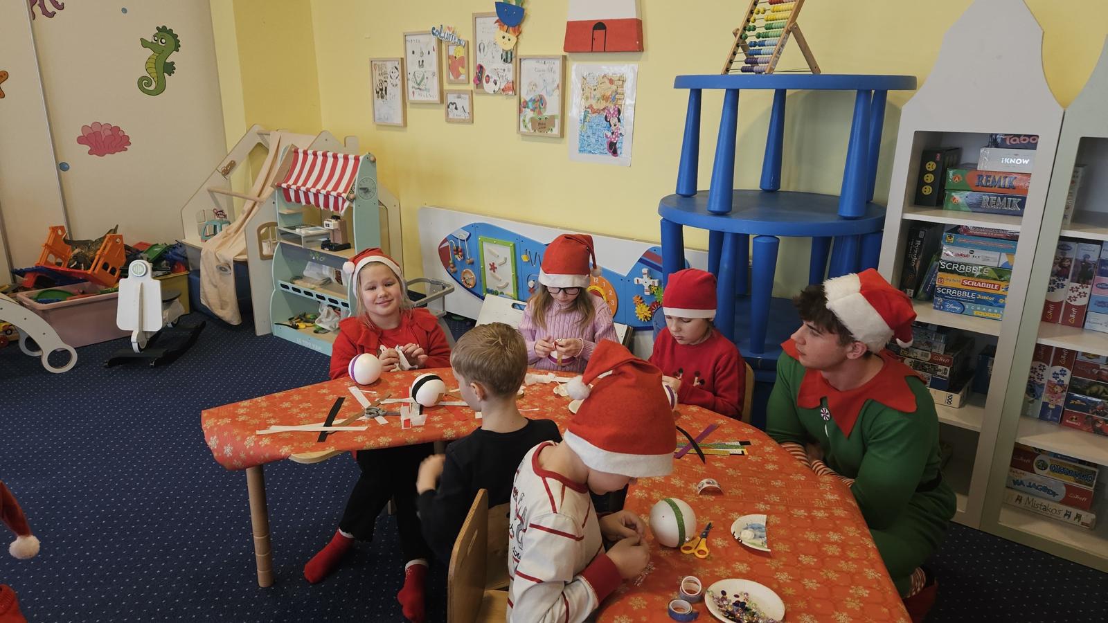 W grudniowej atmosferze dzieci spotkały Świętego Mikołaja i jego wesołe Elfy, które zabrały je w pełną radości świąteczną przygodę. To była wyjątkowa okazja, by dzieci mogły uczyć się przez zabawę i poczuć magię świąt wszystkimi zmysłami. W programie było mnóstwo zajęć i atrakcji, np. pieczenie i dekorowanie pysznych ciasteczek w mikołajowej piekarni, świąteczne warsztaty plastyczne, na których każde dziecko stworzyło swoją bombkę, zabawy i tańce z Elfami w kolorowym Klubiku Mikołaja, ciepły posiłek – rosołek i naleśniki z konfiturą i gorące kakao oraz wyjątkowe spotkanie ze Świętym Mikołajem i pamiątkowe zdjęcia. Na zakończenie wizyty dzieci dostały upominek od św. Mikołaja i jego pomocników Elfów. Szczęśliwe, zadowolone i pełne wrażeń wróciły do Słupska.