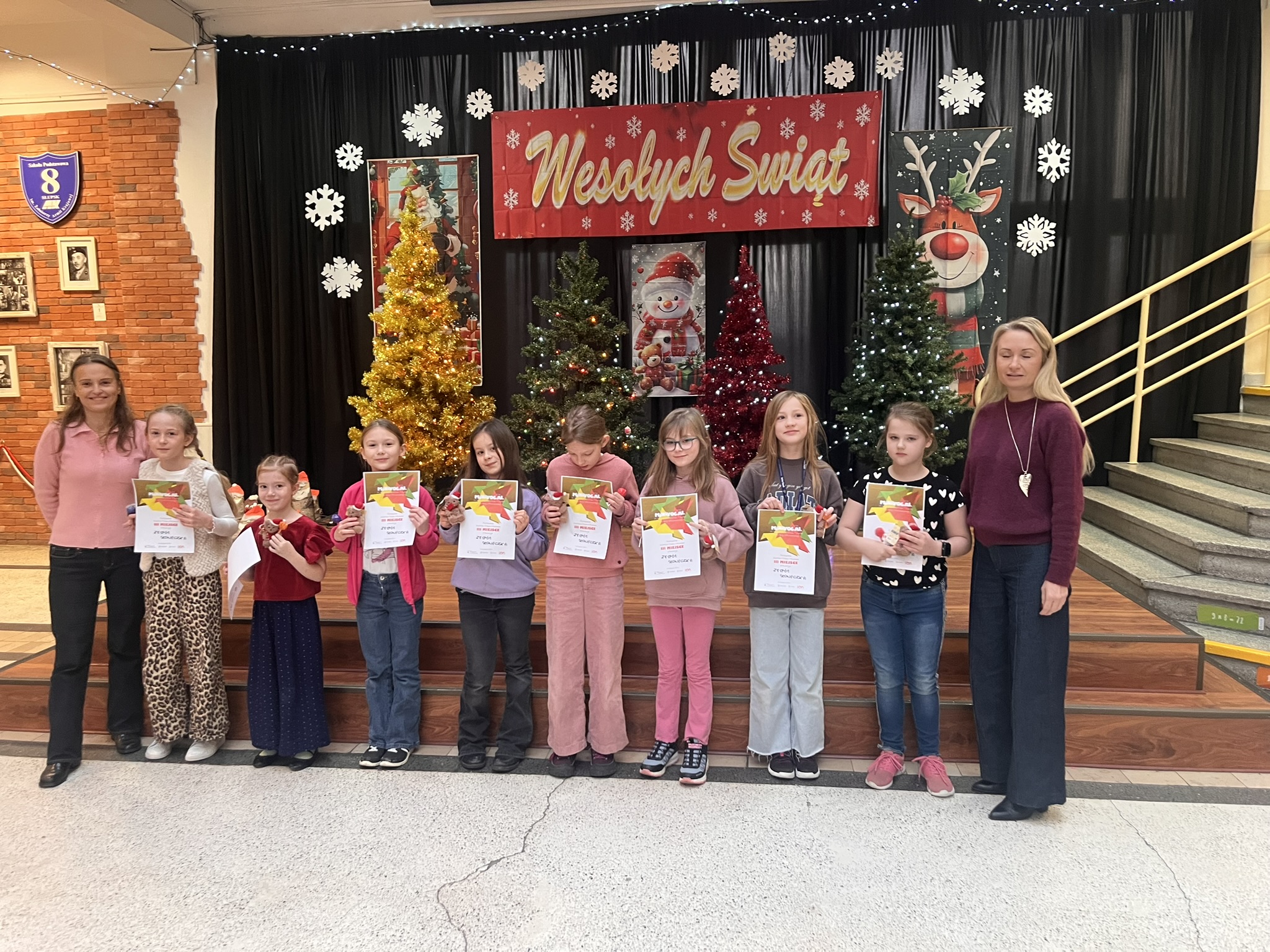 W środę w naszej szkole odbył się apel nagrodowy klas 1-3, podczas którego nagrodzeni zostali uczniowie reprezentujący "ósemkę" w licznych konkursach przedmiotowych i zawodach sportowych.