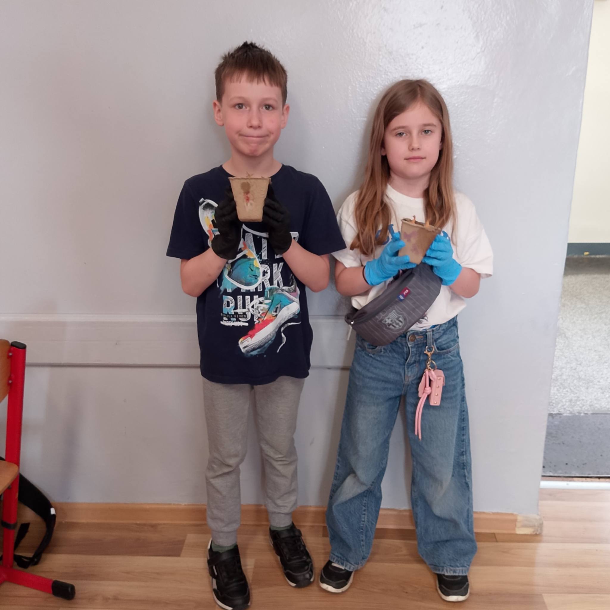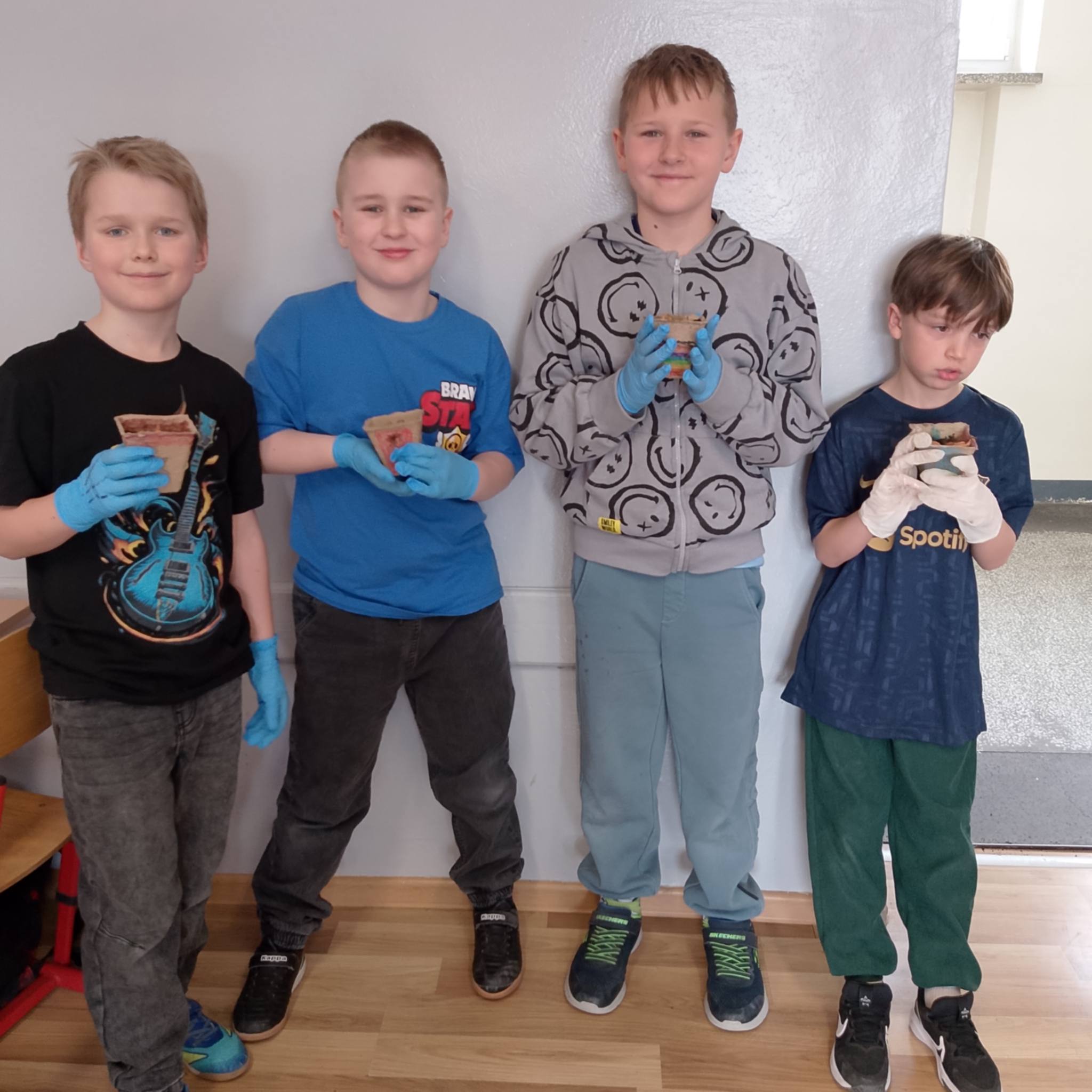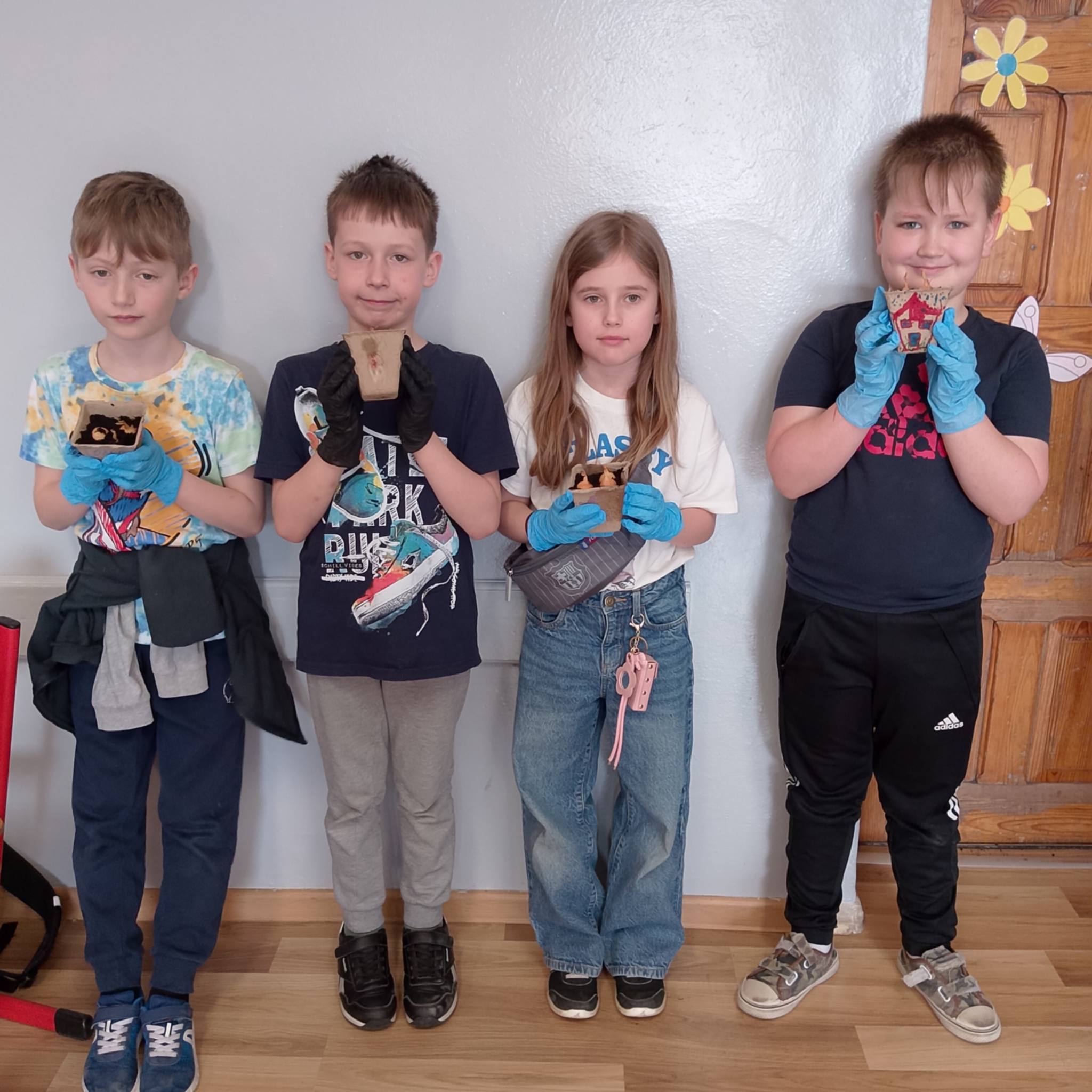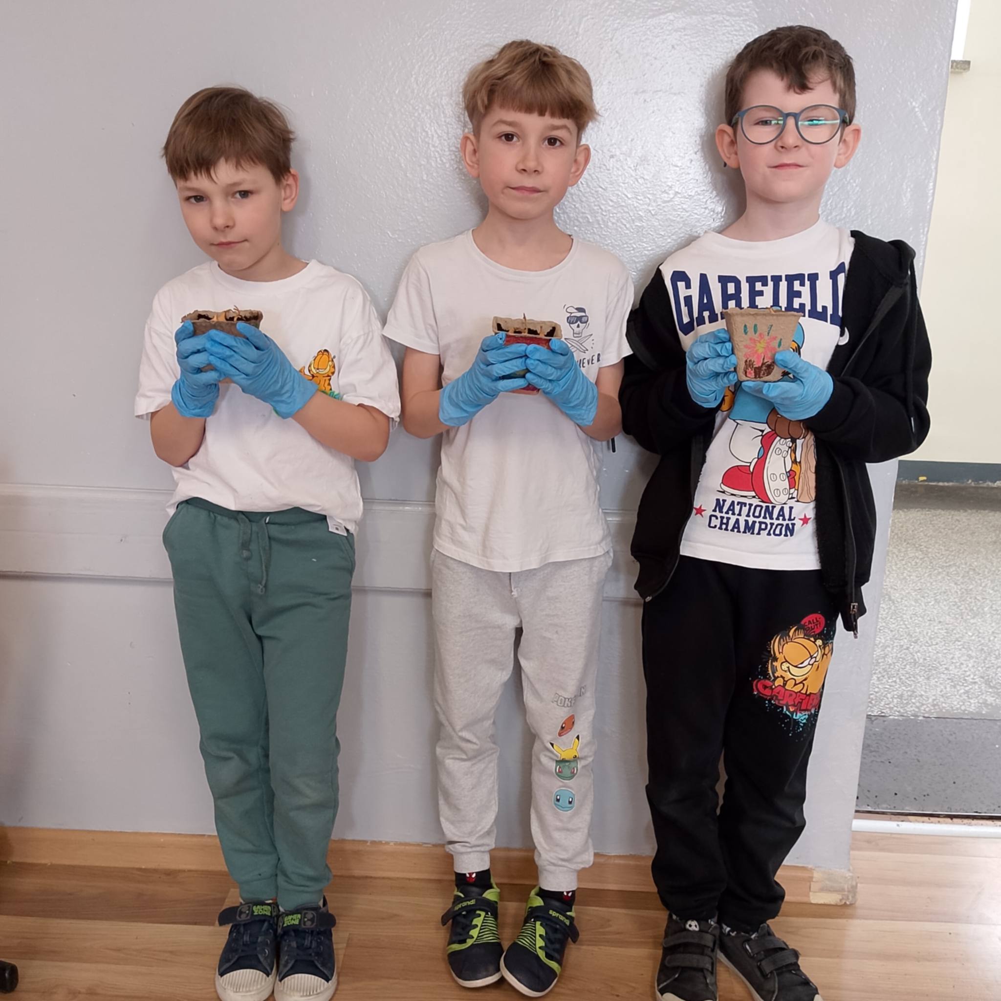 Uczniowie klasy 1c spróbowali swoich sił w sadzeniu cebuli.