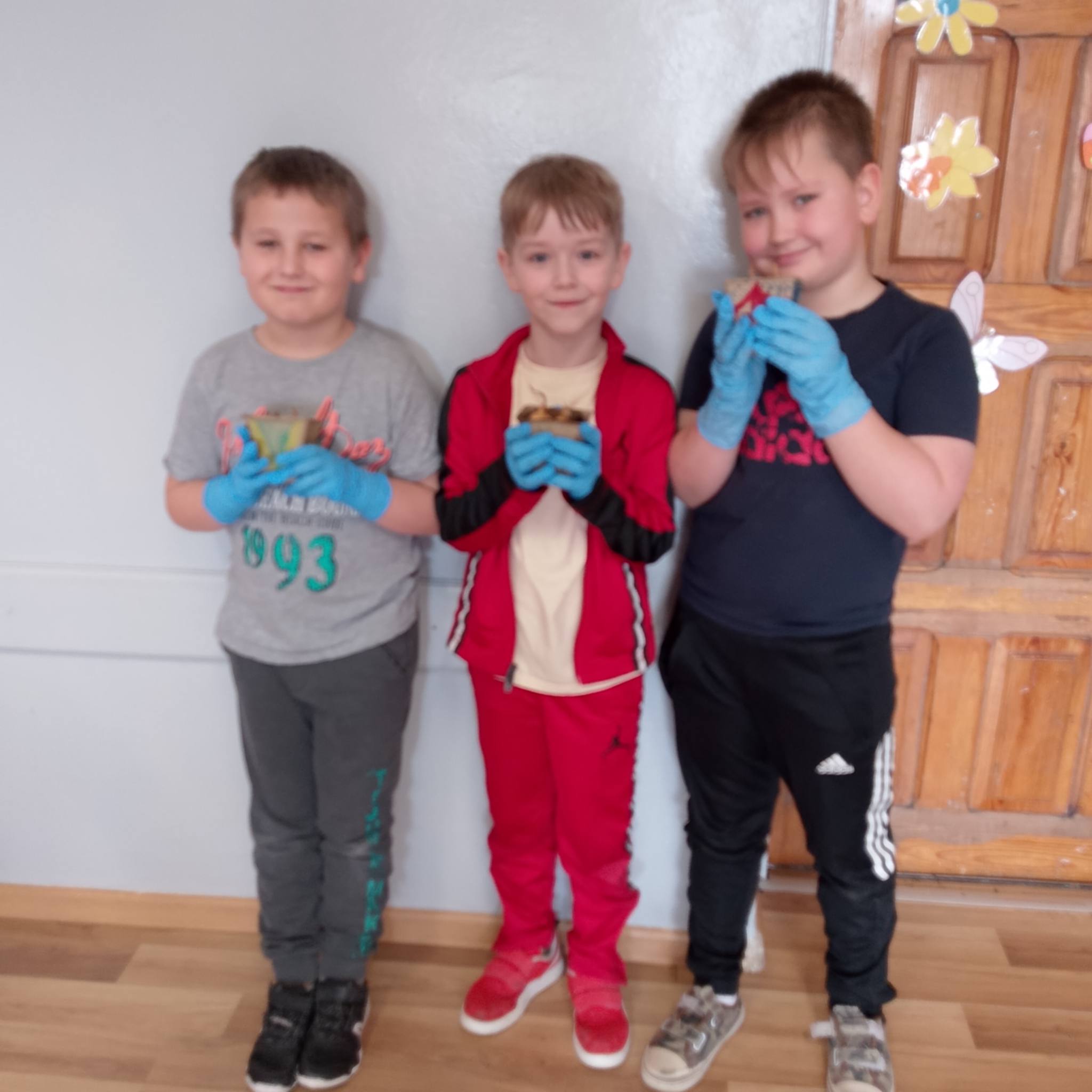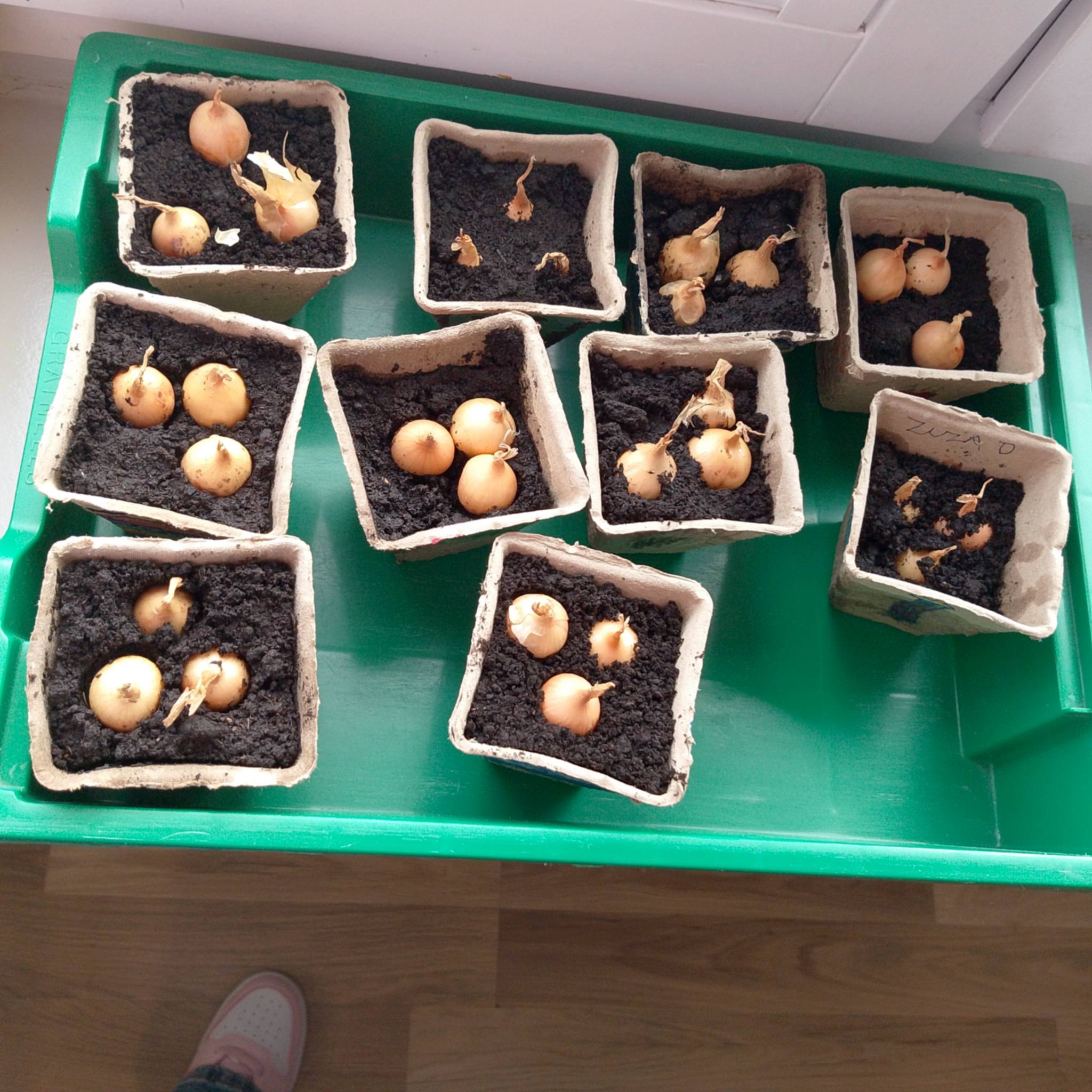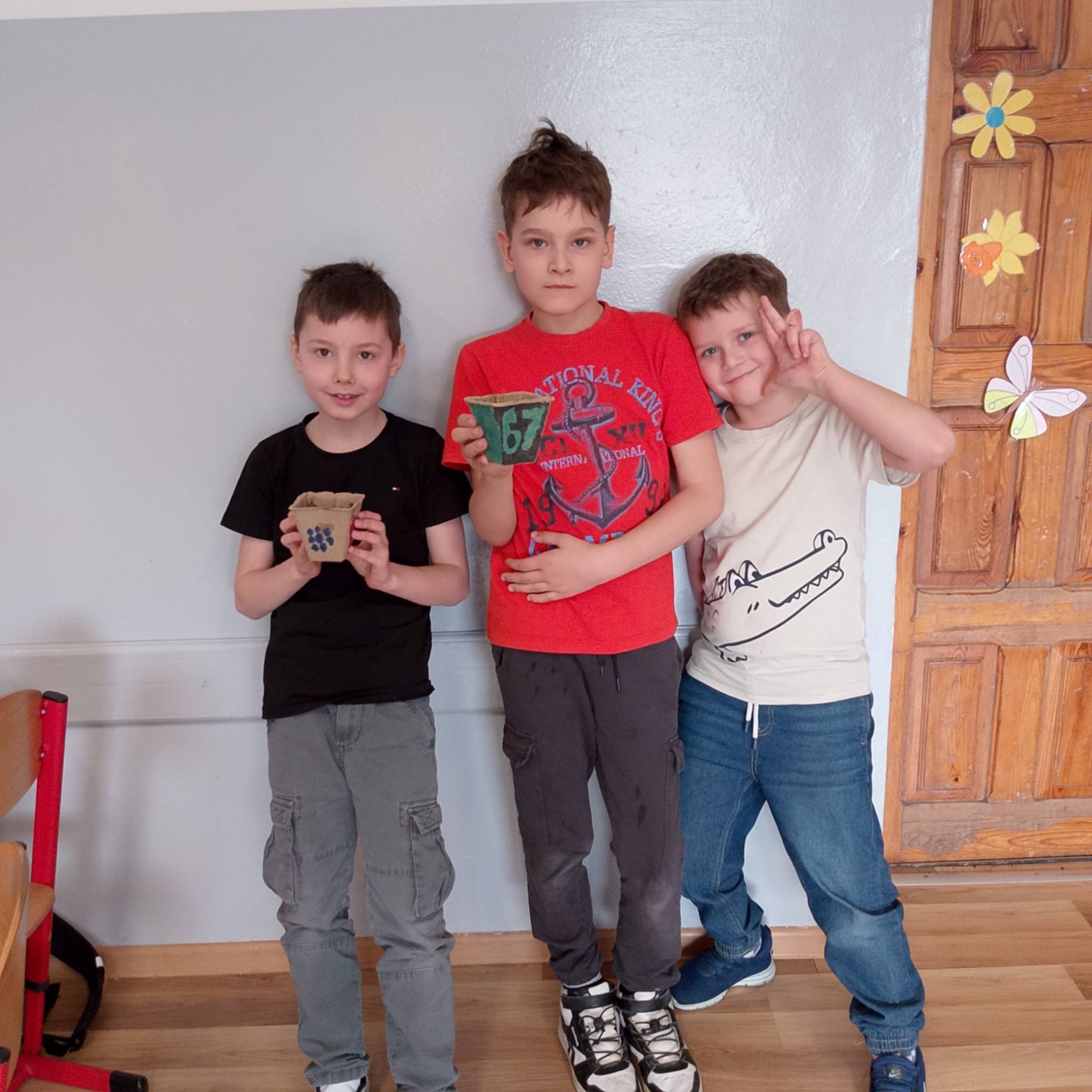 Uczniowie klasy 1c spróbowali swoich sił w sadzeniu cebuli.