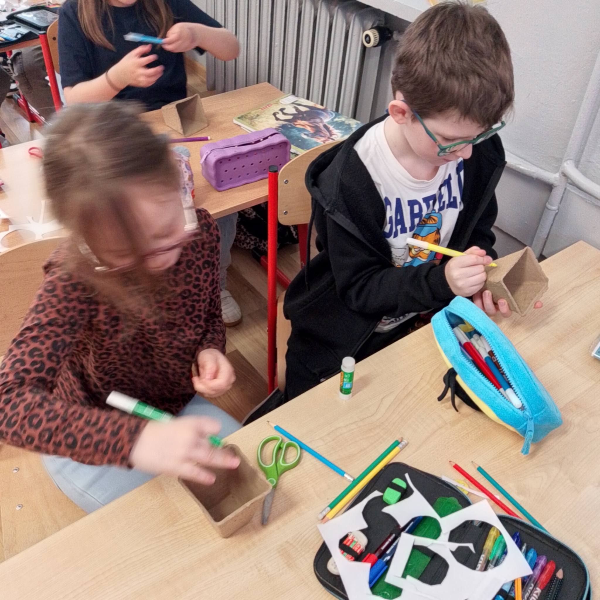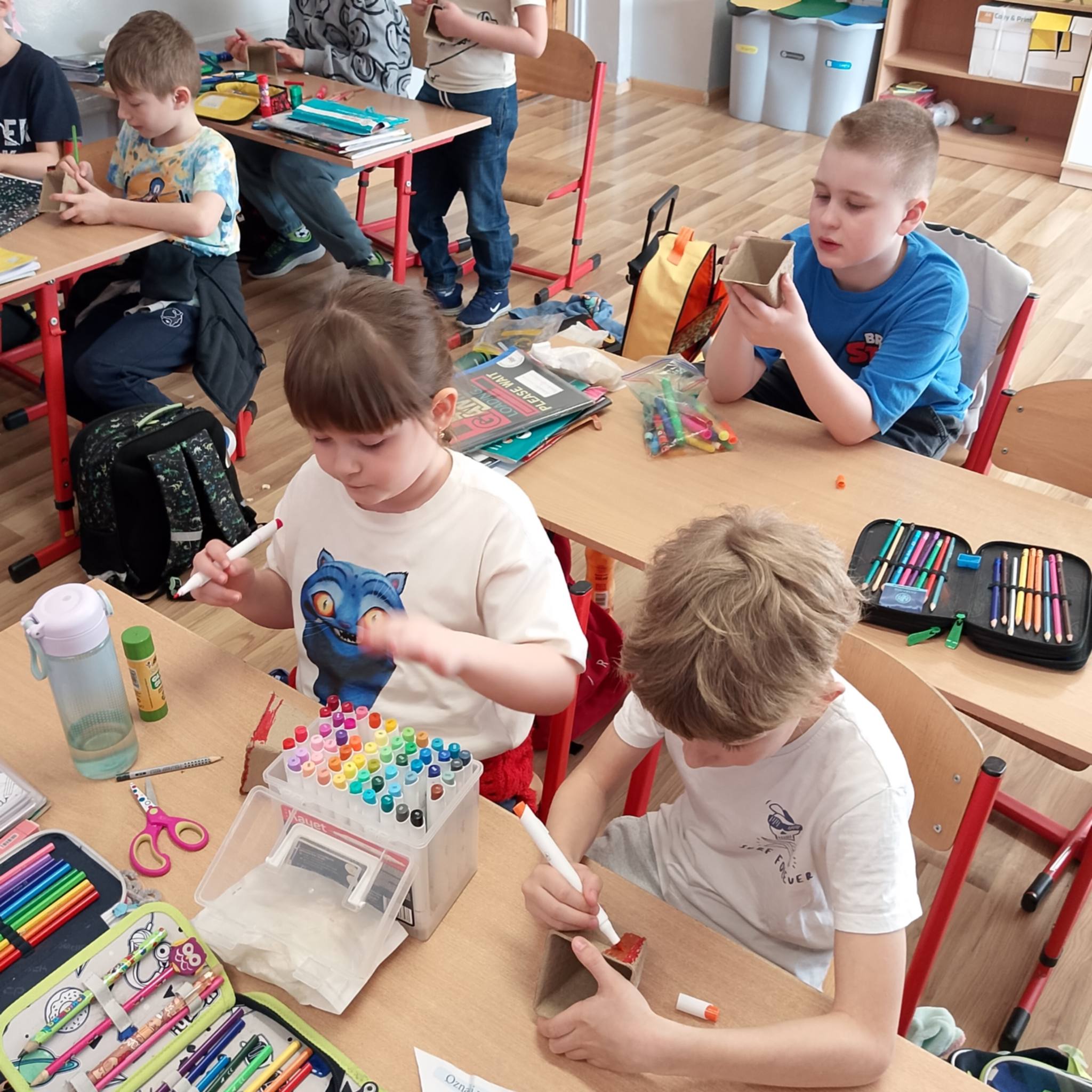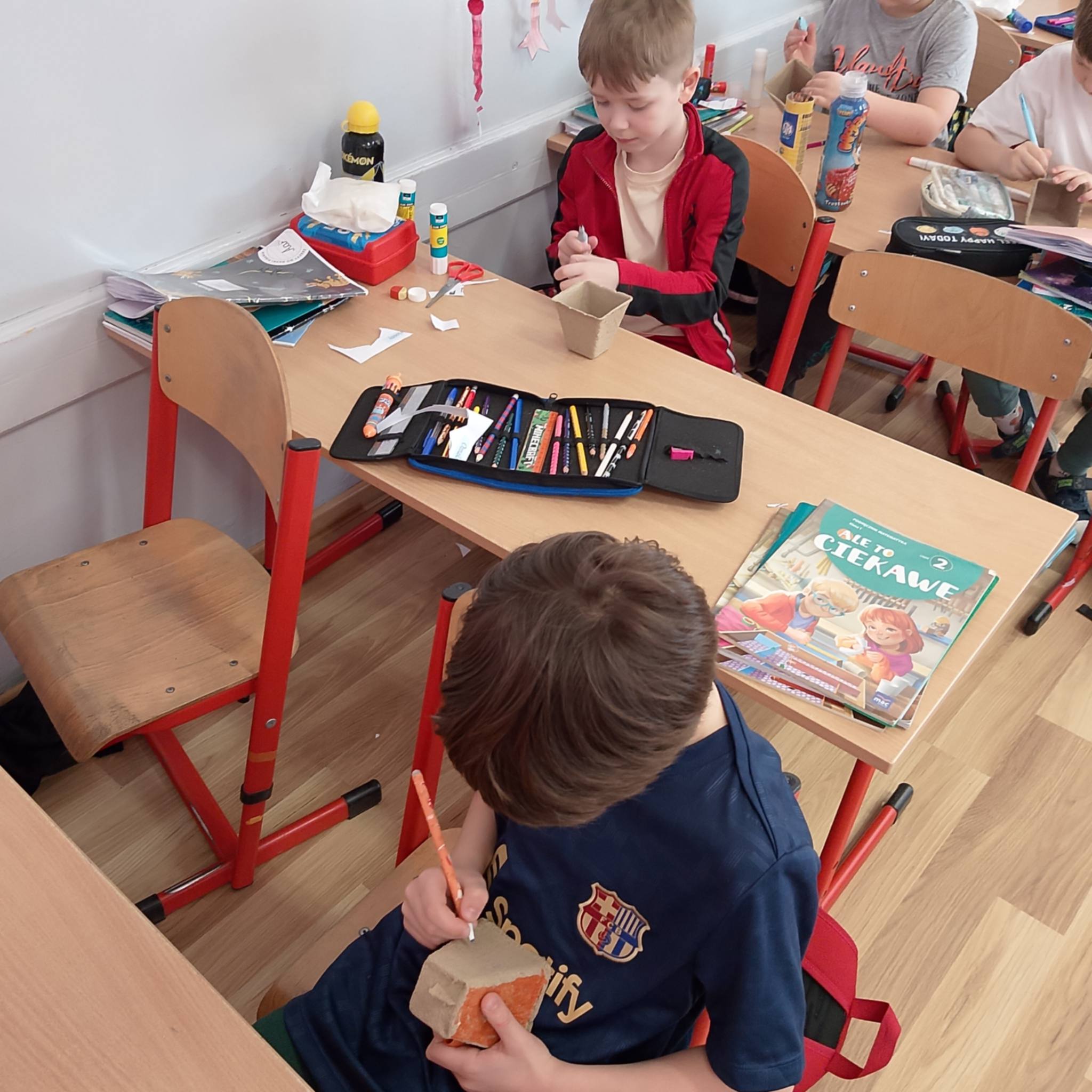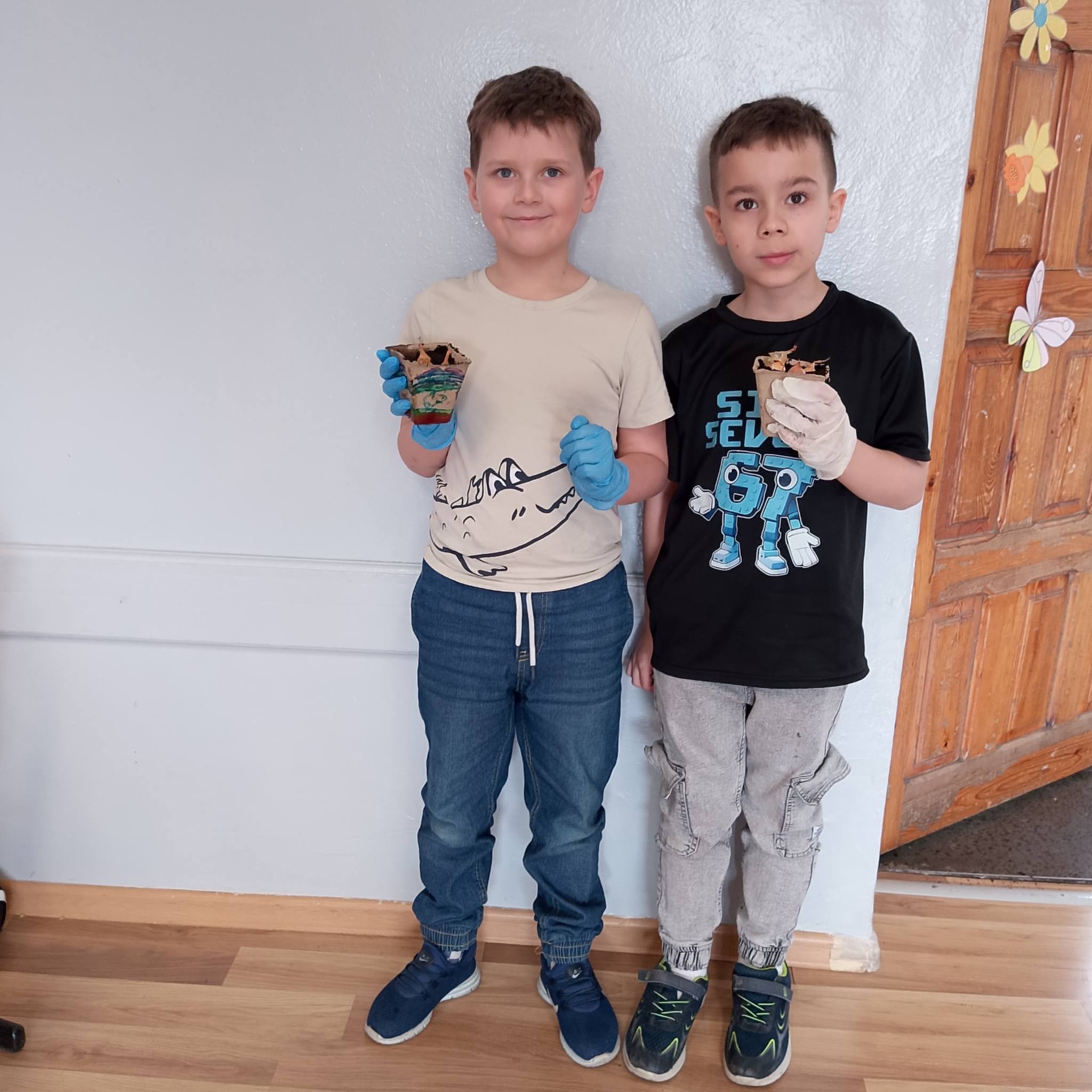 Uczniowie klasy 1c spróbowali swoich sił w sadzeniu cebuli.