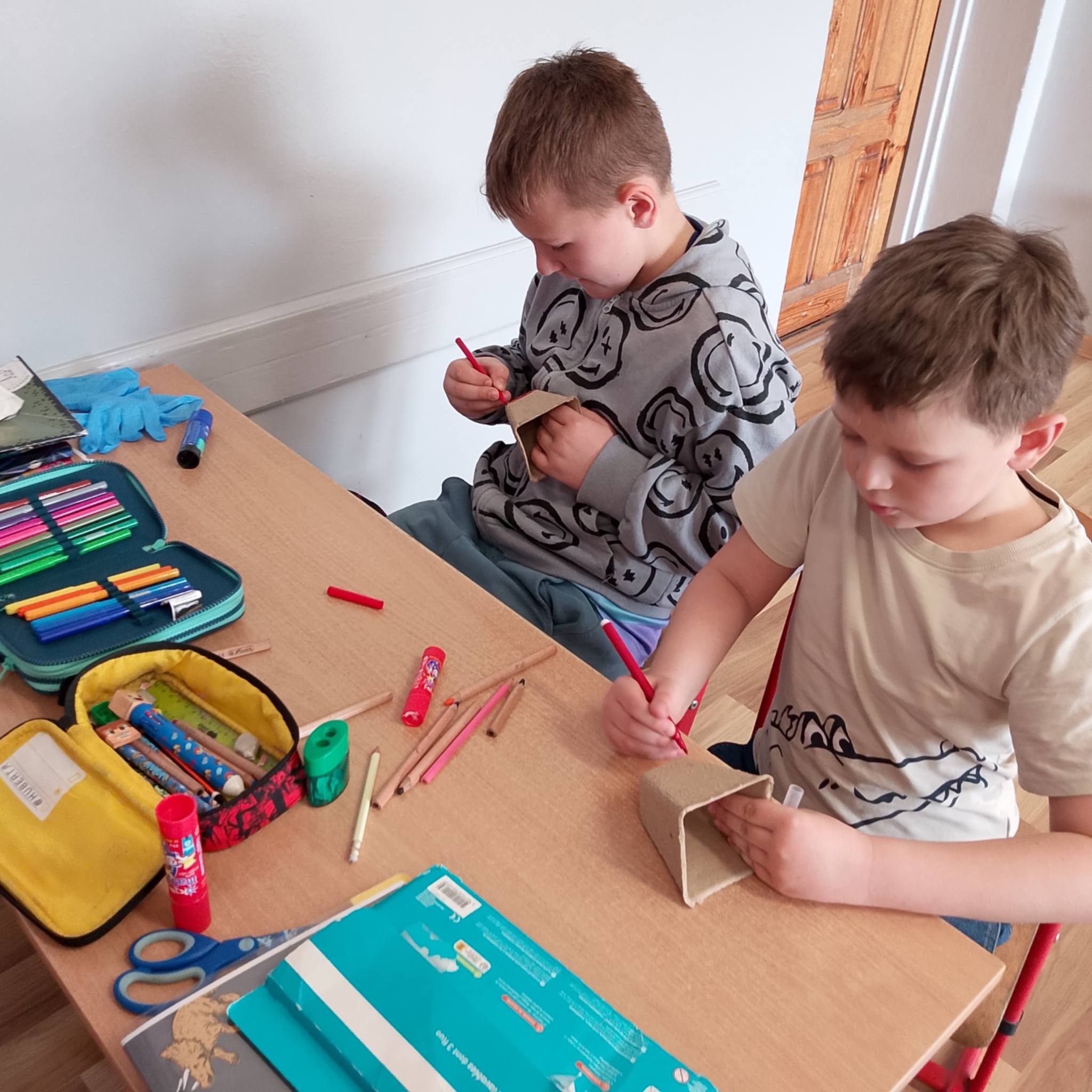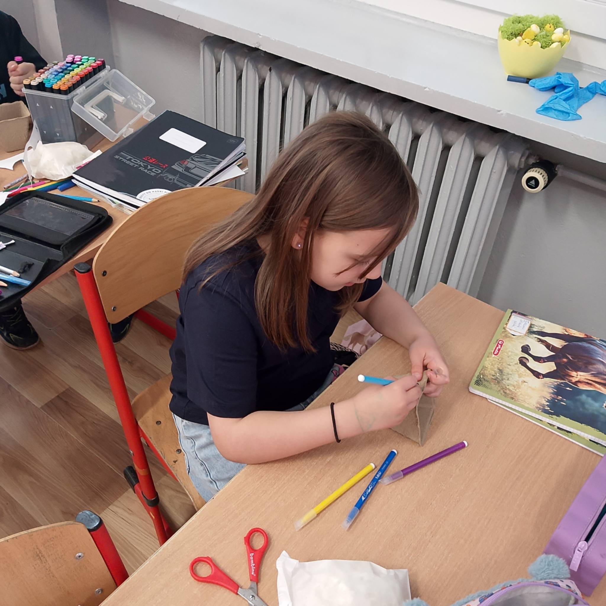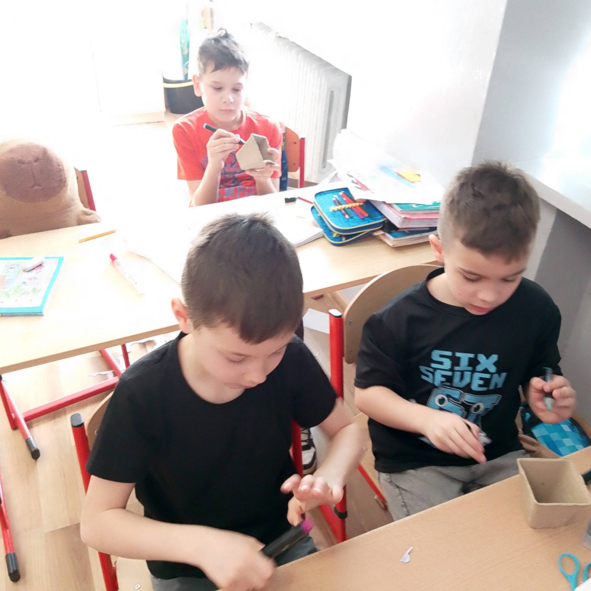 Każde z dzieci samodzielnie ozdobiło doniczkę, następnie zaczęło się sadzenie!!!! Dzieci postępowały ściśle według wskazówek, dzięki czemu cebulki szybko zostały zasadzone. Wszystkie cebule postawiliśmy na parapecie, aby słońce na nie świeciło, by mógł wyrosnąć szczypiorek.