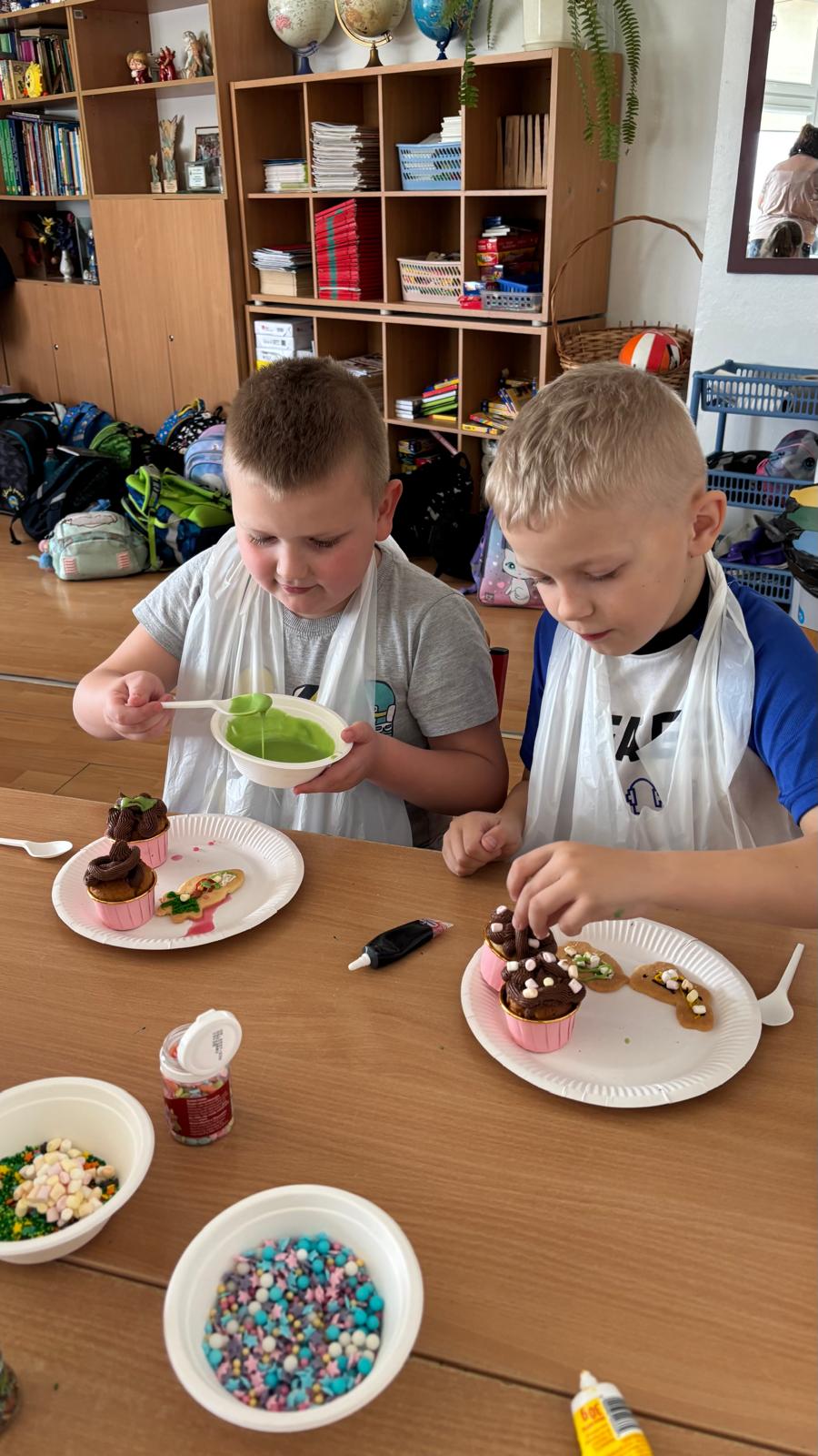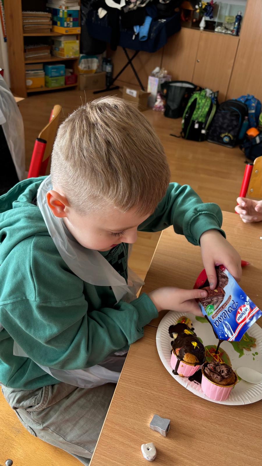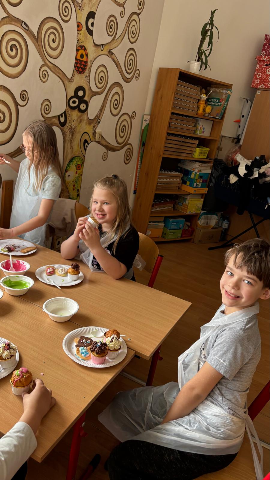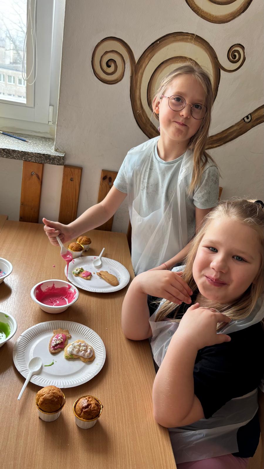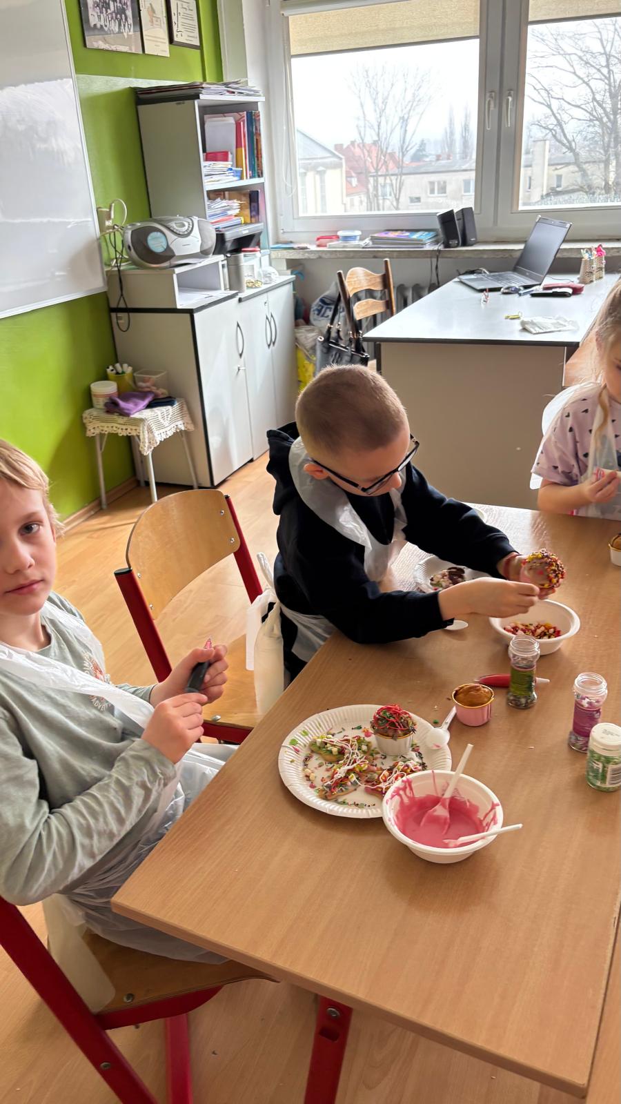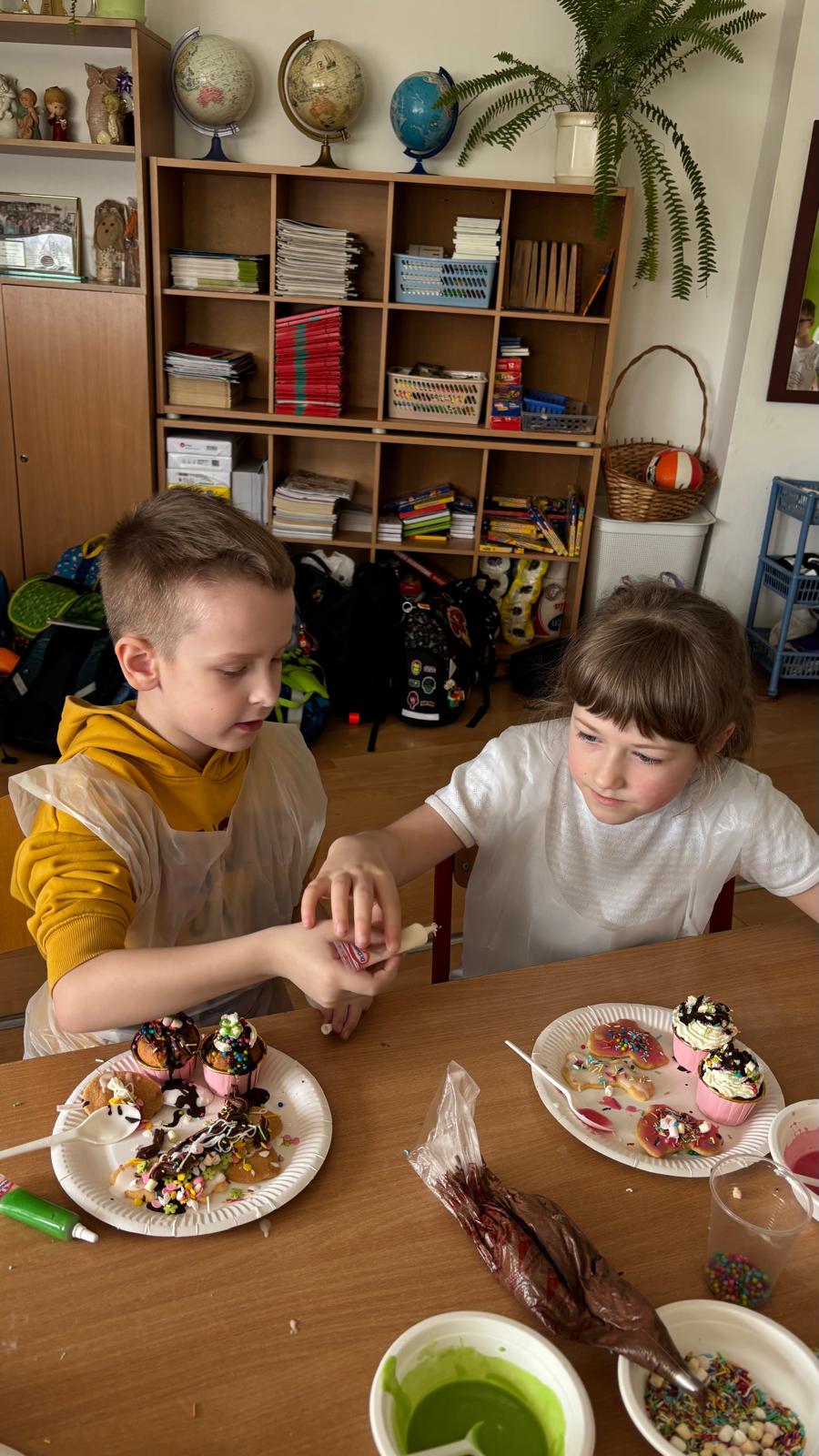 01.04.2026 r. w klasie 1b zapachniało Wielkanocą. Mamy dzieci z klasy zorganizowały warsztaty ozdabiania wielkanocnych ciastek i babeczek upieczonych wcześniej w domu.
