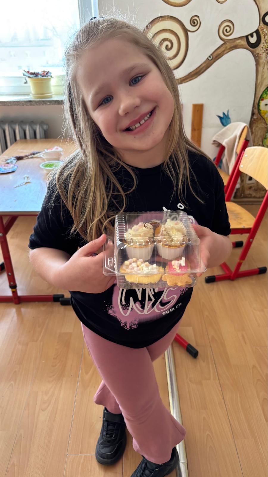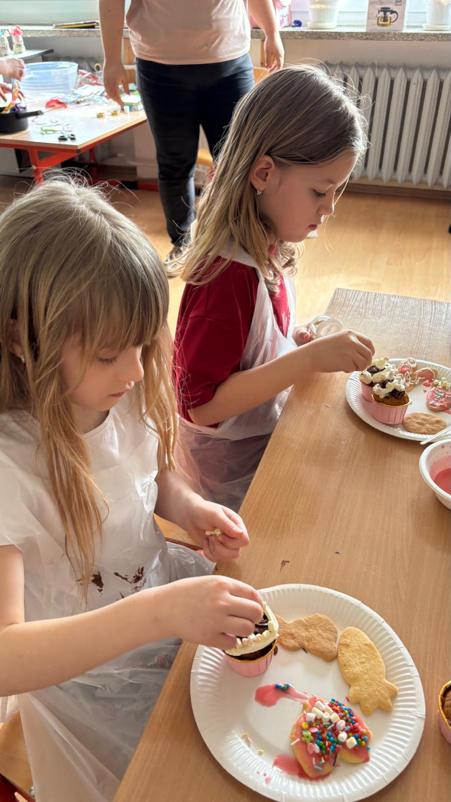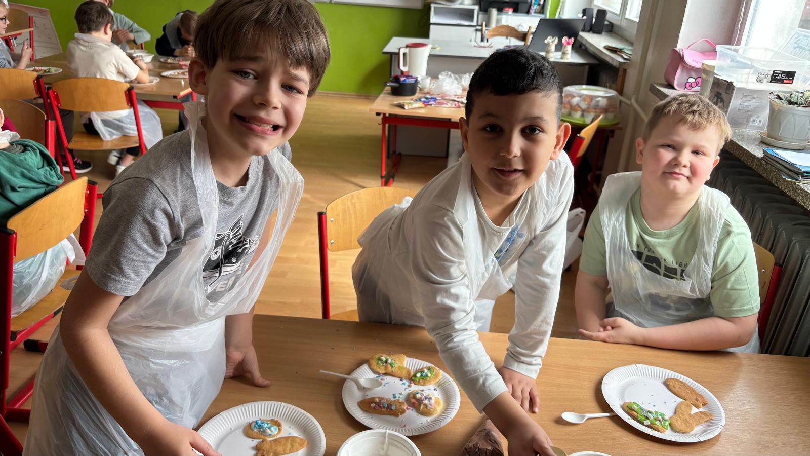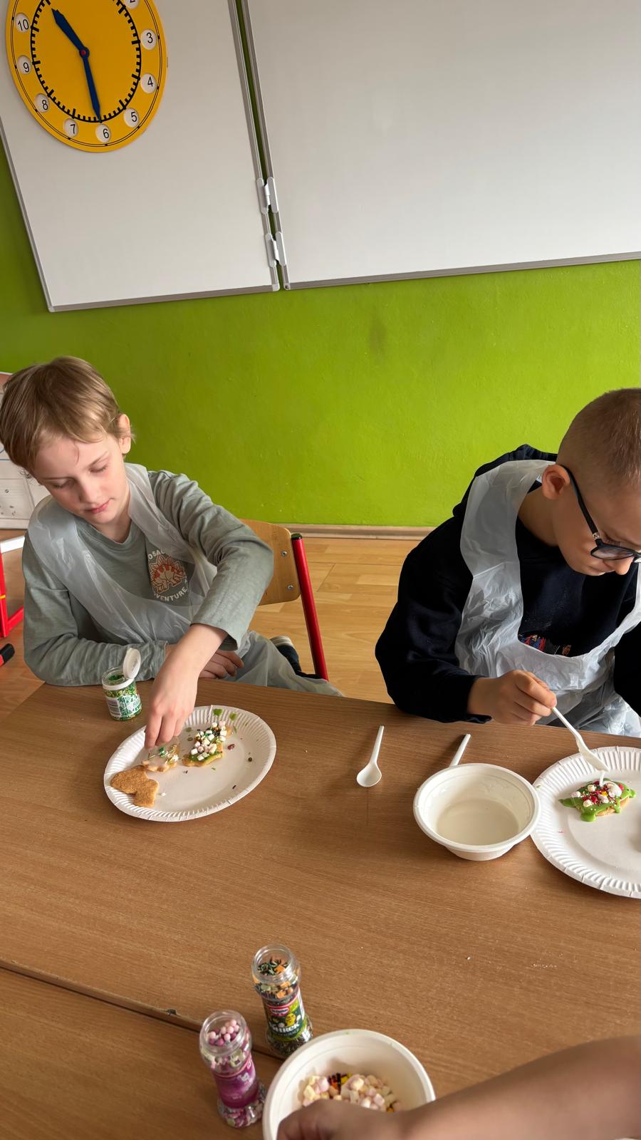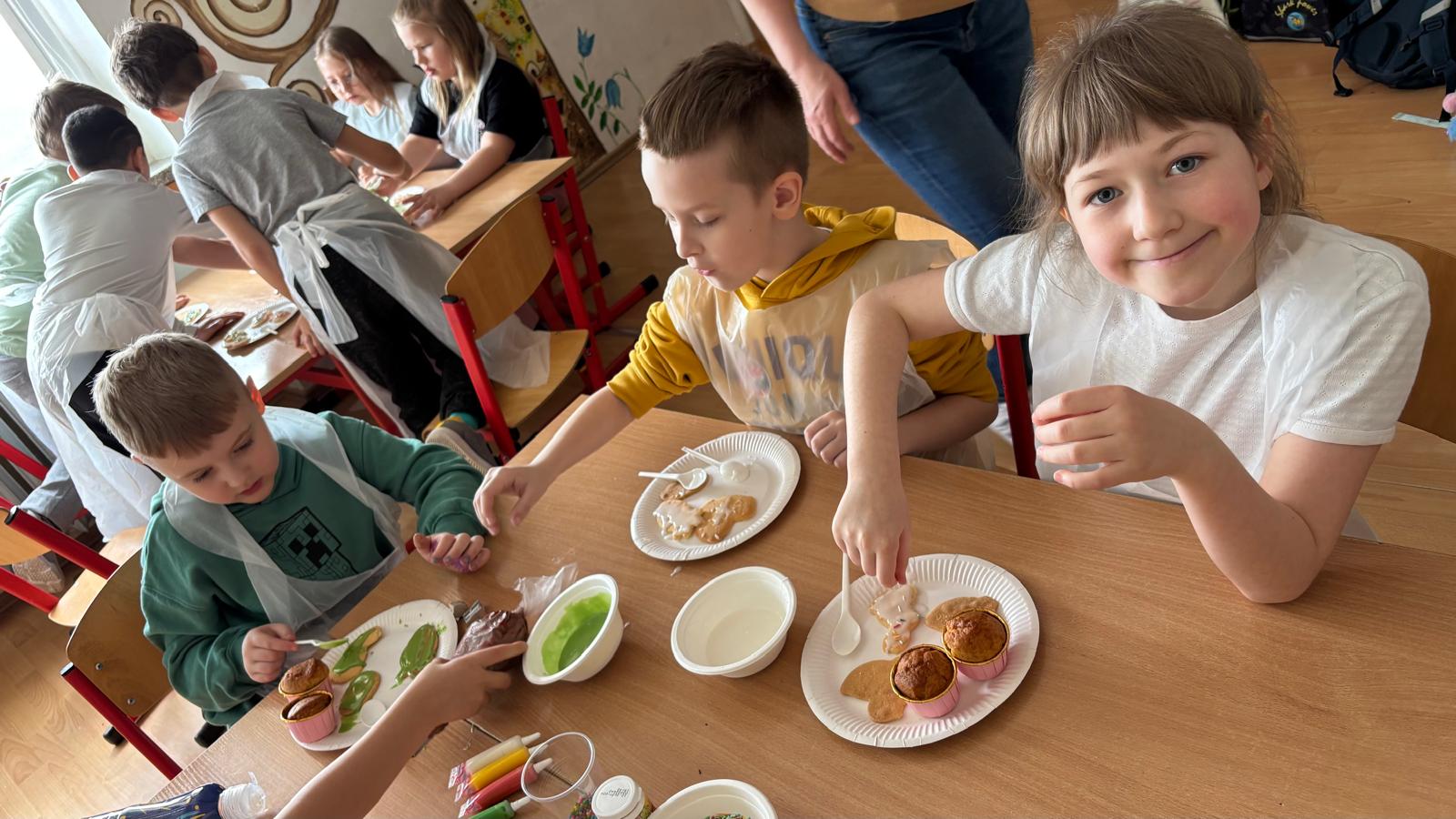 01.04.2026 r. w klasie 1b zapachniało Wielkanocą. Mamy dzieci z klasy zorganizowały warsztaty ozdabiania wielkanocnych ciastek i babeczek upieczonych wcześniej w domu.