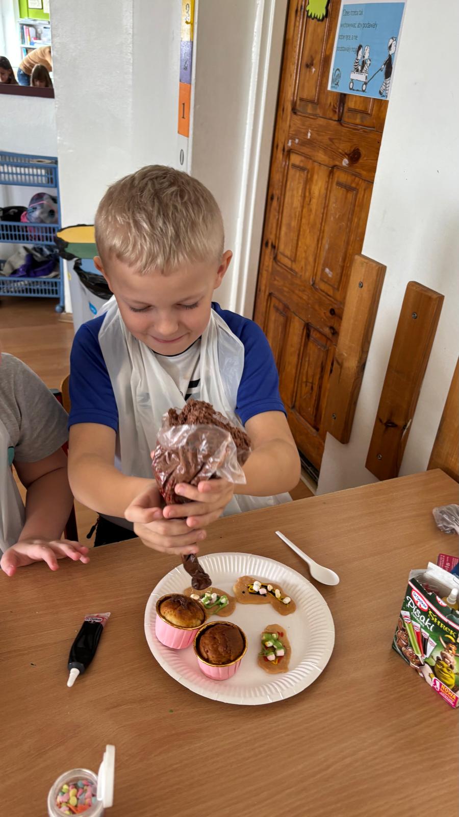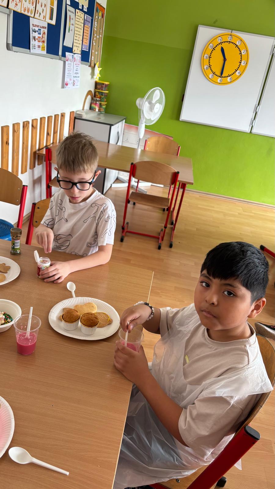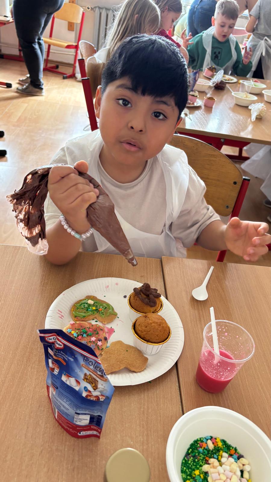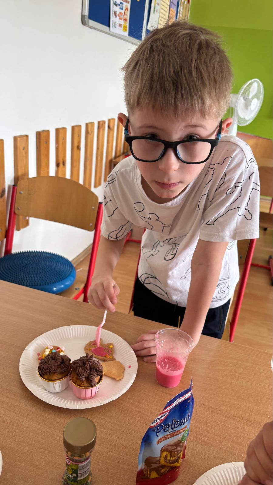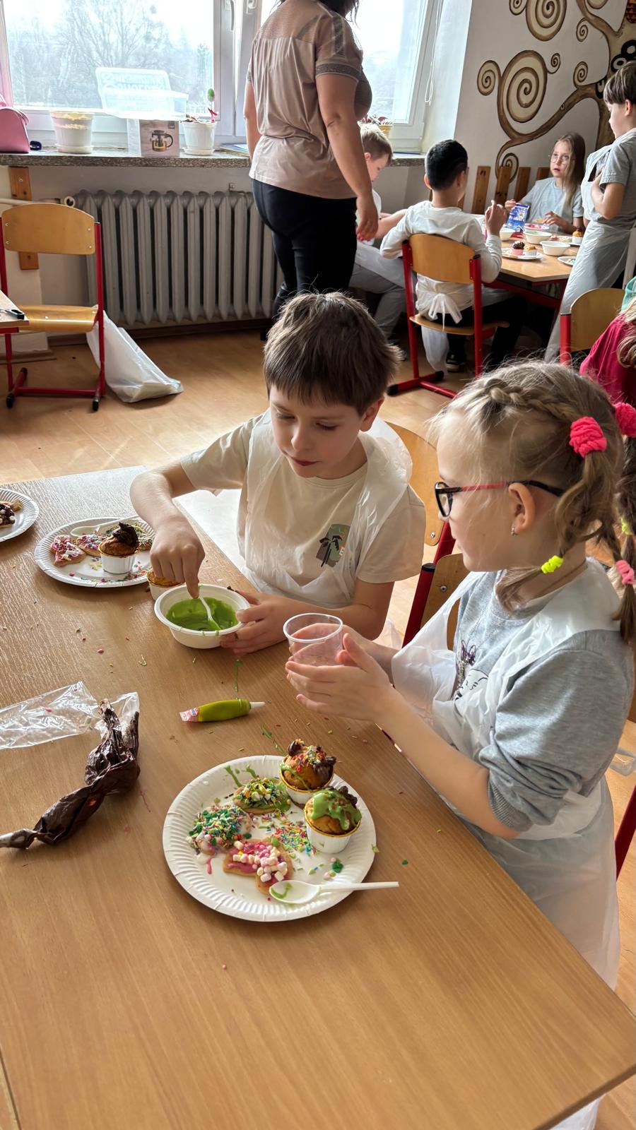 01.04.2026 r. w klasie 1b zapachniało Wielkanocą. Mamy dzieci z klasy zorganizowały warsztaty ozdabiania wielkanocnych ciastek i babeczek upieczonych wcześniej w domu.
