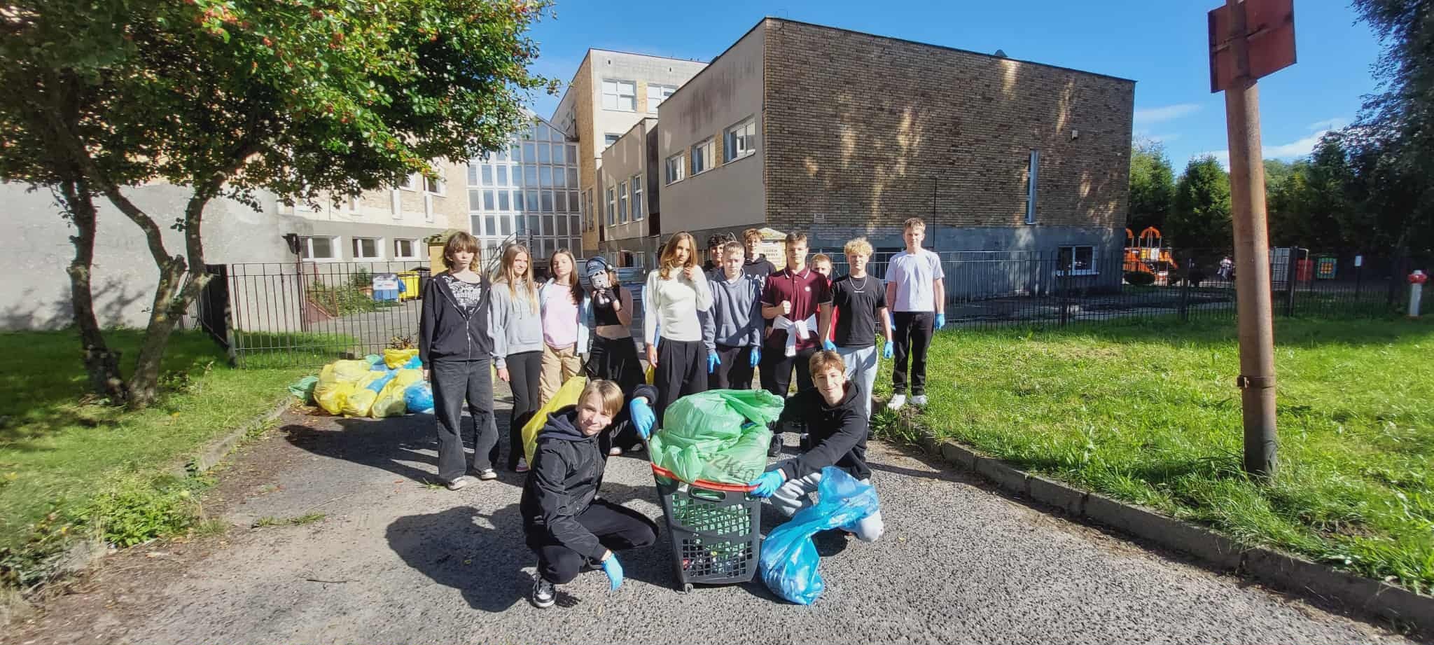 Klasa 8c kolejny już rok sprzątała teren wokół szkoły w ramach akcji "Sprzątania Świata" - kolejny rok miała ręce pełne roboty i worki pełne śmieci.