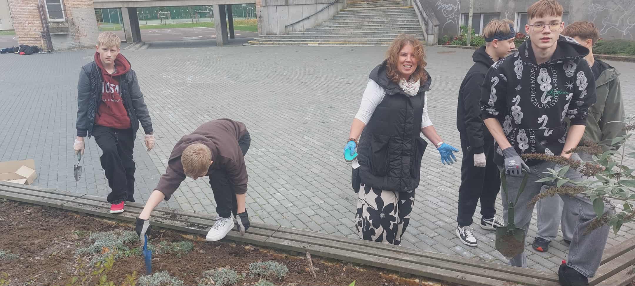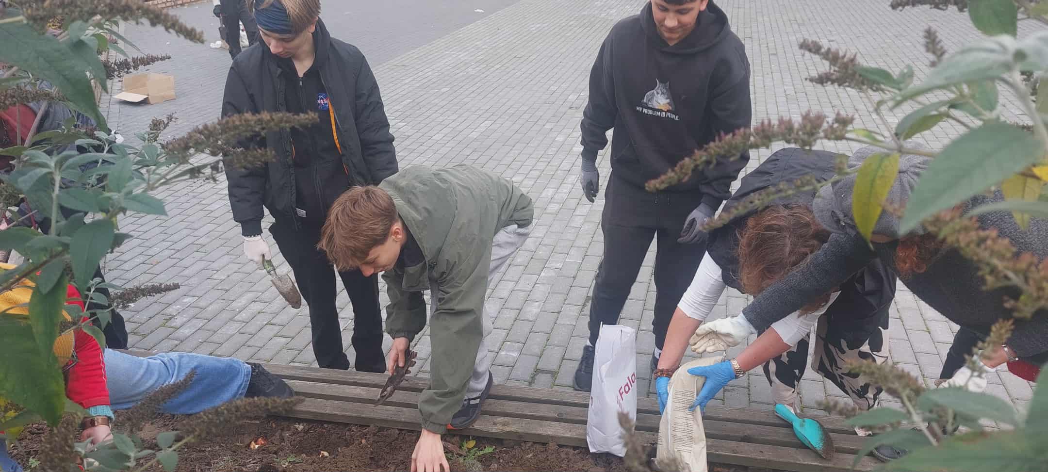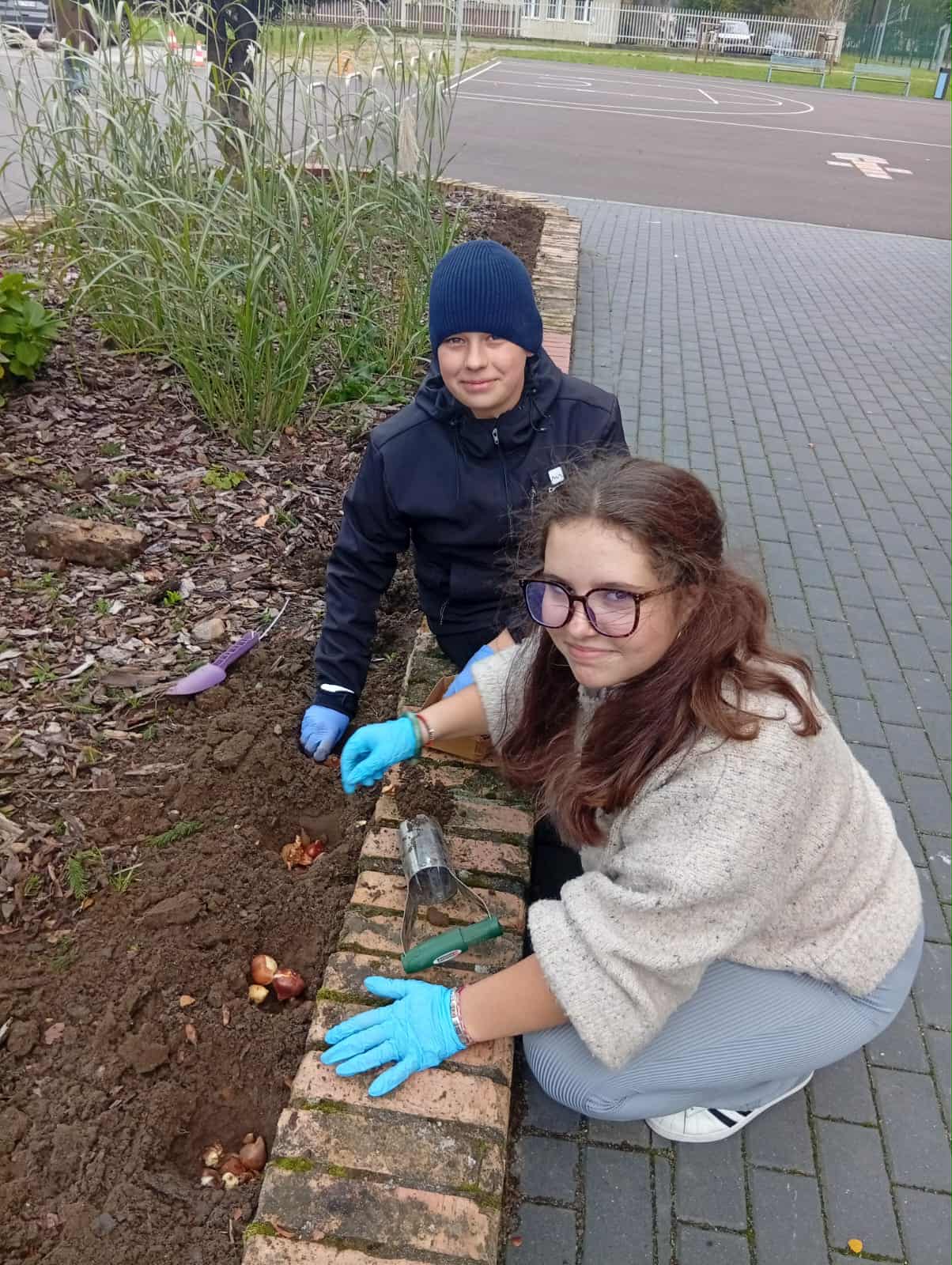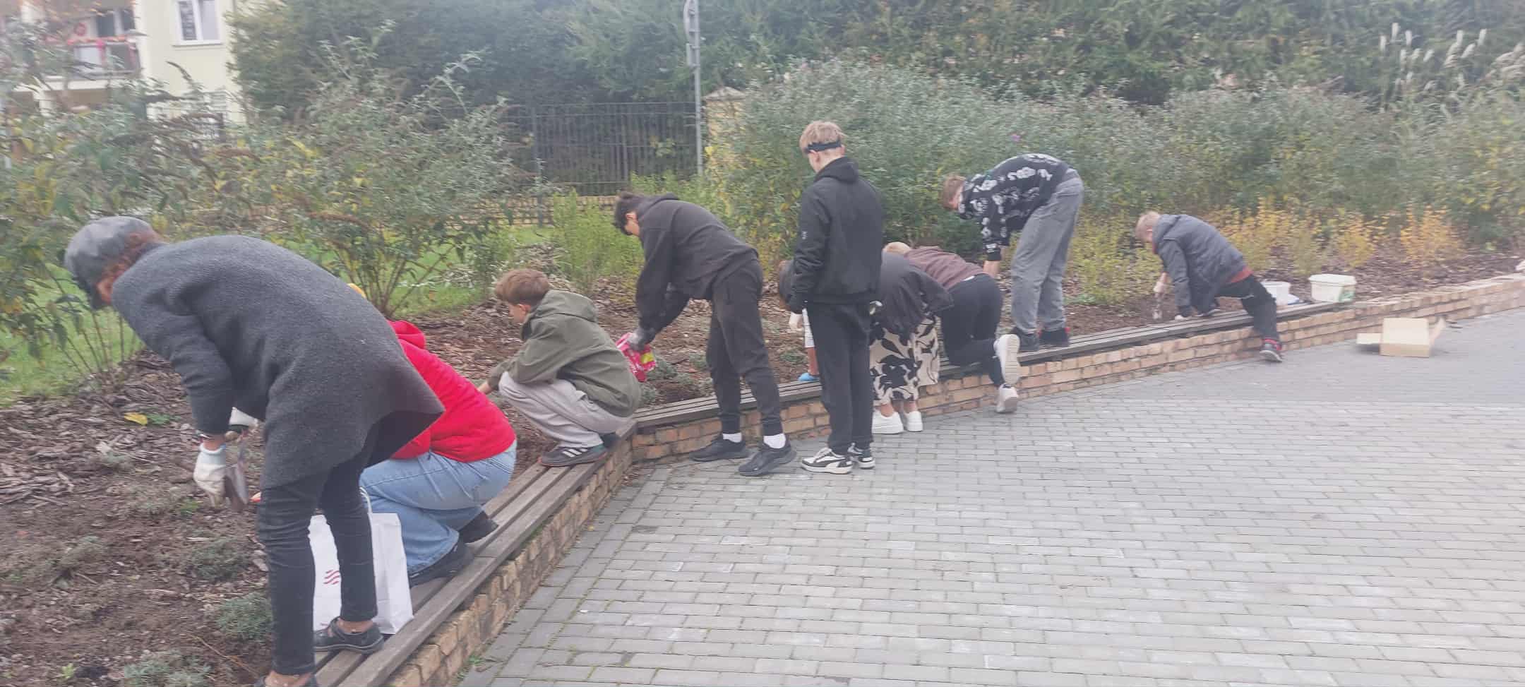 Dziś nasi wolontariusze z klas 8a, 8b i 8c zakończyli pierwszy etap jesiennej akcji sadzenia kwiatów.