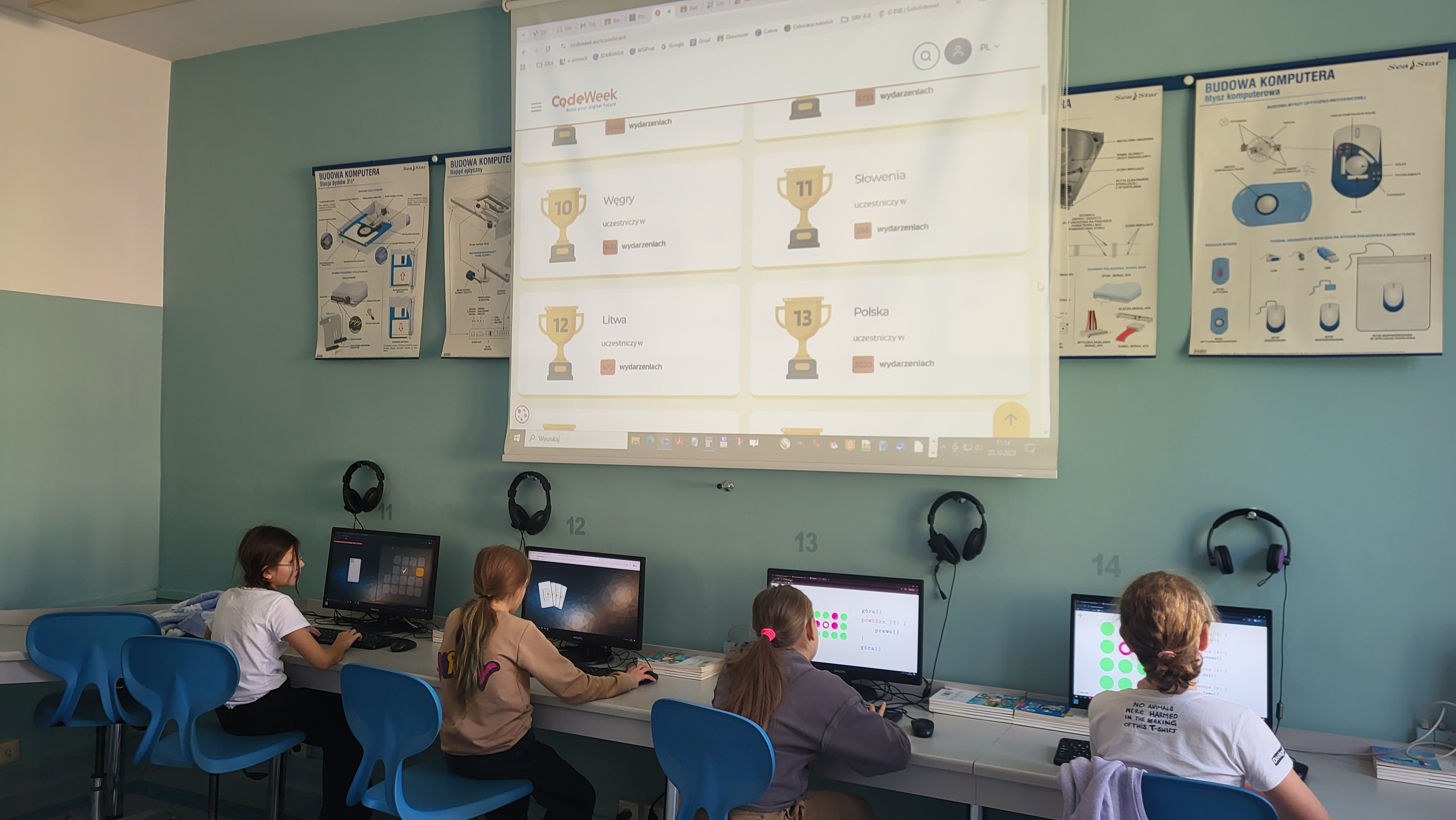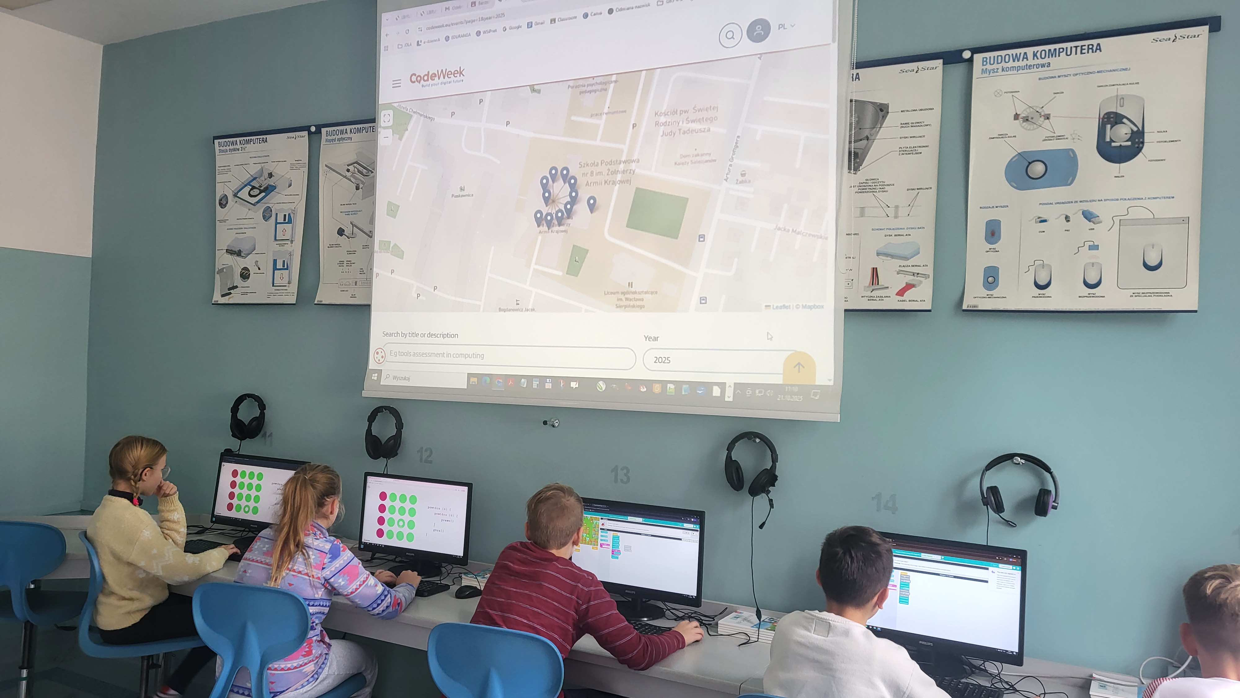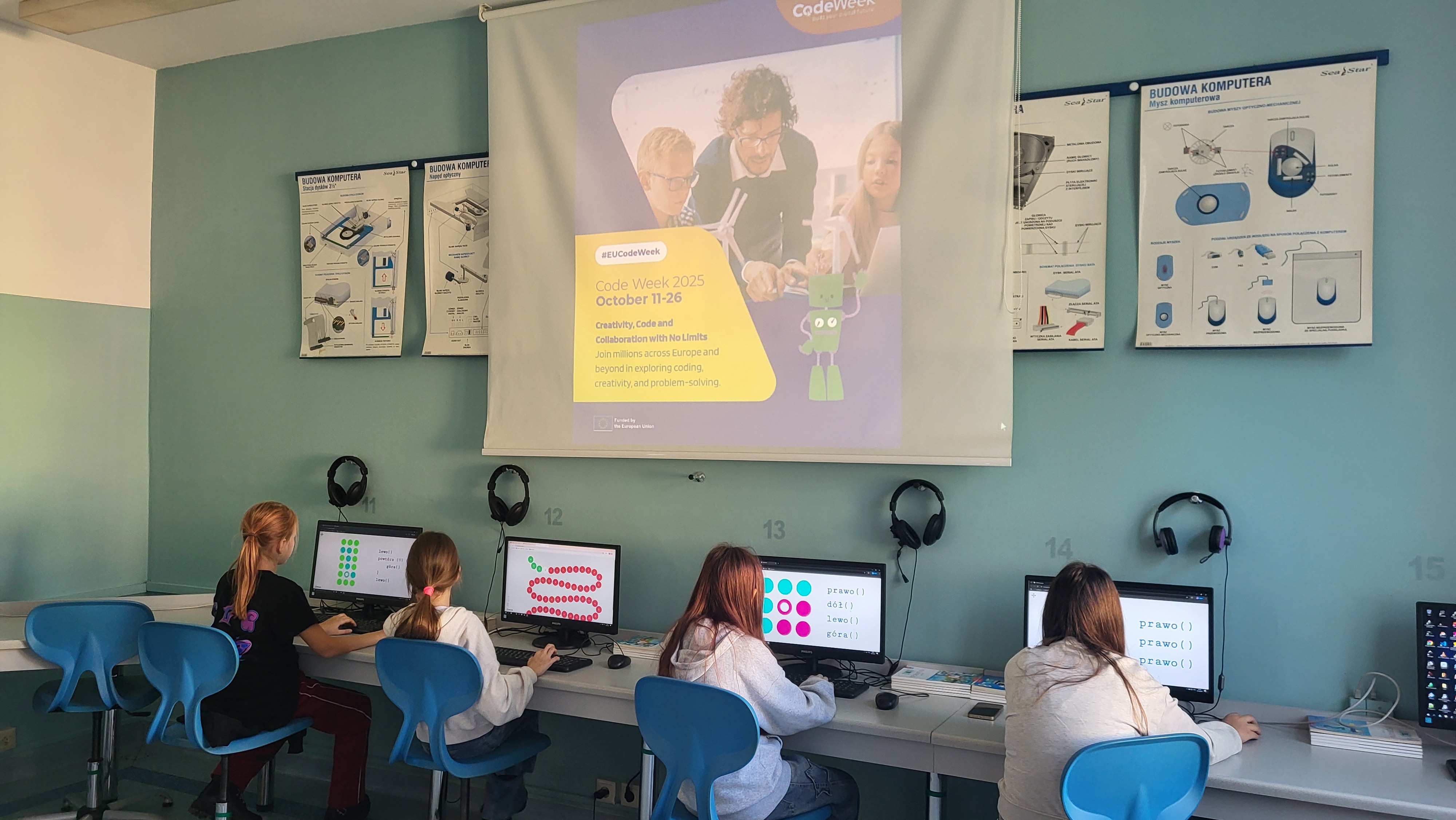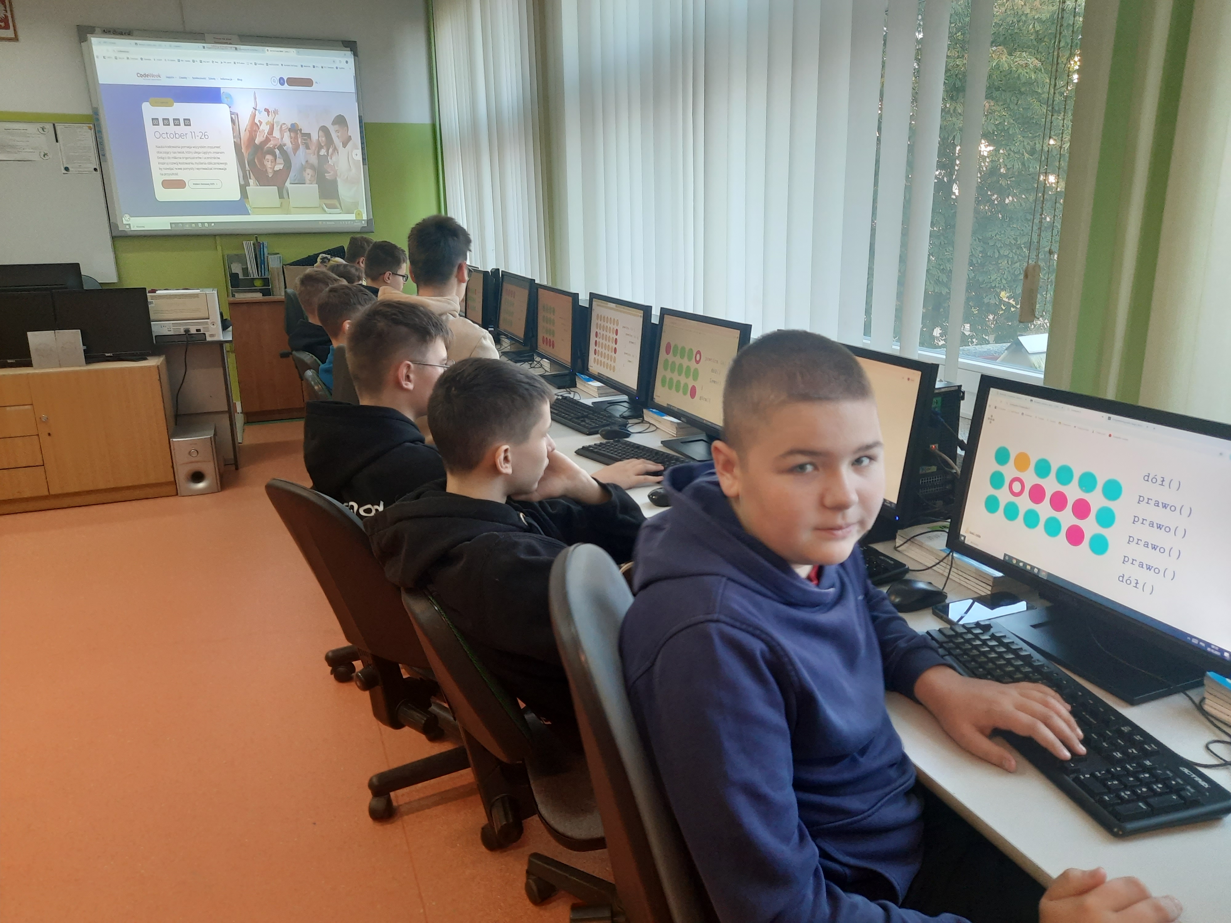 W naszej szkole uczniowie klas 4-8 podczas zajęć z informatyki biorą udział w akcji CodeWeek 2025. Uczniowie klas 4-6 czytali i interpretowali widoczny kod, aby znaleźć właściwą drogę dla kropki lub Angry Birds. Uczniowie klas 7-8 sterowali wyprawą małej kropki lub korzystali z AI do tworzenia stron internetowych. Podczas zajęć uczniowie potrzebowali tylko koncentracji i właściwego korzystania ze swoich intuicyjnych zdolności, aby zrozumieć niektóre podstawowe koncepcje programowania. https://codeweek.eu/