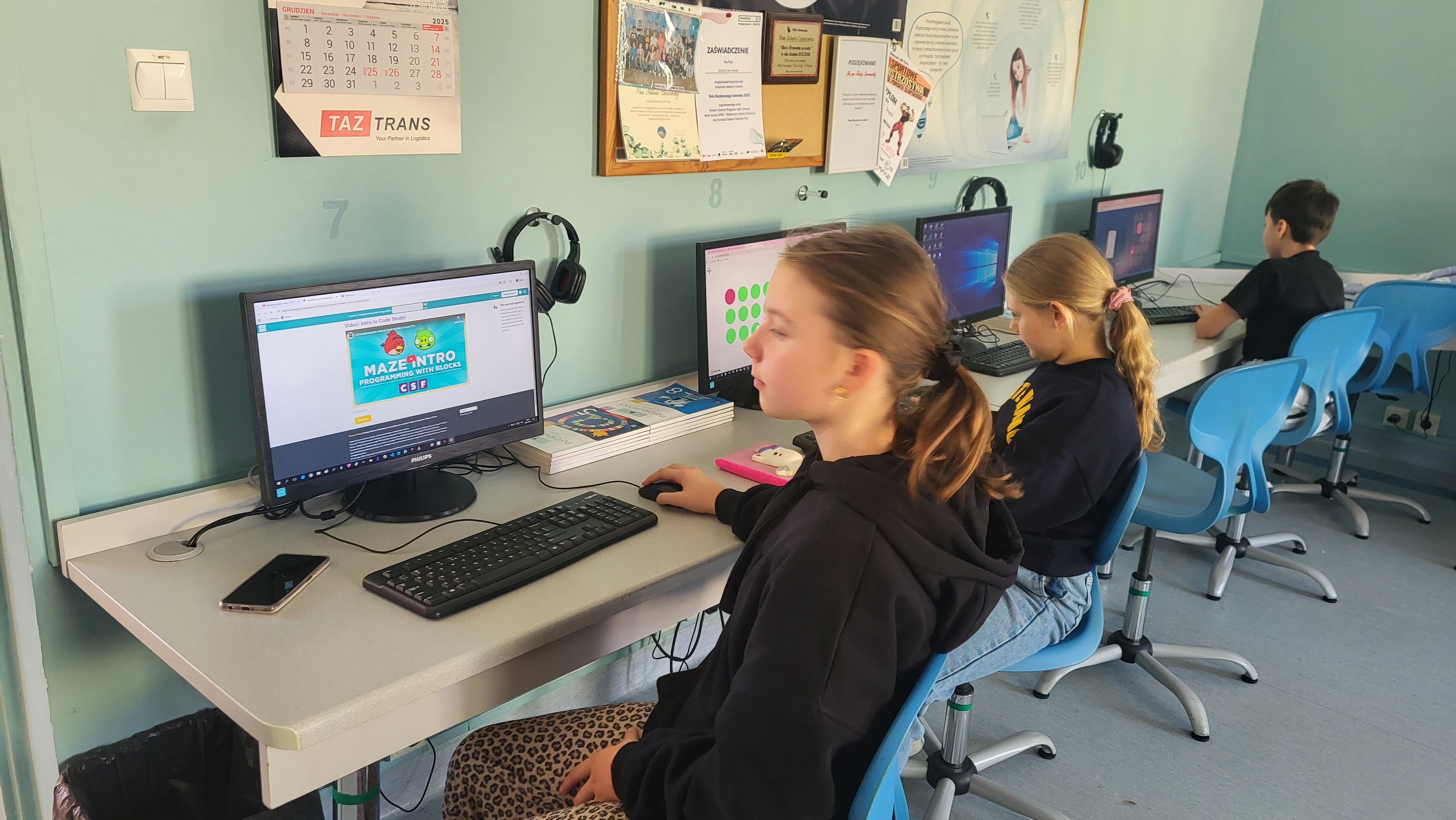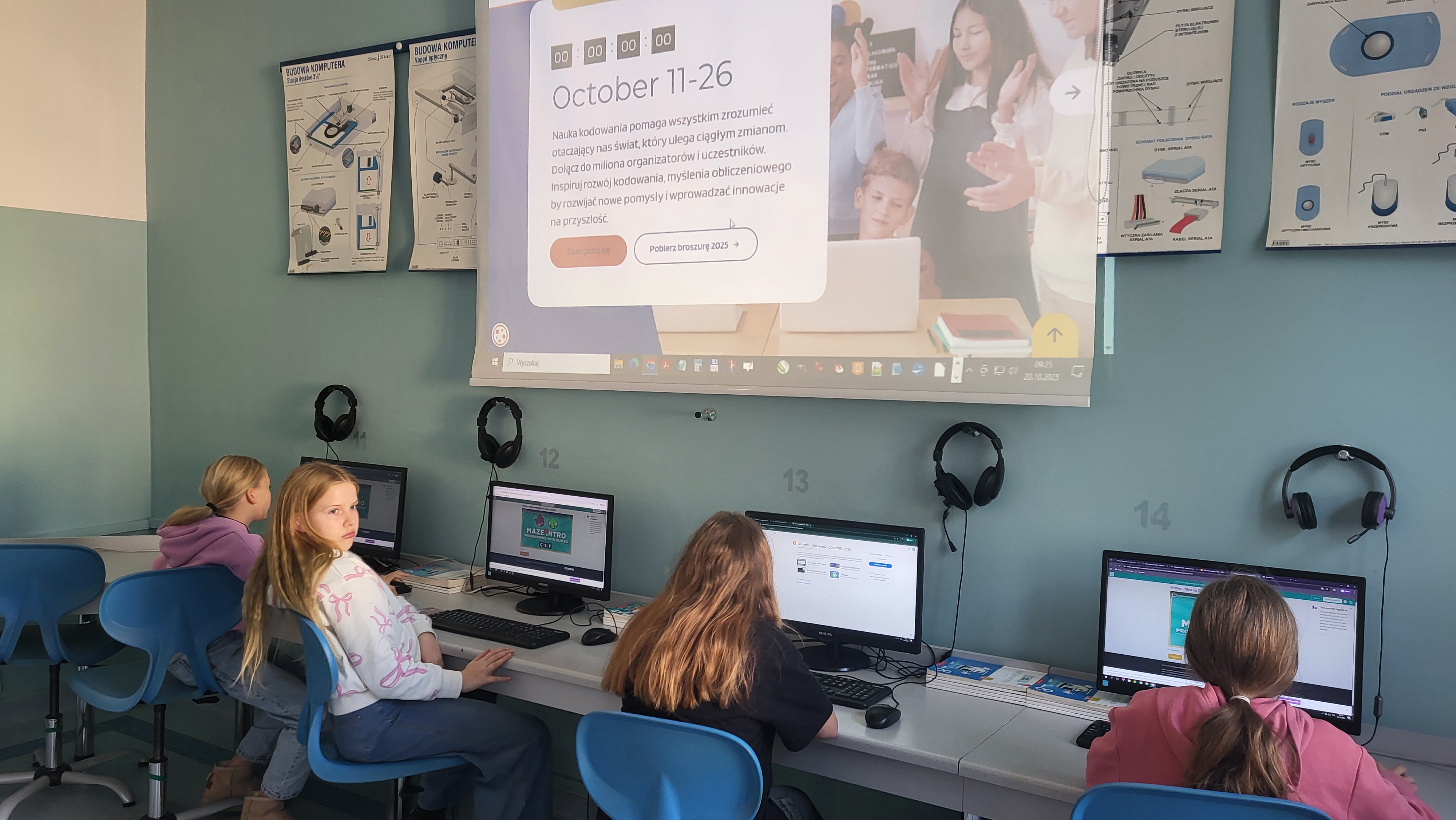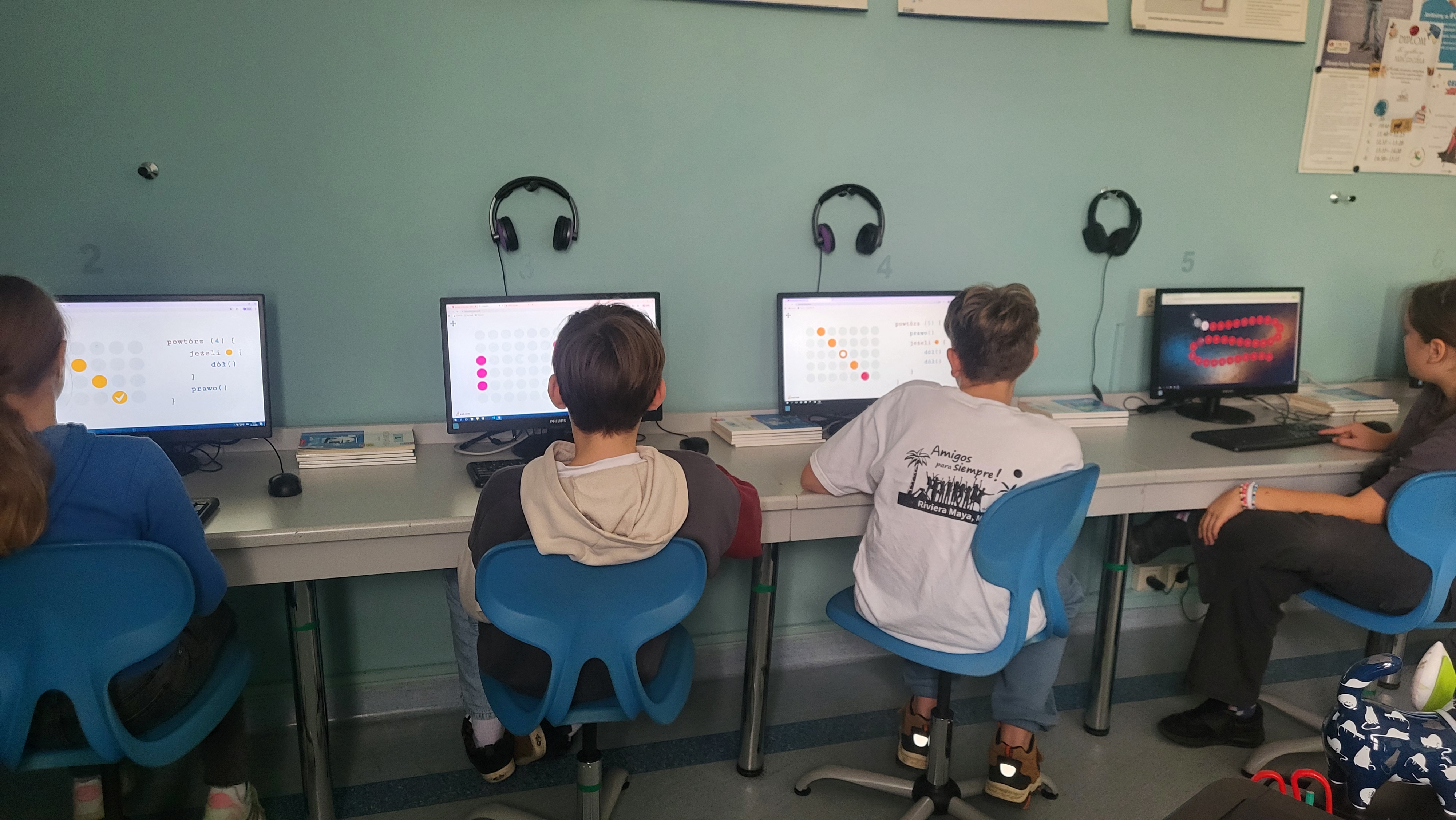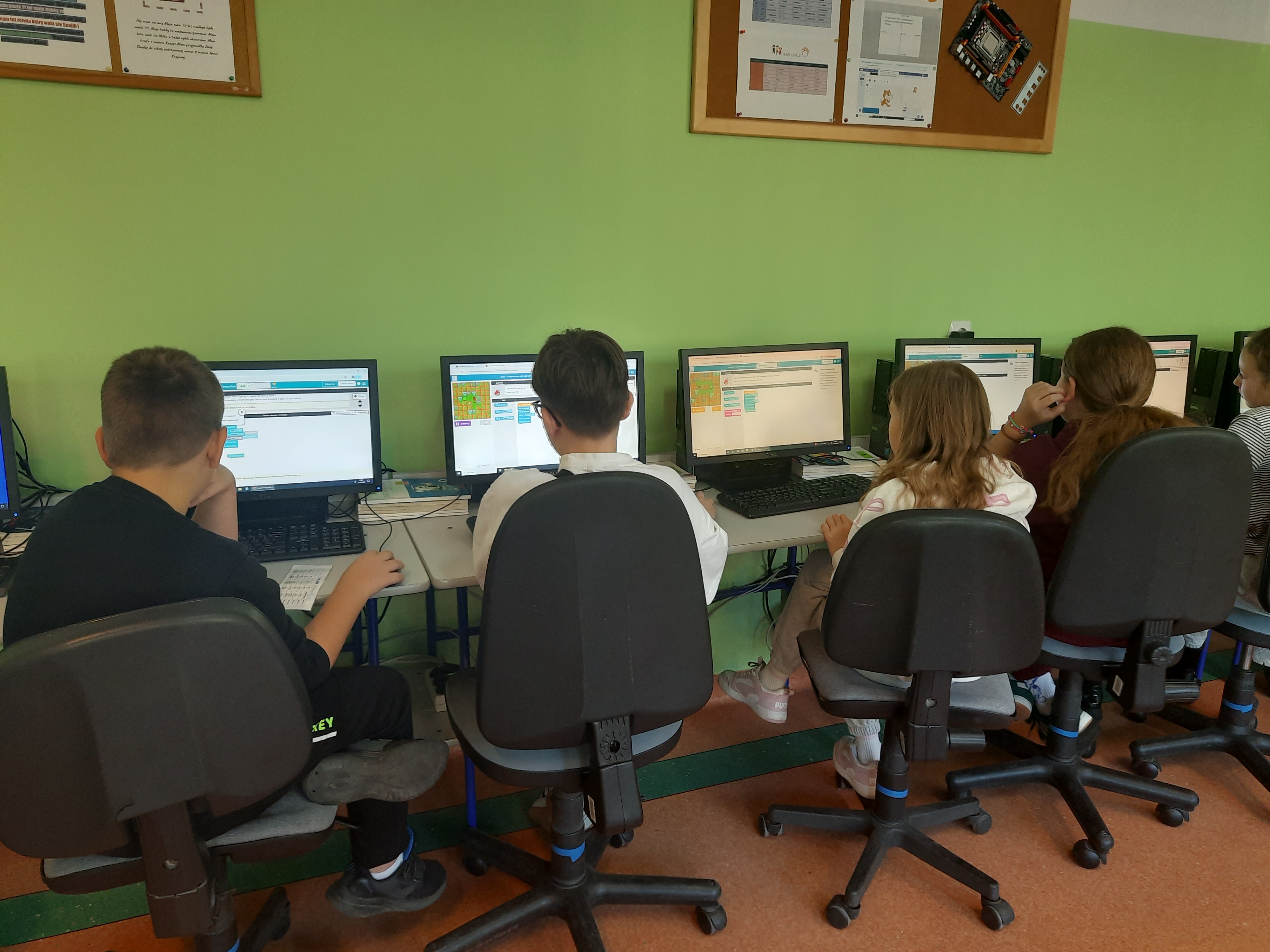 W naszej szkole uczniowie klas 4-8 podczas zajęć z informatyki biorą udział w akcji CodeWeek 2025. Uczniowie klas 4-6 czytali i interpretowali widoczny kod, aby znaleźć właściwą drogę dla kropki lub Angry Birds. Uczniowie klas 7-8 sterowali wyprawą małej kropki lub korzystali z AI do tworzenia stron internetowych. Podczas zajęć uczniowie potrzebowali tylko koncentracji i właściwego korzystania ze swoich intuicyjnych zdolności, aby zrozumieć niektóre podstawowe koncepcje programowania. https://codeweek.eu/
