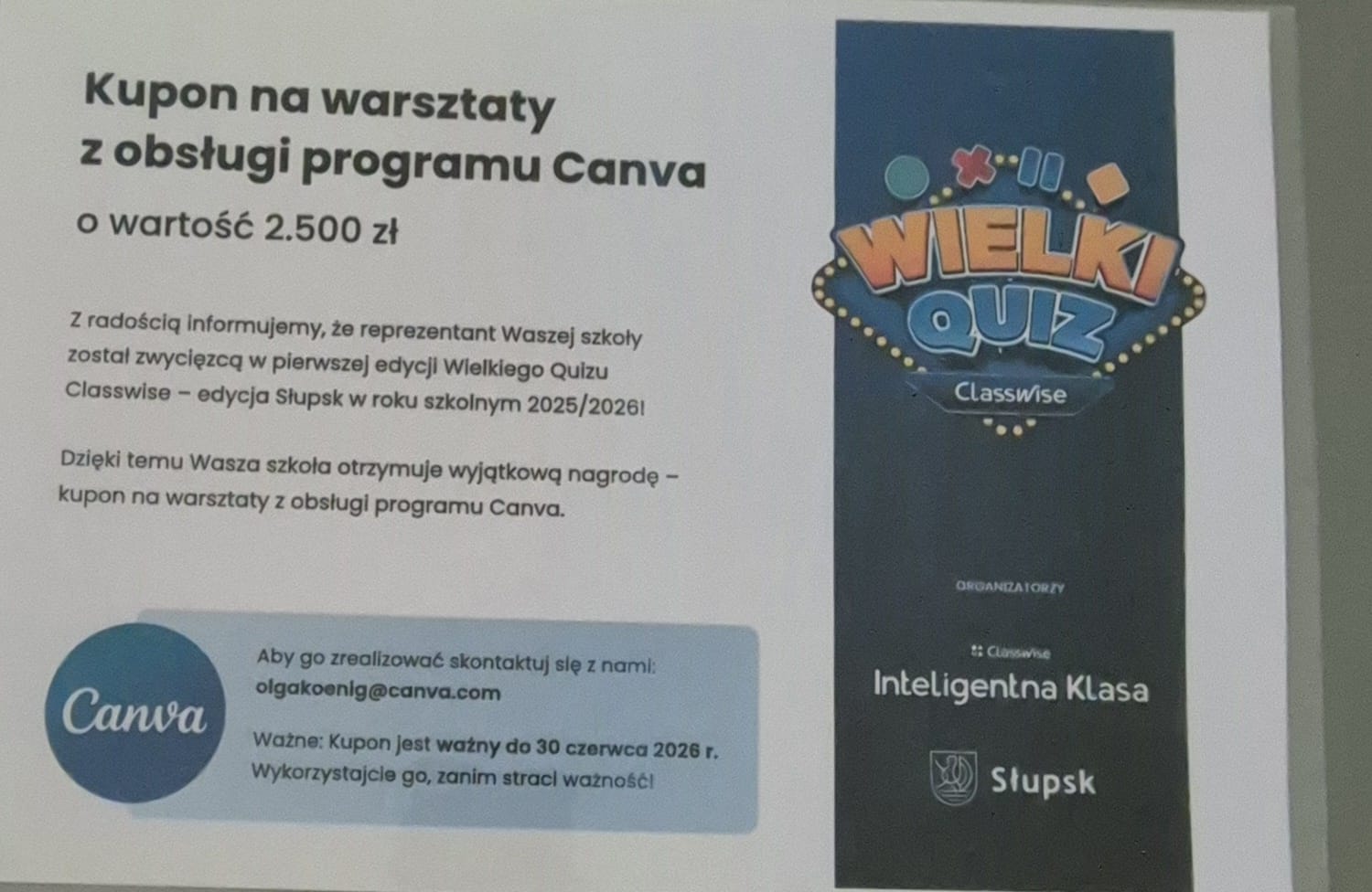 Dnia 05.12.2025 odbył się międzyszkolny konkurs "Wielki Quiz Classwise" organizowany przez firmę Classwise.