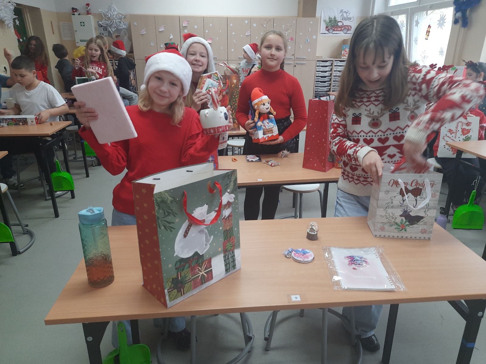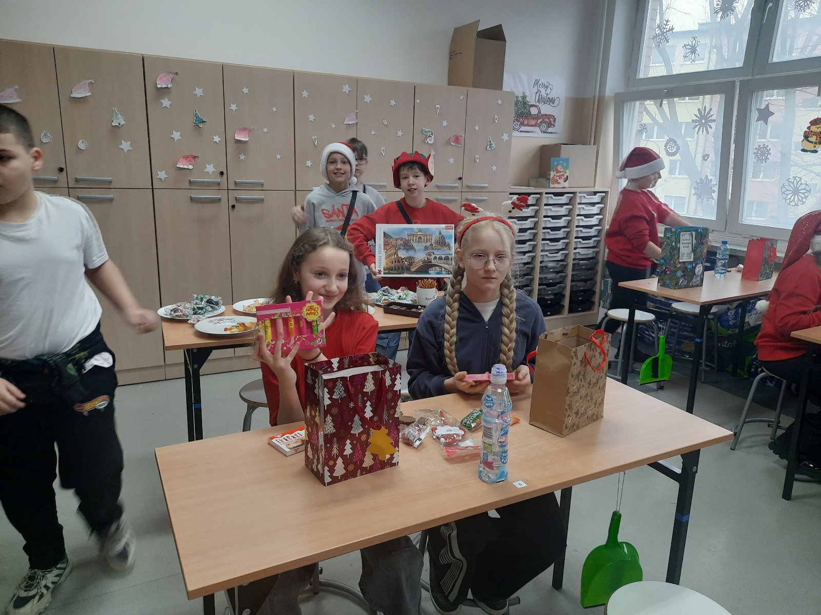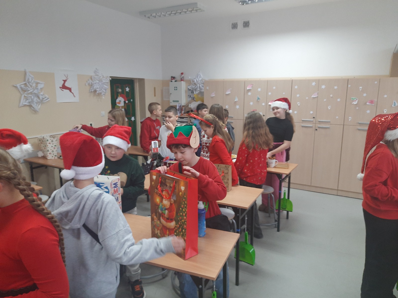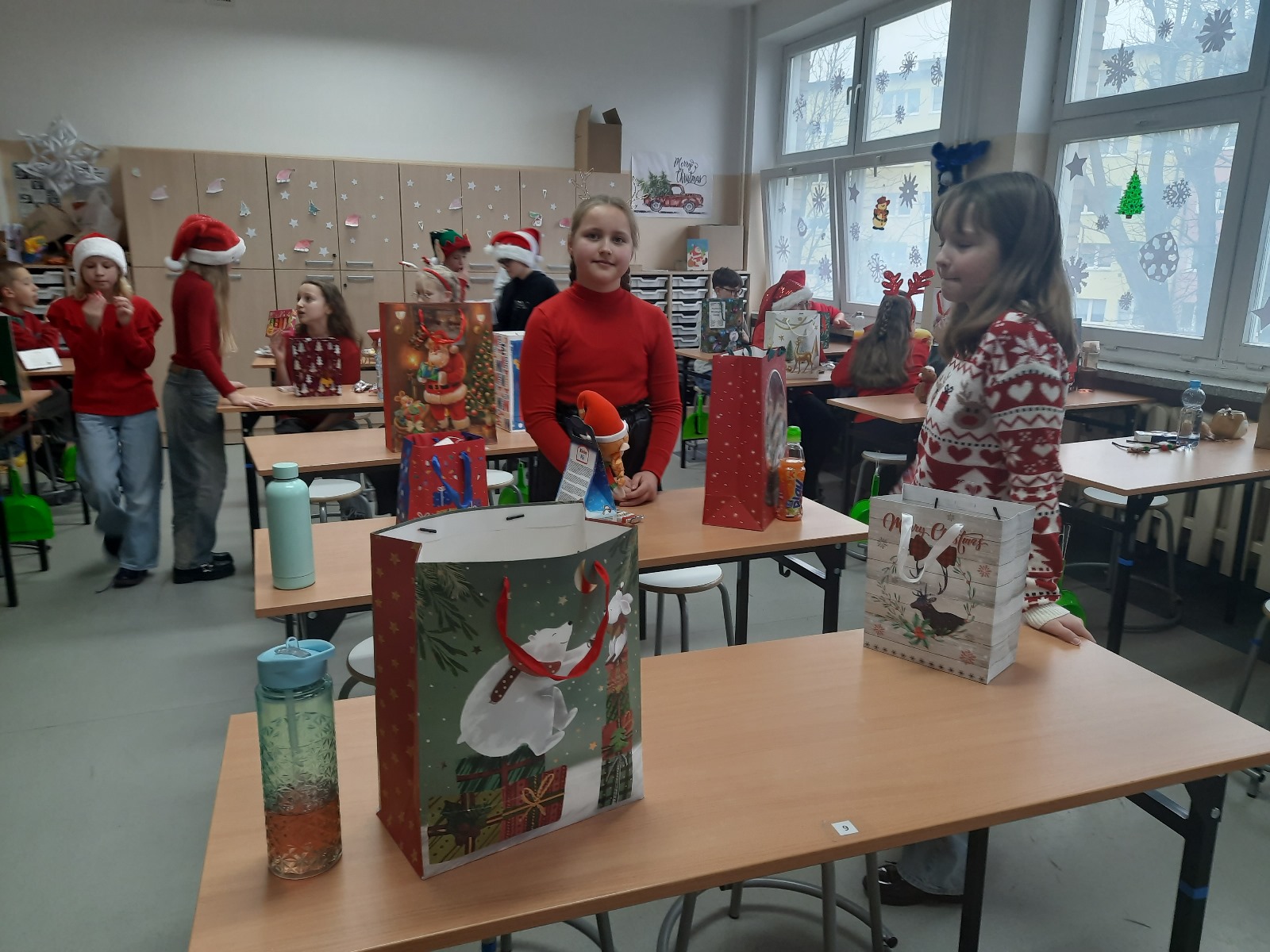 Klasa 4a świętowała Mikołajki. Uczniowie sprawili sobie dużo radości wzajemnymi prezentami.