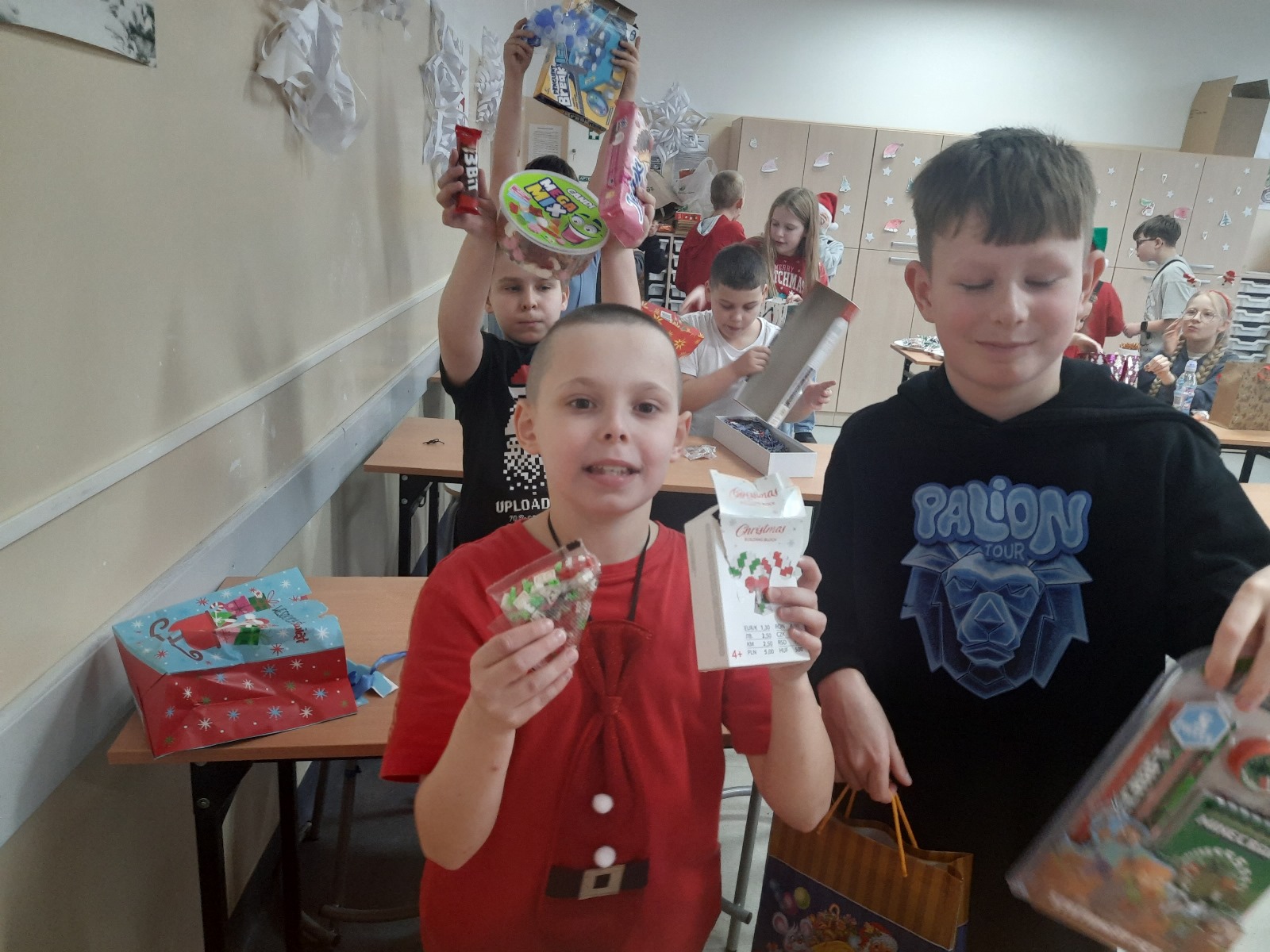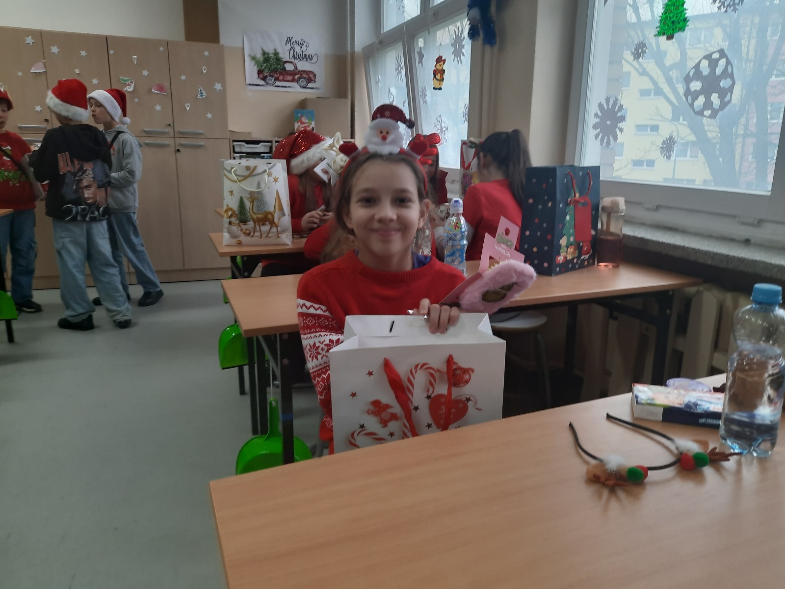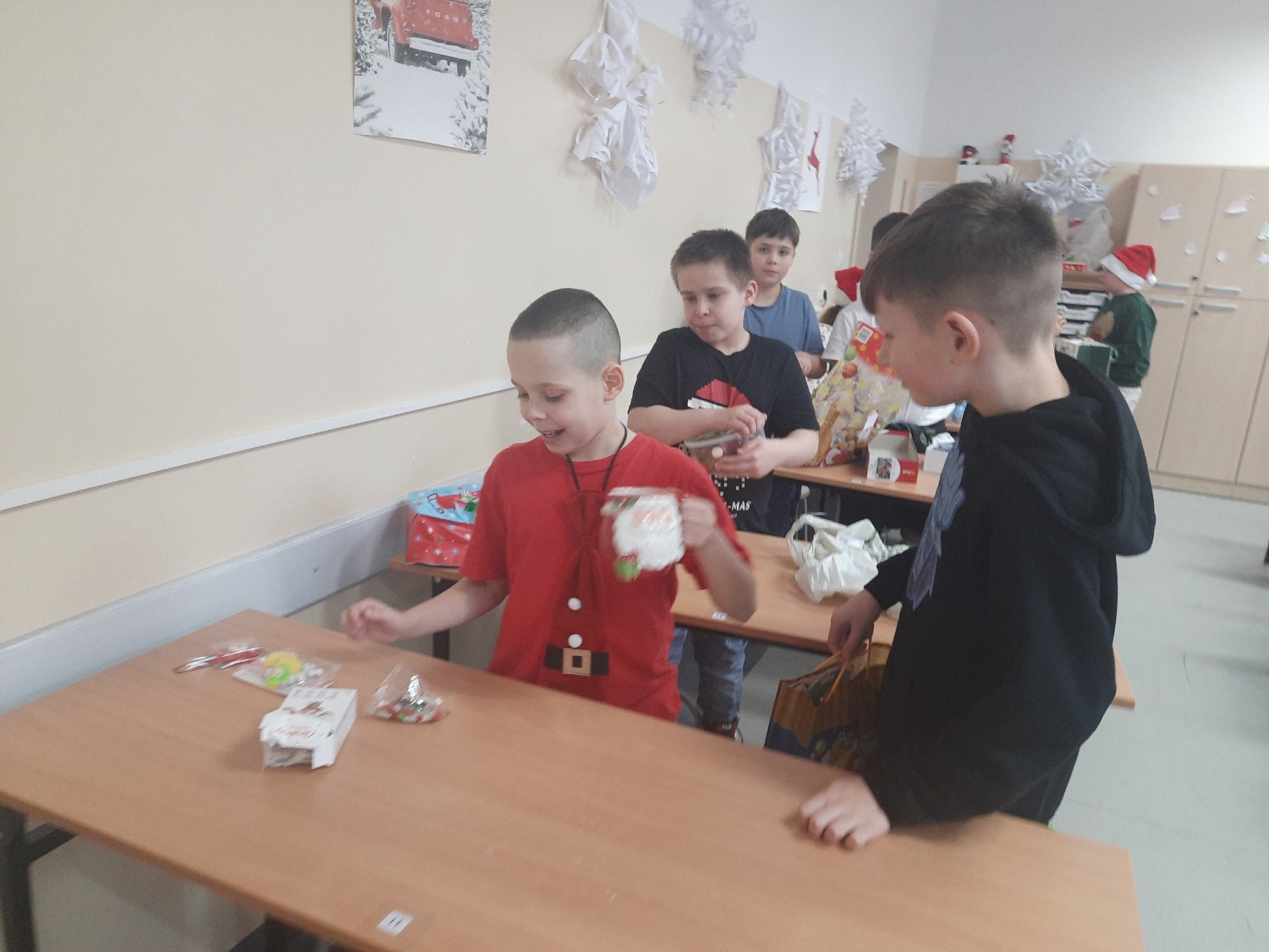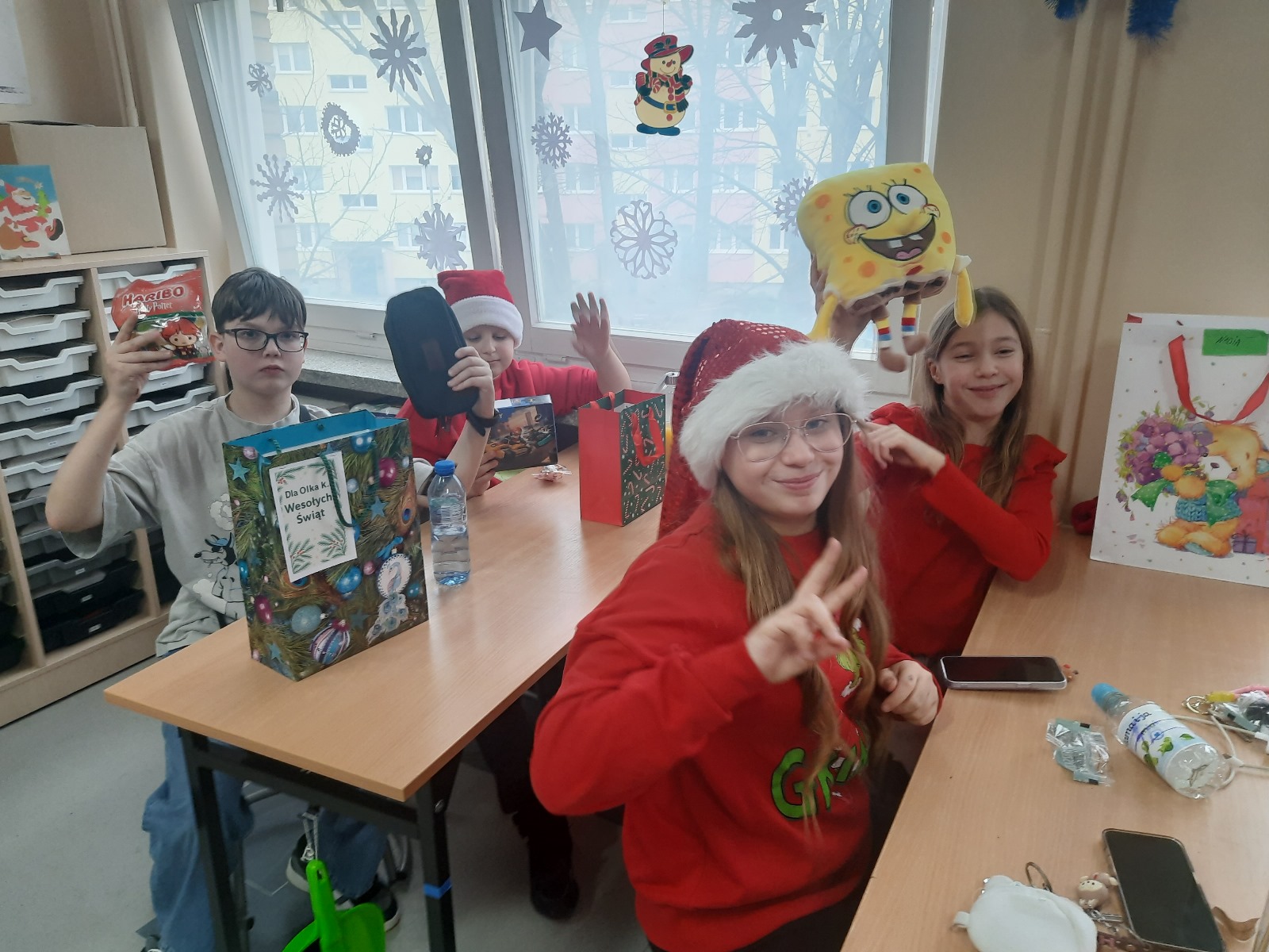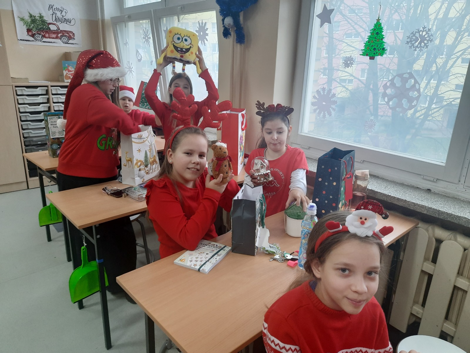Klasa 4a świętowała Mikołajki. Uczniowie sprawili sobie dużo radości wzajemnymi prezentami.