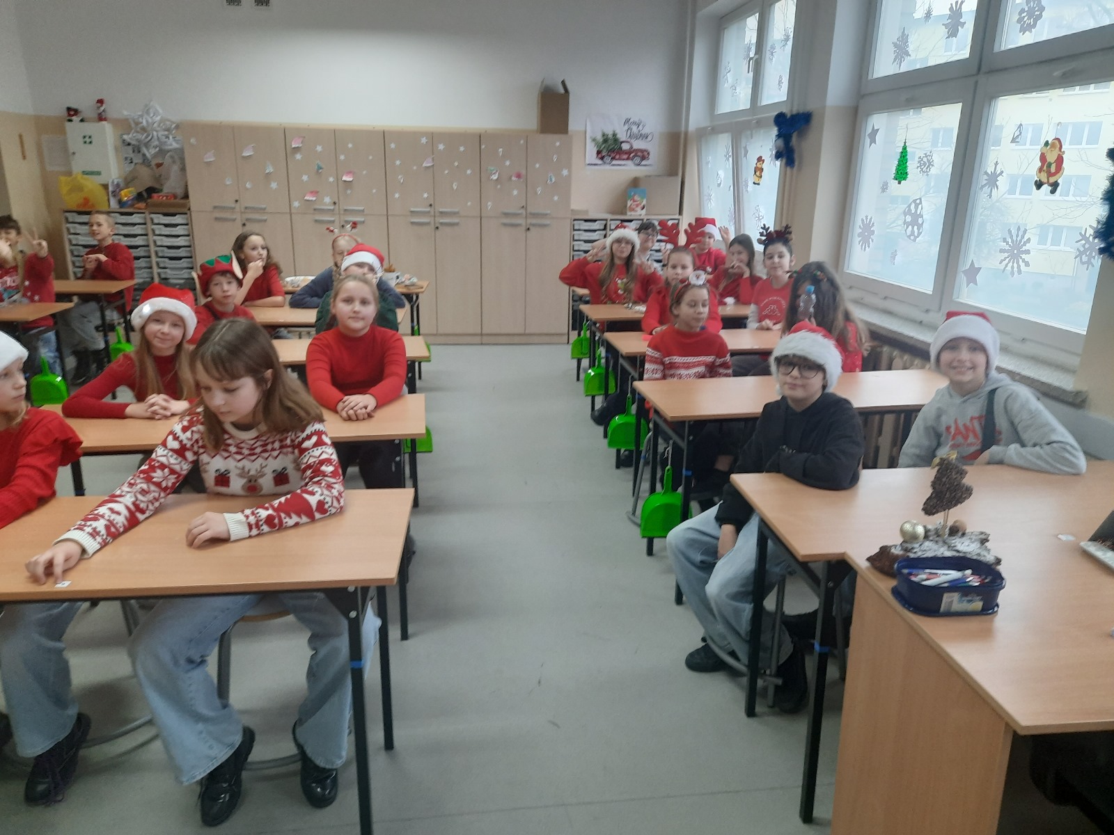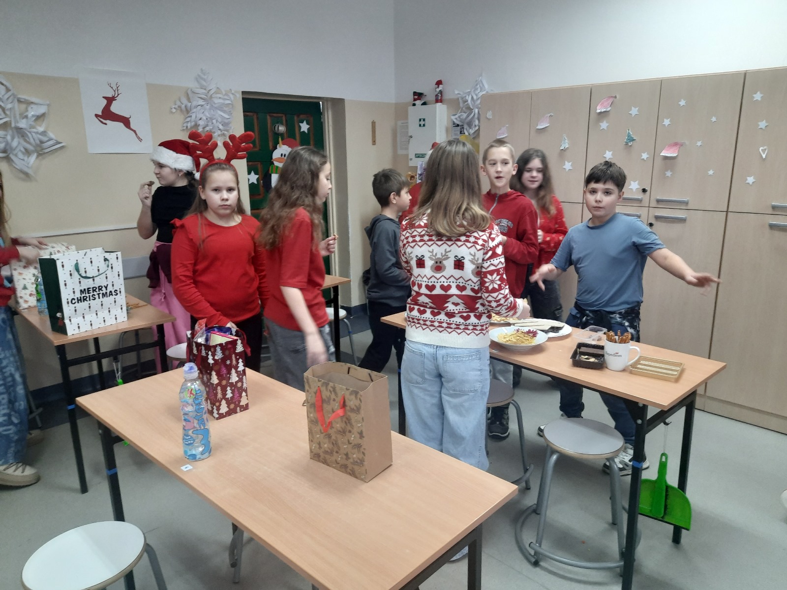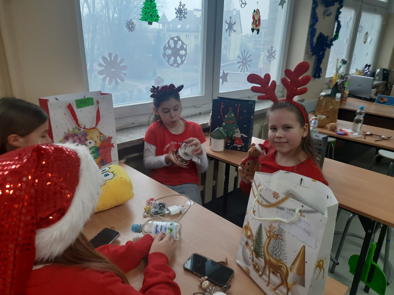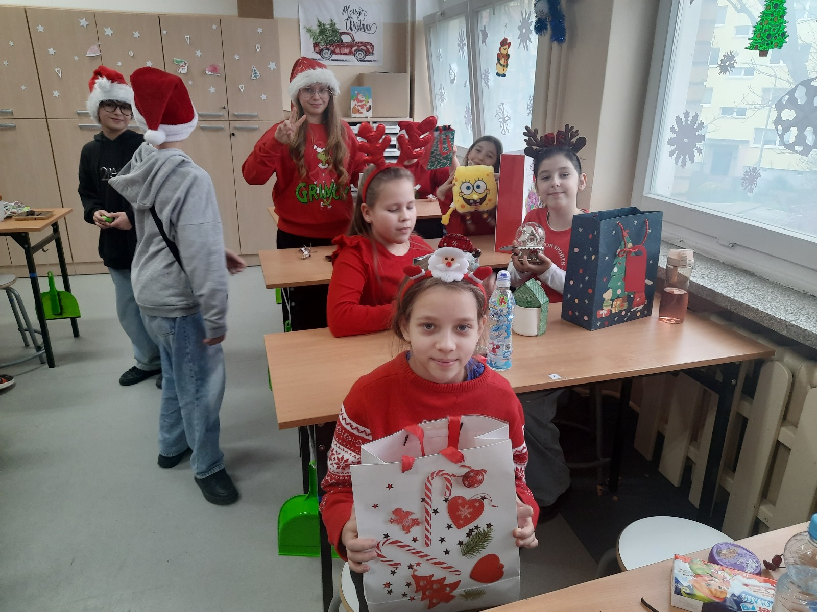 Klasa 4a świętowała Mikołajki. Uczniowie sprawili sobie dużo radości wzajemnymi prezentami.