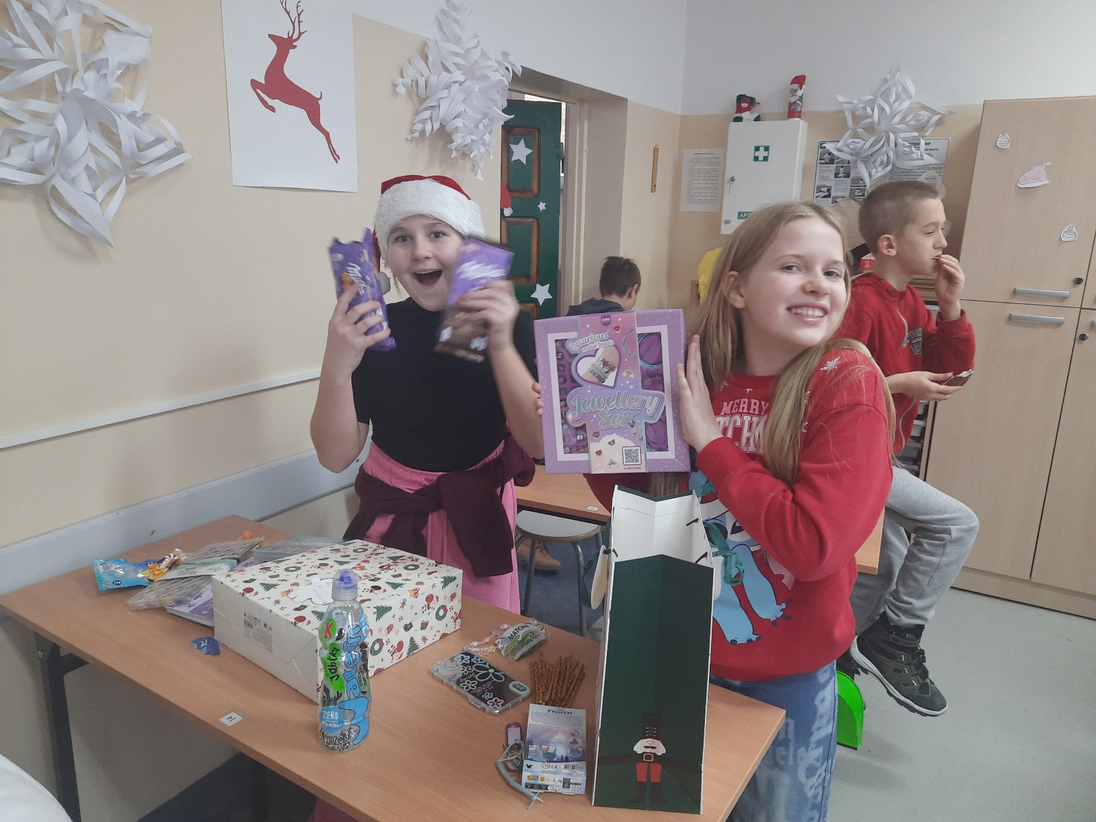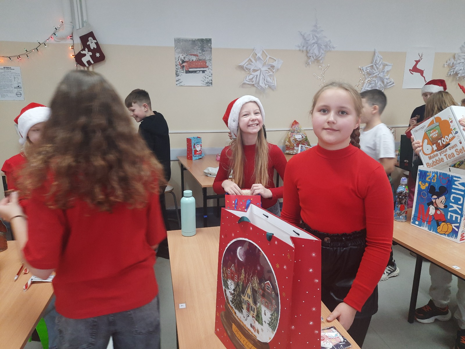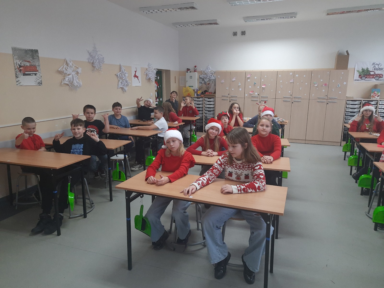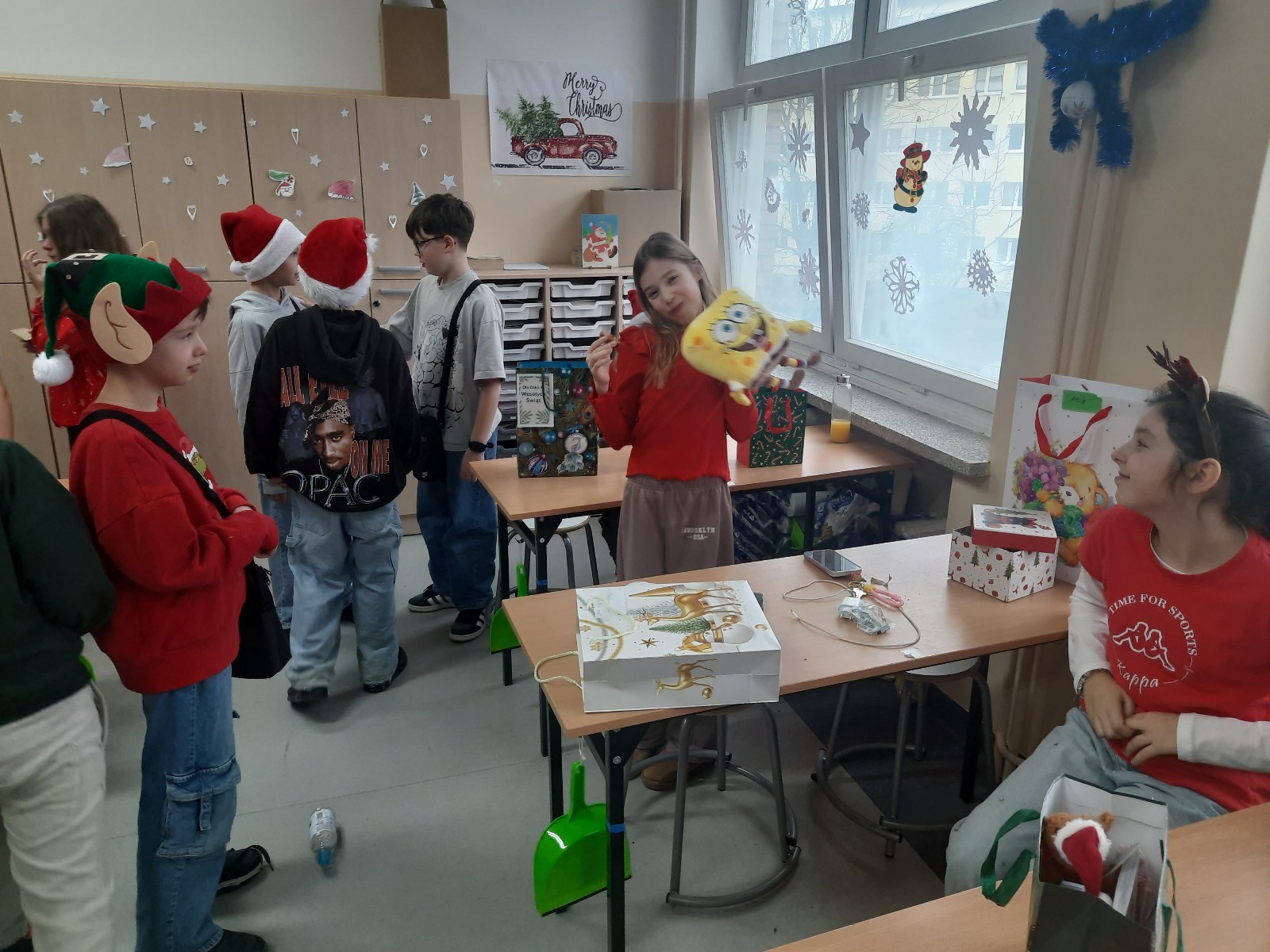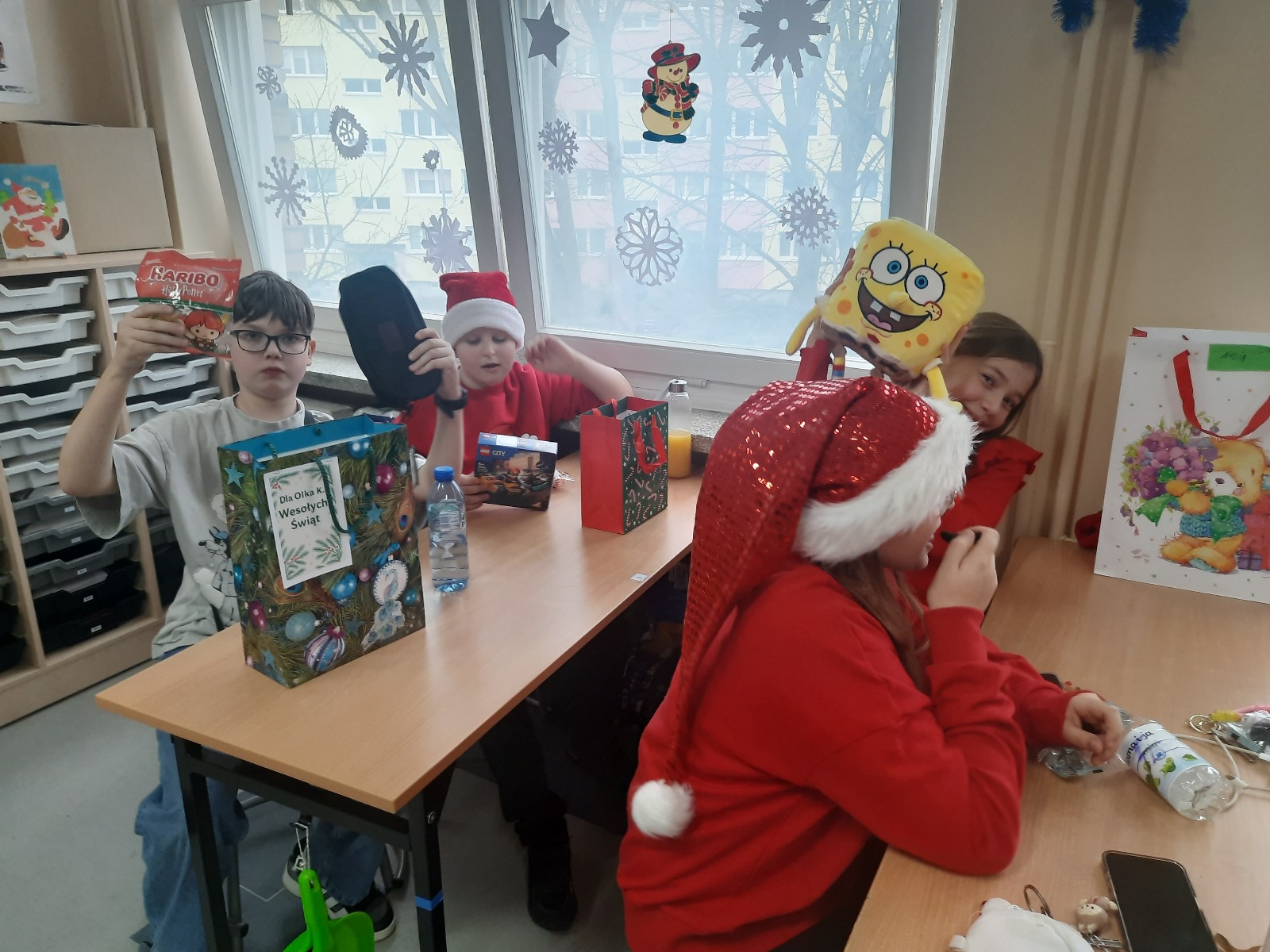 Klasa 4a świętowała Mikołajki. Uczniowie sprawili sobie dużo radości wzajemnymi prezentami.
