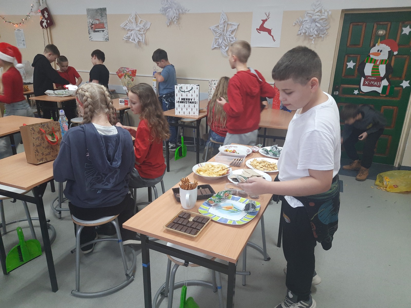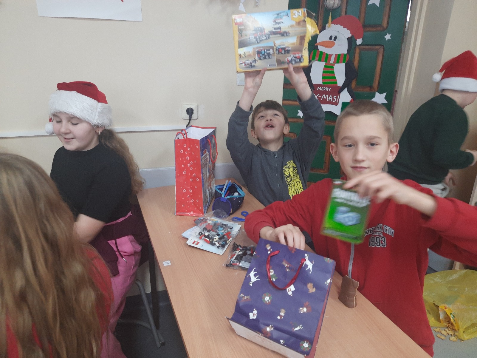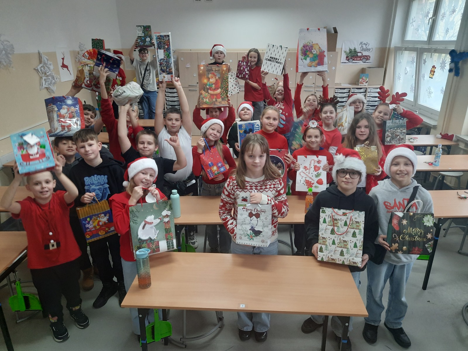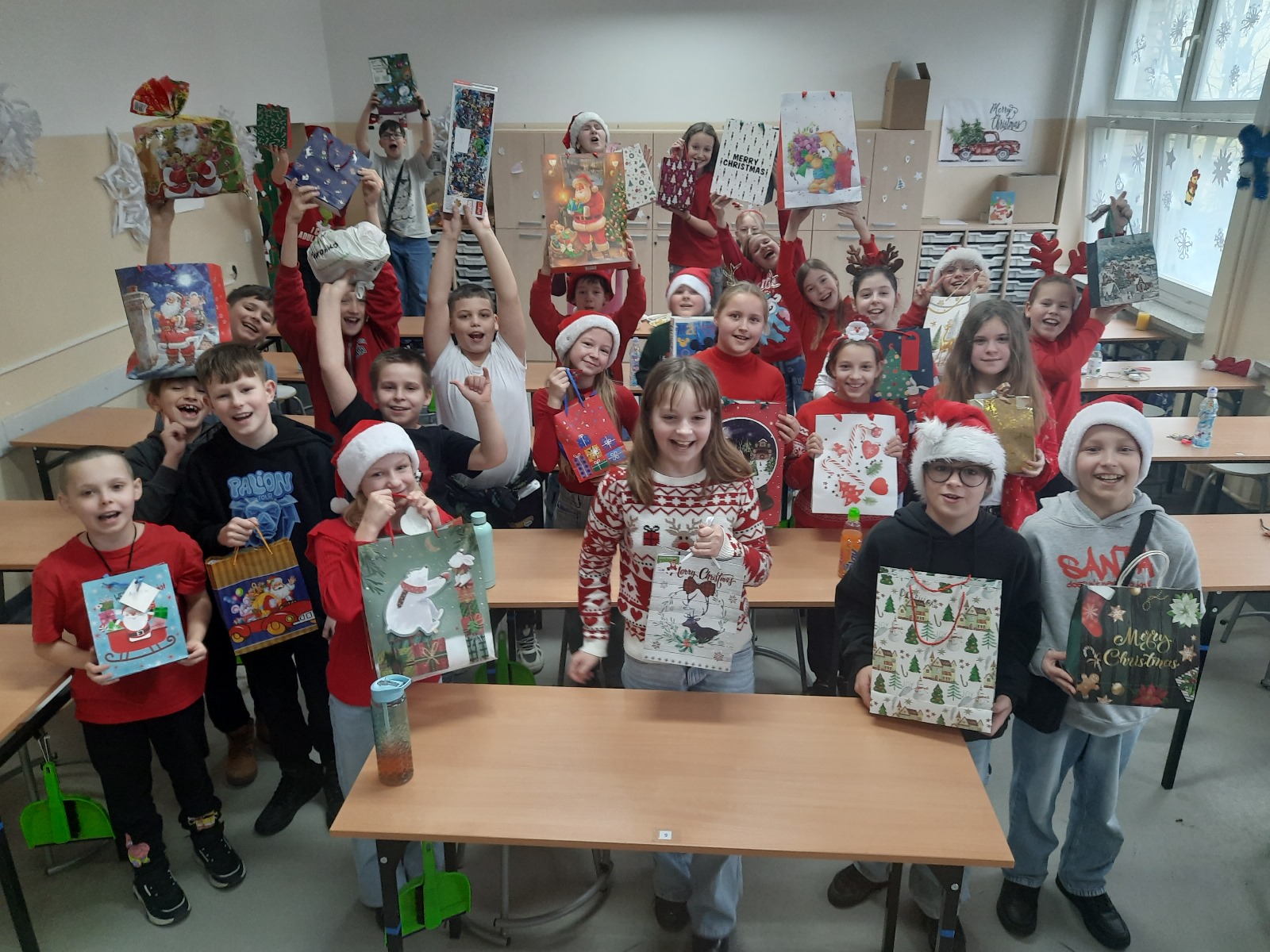 Klasa 4a świętowała Mikołajki. Uczniowie sprawili sobie dużo radości wzajemnymi prezentami.