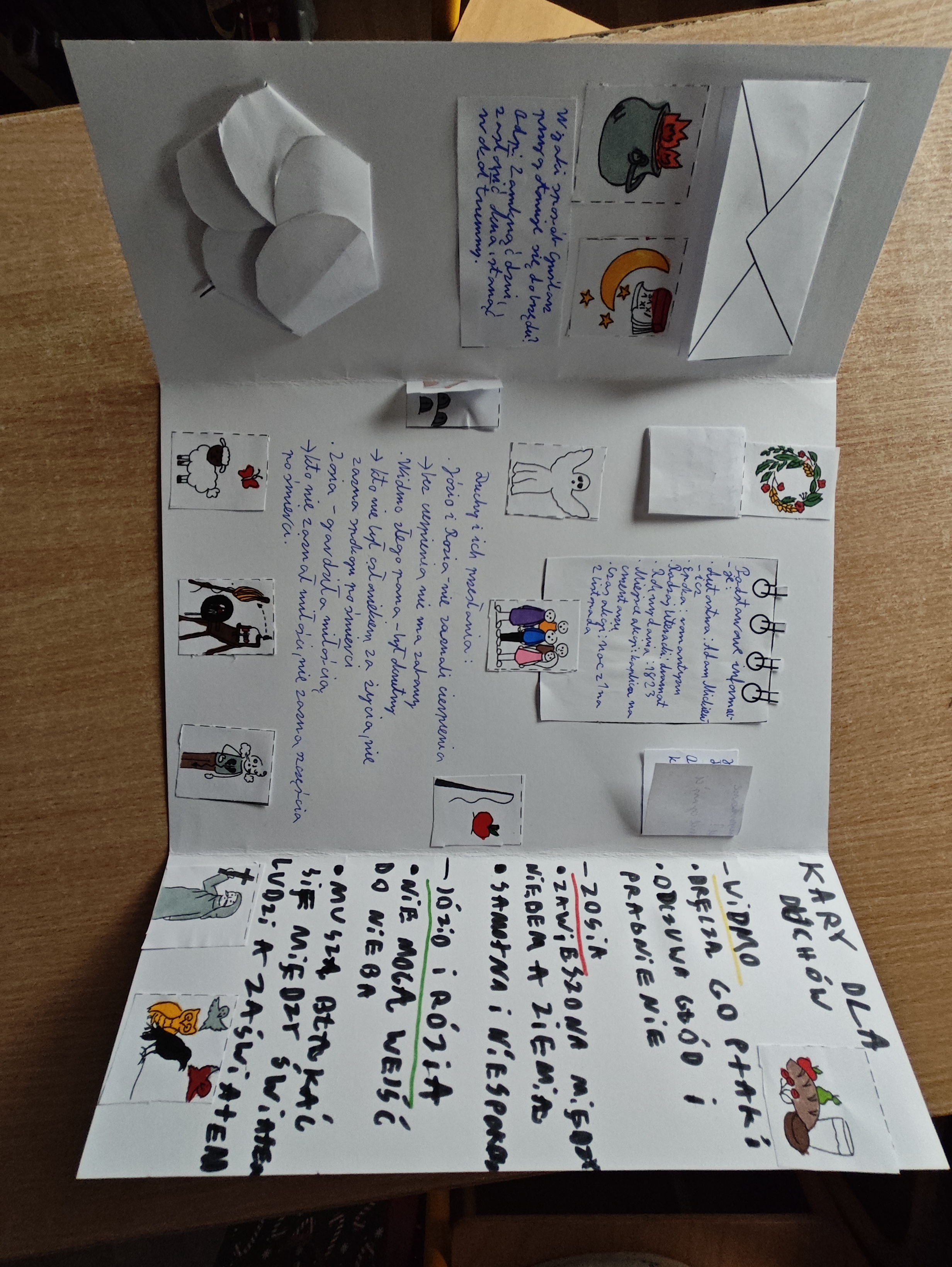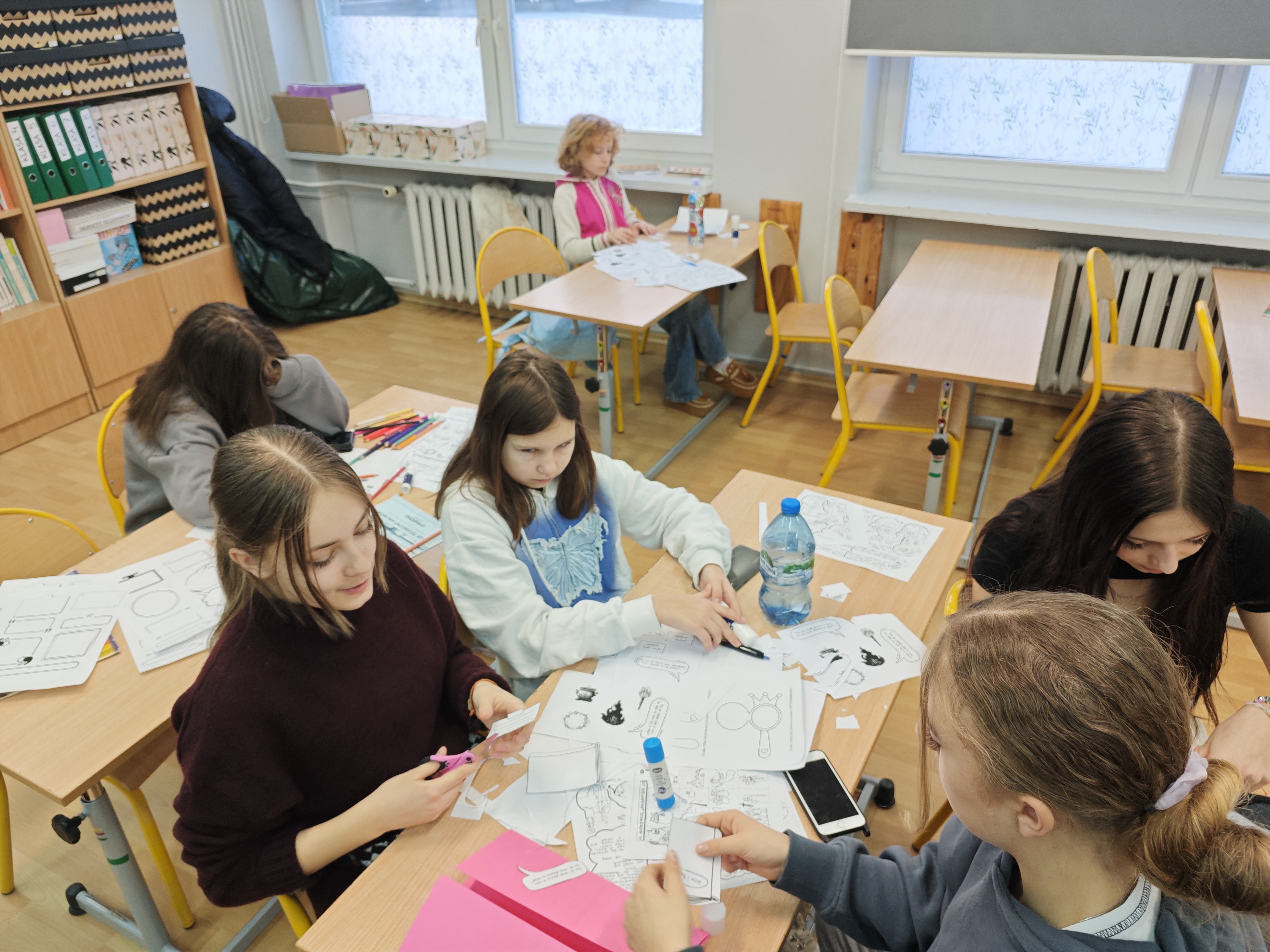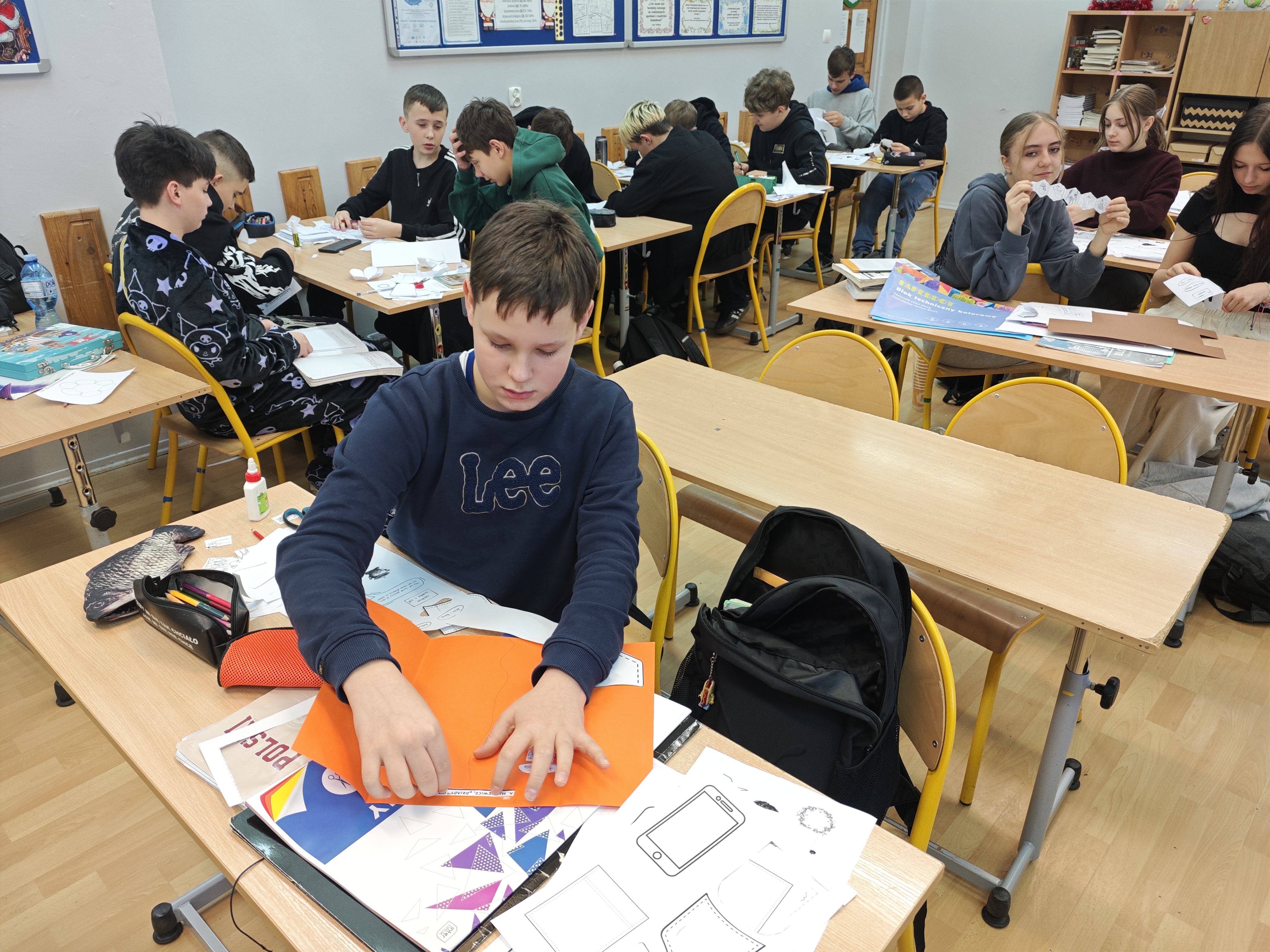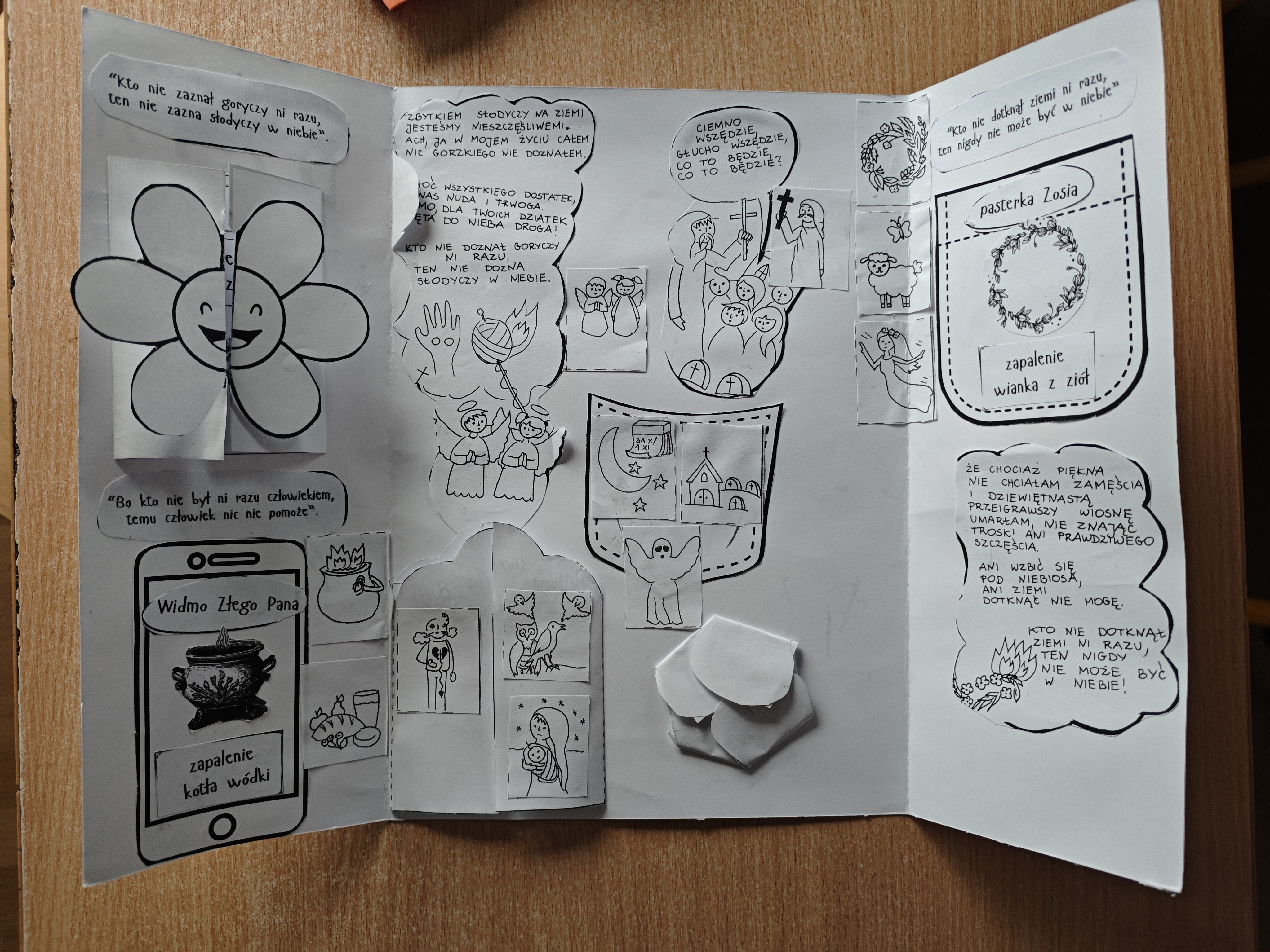 Uczniowie klasy 7d w ramach udziału w Ogólnopolskim Projekcie Edukacyjnym „Uczę się uczyć” na lekcji języka polskiego stworzyli lapbooki na temat lektury „Dziady” cz. II.