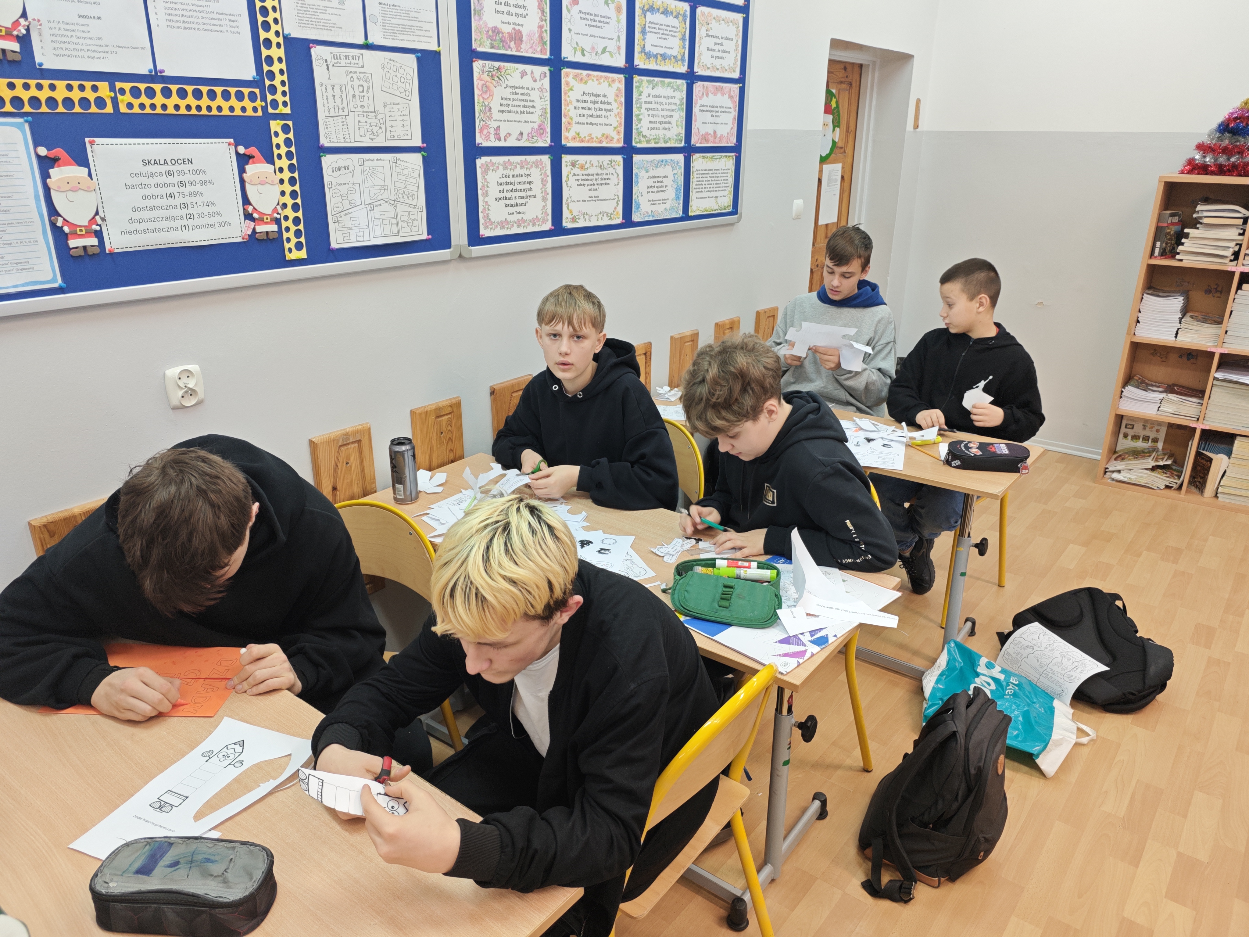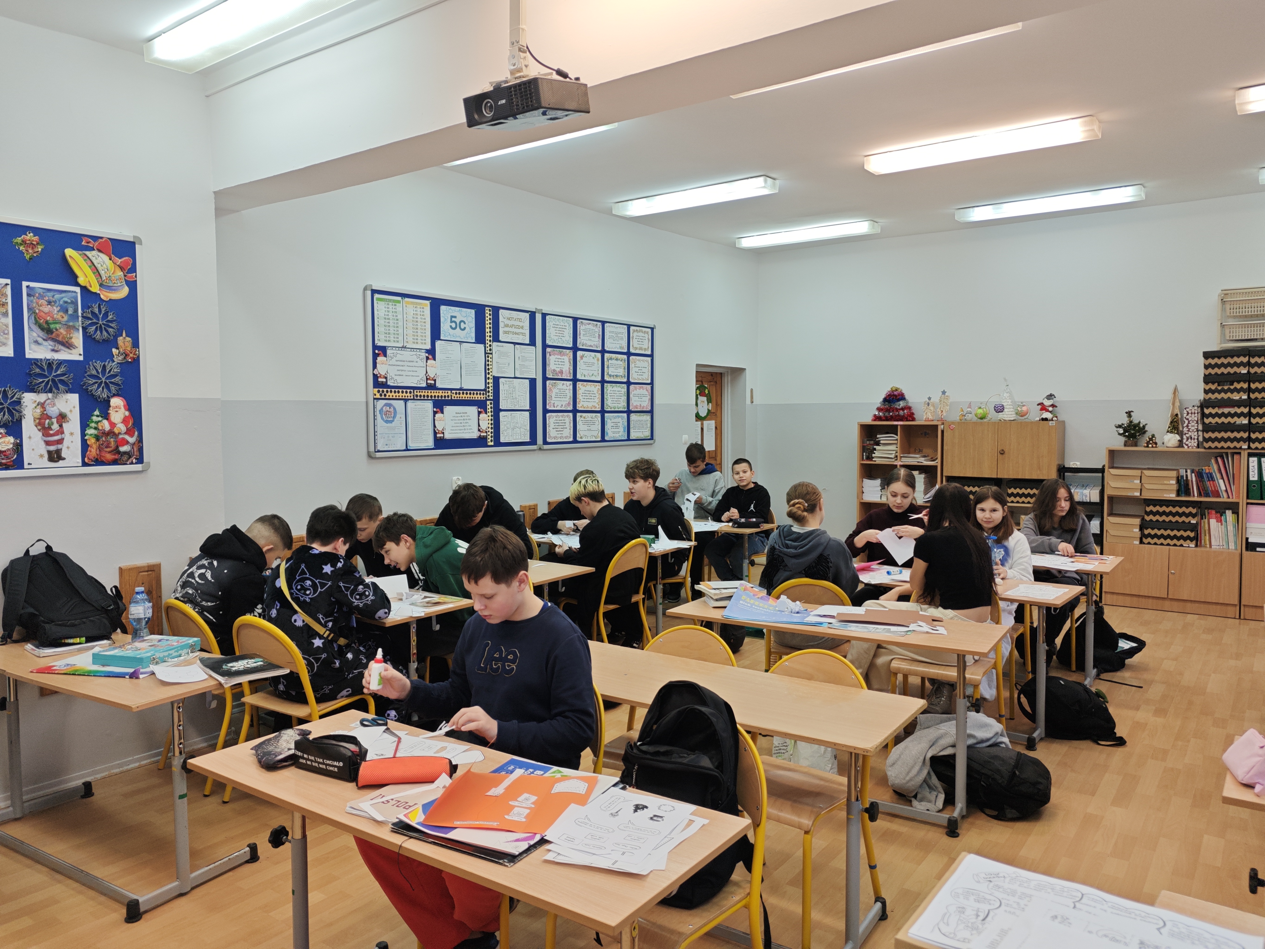 Zadanie zostało wykonane w ramach innowacji „Pomysł na naukę” realizowanej w klasach 5a, 5c i 7d przez p. M. Piórkowską oraz p. M. Ostrowską.