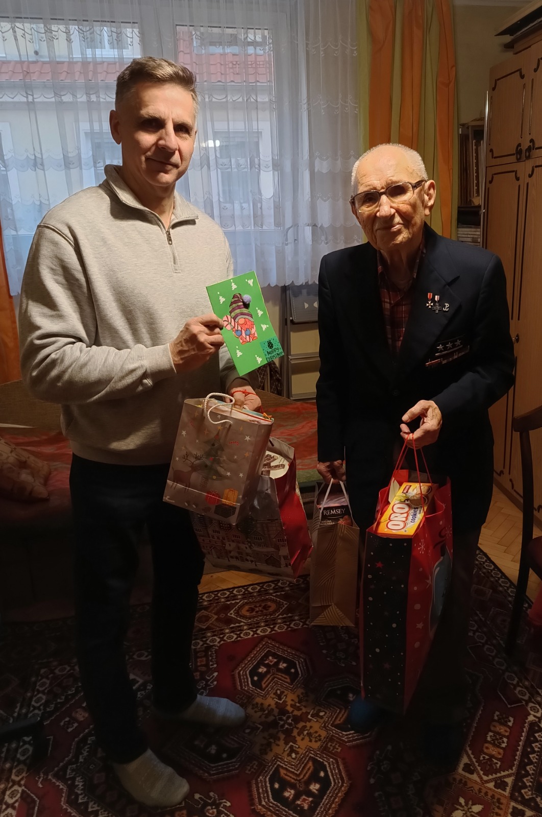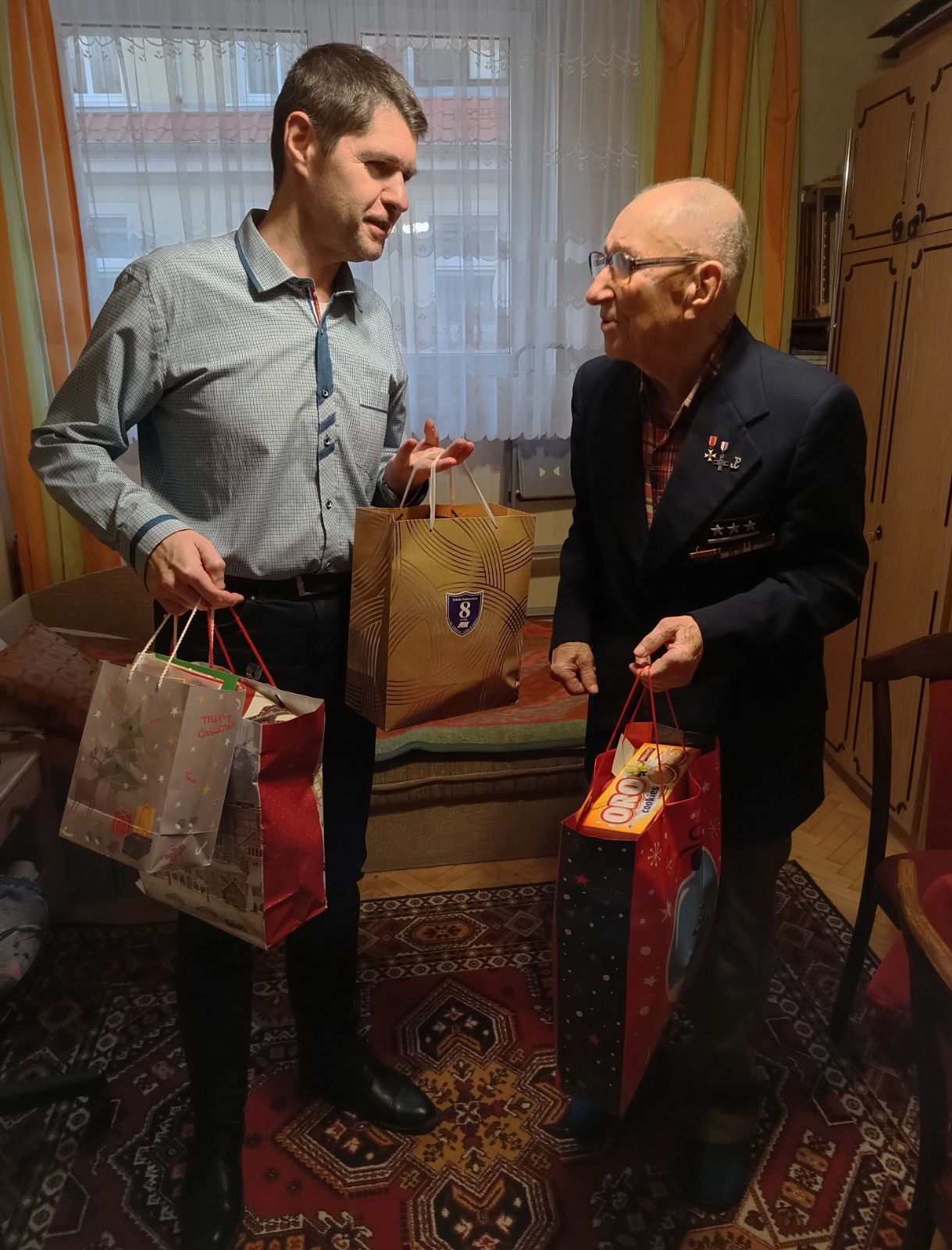Przez dwa tygodnie akcji zebraliśmy dużą ilość słodyczy, ciastek, kaw, herbat, własnoręcznie napisanych życzeń, kartek świątecznych i innych drobnych upominków. Dzień przed Wigilią przedstawiciele Inspektoratu AK odwiedzili ostatnich kombatantów konspiracji niepodległościowej: por. Zbigniewa Hasa oraz p. Zdzisława Gągałę i przekazali życzenia oraz podarunki od całej społeczności SP-8. Nasi kombatanci byli bardzo wzruszeni, serdecznie dziękują za pamięć, życzenia i upominki oraz pozdrawiają wszystkich uczniów i ich rodziców, dyrekcję, nauczycieli i pracowników ósemki.