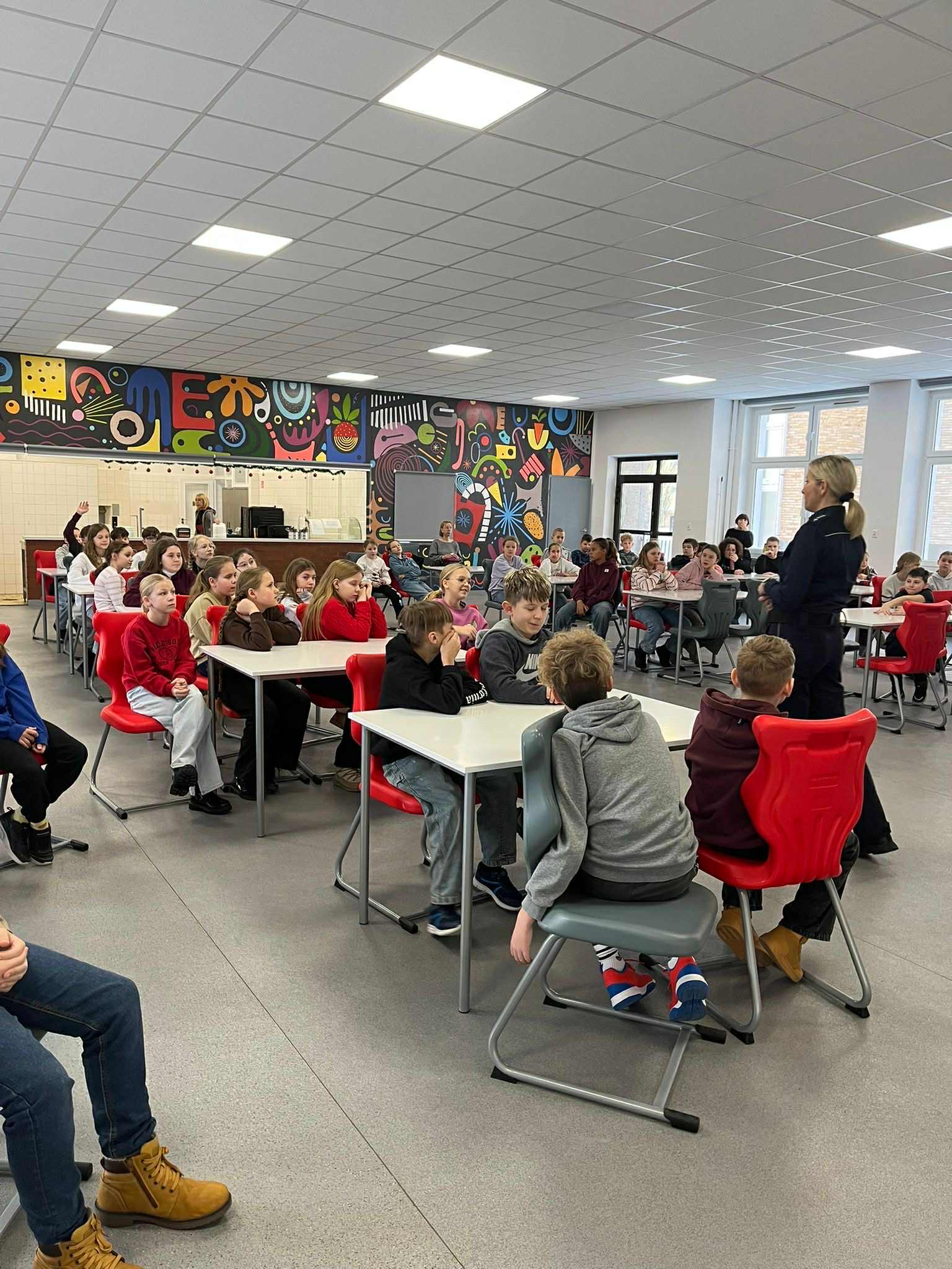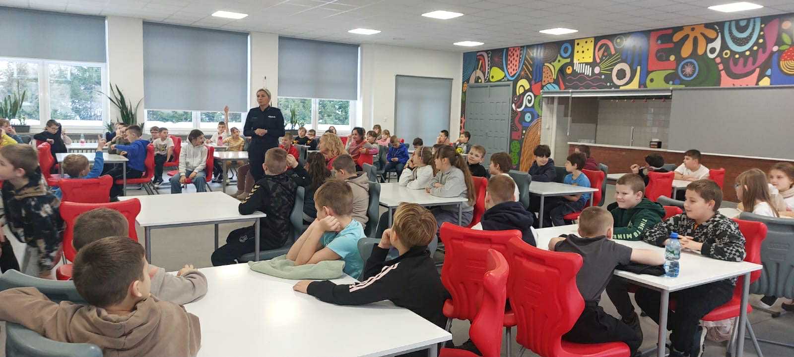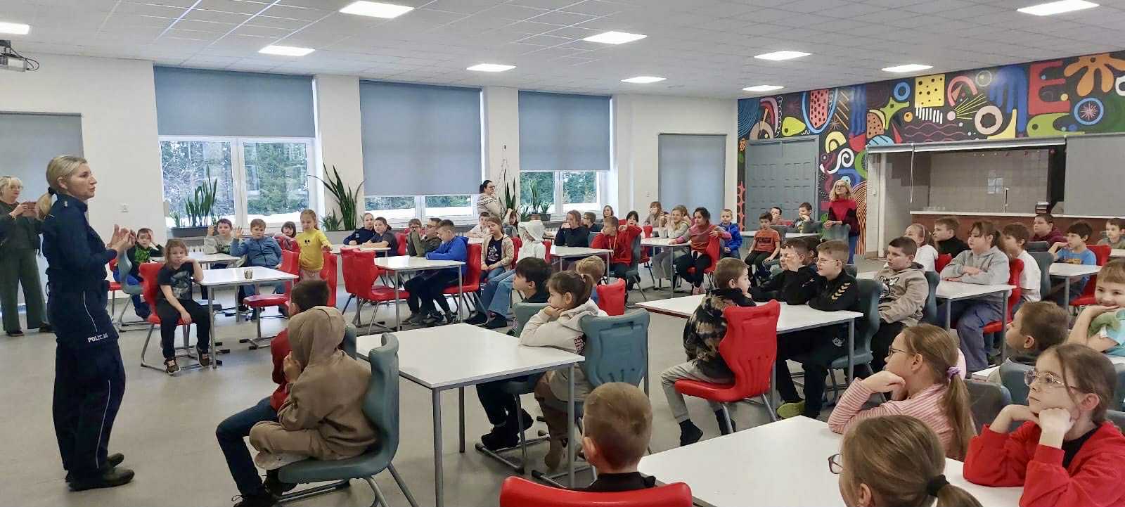 Asp. szt. Kamila Koszałka z Komendy Miejskiej Policji w Słupsku spotkała się z dziećmi, aby porozmawiać o bezpiecznym spędzaniu ferii zimowych.