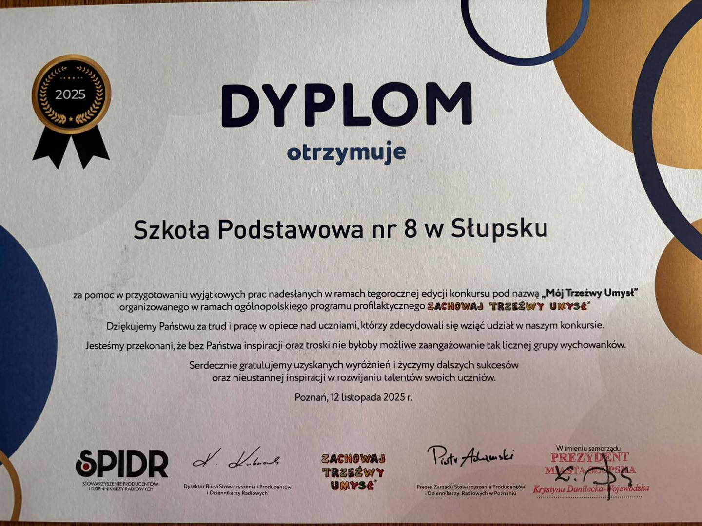 Z radością informujemy, że uczniowie naszej szkoły zostali laureatami ogólnopolskiej kampanii profilaktycznej Zachowaj Trzeźwy Umysł 2025.