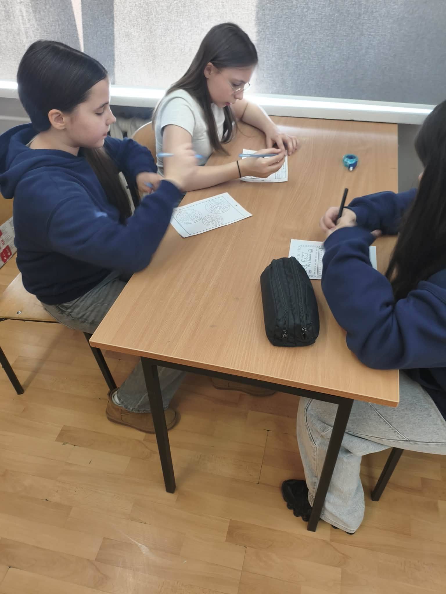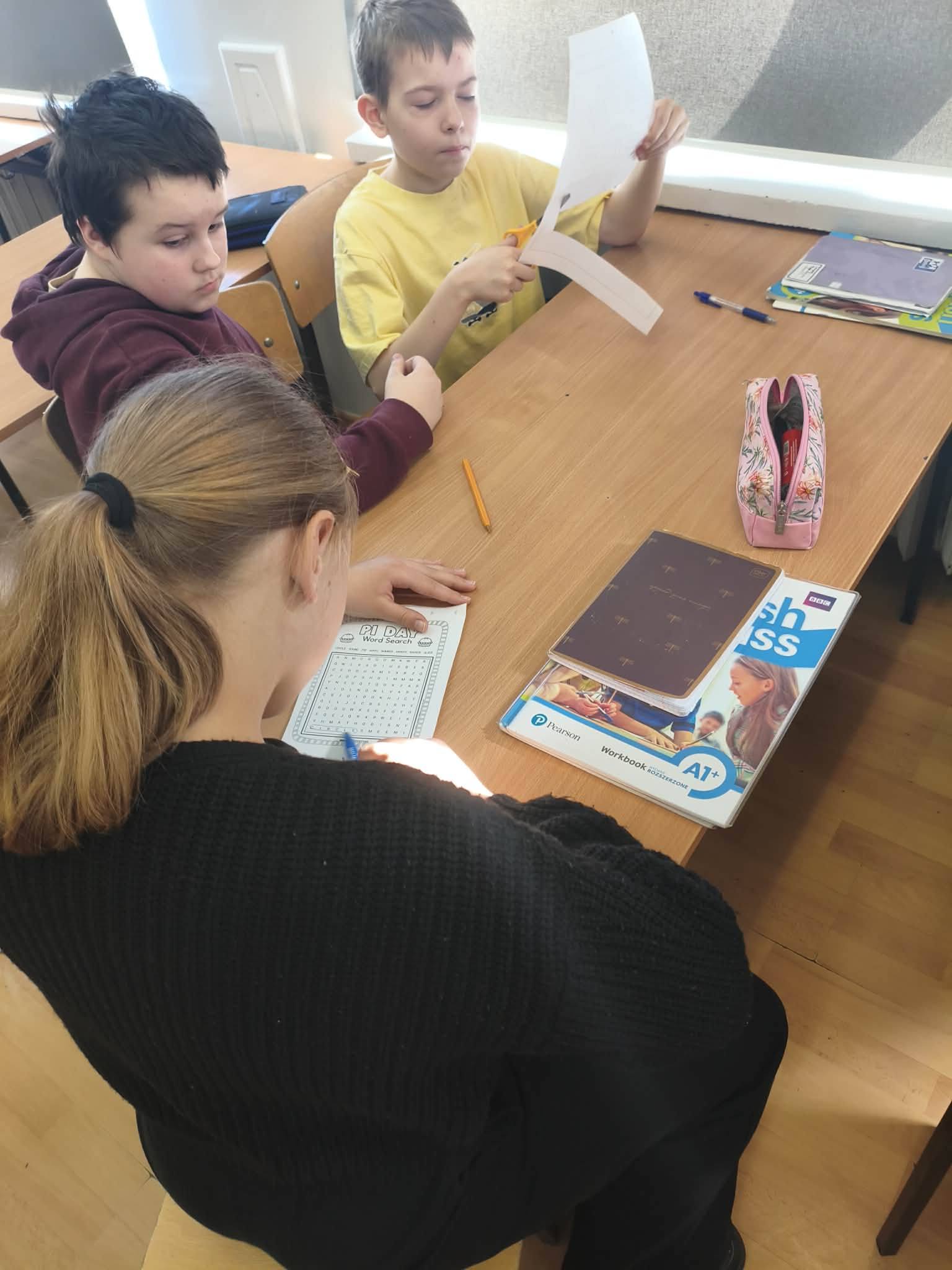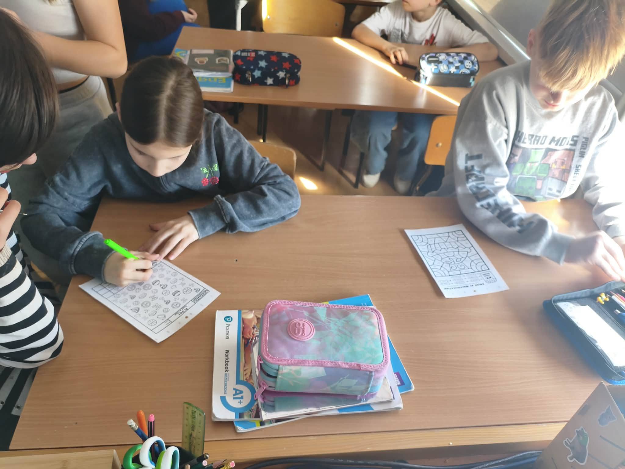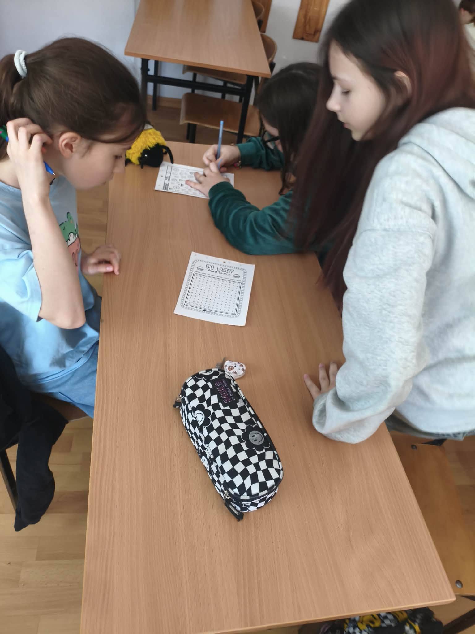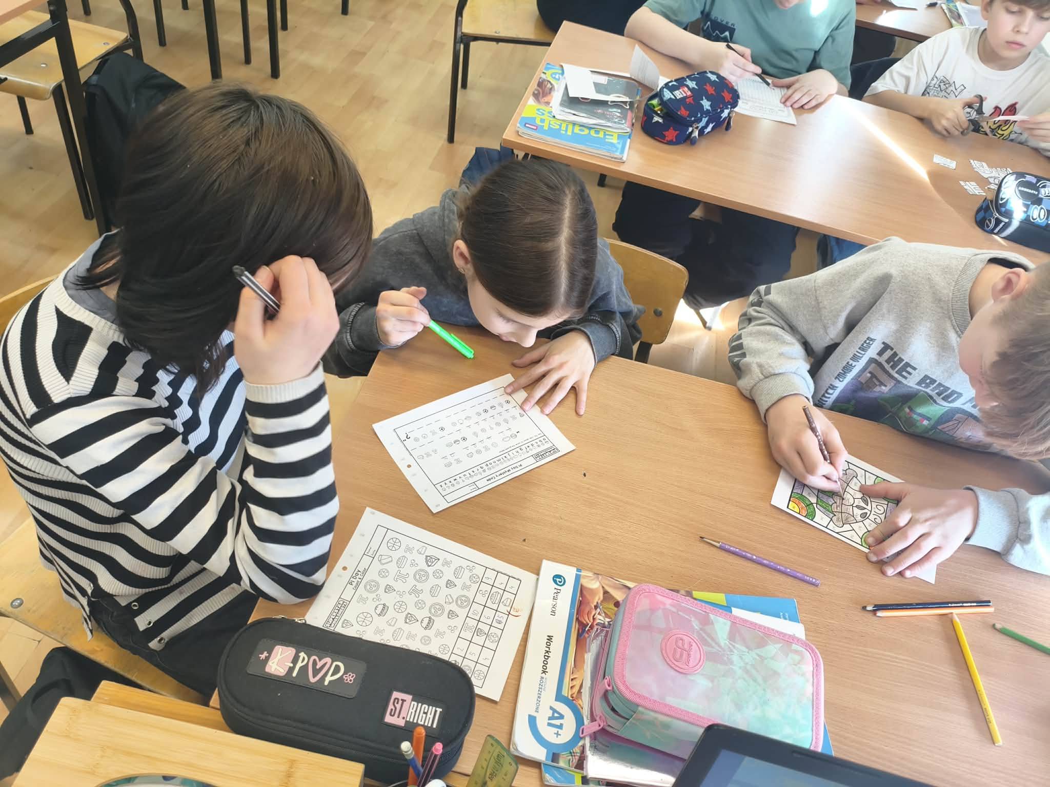 Uczniowie pracowali w 3-osobowych zespołach, rozwiązując różne zadania, które łączyły język angielski z matematyką.