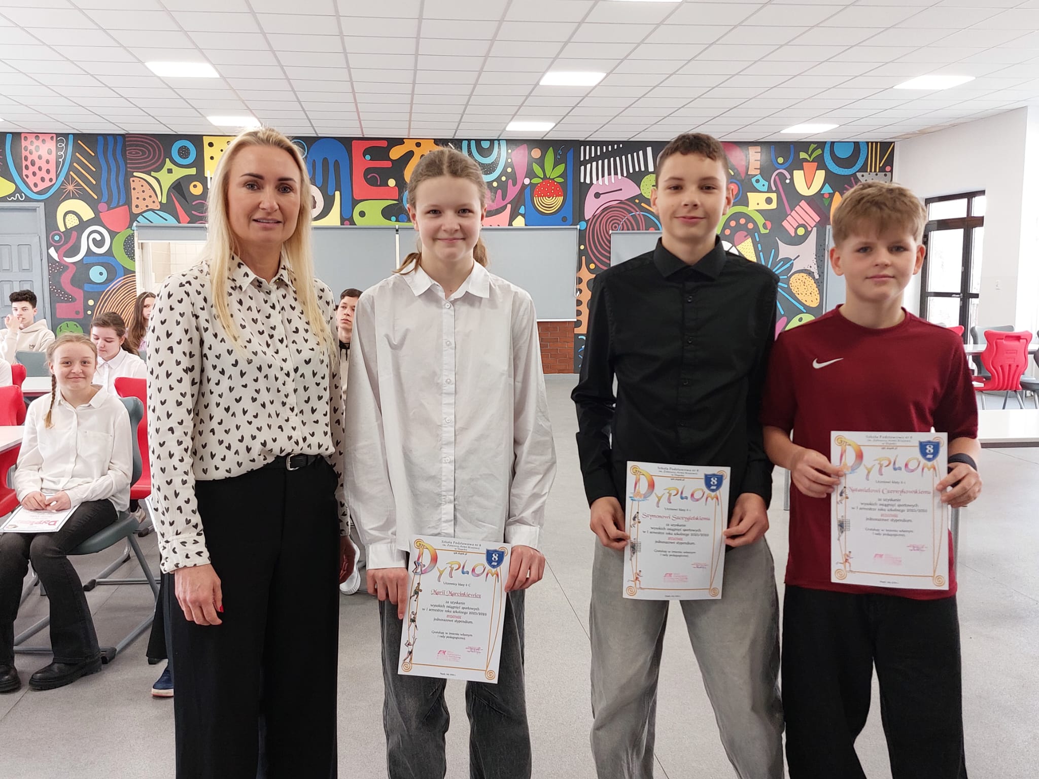 Dyplomami nagrodzeni zostali również uczniowie, którzy otrzymali stypendia za wyniki w nauce i osiągnięcia sportowe.