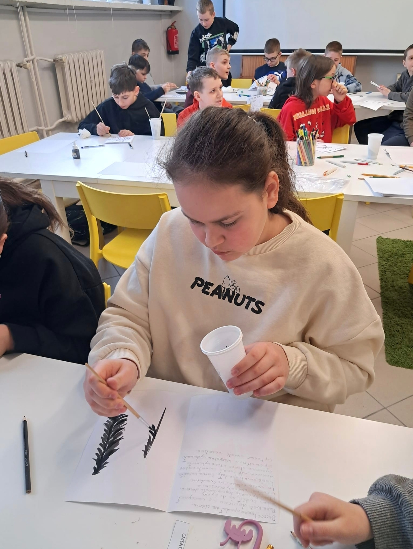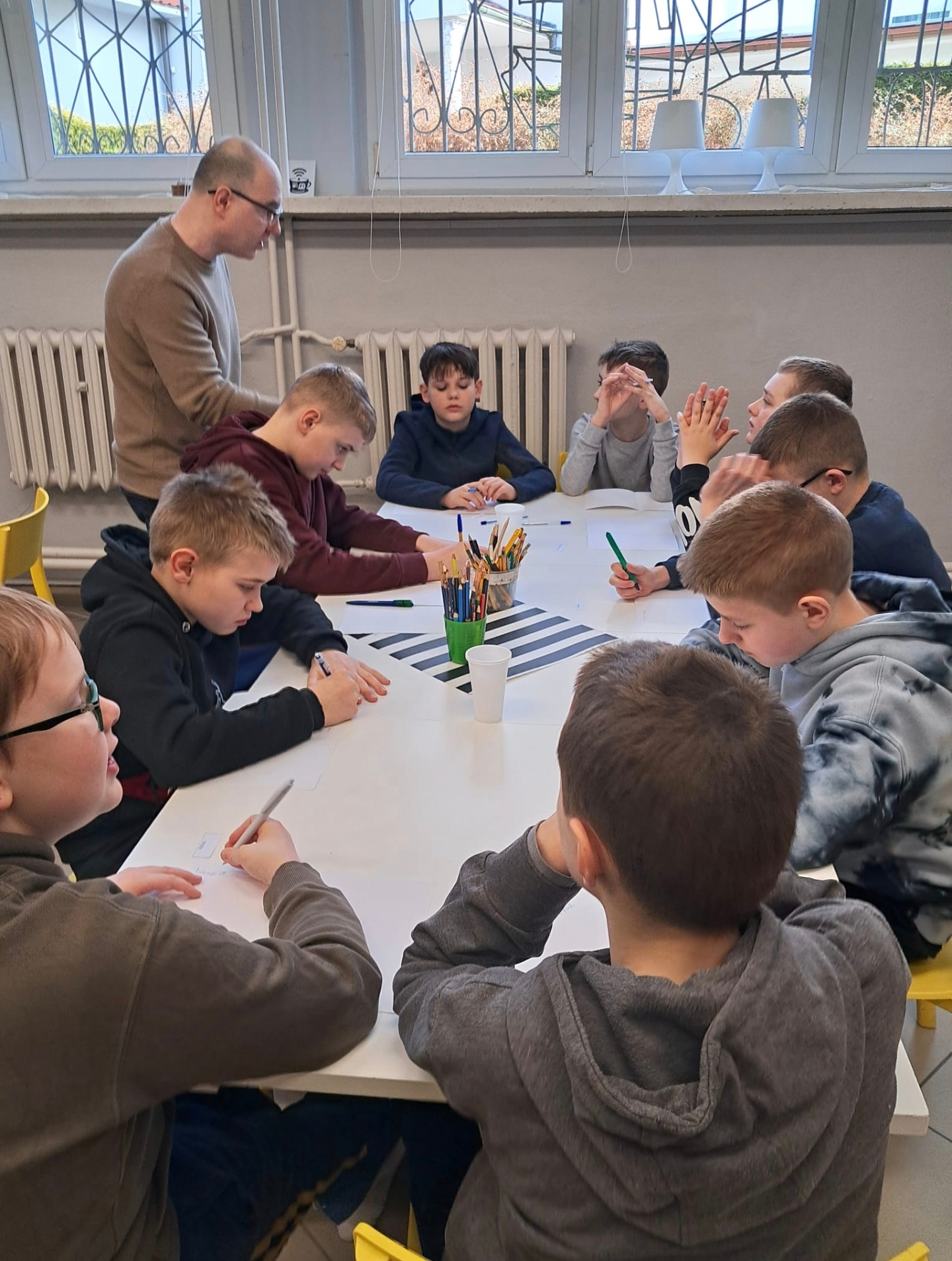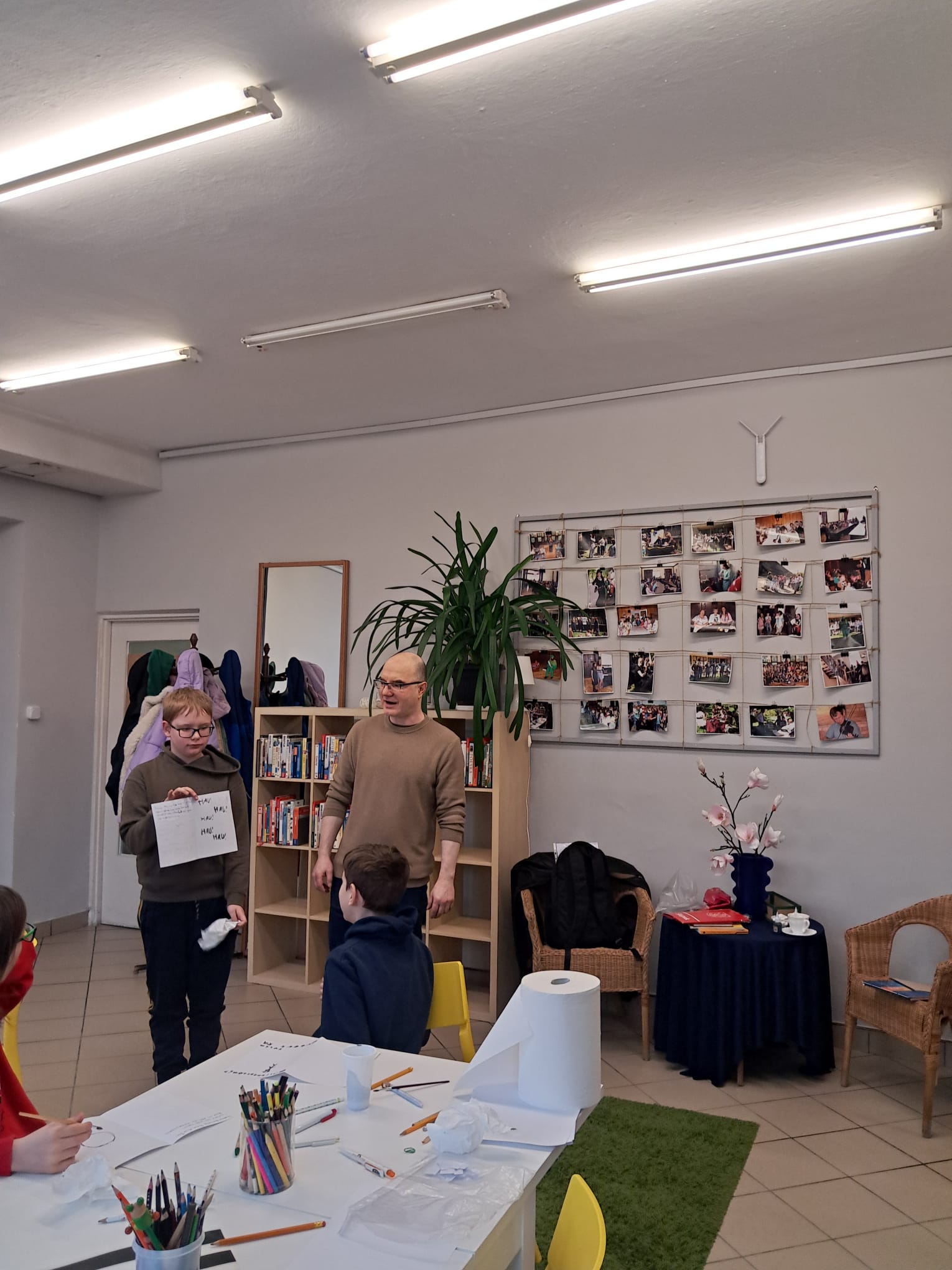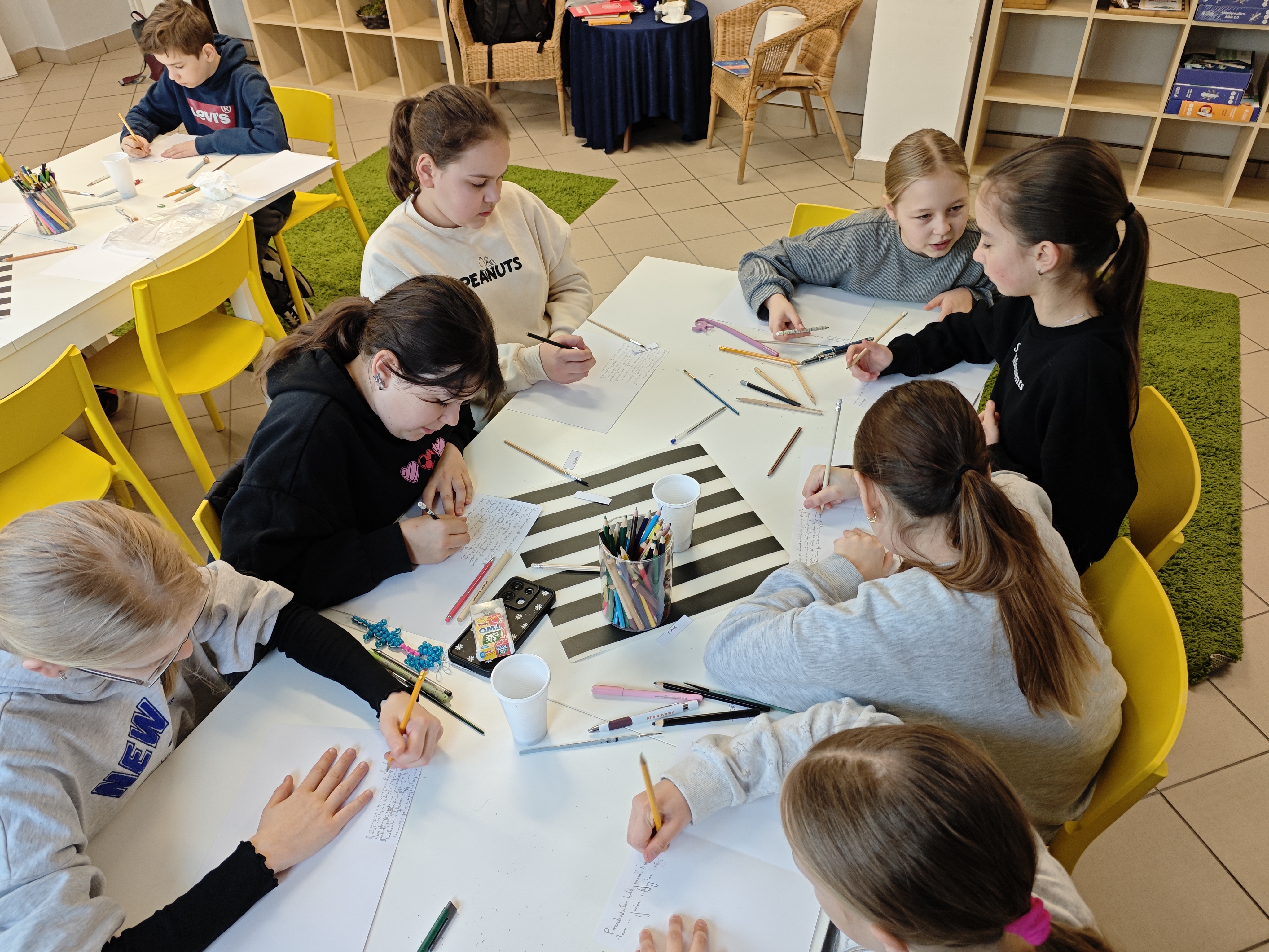 23.03.2026 uczniowie klasy 4c i 5c wzięli udział w warsztatach pisarskich w Filii nr 8 Miejskiej Biblioteki Publicznej realizowanych w ramach projektu "Kawiarenka literacka miejscem spotkań". Warsztaty poprowadził pan Daniel Odija - wybitny pisarz, dziennikarz, publicysta i animator kultury pochodzący ze Słupska.