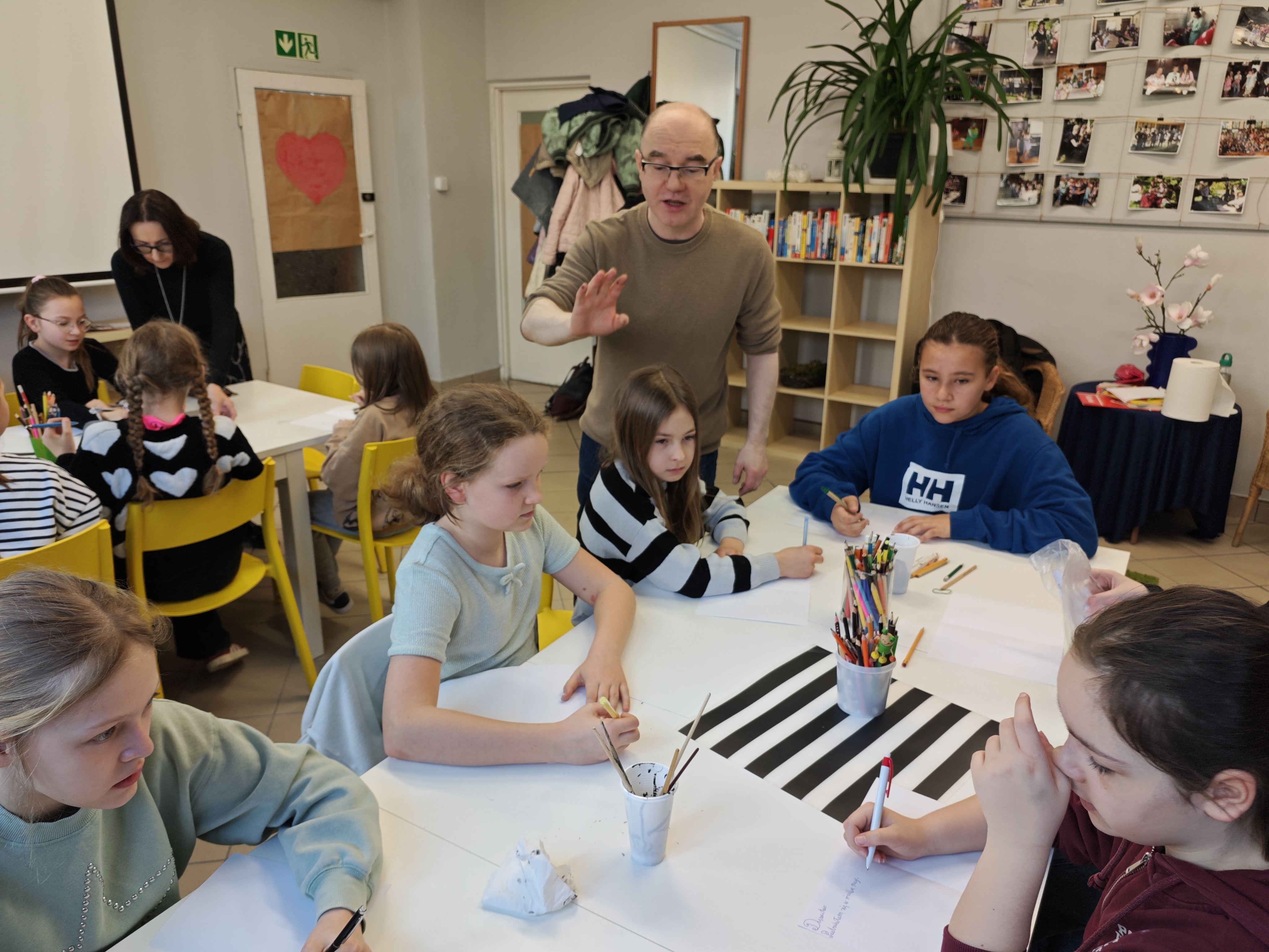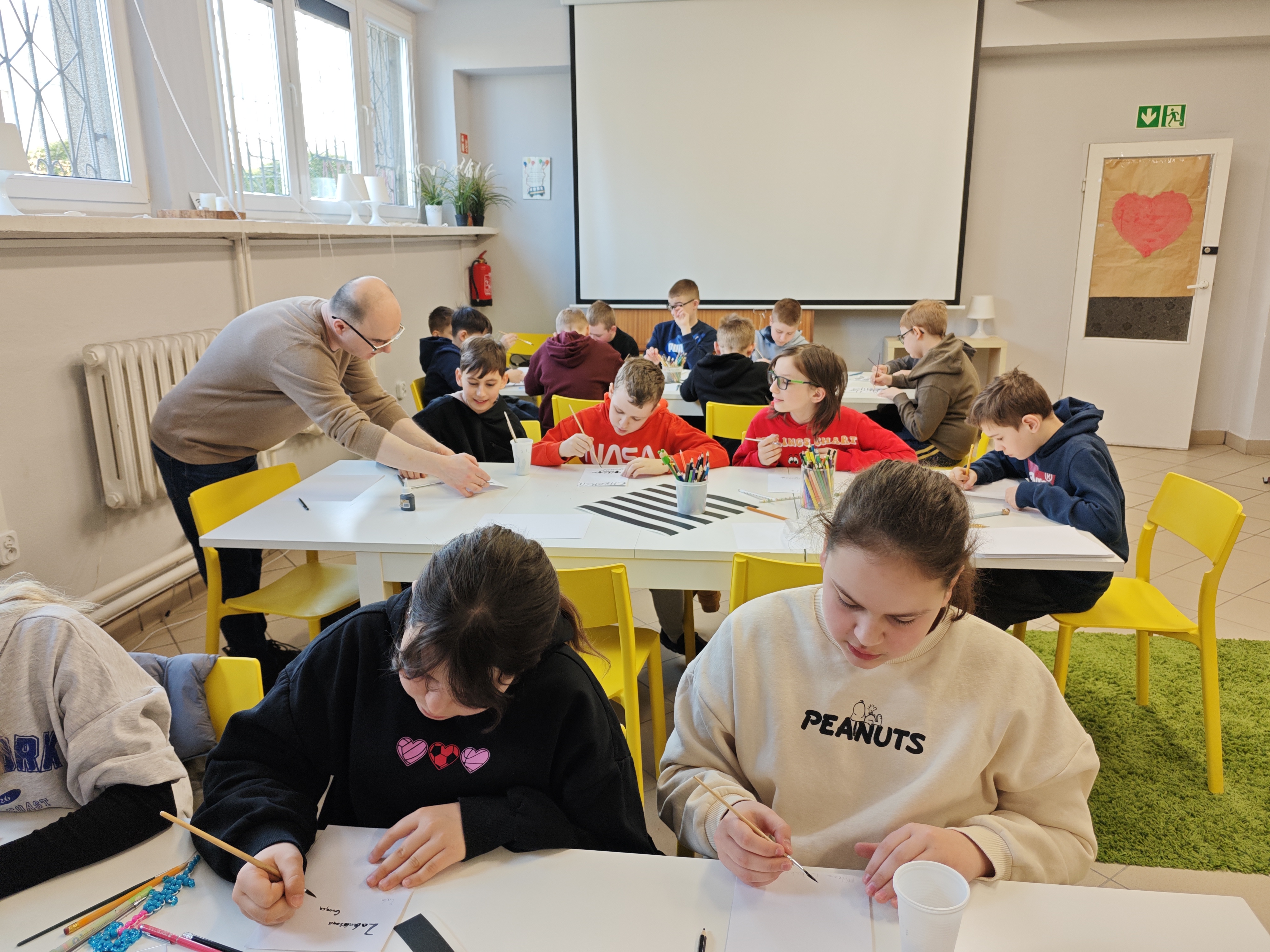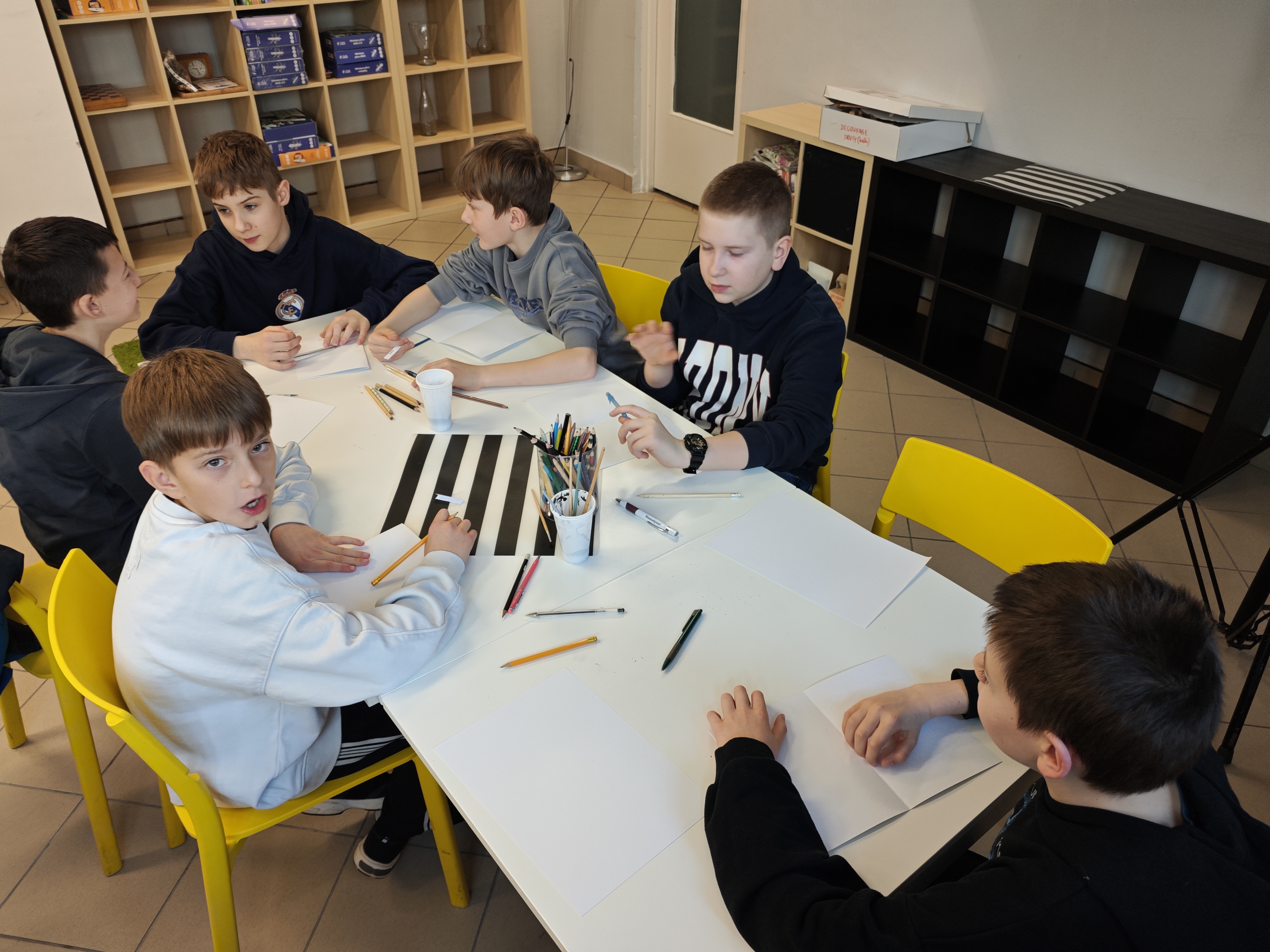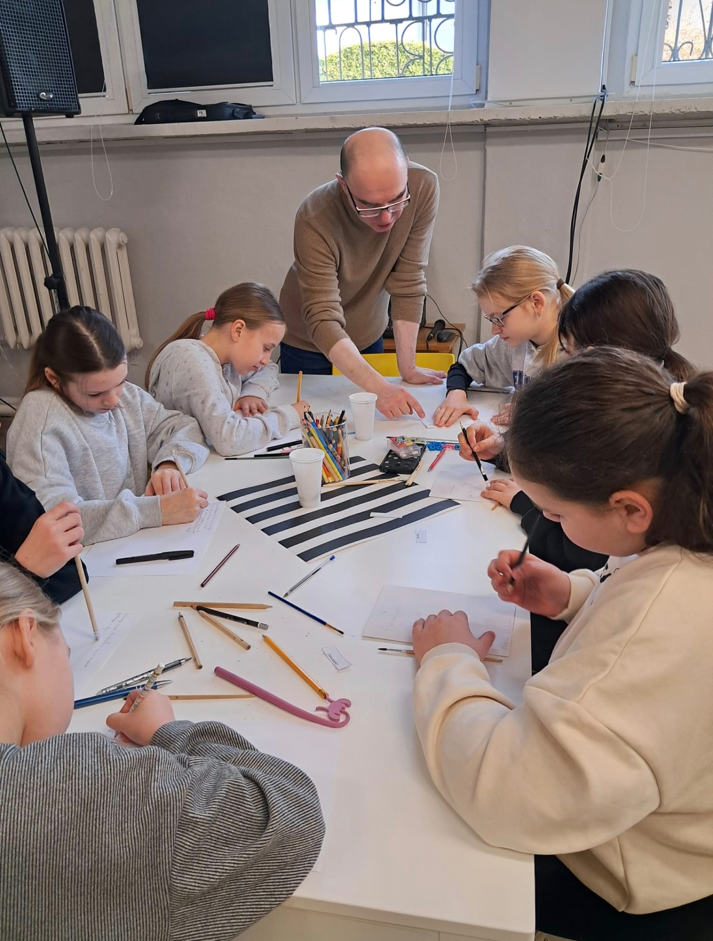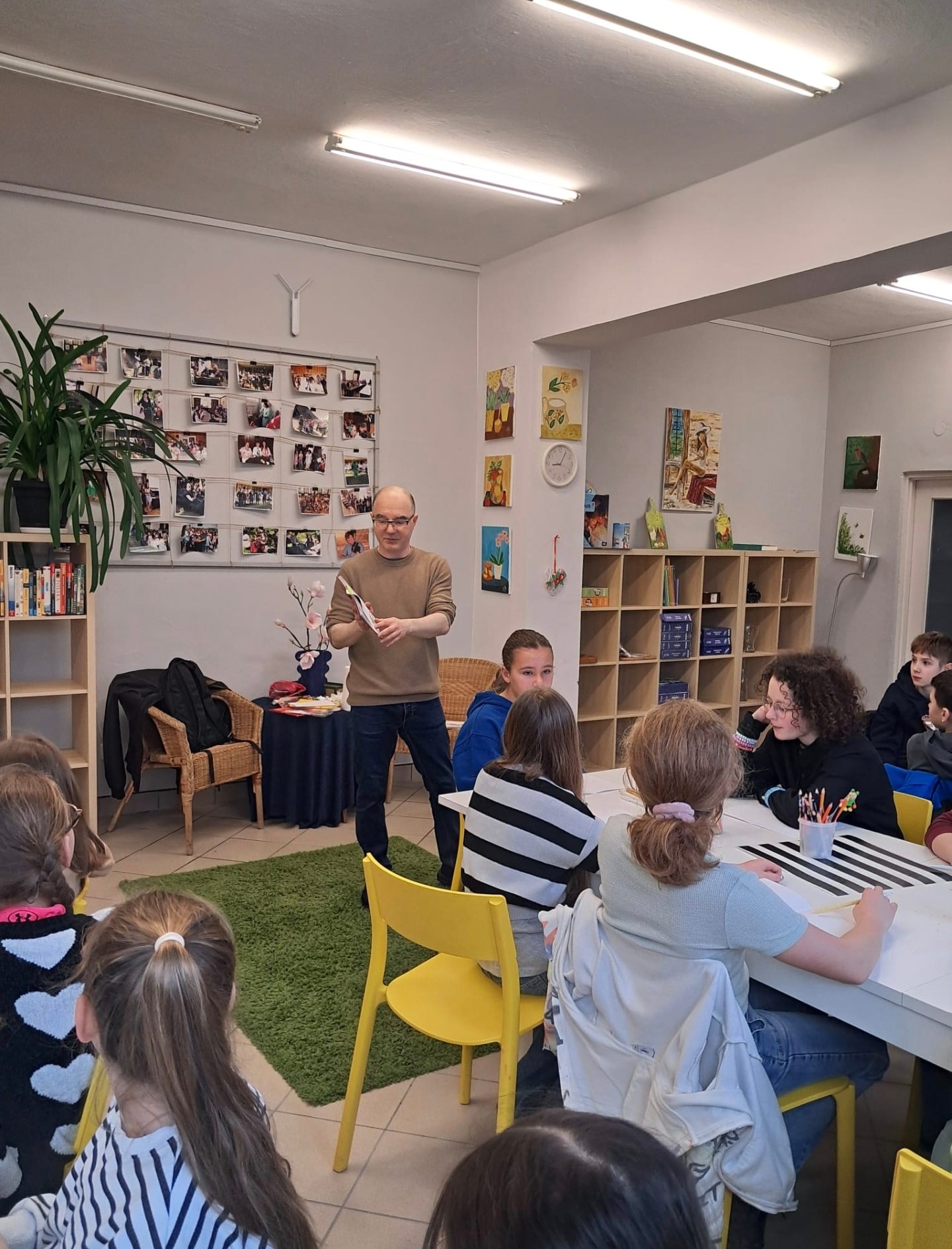 23.03.2026 uczniowie klasy 4c i 5c wzięli udział w warsztatach pisarskich w Filii nr 8 Miejskiej Biblioteki Publicznej realizowanych w ramach projektu "Kawiarenka literacka miejscem spotkań". Warsztaty poprowadził pan Daniel Odija - wybitny pisarz, dziennikarz, publicysta i animator kultury pochodzący ze Słupska.