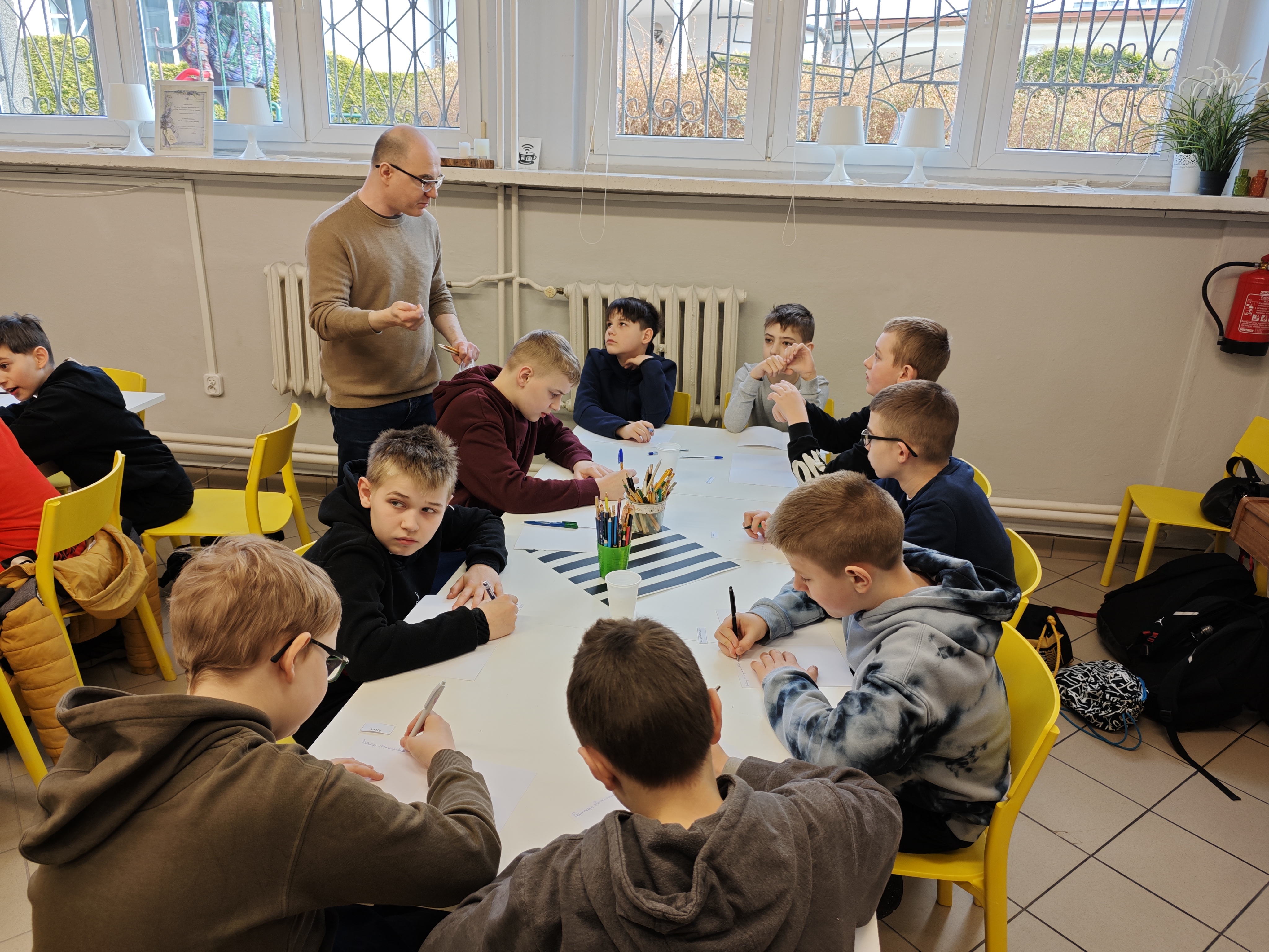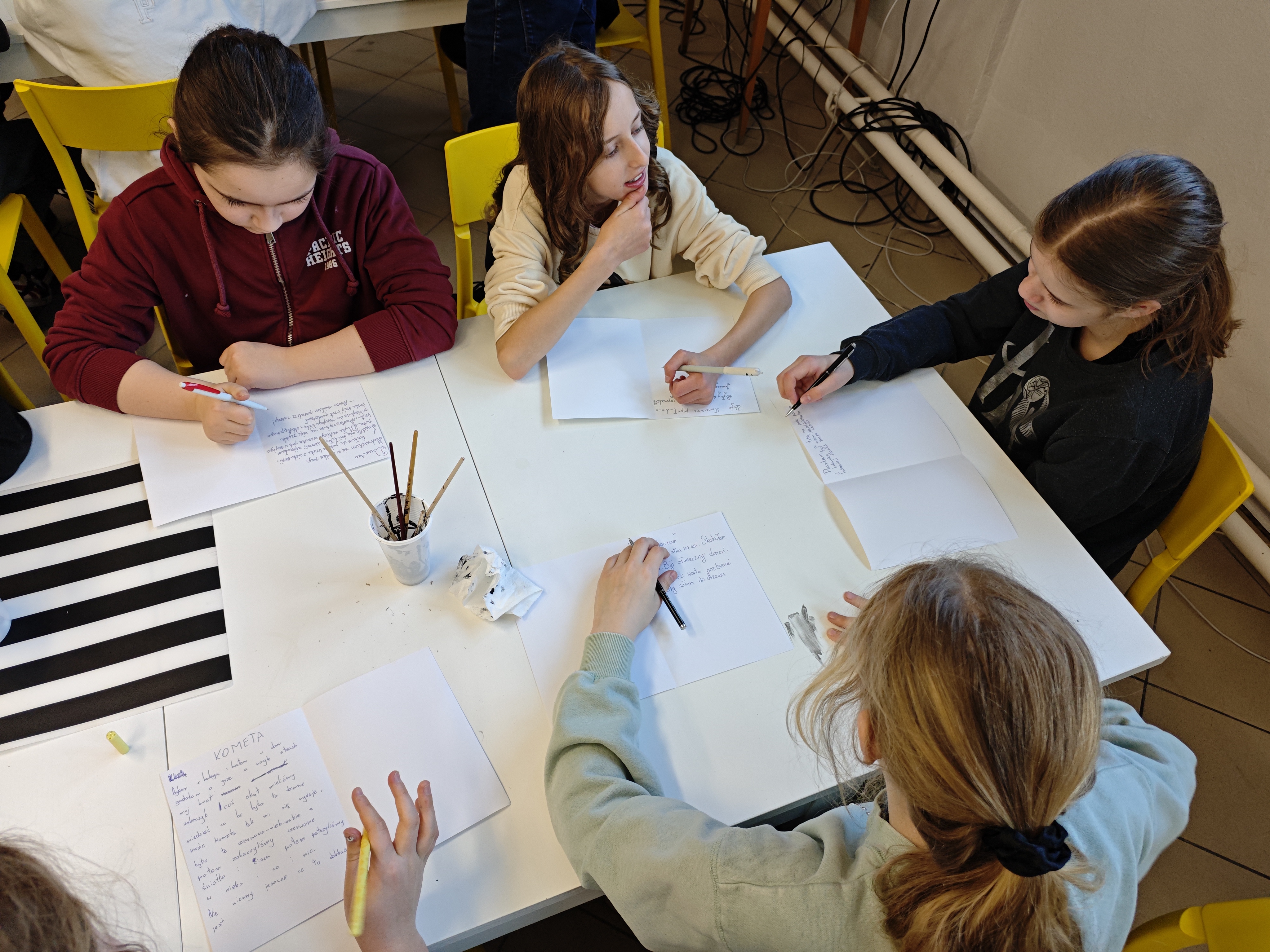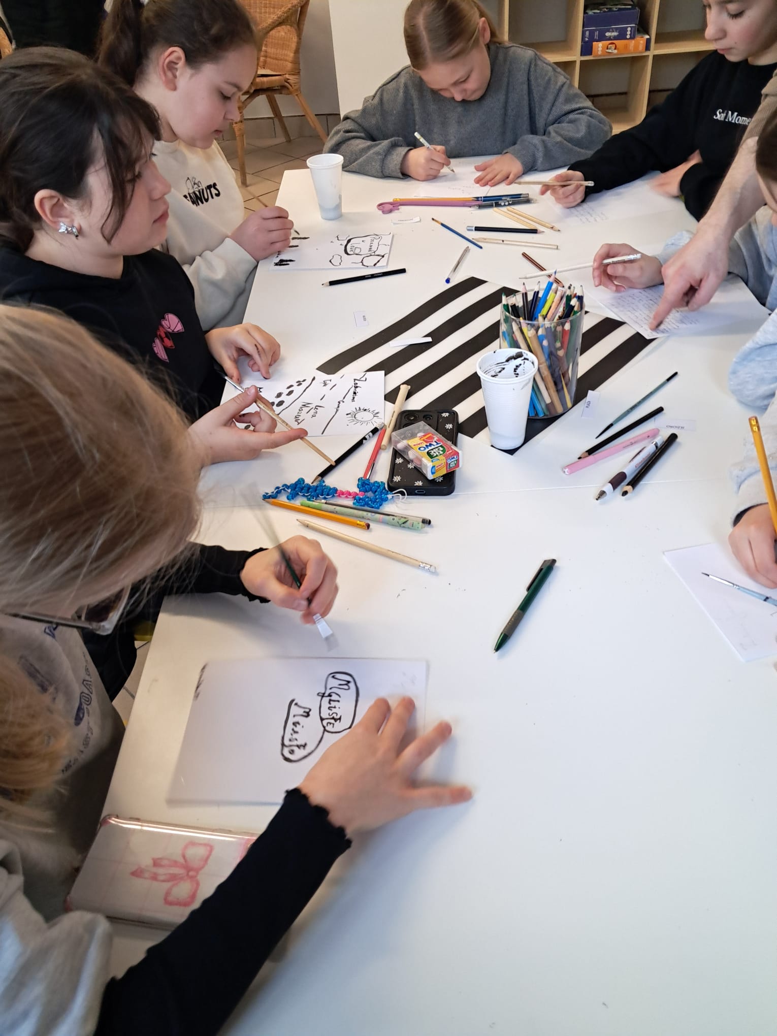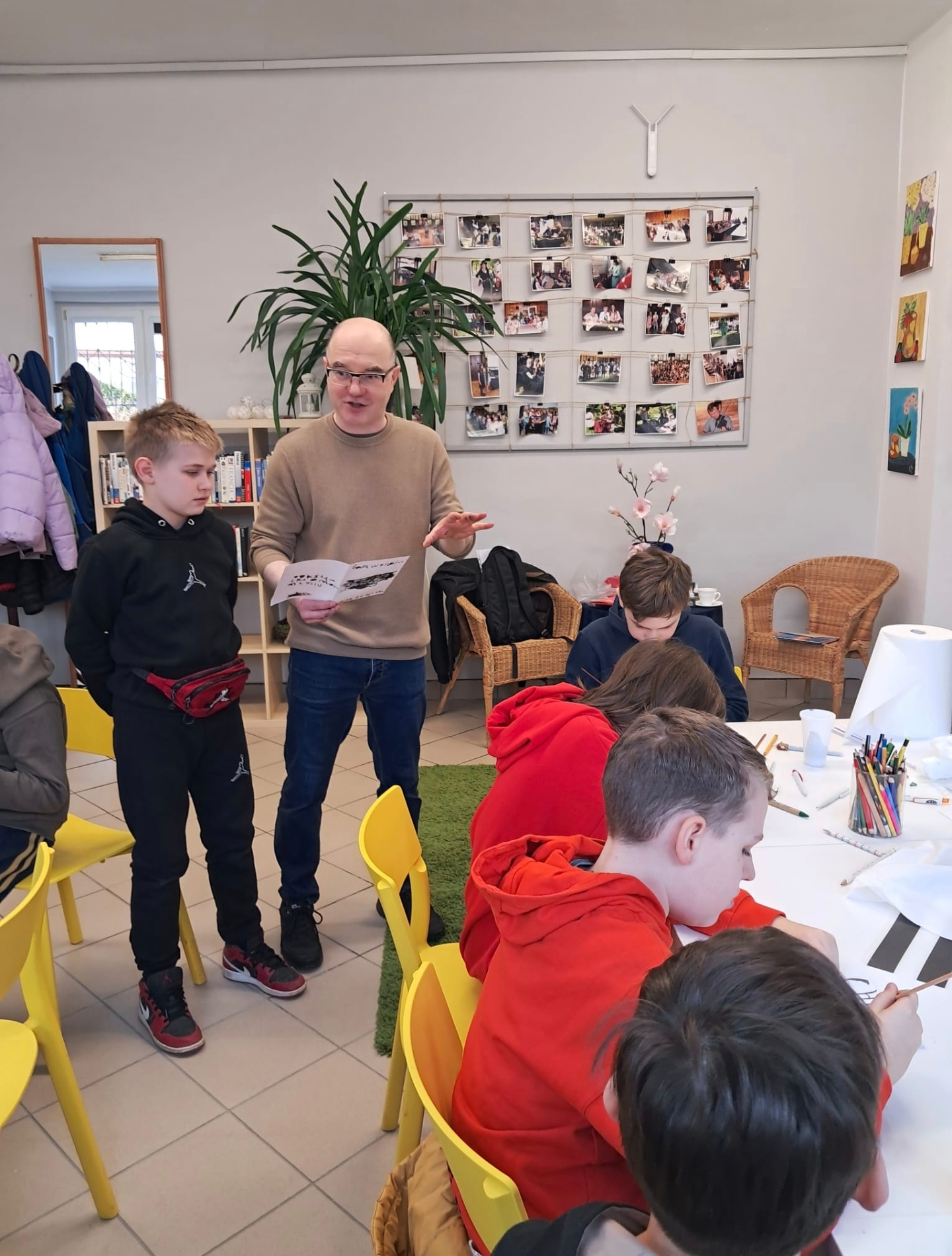 23.03.2026 uczniowie klasy 4c i 5c wzięli udział w warsztatach pisarskich w Filii nr 8 Miejskiej Biblioteki Publicznej realizowanych w ramach projektu "Kawiarenka literacka miejscem spotkań". Warsztaty poprowadził pan Daniel Odija - wybitny pisarz, dziennikarz, publicysta i animator kultury pochodzący ze Słupska.