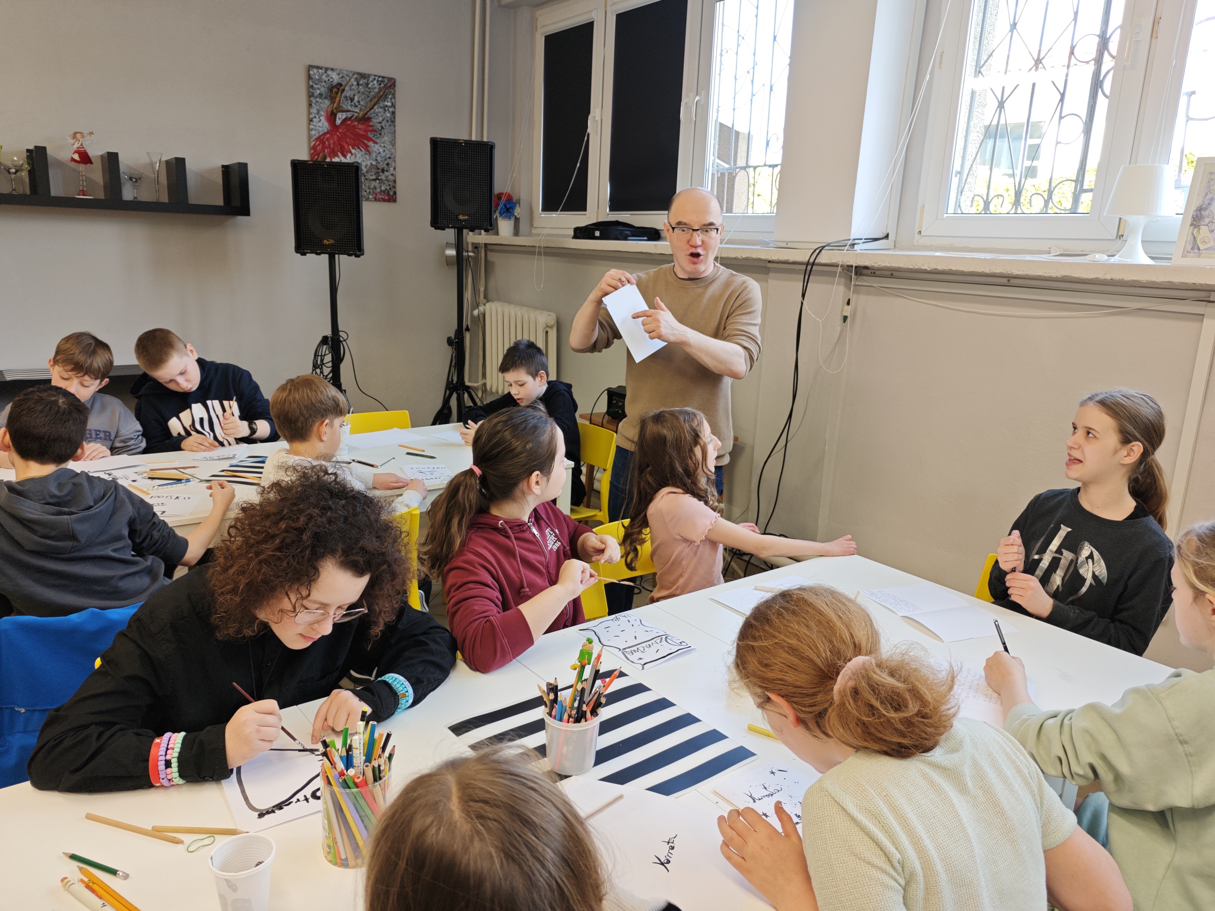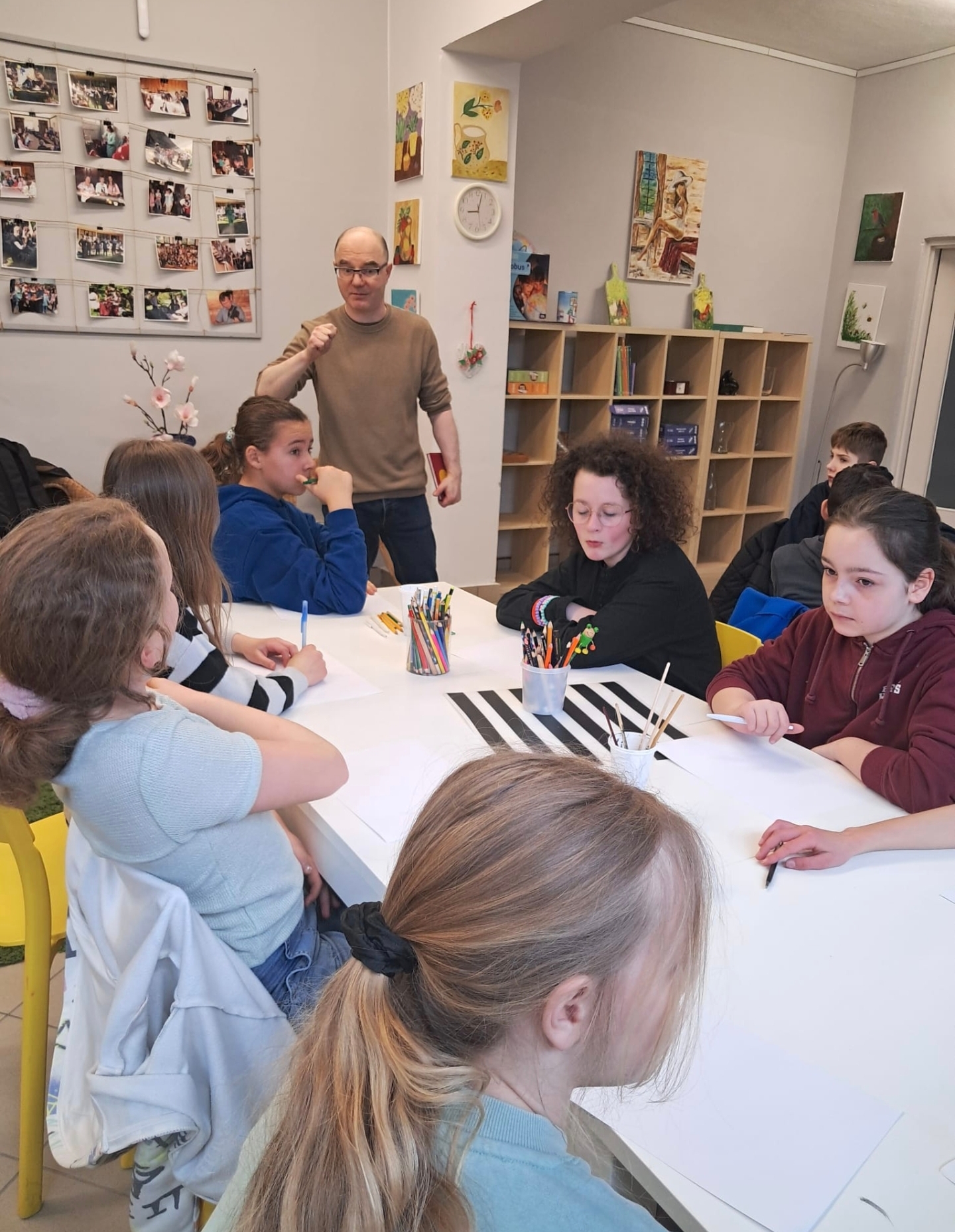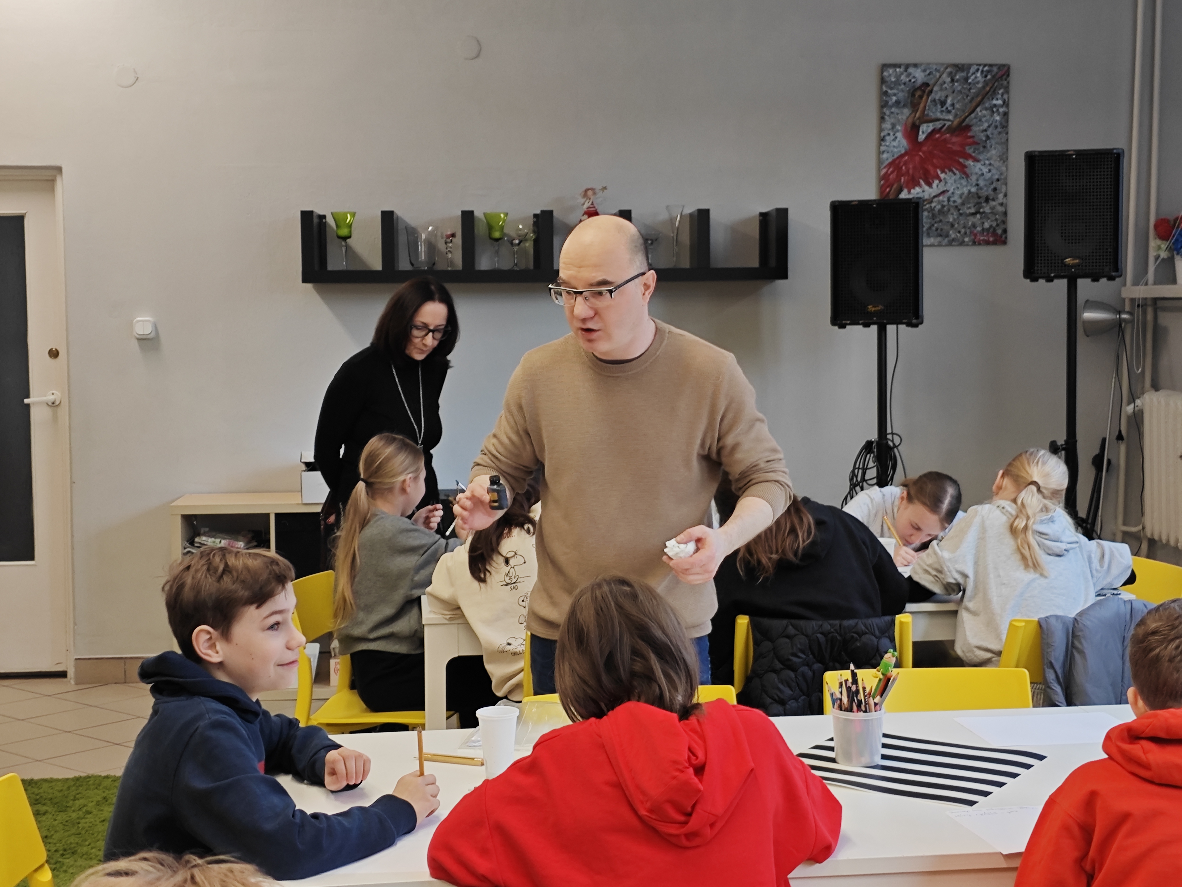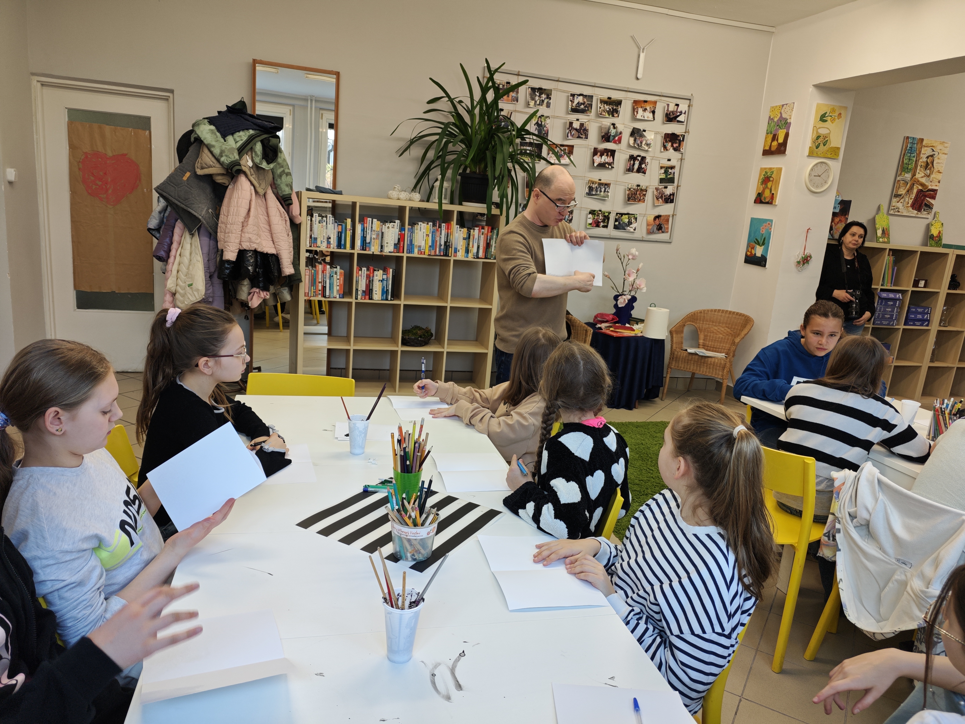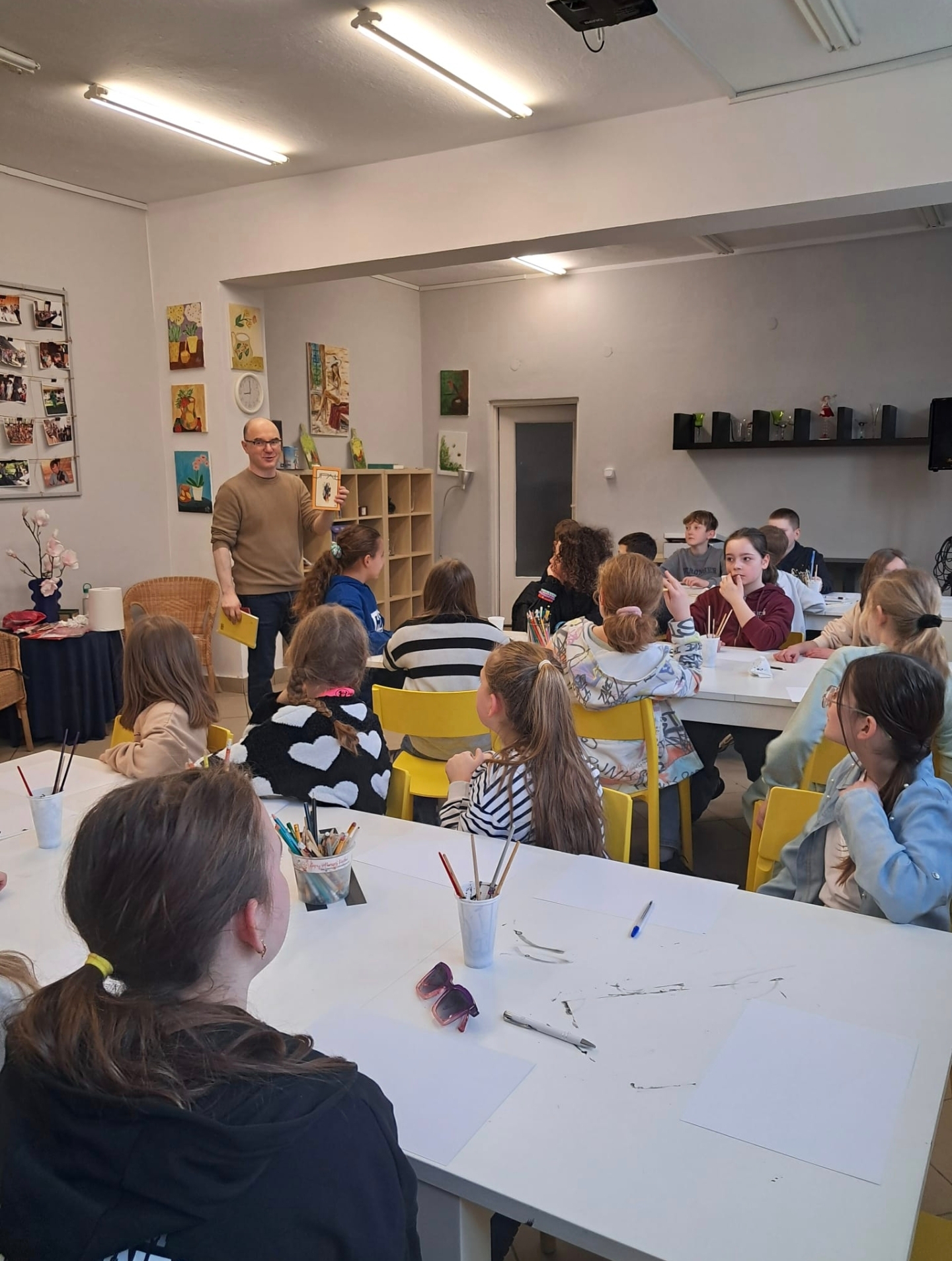 23.03.2026 uczniowie klasy 4c i 5c wzięli udział w warsztatach pisarskich w Filii nr 8 Miejskiej Biblioteki Publicznej realizowanych w ramach projektu "Kawiarenka literacka miejscem spotkań". Warsztaty poprowadził pan Daniel Odija - wybitny pisarz, dziennikarz, publicysta i animator kultury pochodzący ze Słupska.