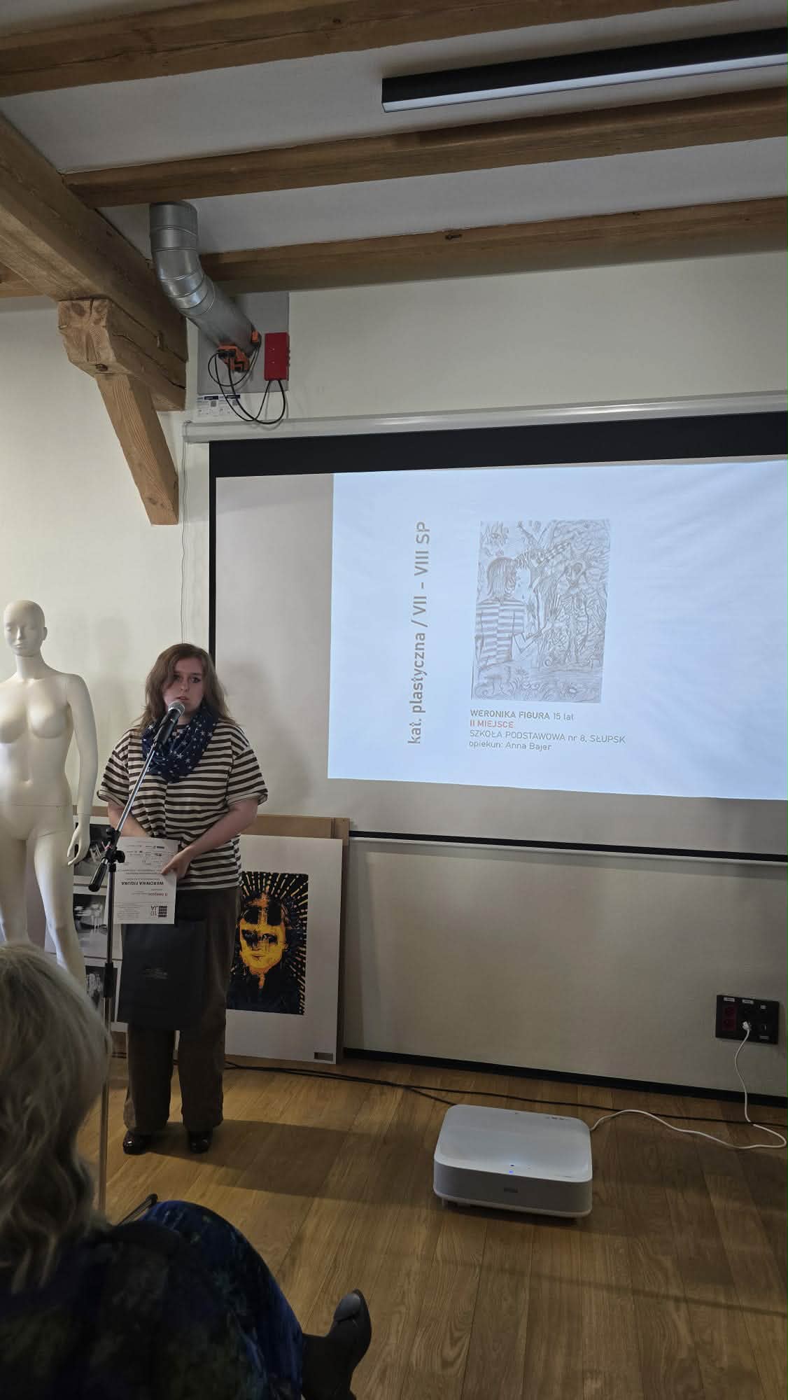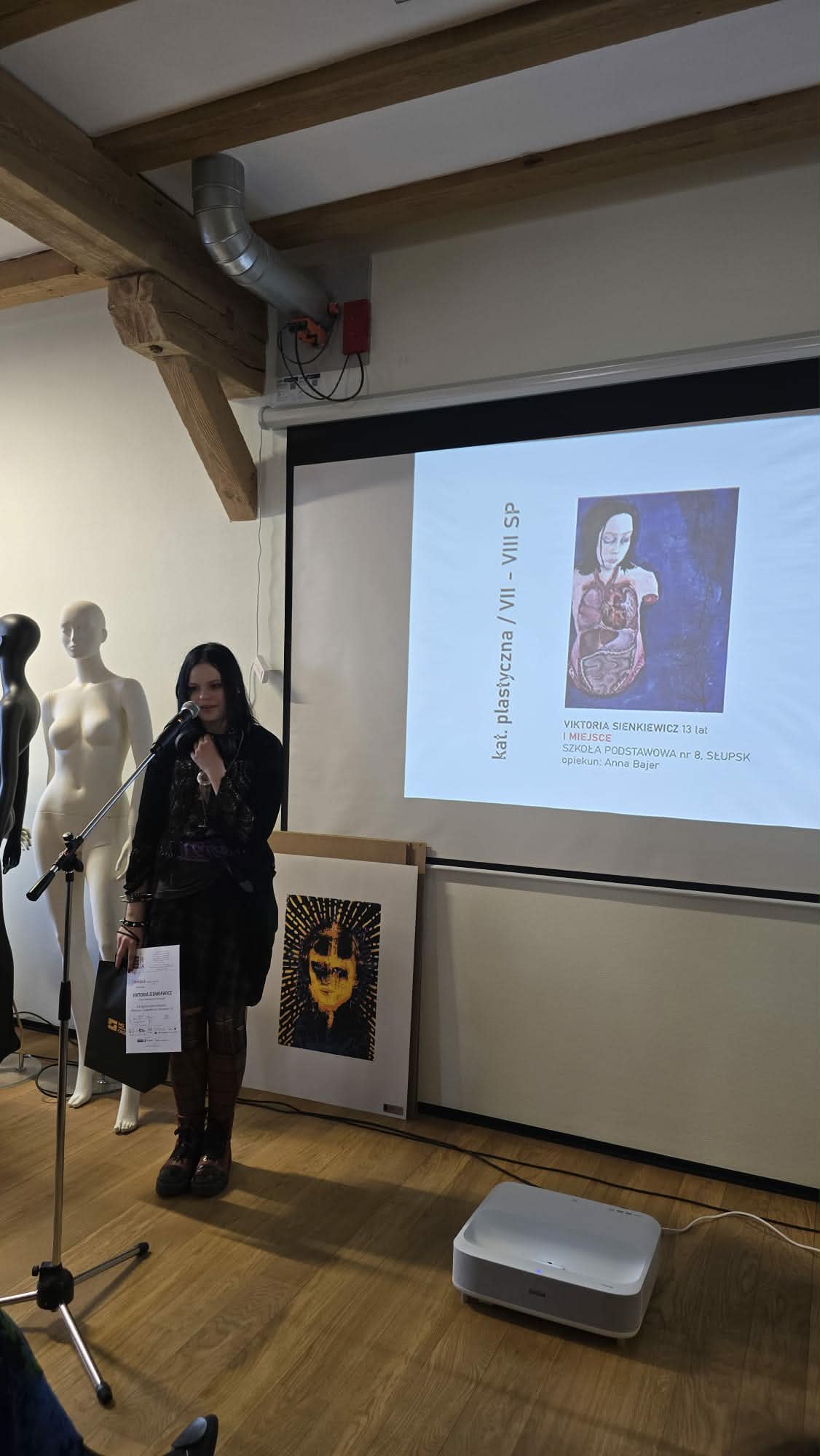 organizowanego przez Liceum Plastyczne „Drzewniak” w Słupsku. Wydarzenie zgromadziło wielu utalentowanych uczniów z całej Polski, prezentujących swoje artystyczne interpretacje tematu tożsamości, emocji i spojrzenia na siebie. Szczególnym powodem do dumy okazał się sukces naszych uczennic w kategorii klas 7–8 szkół podstawowych. Pierwsze miejsce zdobyła Viktoria Sienkiewicz z klasy 7d, której praca zachwyciła jury dojrzałością przekazu oraz oryginalnością formy. Drugie miejsce przypadło Weronice Figurze z klasy 8d, wyróżnionej za wyjątkową wrażliwość artystyczną i dopracowaną kompozycję.