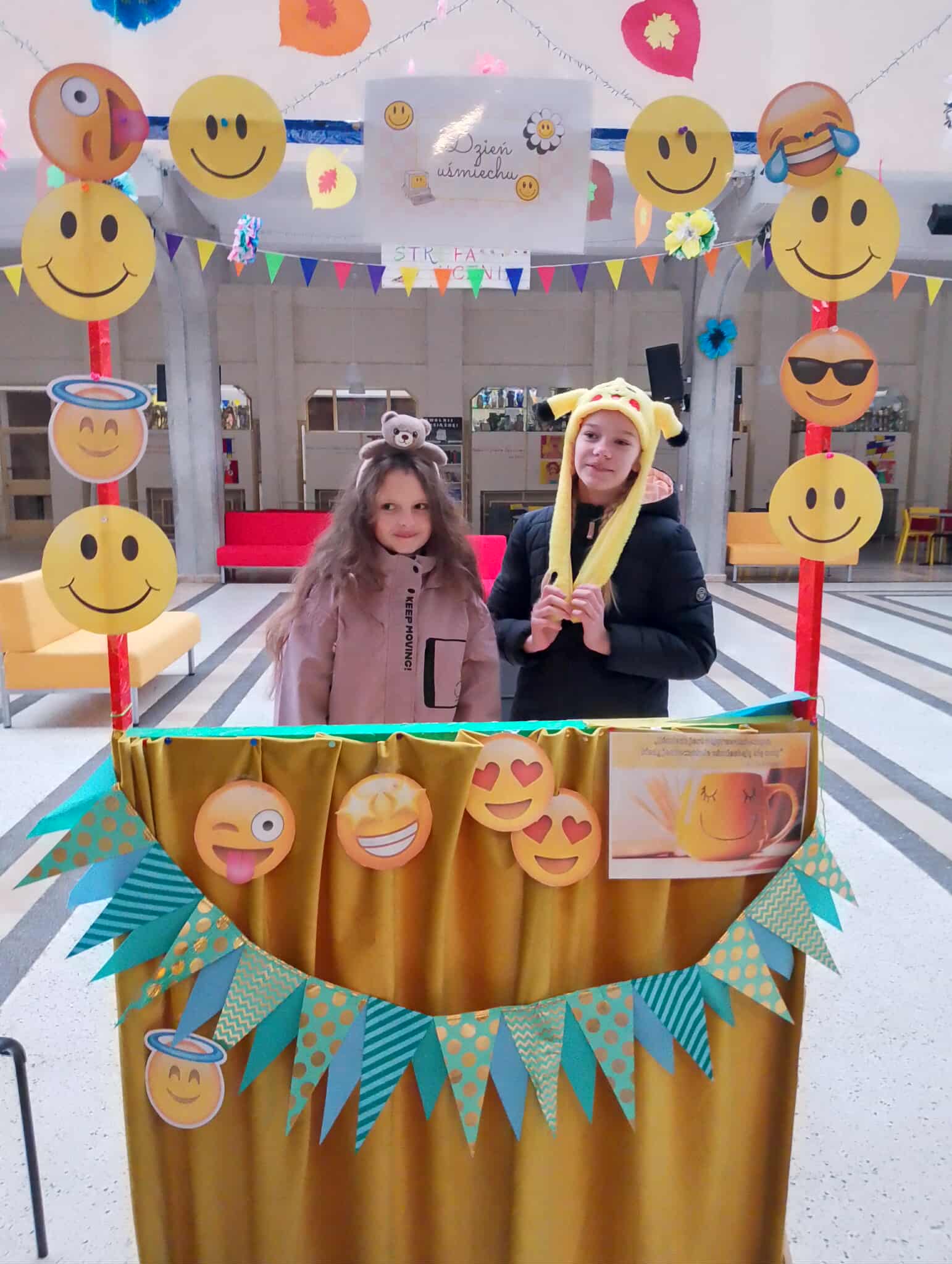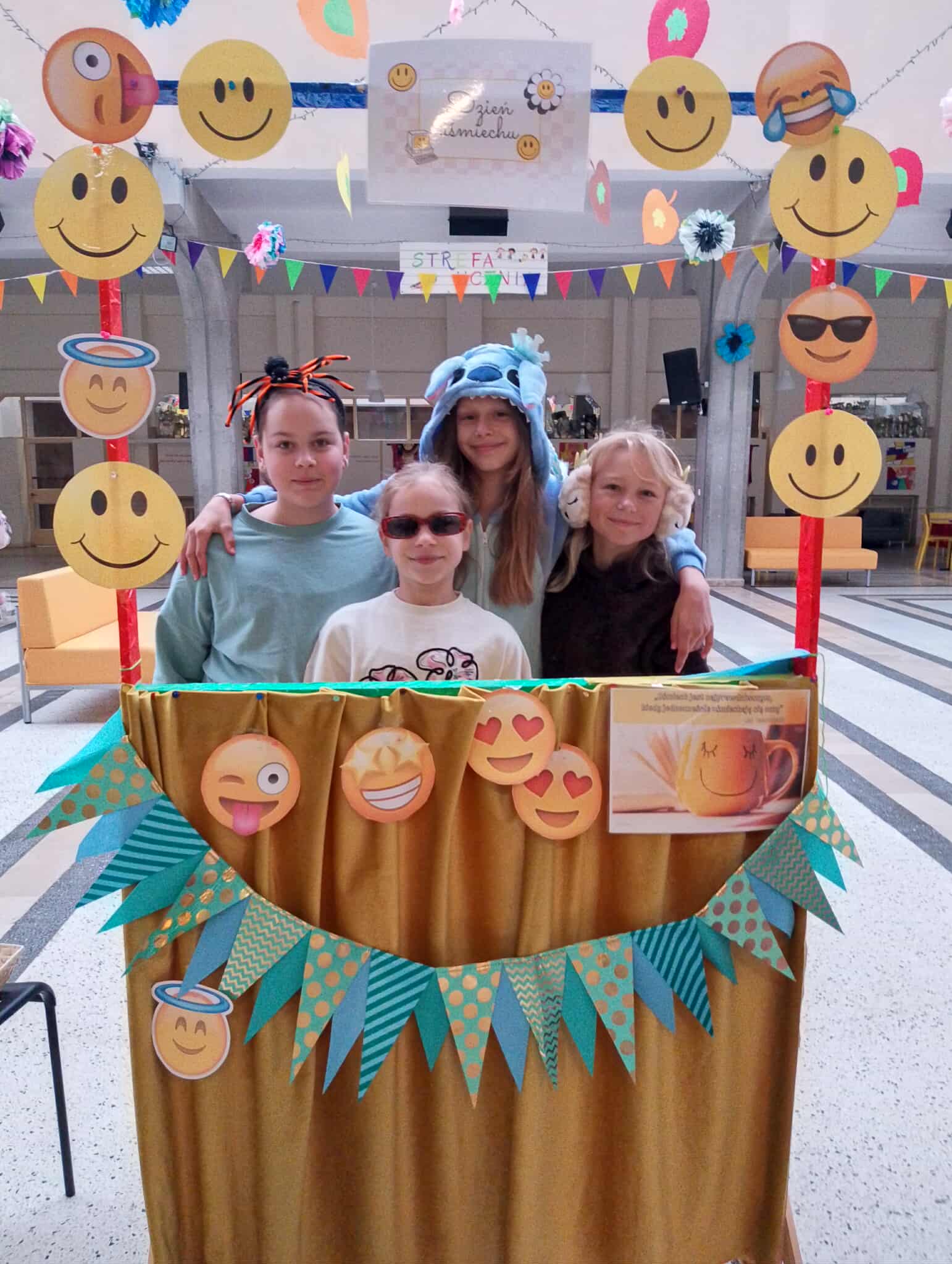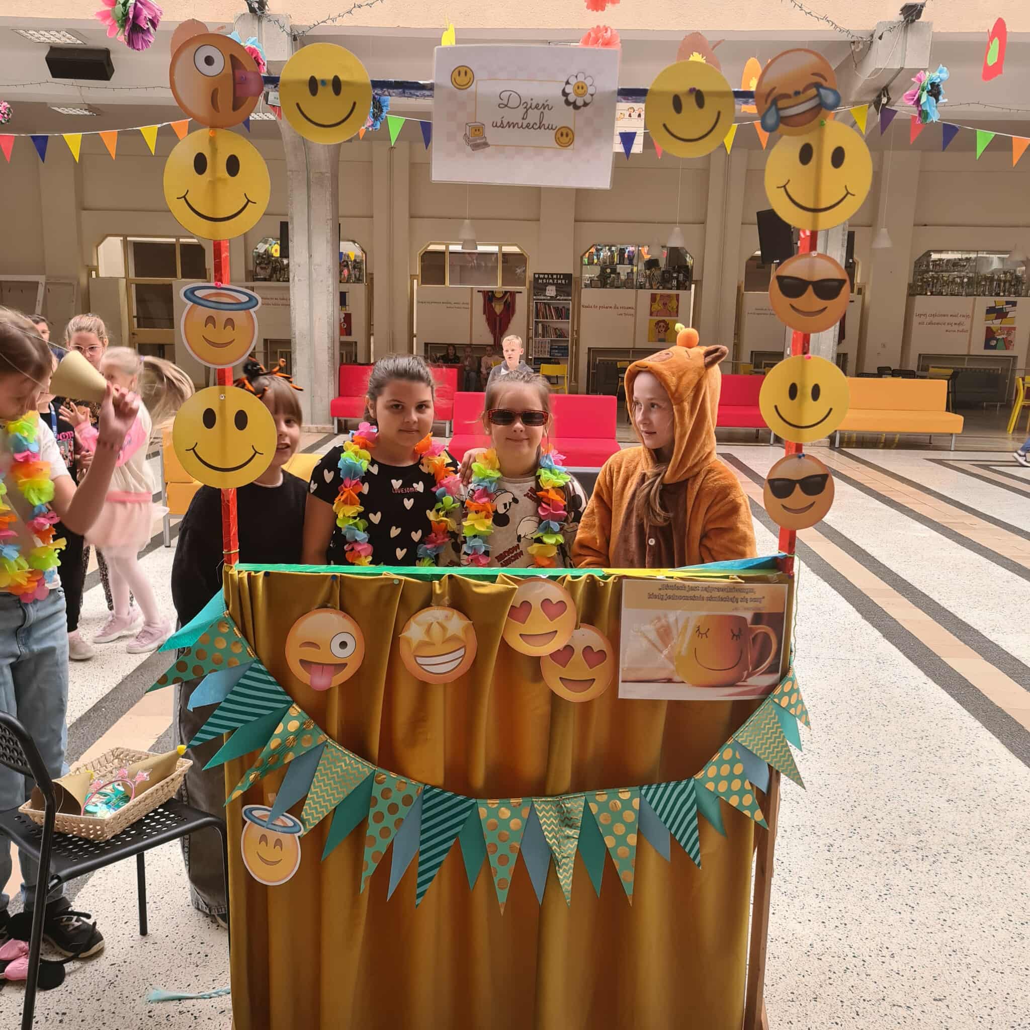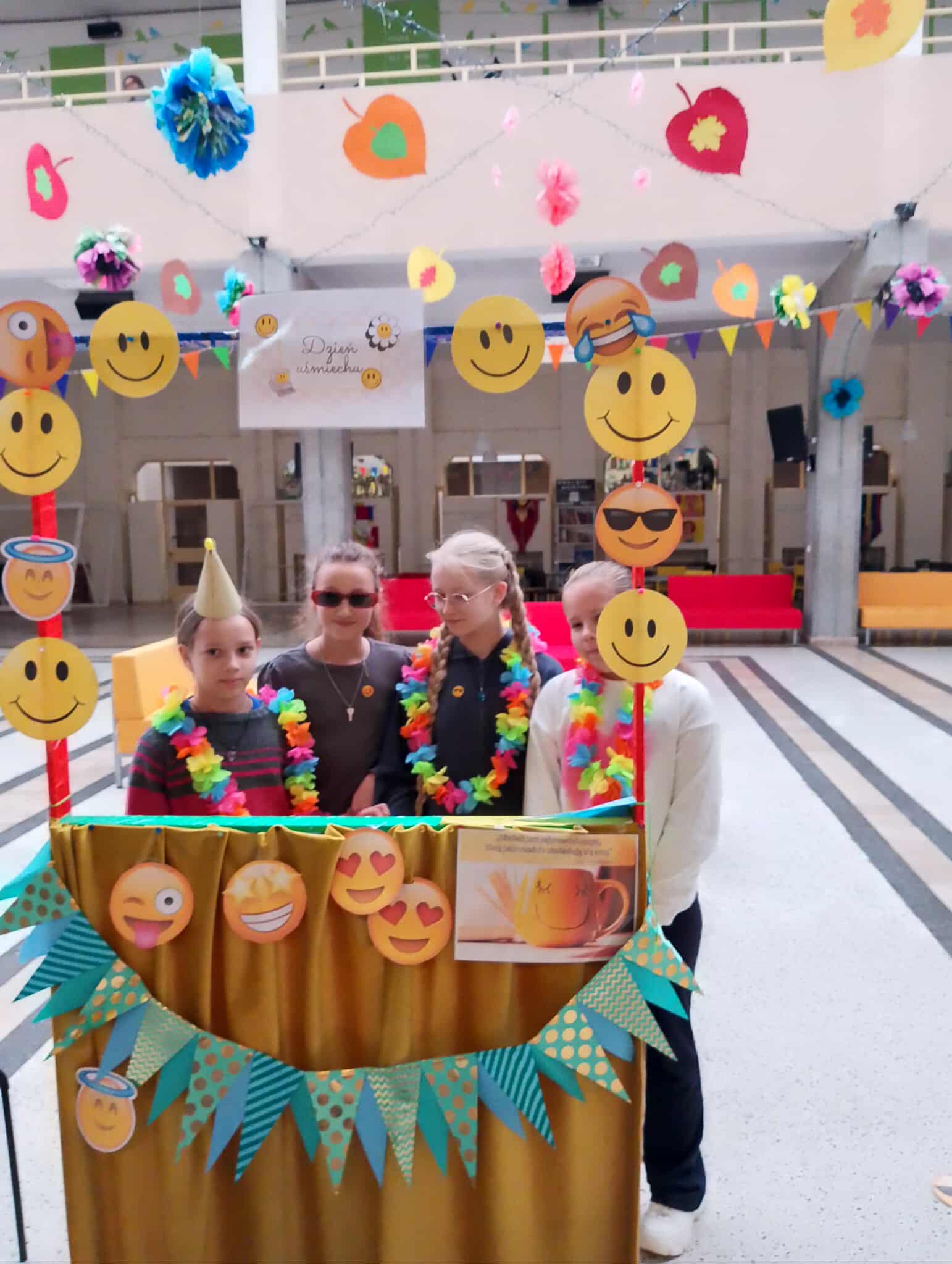 Dziś obchodziliśmy Światowy Dzień Uśmiechu. Z tej okazji w szkolnym holu ustawiona została radosna fotobudka z różnymi akcesoriami.