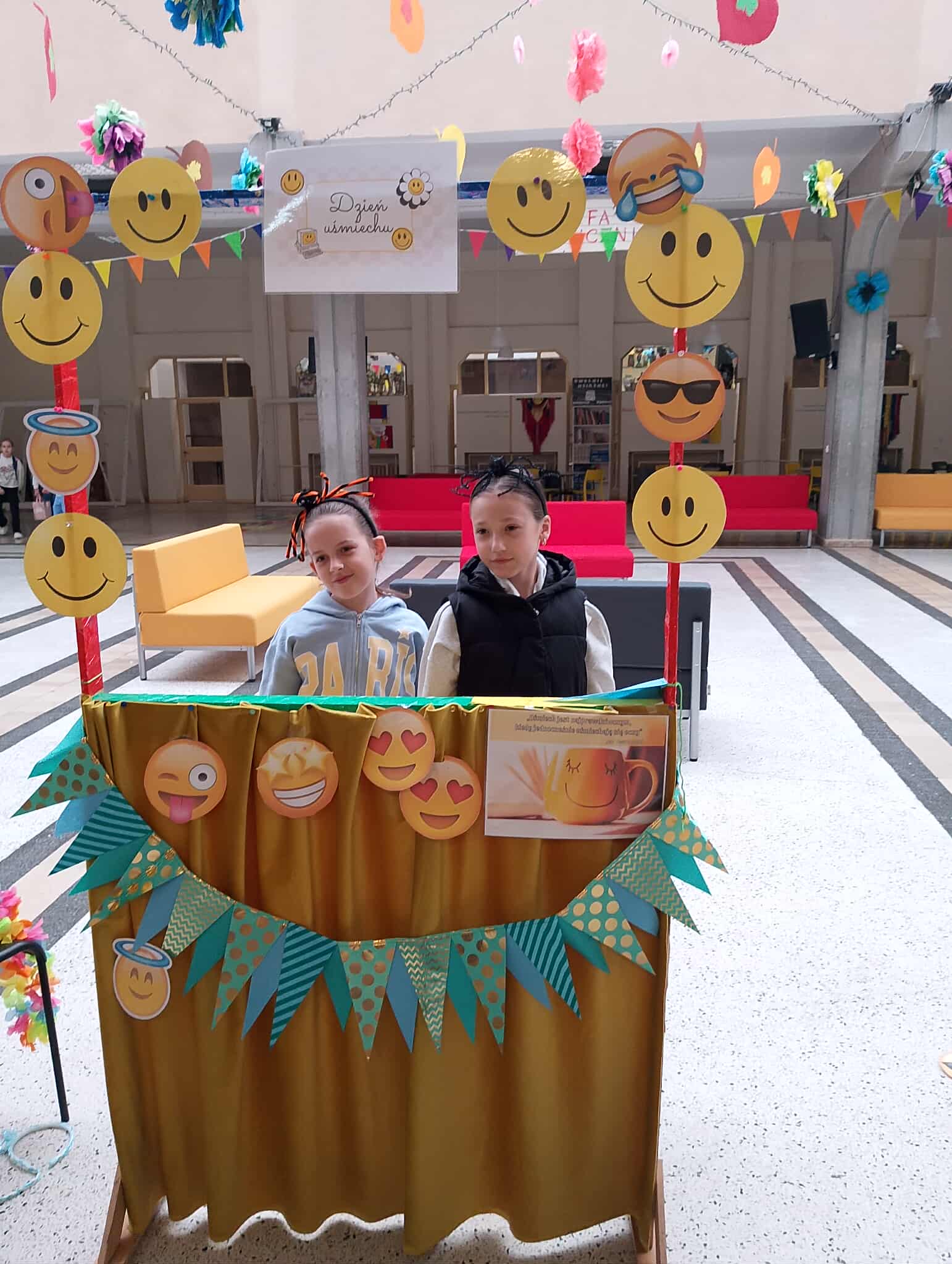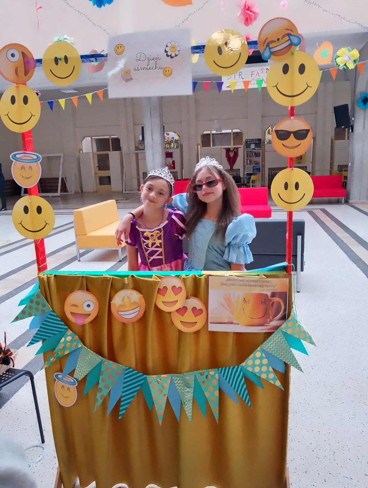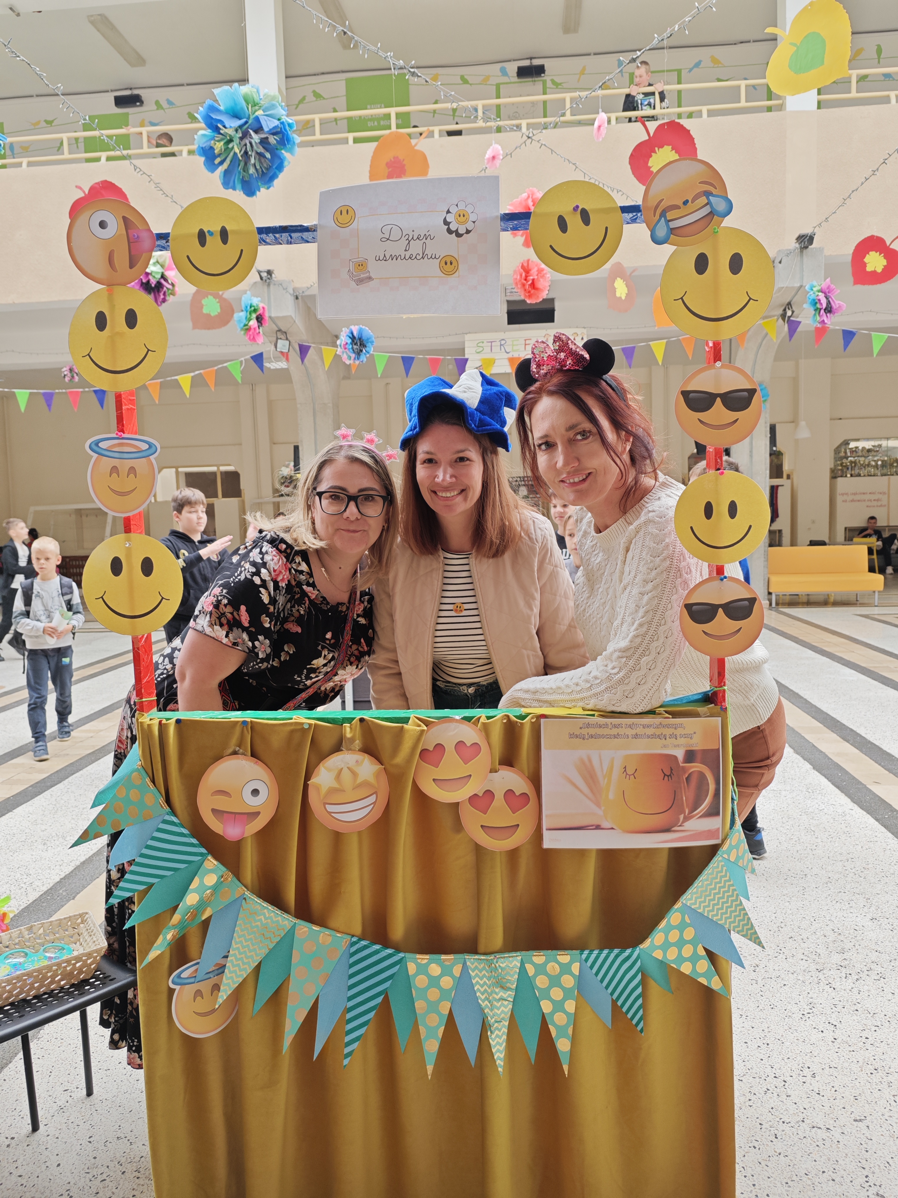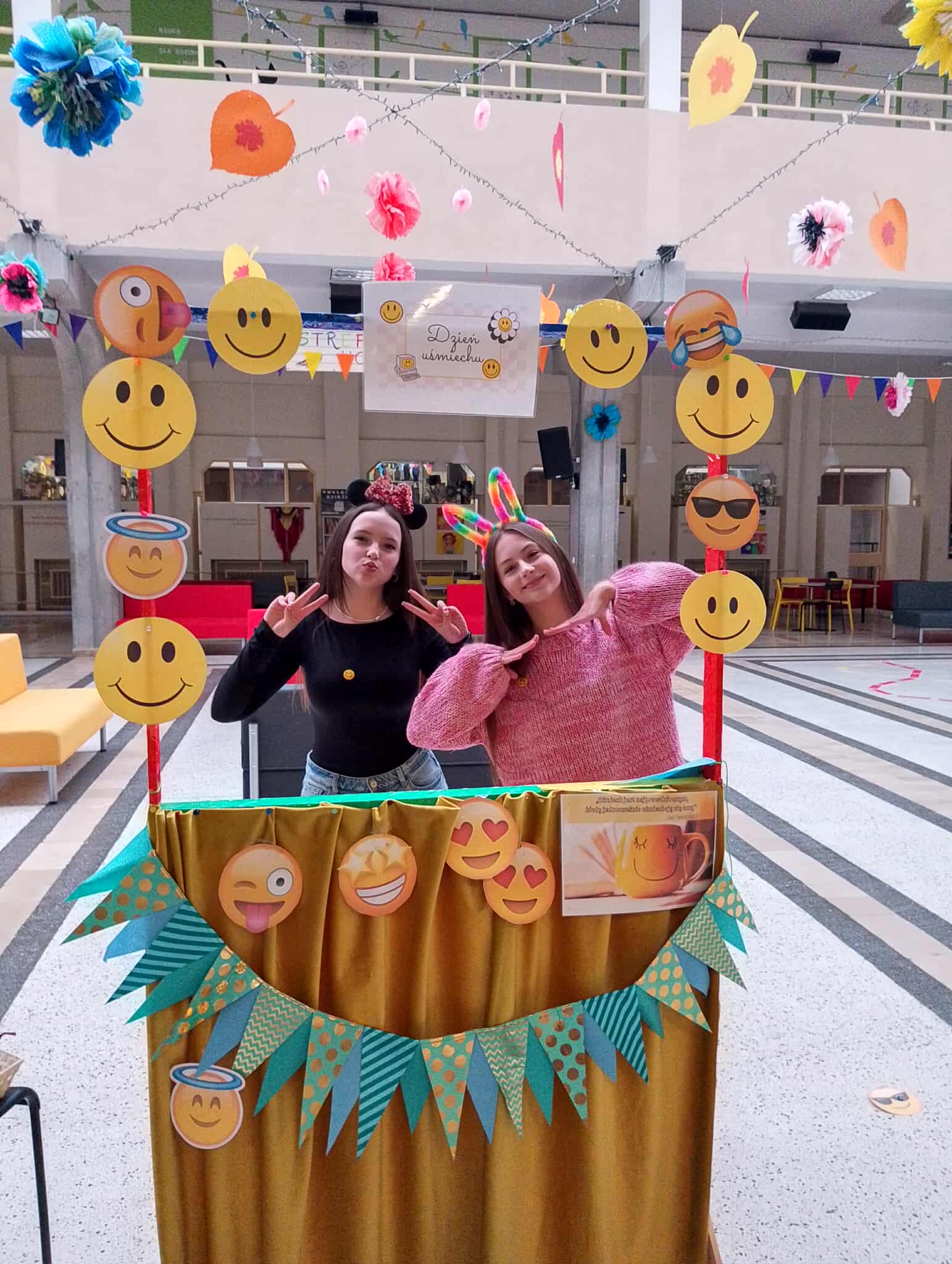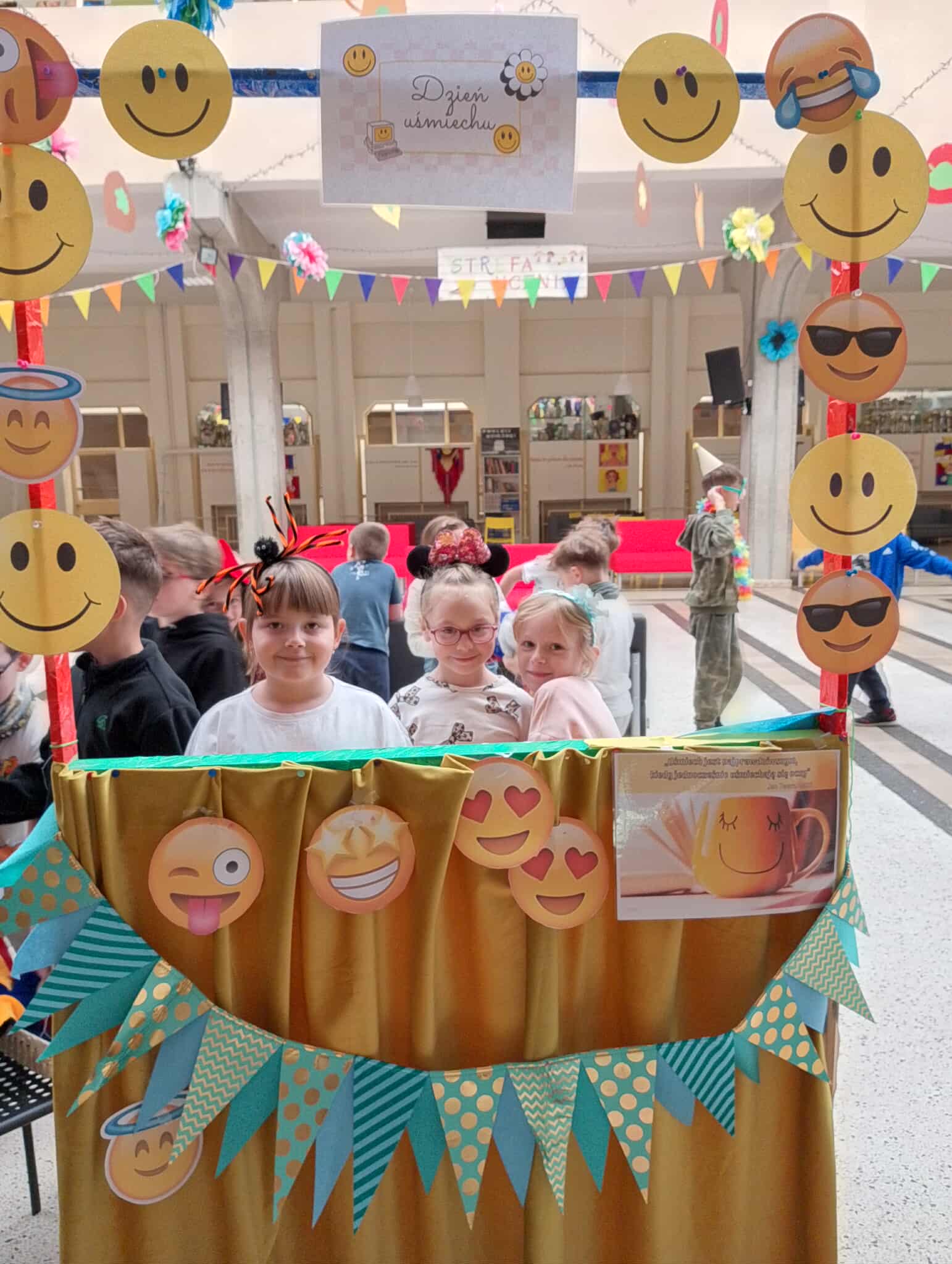 Dziś obchodziliśmy Światowy Dzień Uśmiechu. Z tej okazji w szkolnym holu ustawiona została radosna fotobudka z różnymi akcesoriami.
