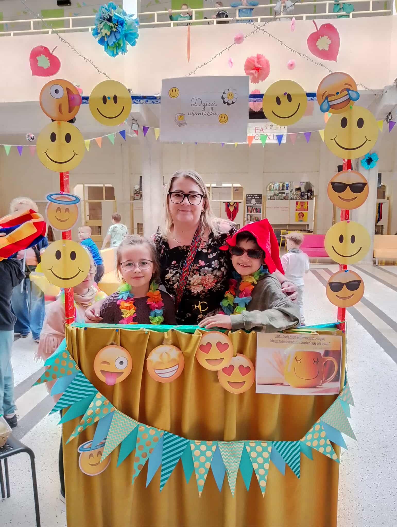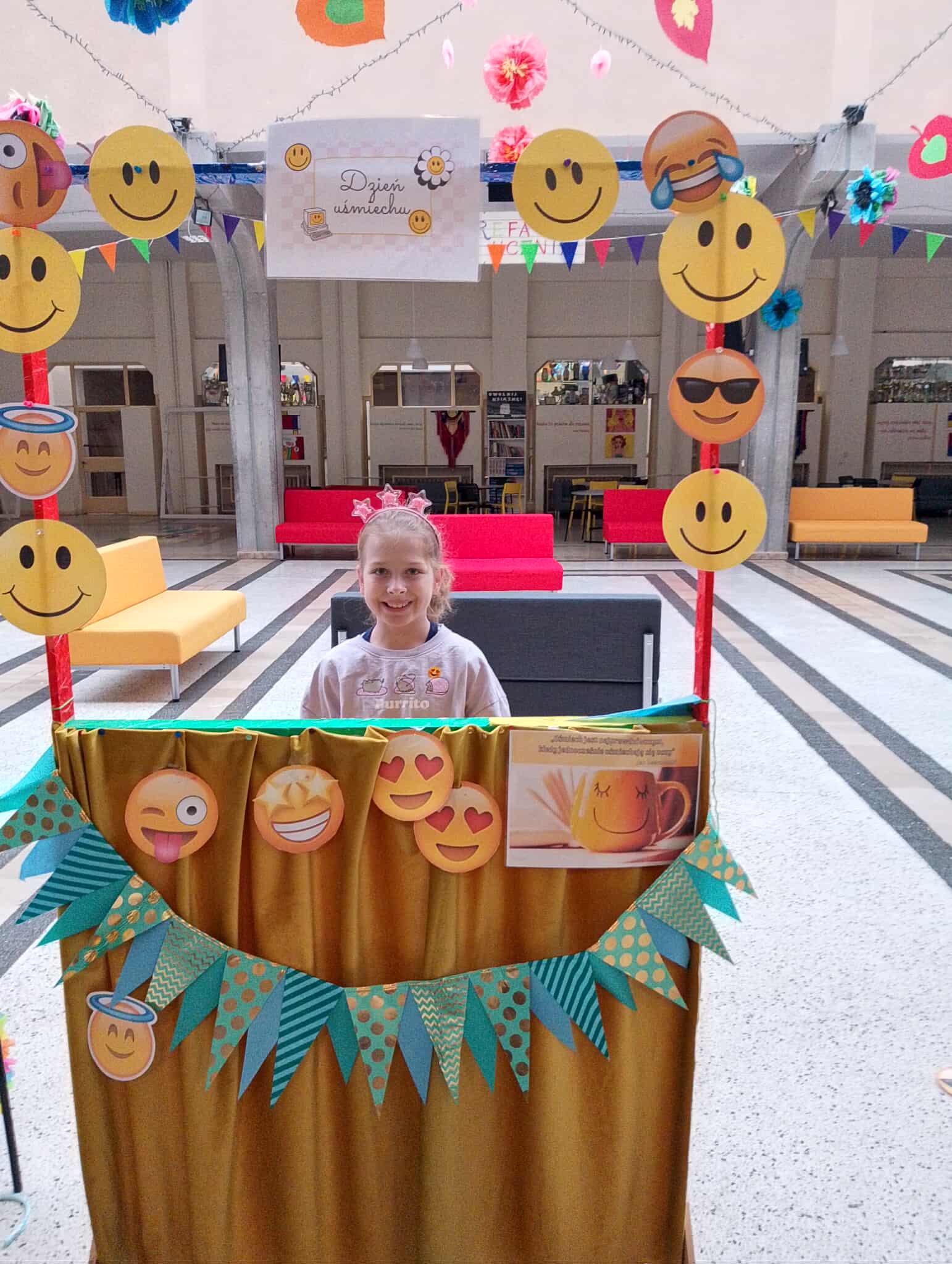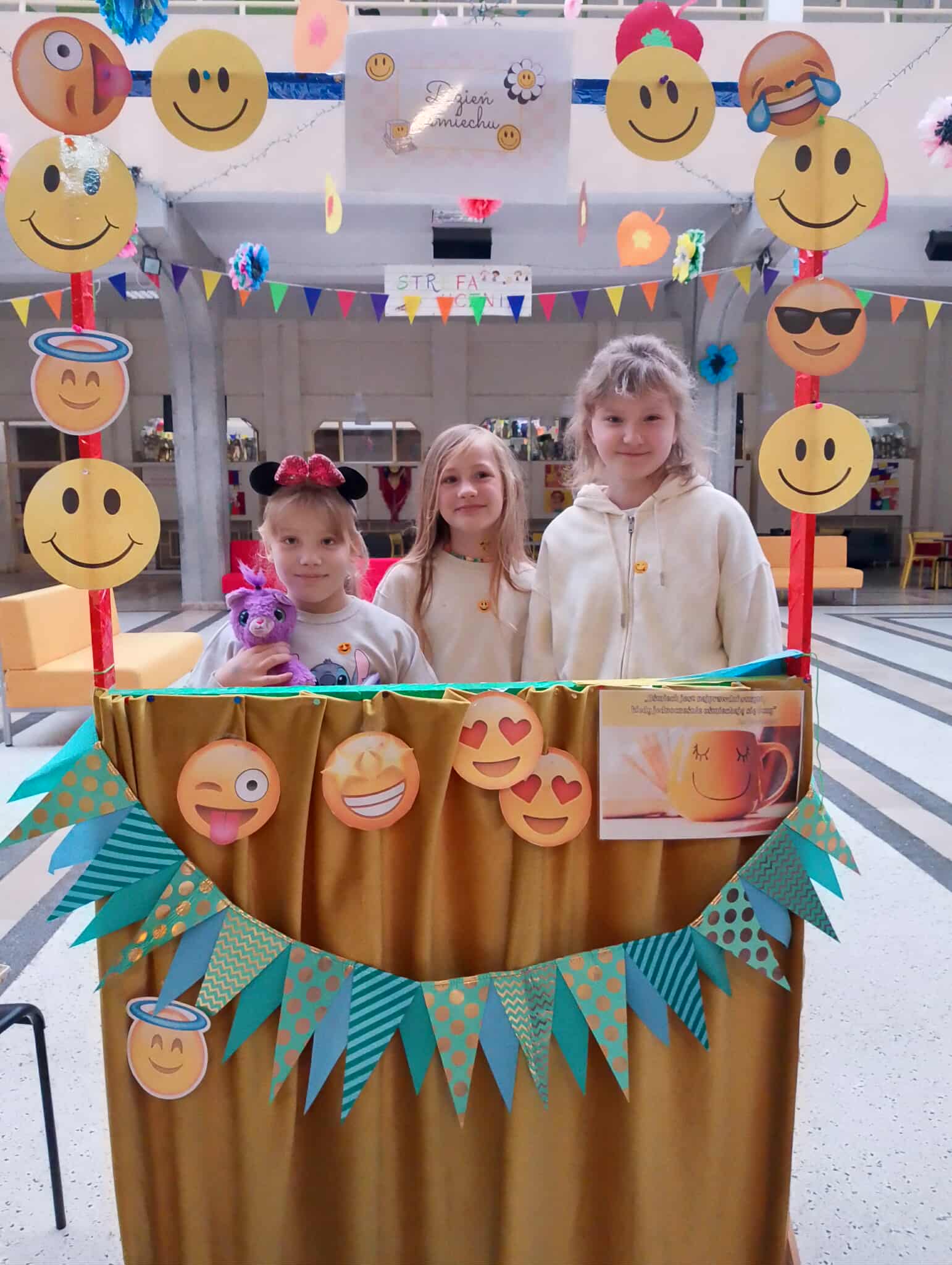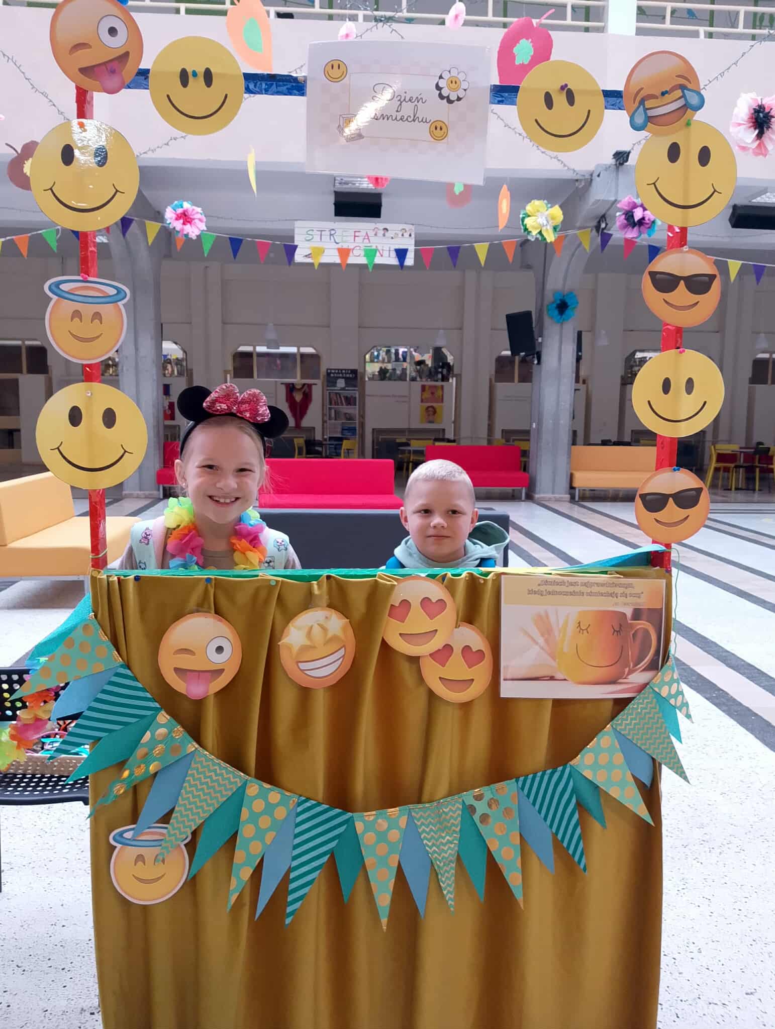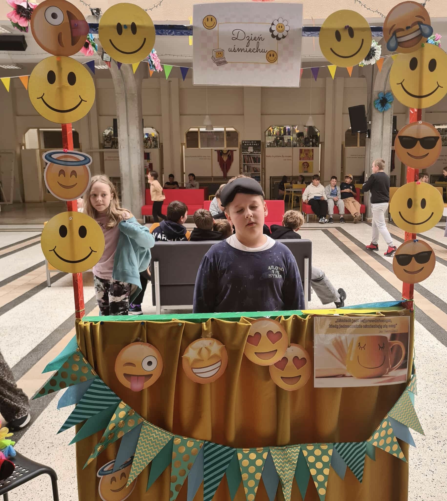 Dziś obchodziliśmy Światowy Dzień Uśmiechu. Z tej okazji w szkolnym holu ustawiona została radosna fotobudka z różnymi akcesoriami.