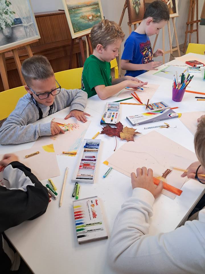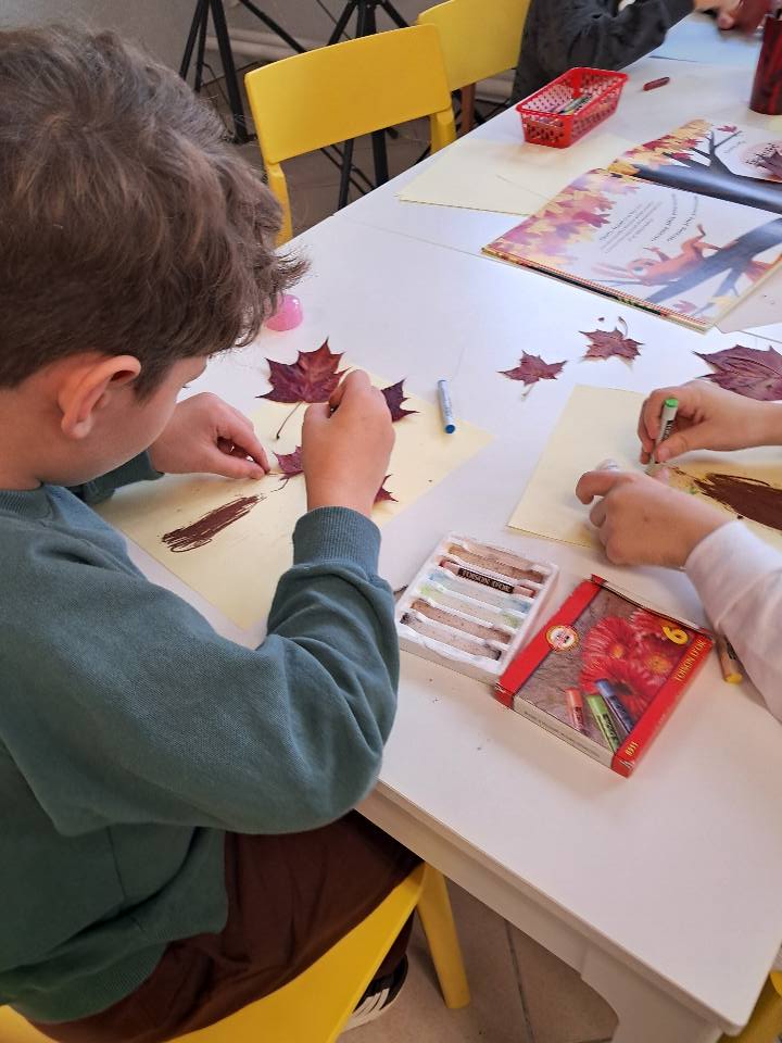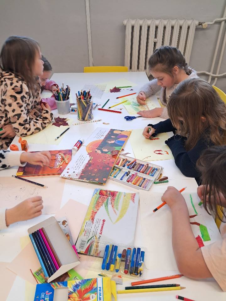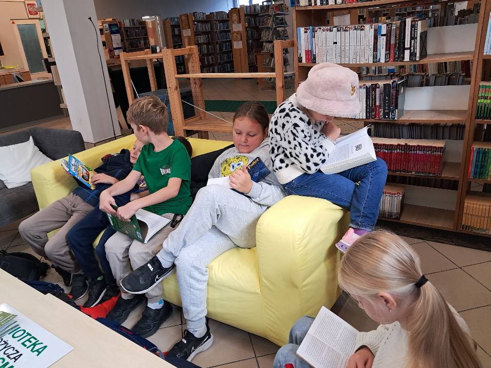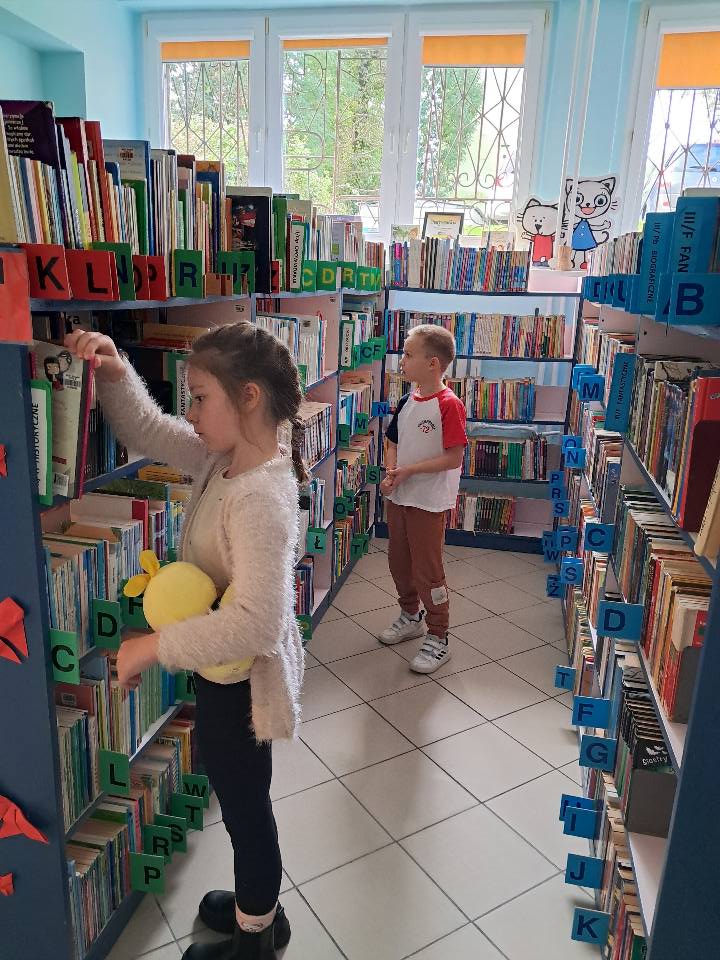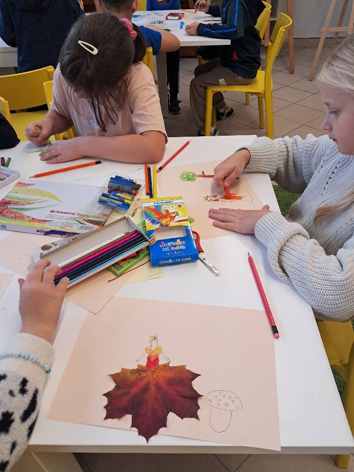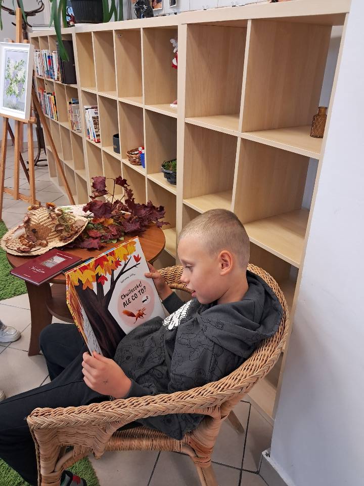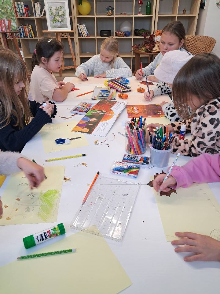 poświęconej literaturze o tematyce jesiennej. Zainspirowani wysłuchanymi tekstami wykonali prace plastyczne, które będzie można podziwiać na wystawie w kąciku czytelniczym. Dzieci obejrzały też pomieszczenia biblioteczne, zwłaszcza nowy kącik dla najmłodszych czytelników oraz zapoznały się ze zbiorami bibliotecznymi. Mogły też poczytać wybraną książkę. Czas upłynął w miłej, twórczej atmosferze, a dzieci obiecały czesto odwiedzać placówkę. Spotkanie zorganizowała szkolna bibliotekarka Mariola Ostrowska, zajęcia poprowadziła bibliotekarka z filii nr8 Pani Barbara Jękorek.