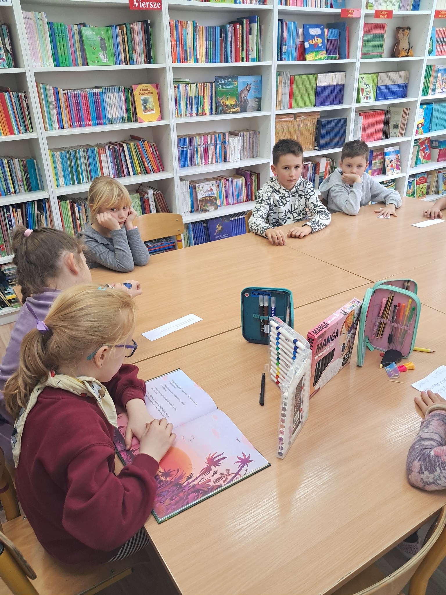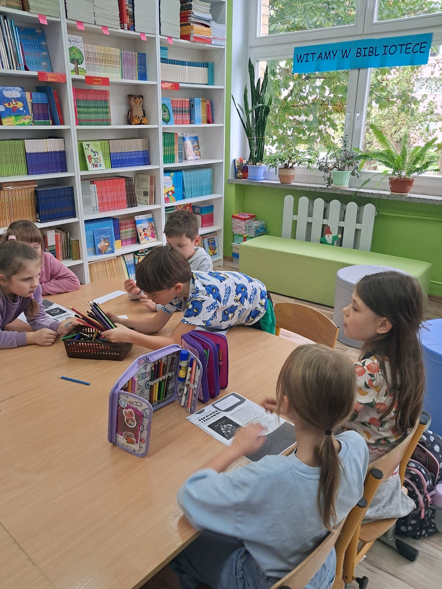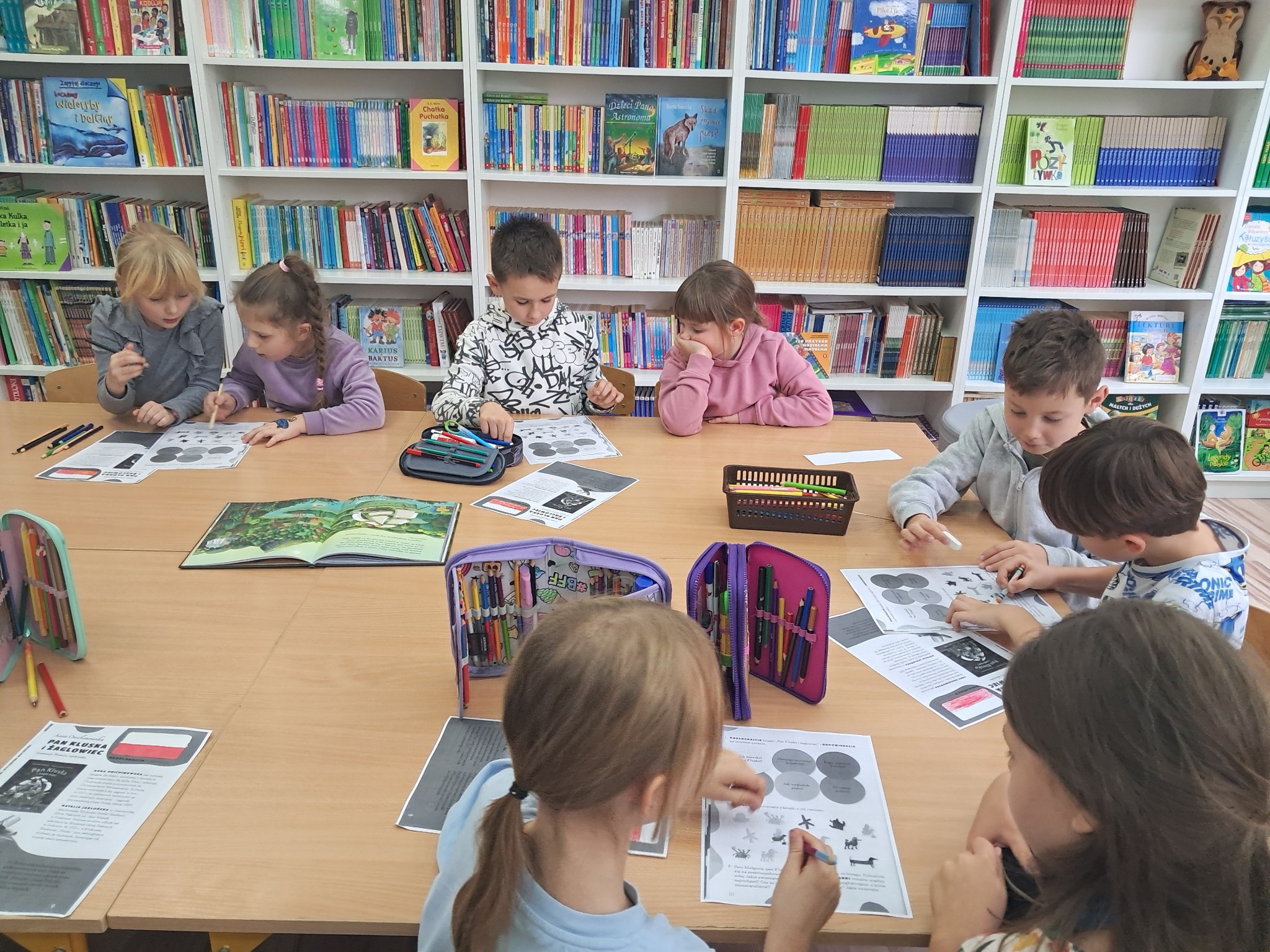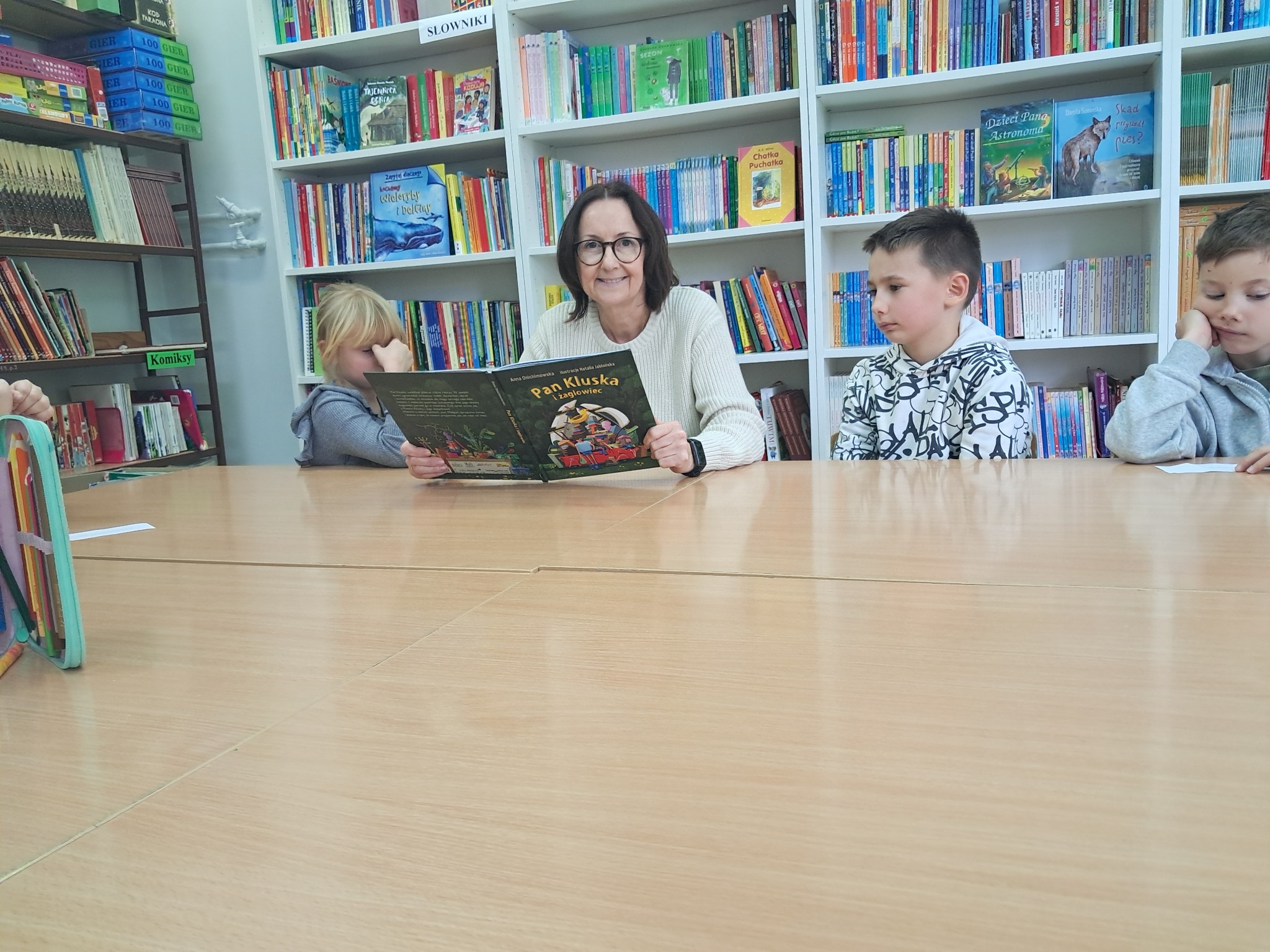 w towarzystwie przebojowej ekipy książek międzynarodowych autorów. Oprócz wielkiej przyjemnosci z czytania, przeżywamy tu wielką eksplozję kreatywności wykonując niebanalne ćwiczenia językowe i manualne, rozwiązując łamigłówki literackie, rebusy, krzyżówki. Spotkania prowadzone przez bibliotekarkę Mariolę Ostrowską odbywają się raz w tygodniu.