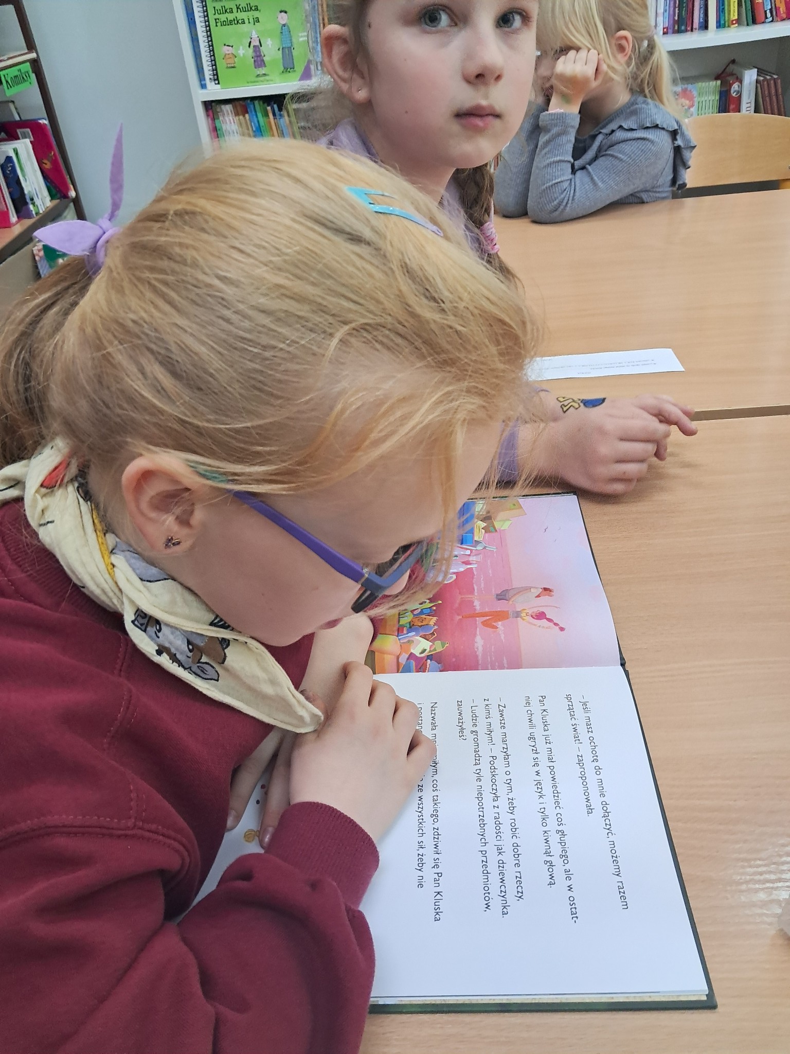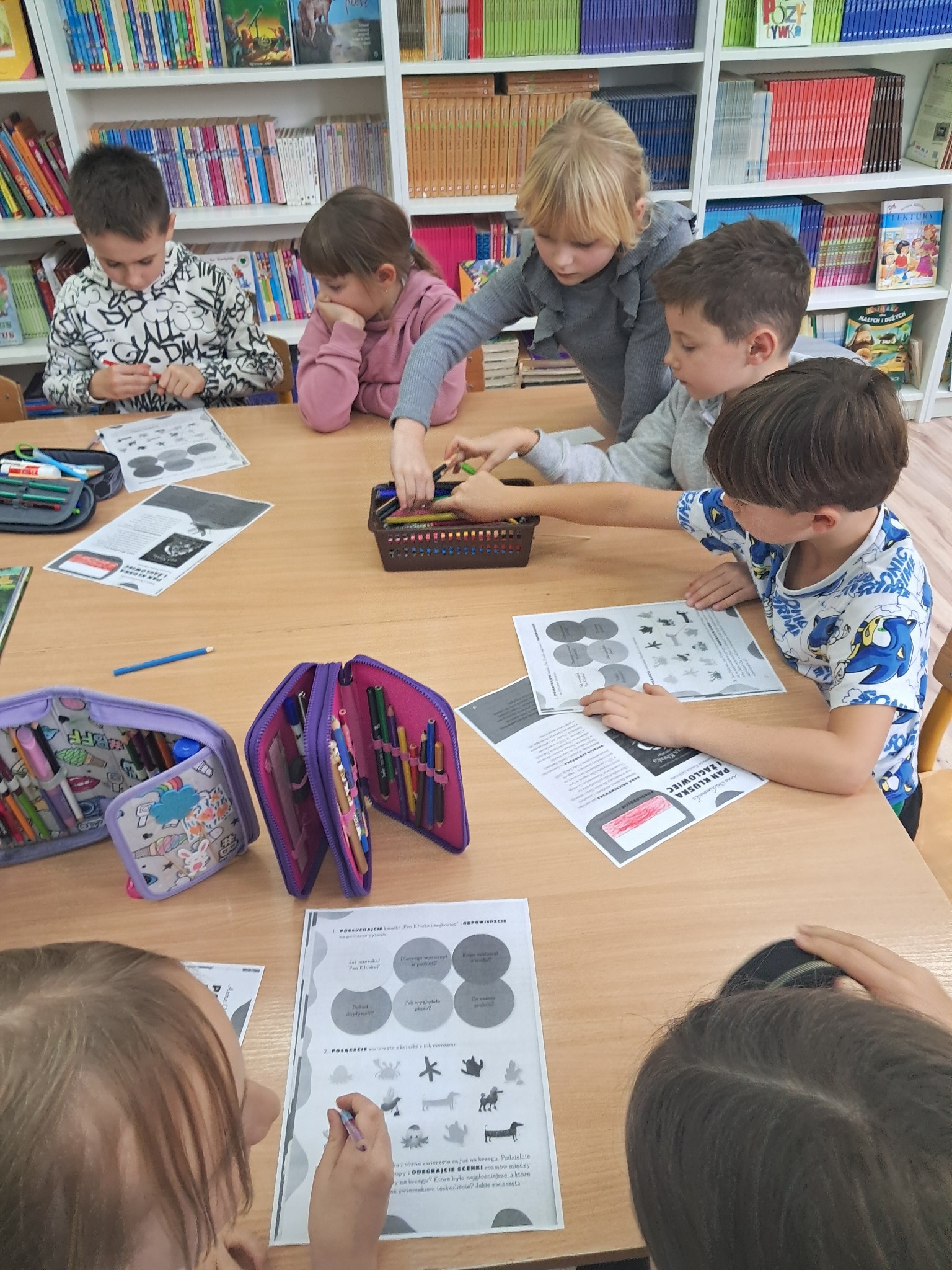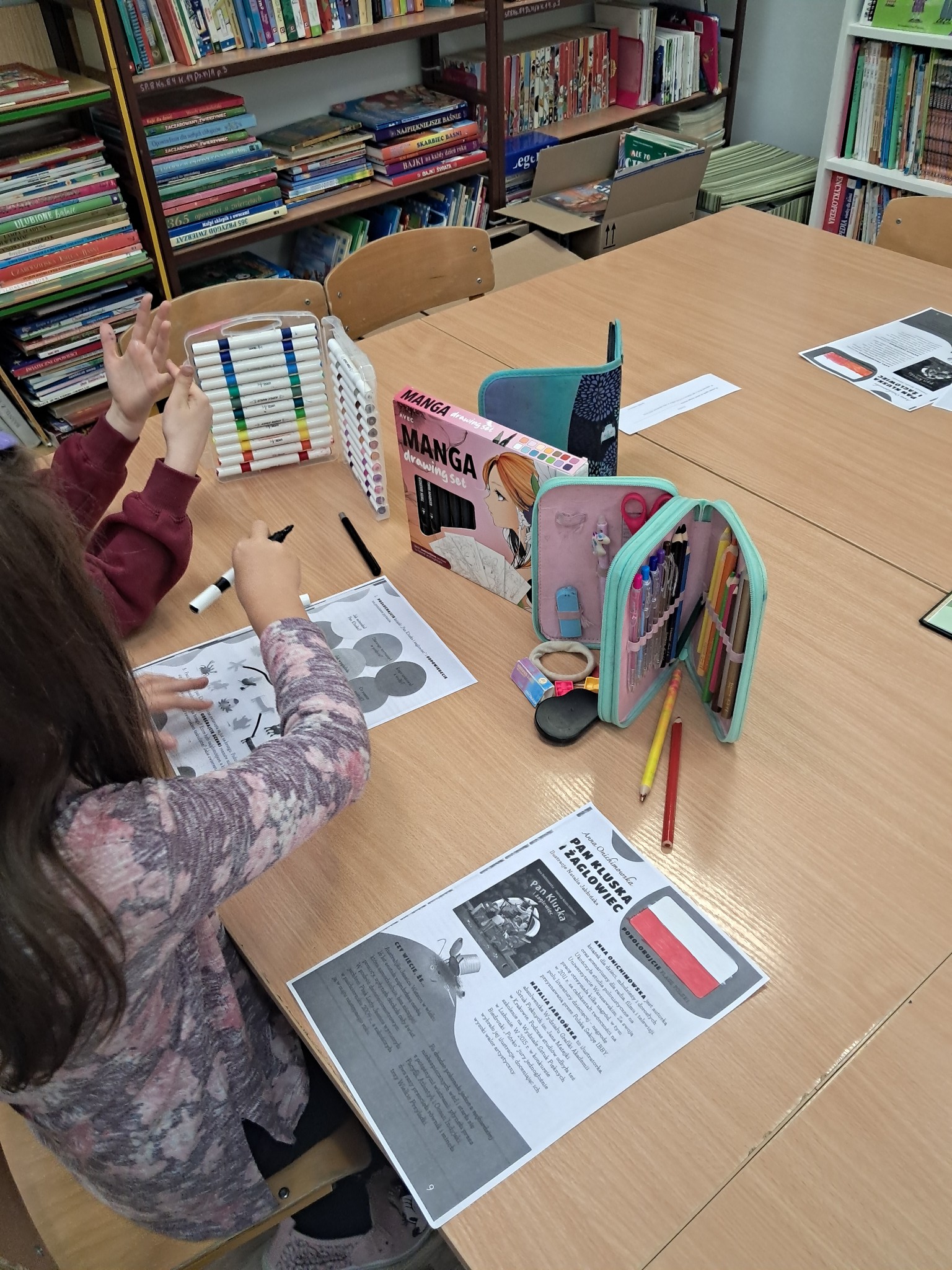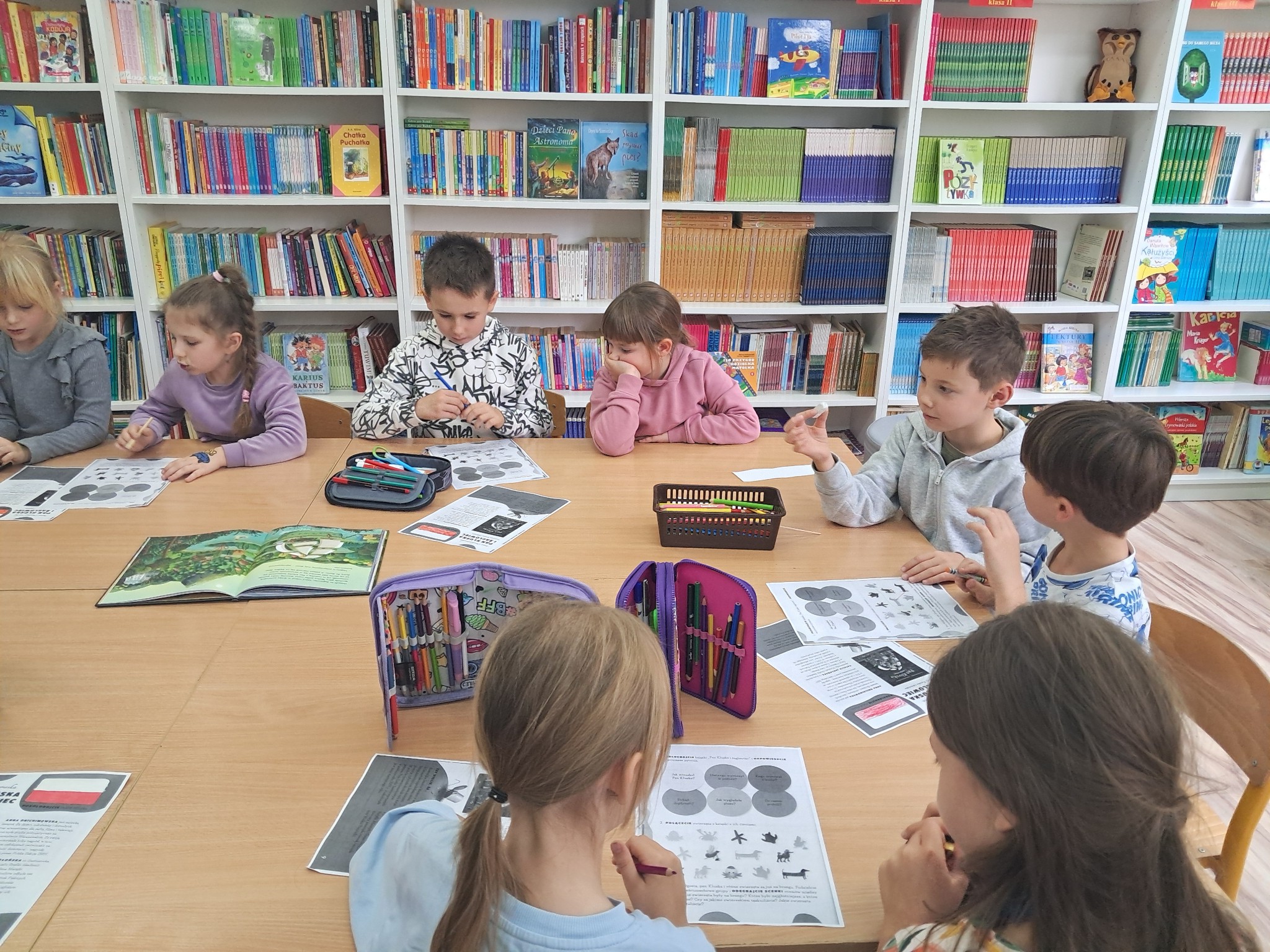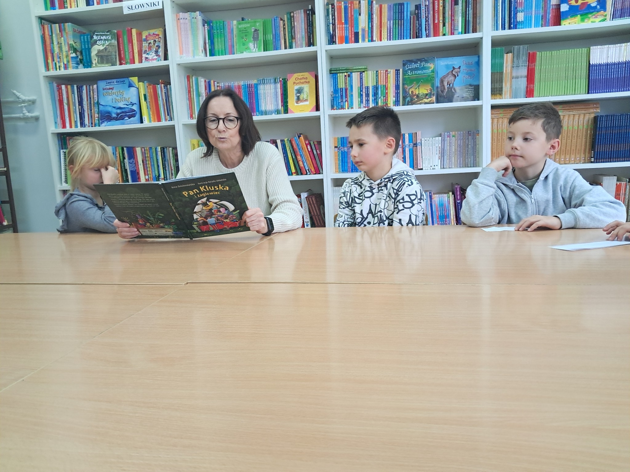 w towarzystwie przebojowej ekipy książek międzynarodowych autorów. Oprócz wielkiej przyjemnosci z czytania, przeżywamy tu wielką eksplozję kreatywności wykonując niebanalne ćwiczenia językowe i manualne, rozwiązując łamigłówki literackie, rebusy, krzyżówki. Spotkania prowadzone przez bibliotekarkę Mariolę Ostrowską odbywają się raz w tygodniu.