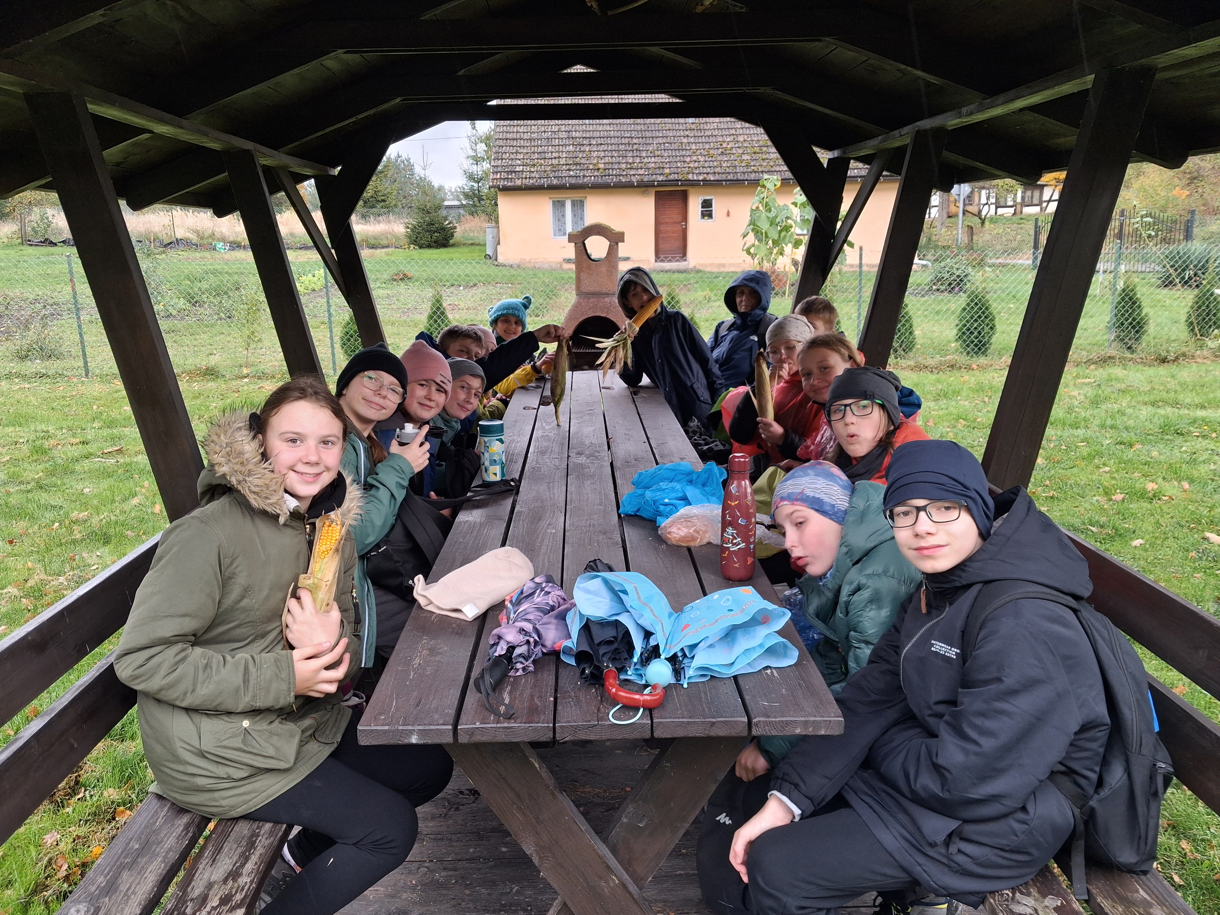 Na trasę zgłosiło się aż 25 osób. Niestety wybrańców było 18, a i tak niektórzy przestraszyli  się pogody i nie poszli. Szkoda zmarnowanych miejsc. Twardzieli było zatem czternastu. Nasi „nieustraszeni” pokonali w bitwie pod Zębowem tyczki kukurydzy i w ramach łupów wojennych do domów zawieźli kolby tej rośliny.